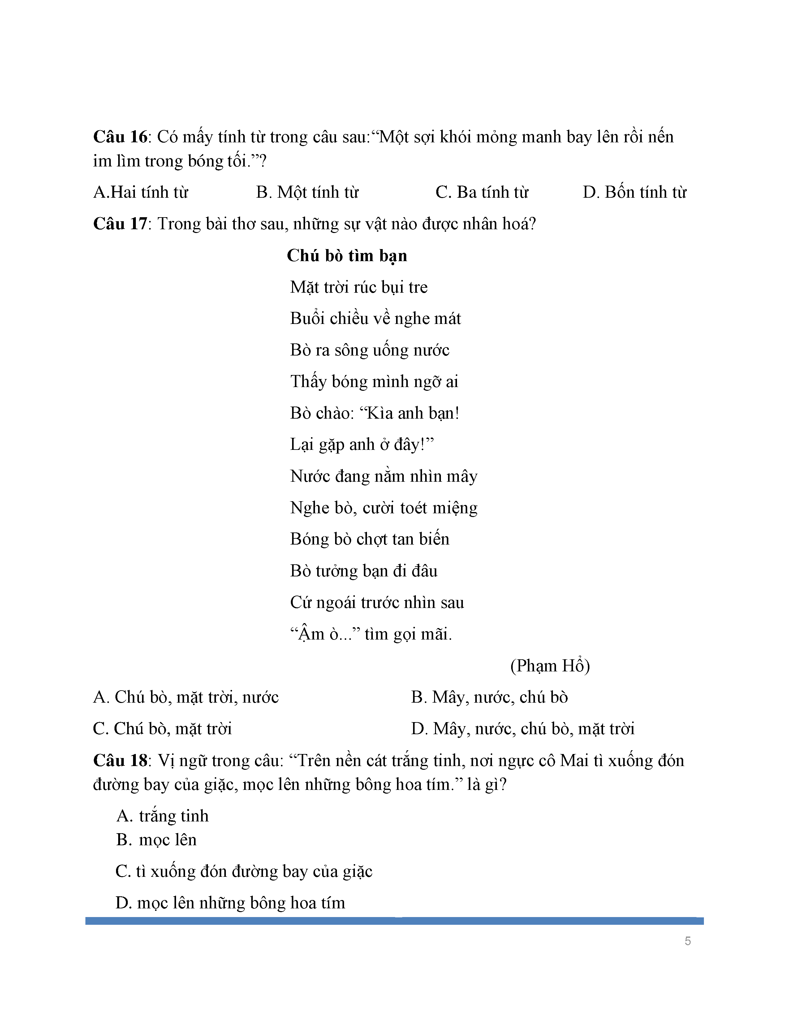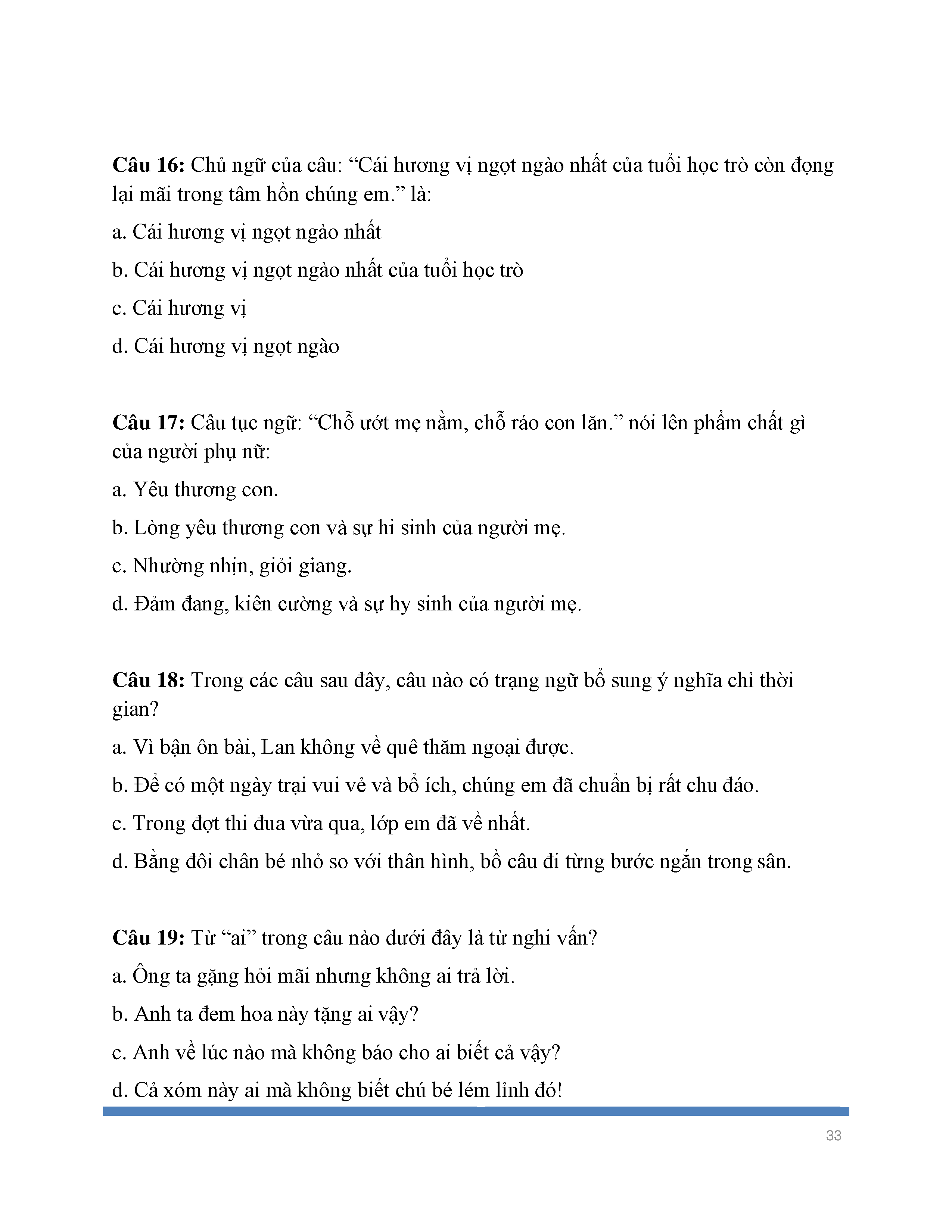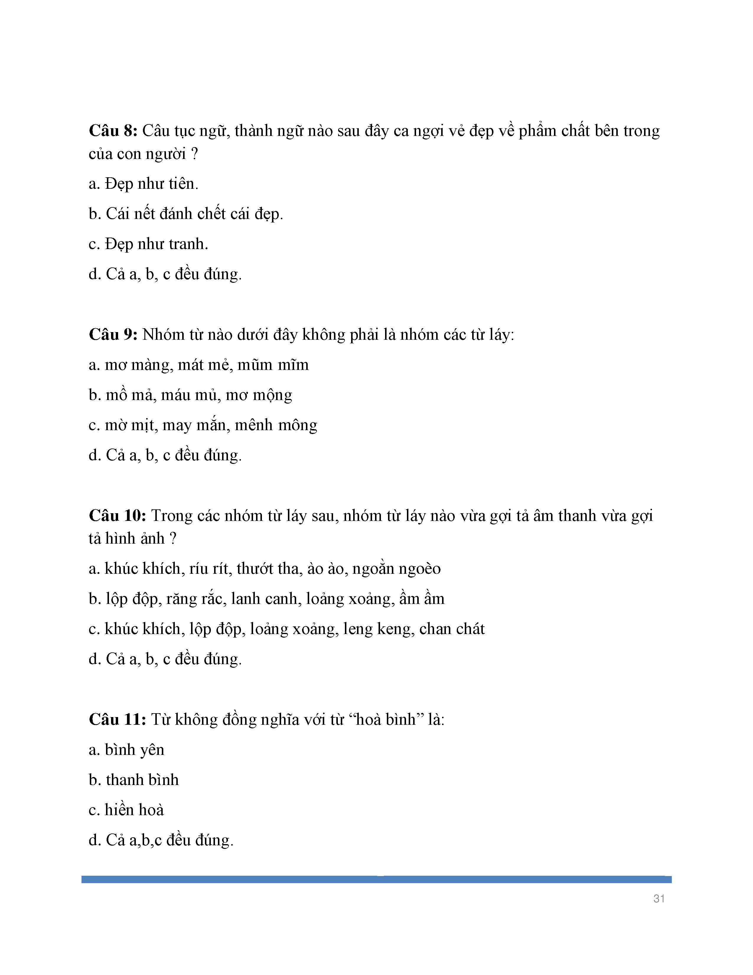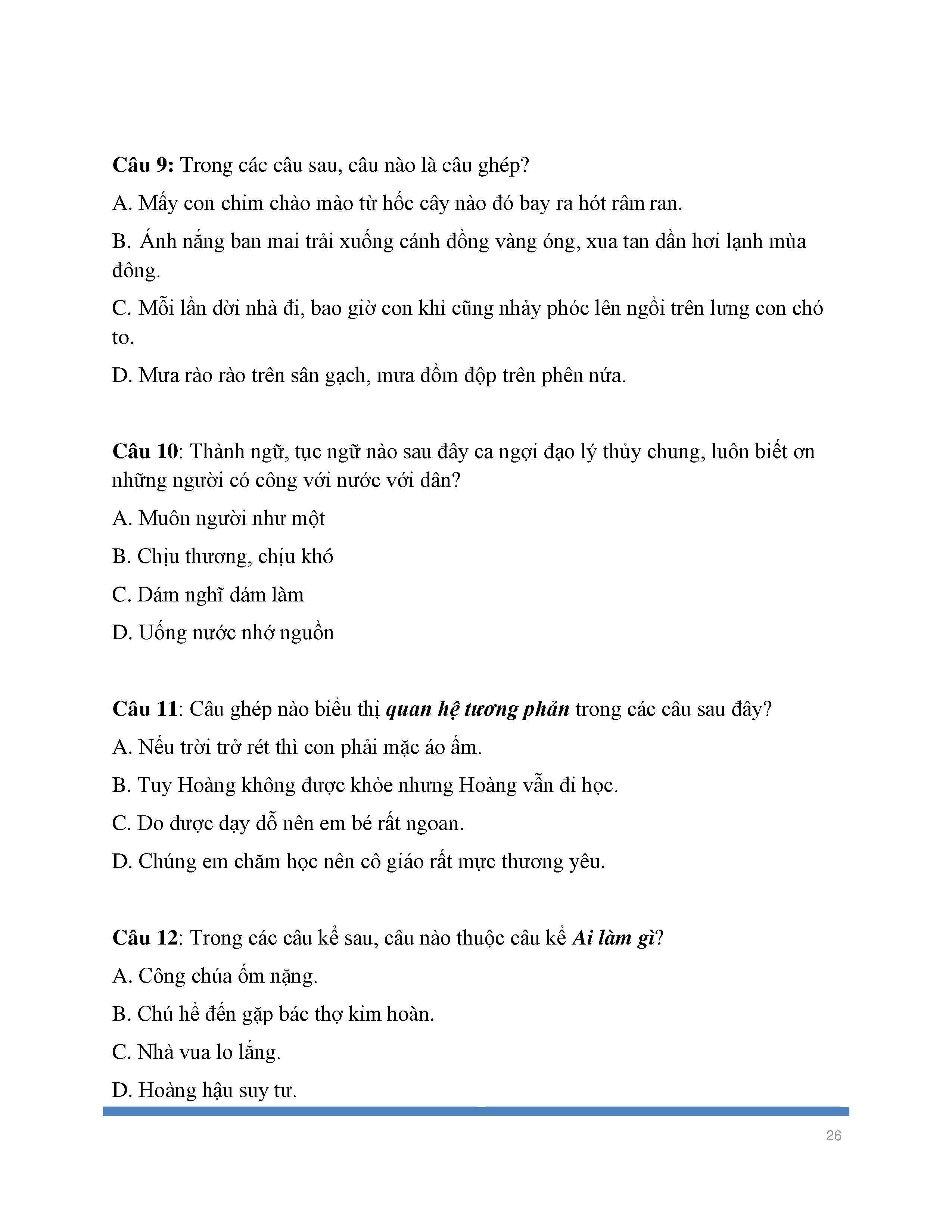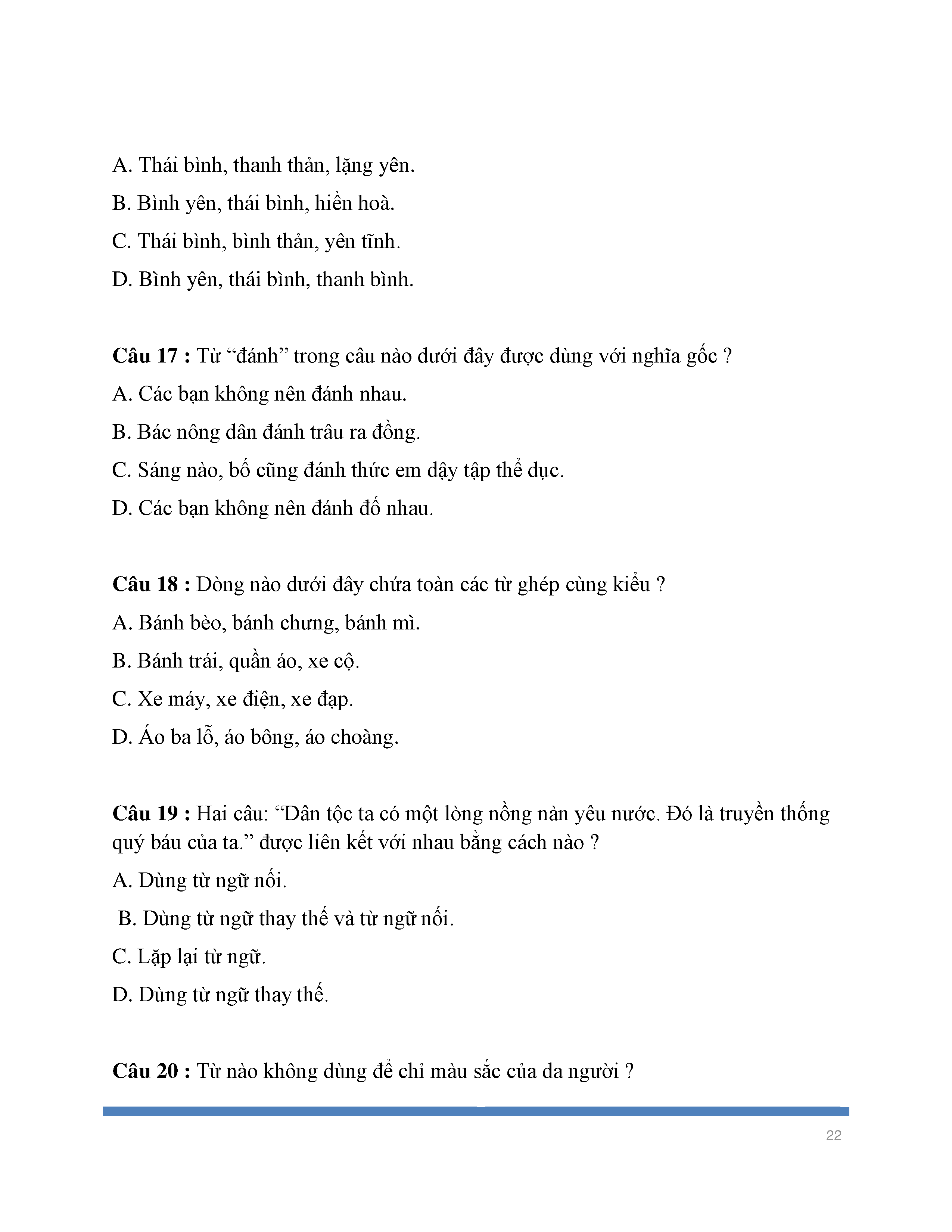 BỘ ĐỀ TRẮC NGHIỆM ÔN THI VÀO 6 MÔN TIẾNG VIỆT