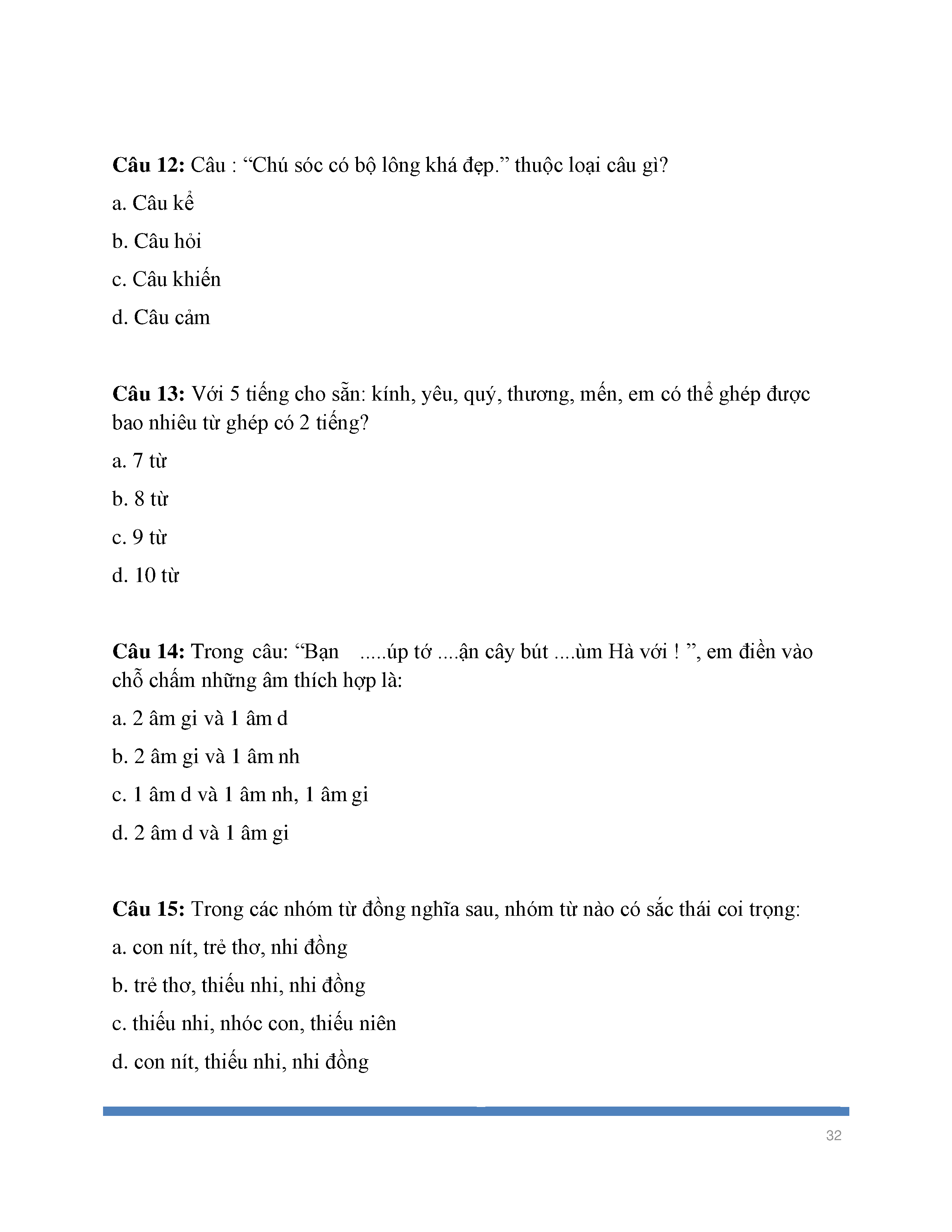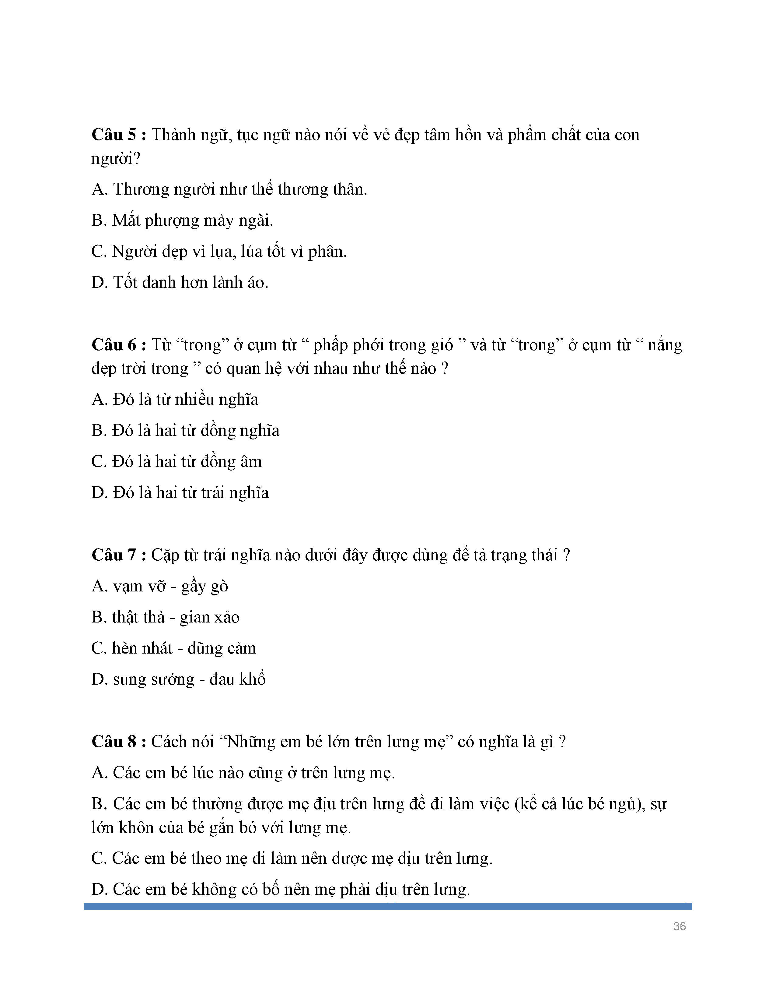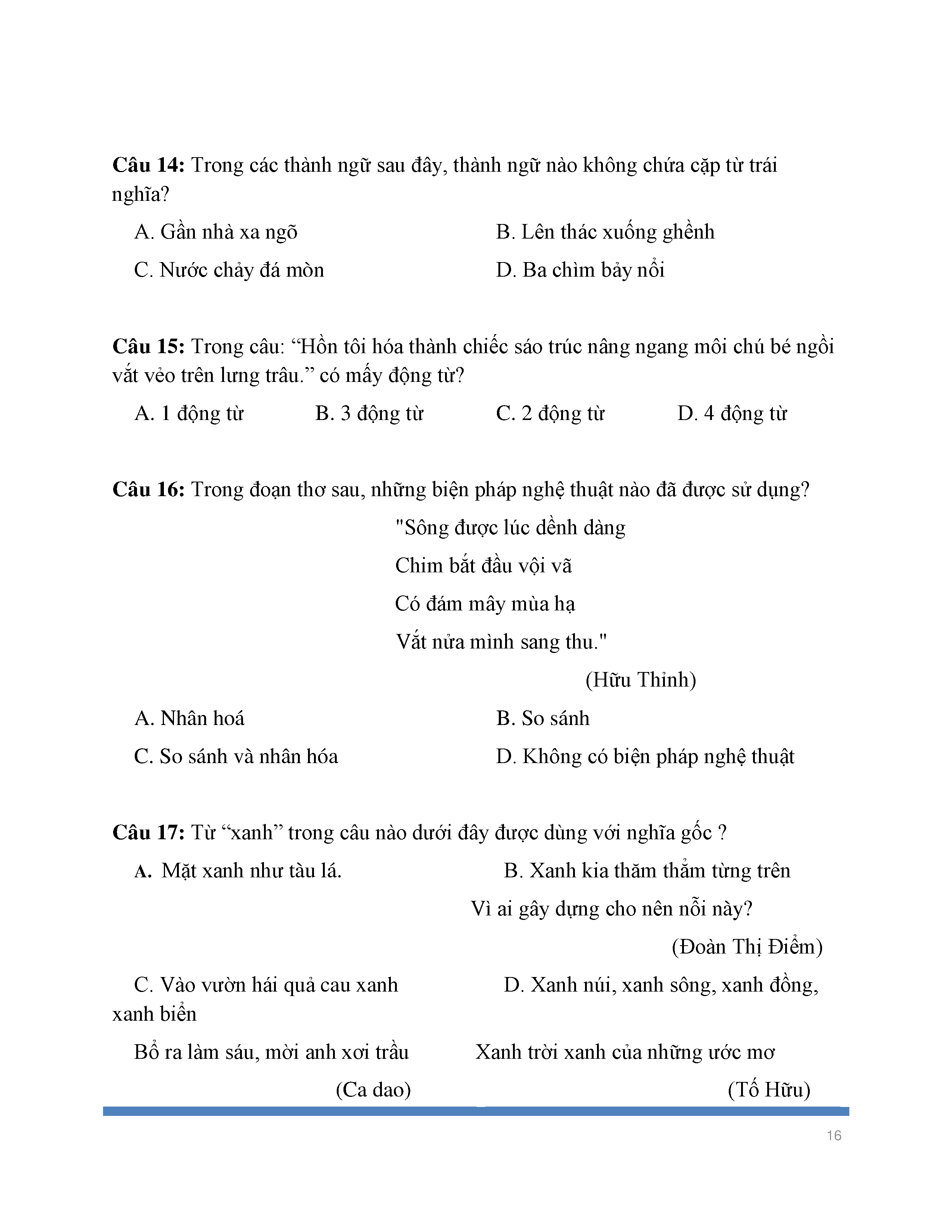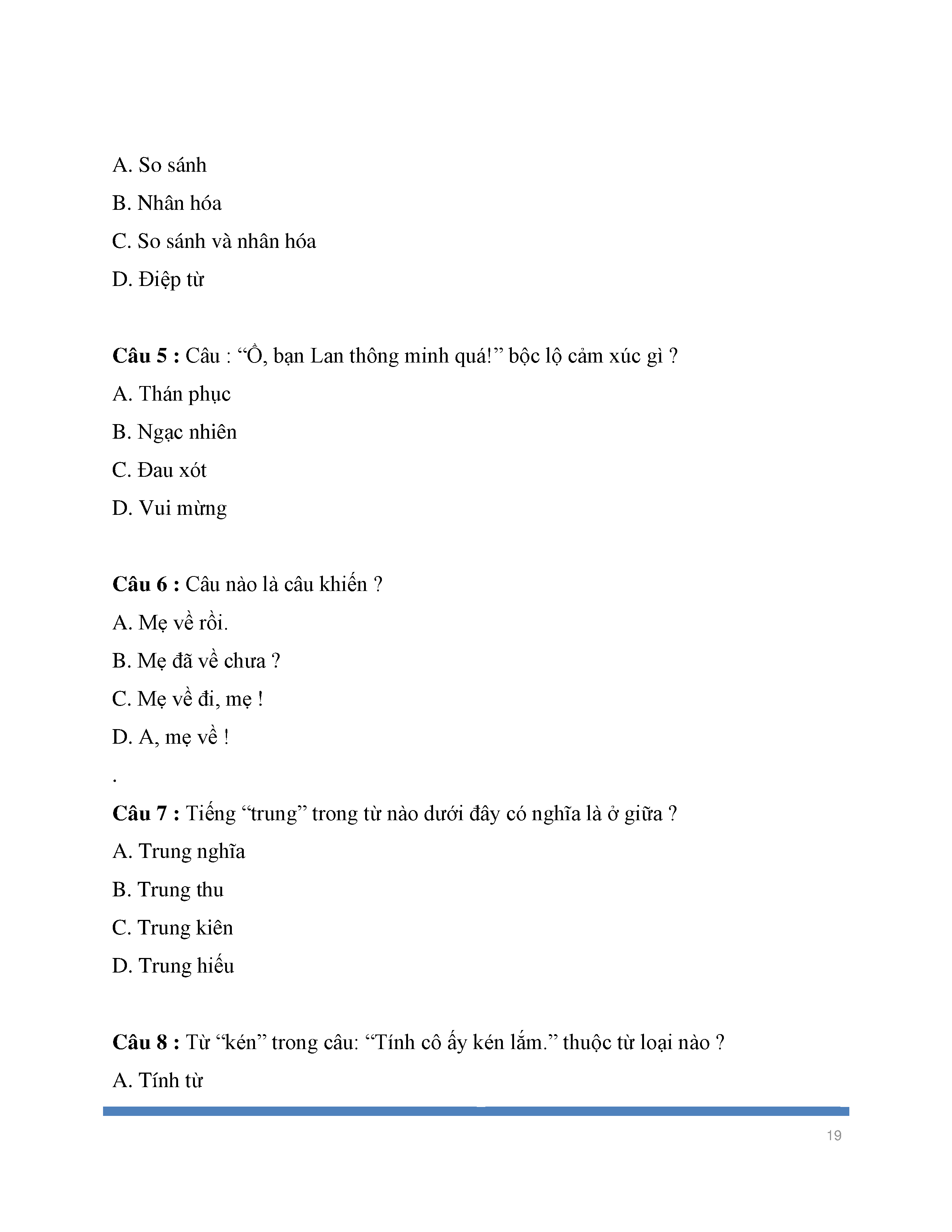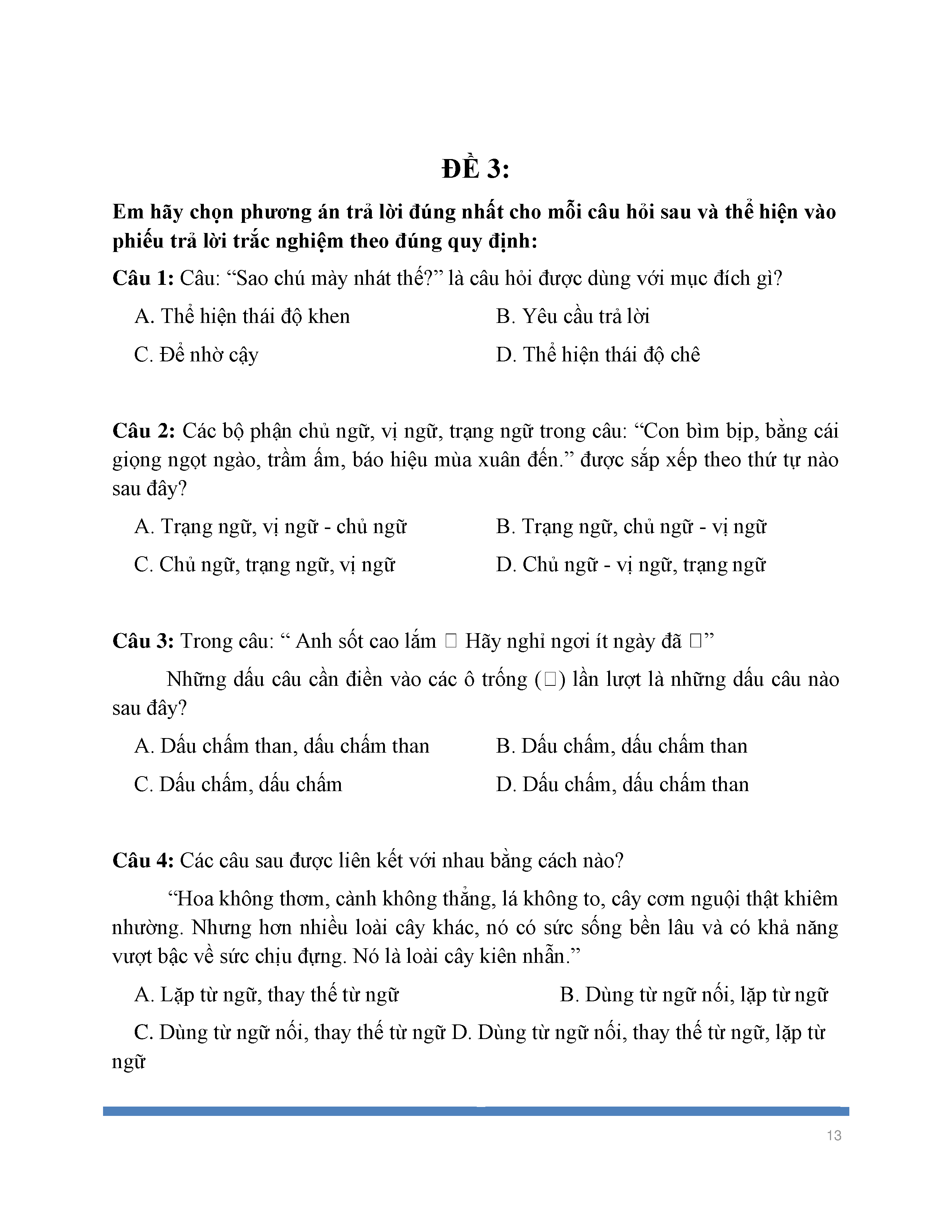 BỘ ĐỀ TRẮC NGHIỆM ÔN THI VÀO 6 MÔN TIẾNG VIỆT
