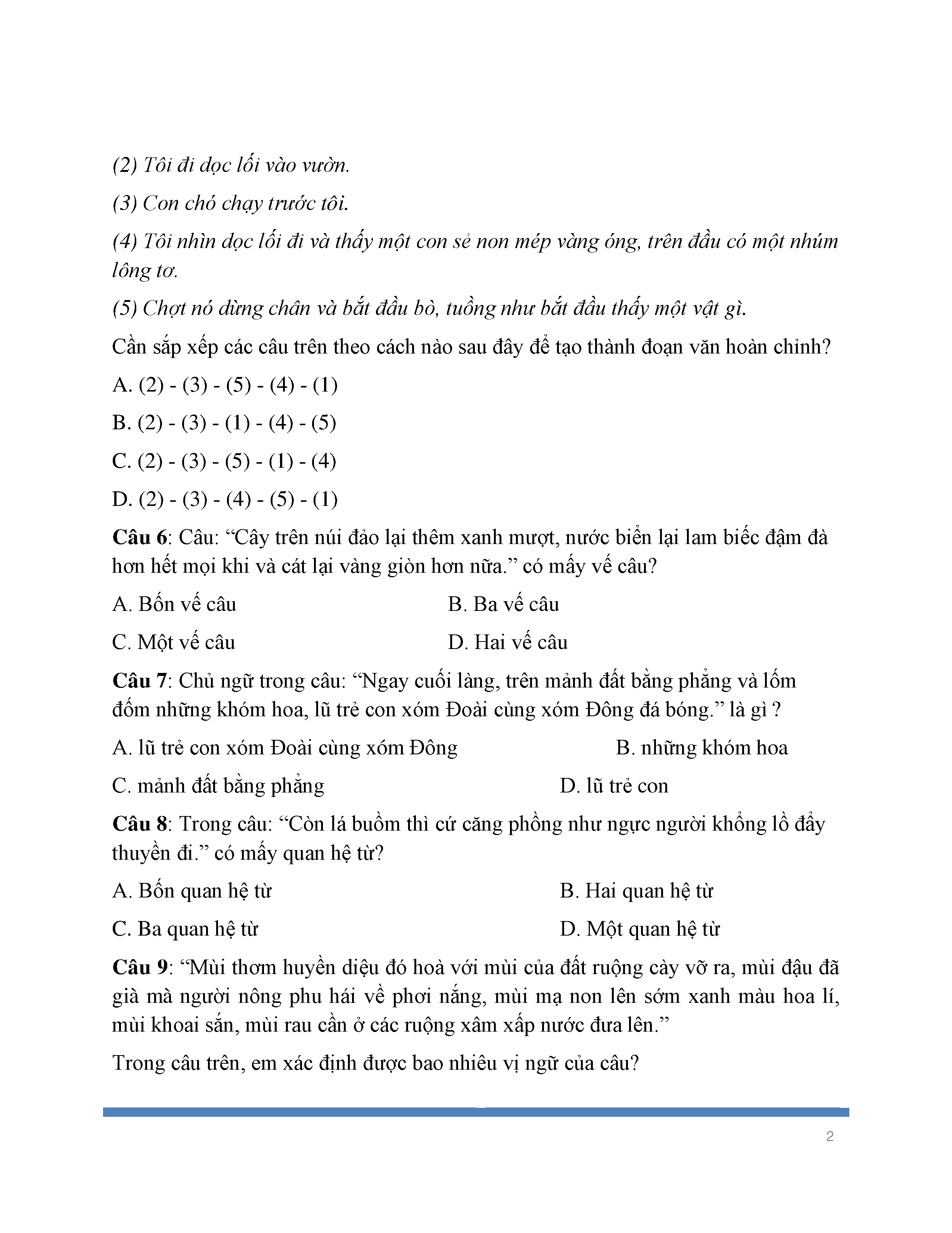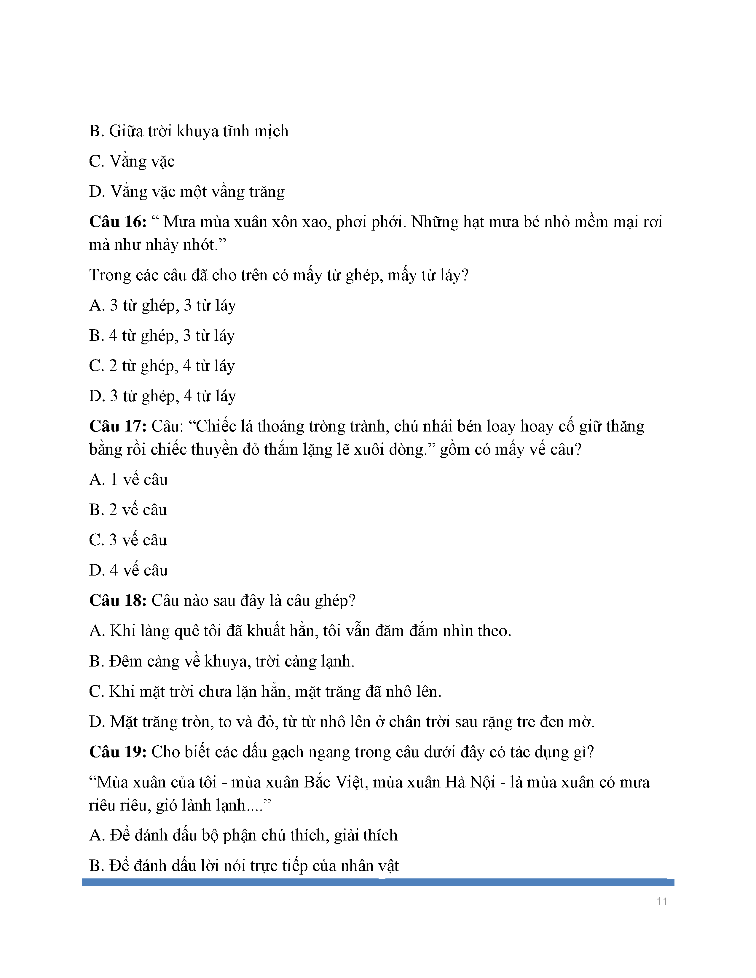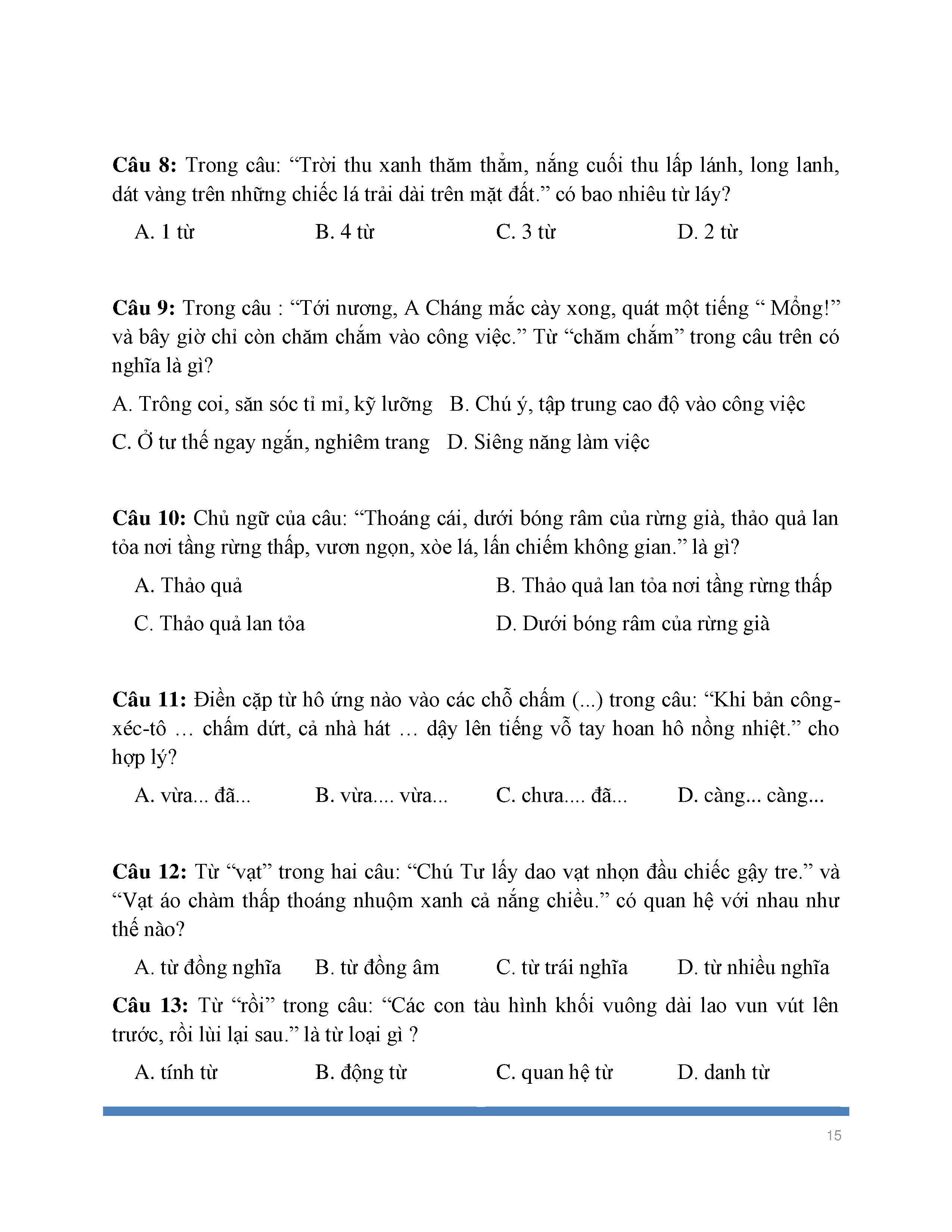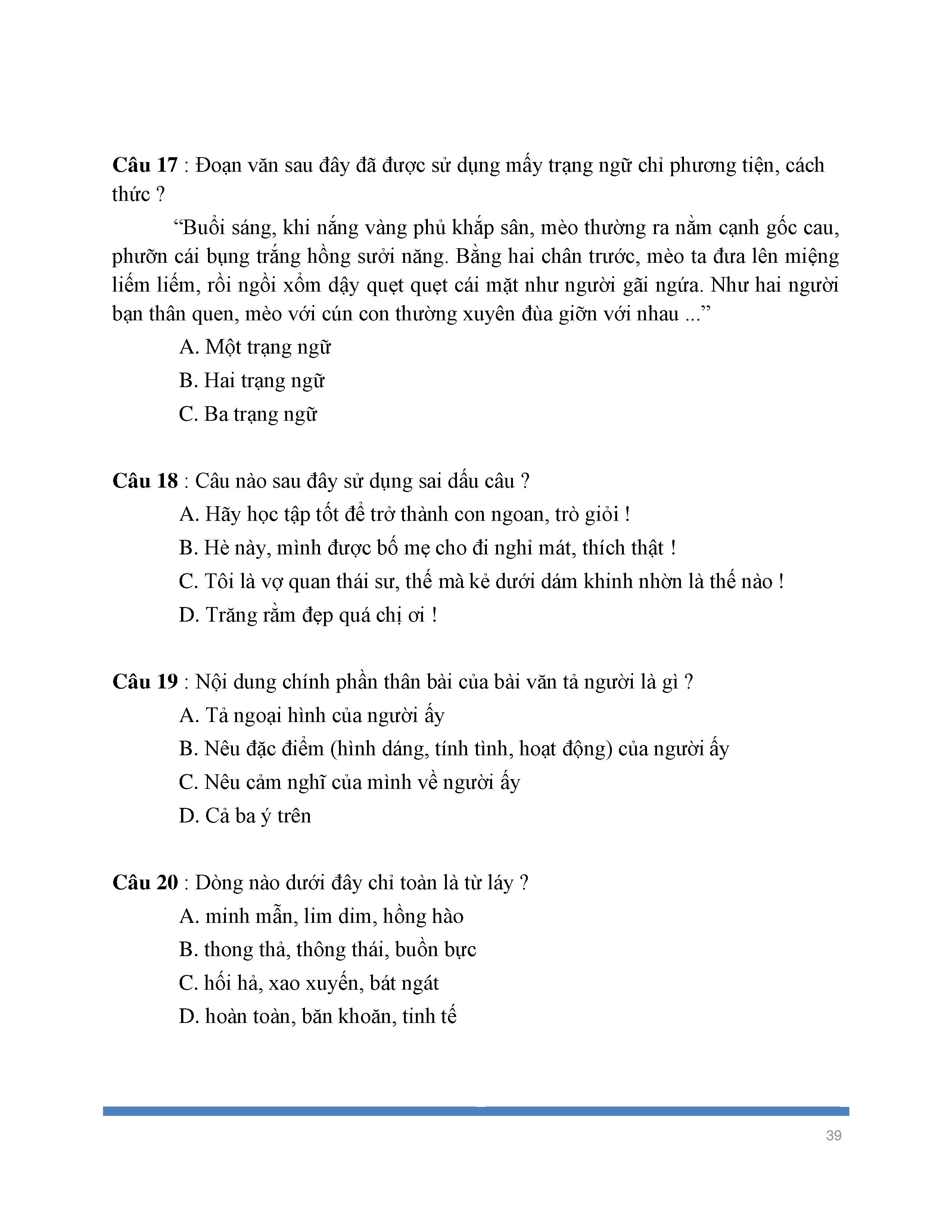 BỘ ĐỀ TRẮC NGHIỆM ÔN THI VÀO 6 MÔN TIẾNG VIỆT