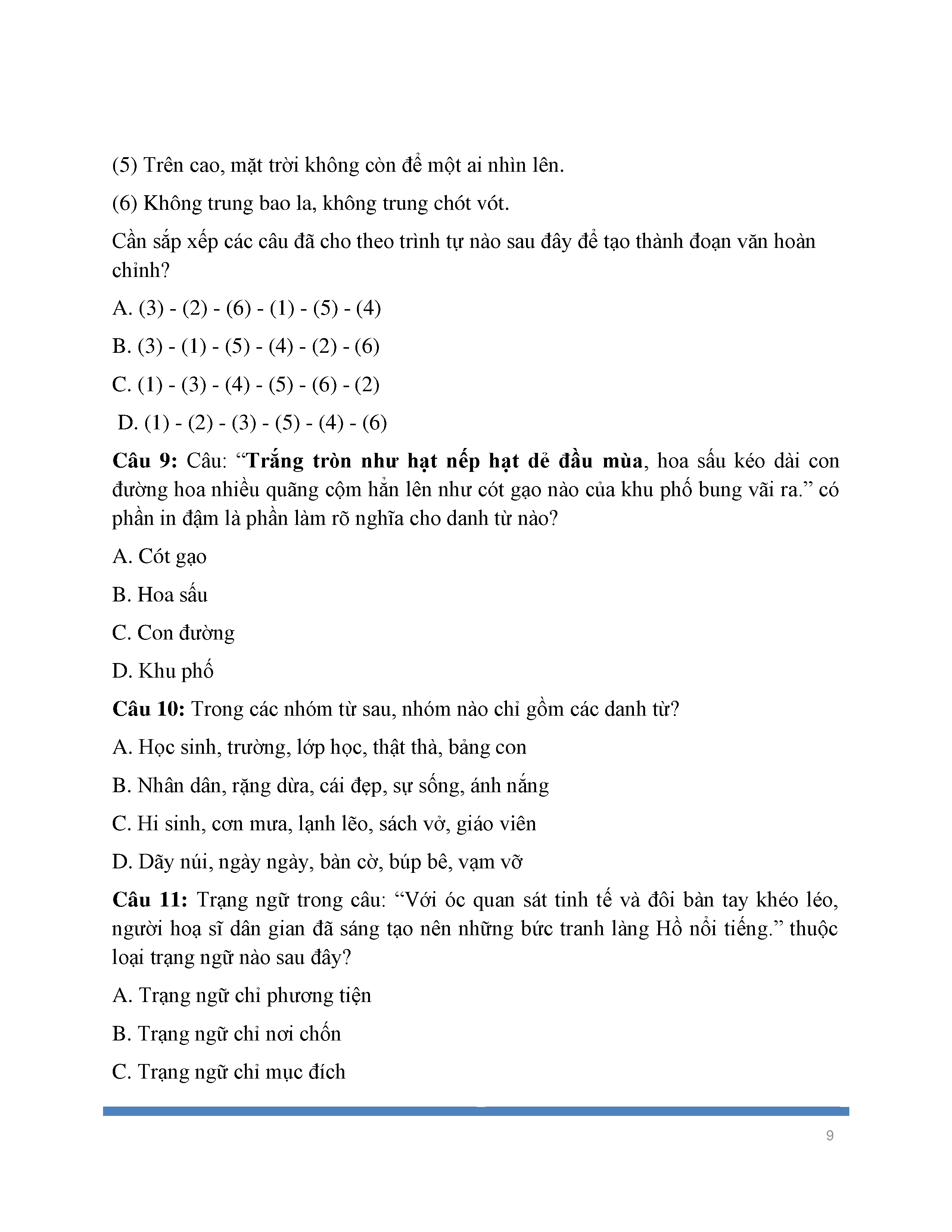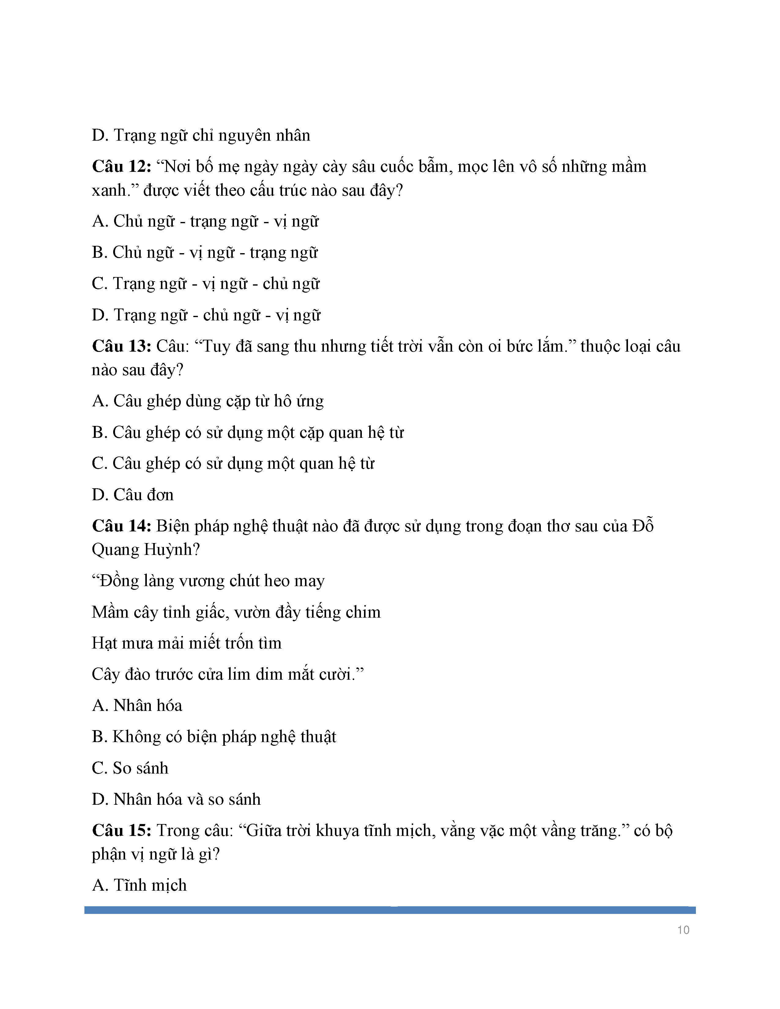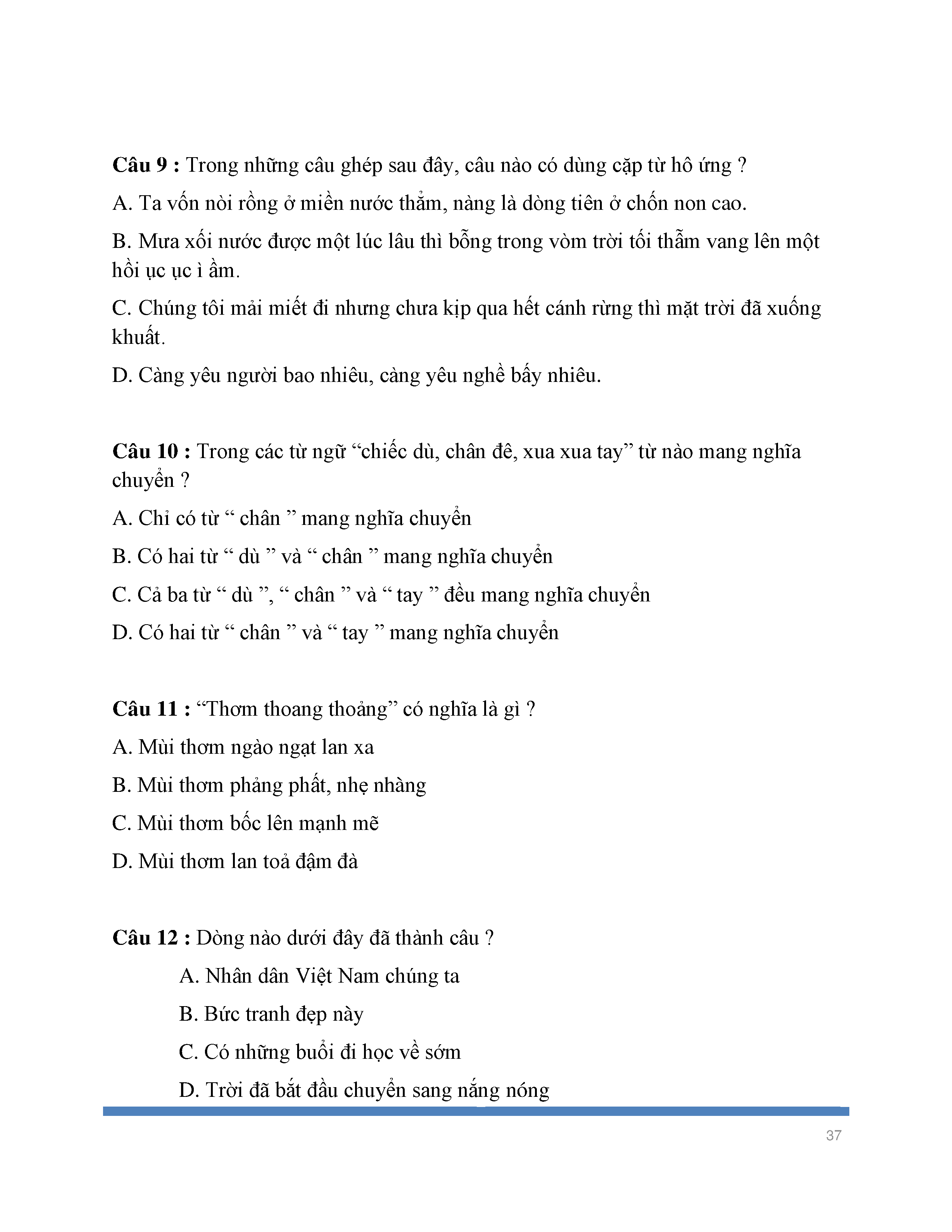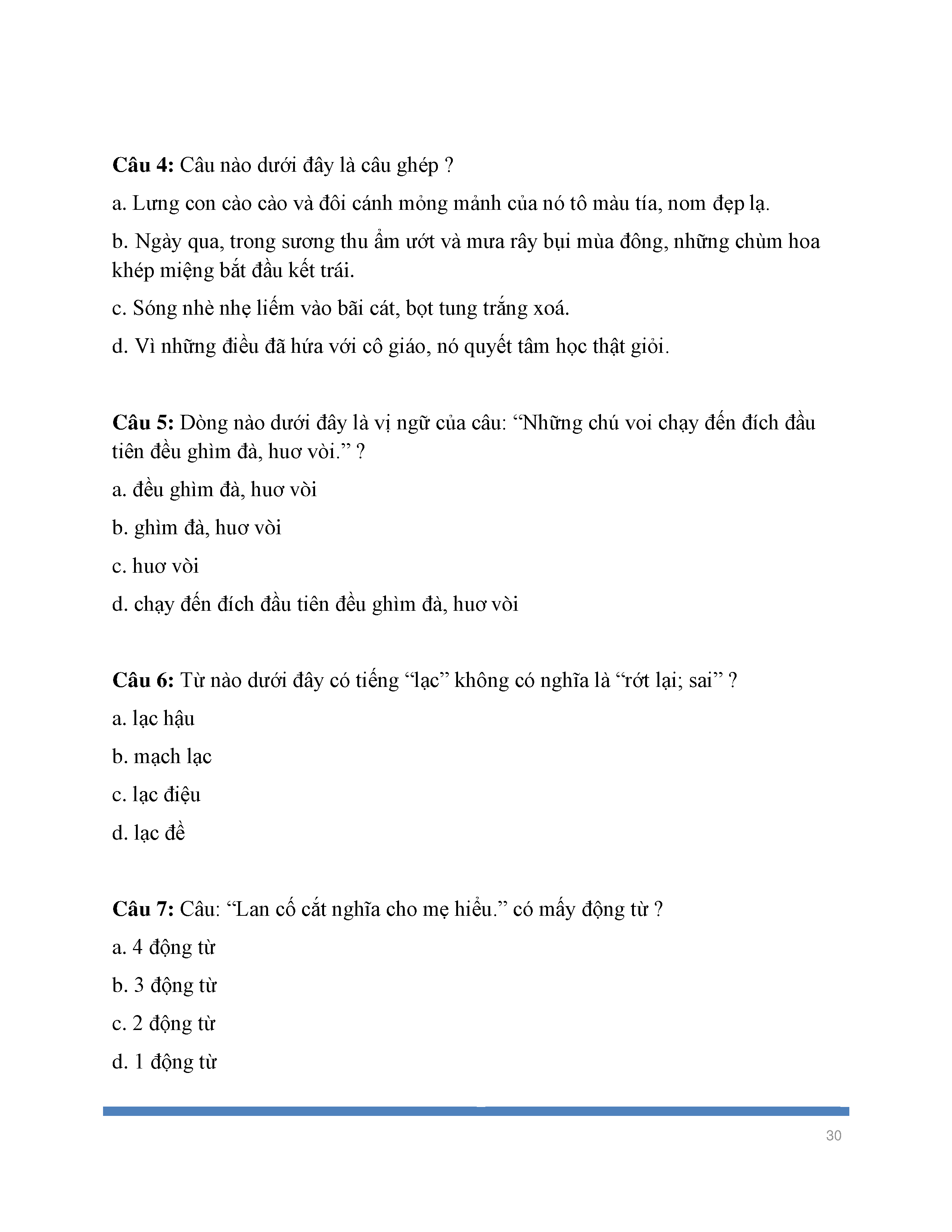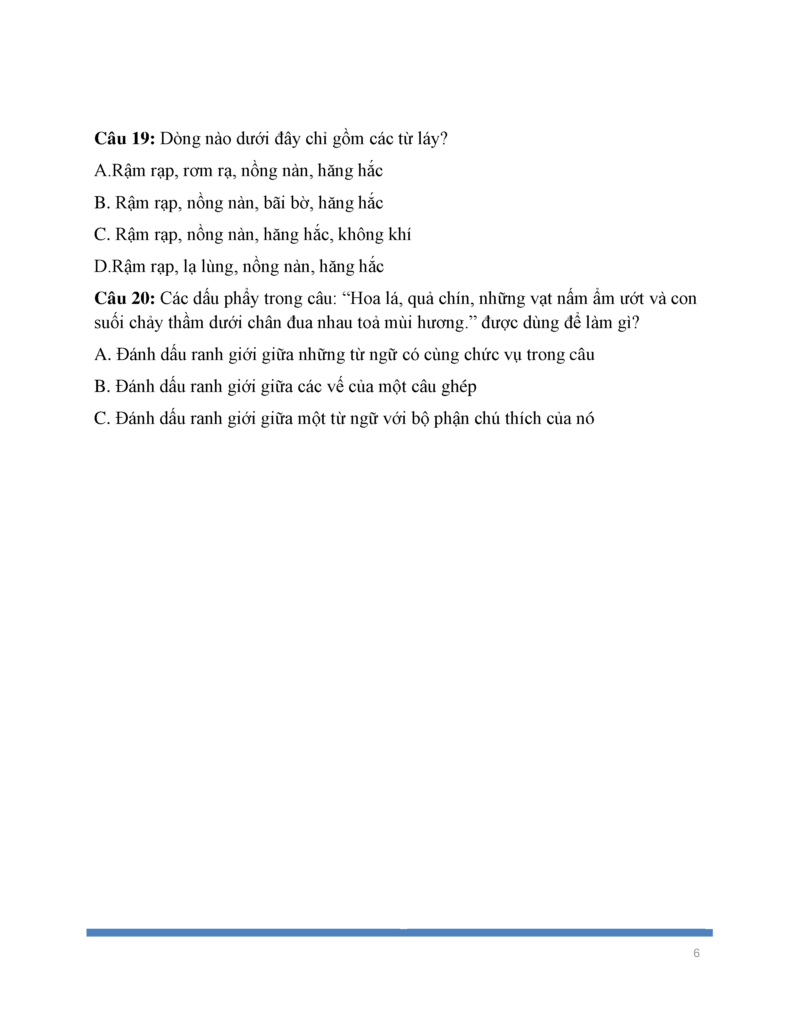 BỘ ĐỀ TRẮC NGHIỆM ÔN THI VÀO 6 MÔN TIẾNG VIỆT