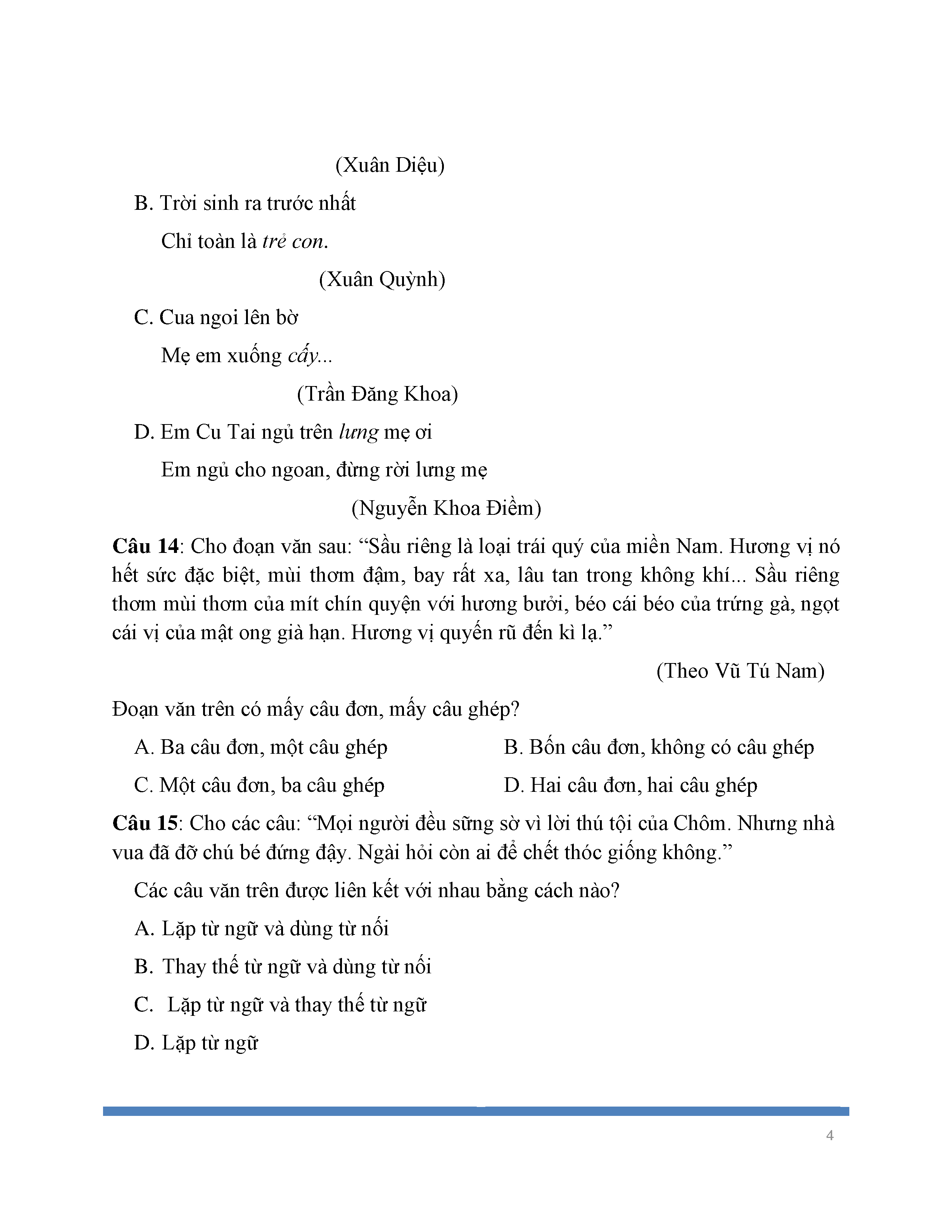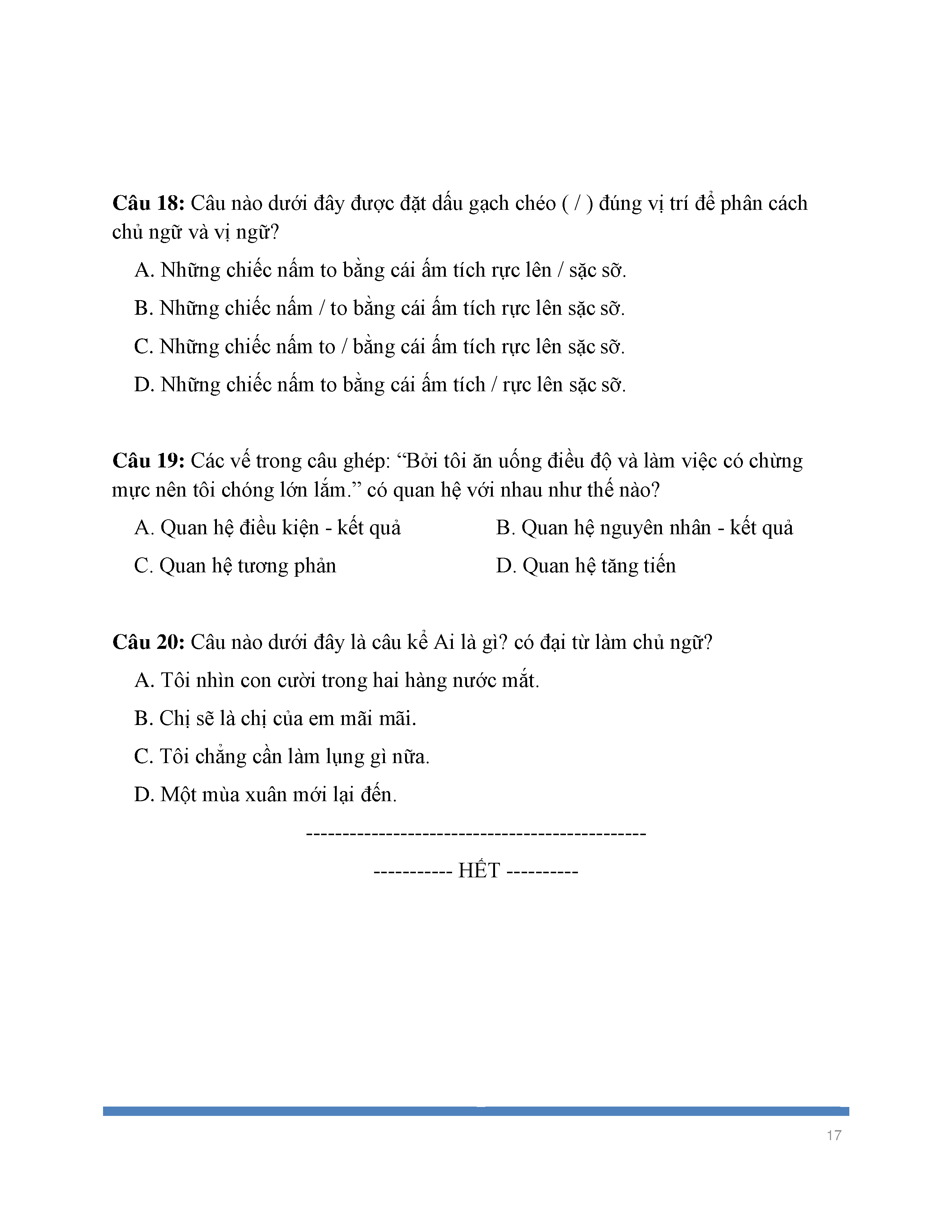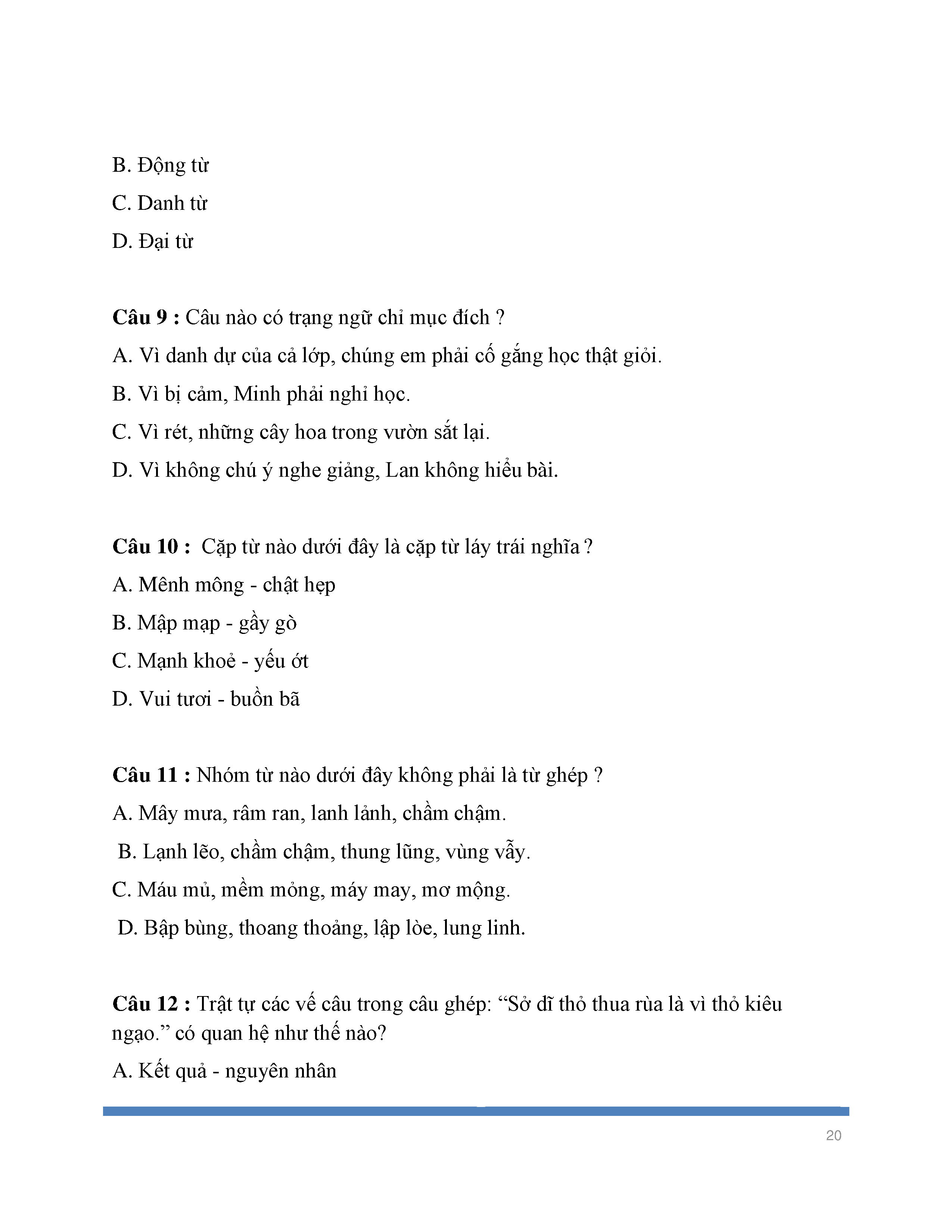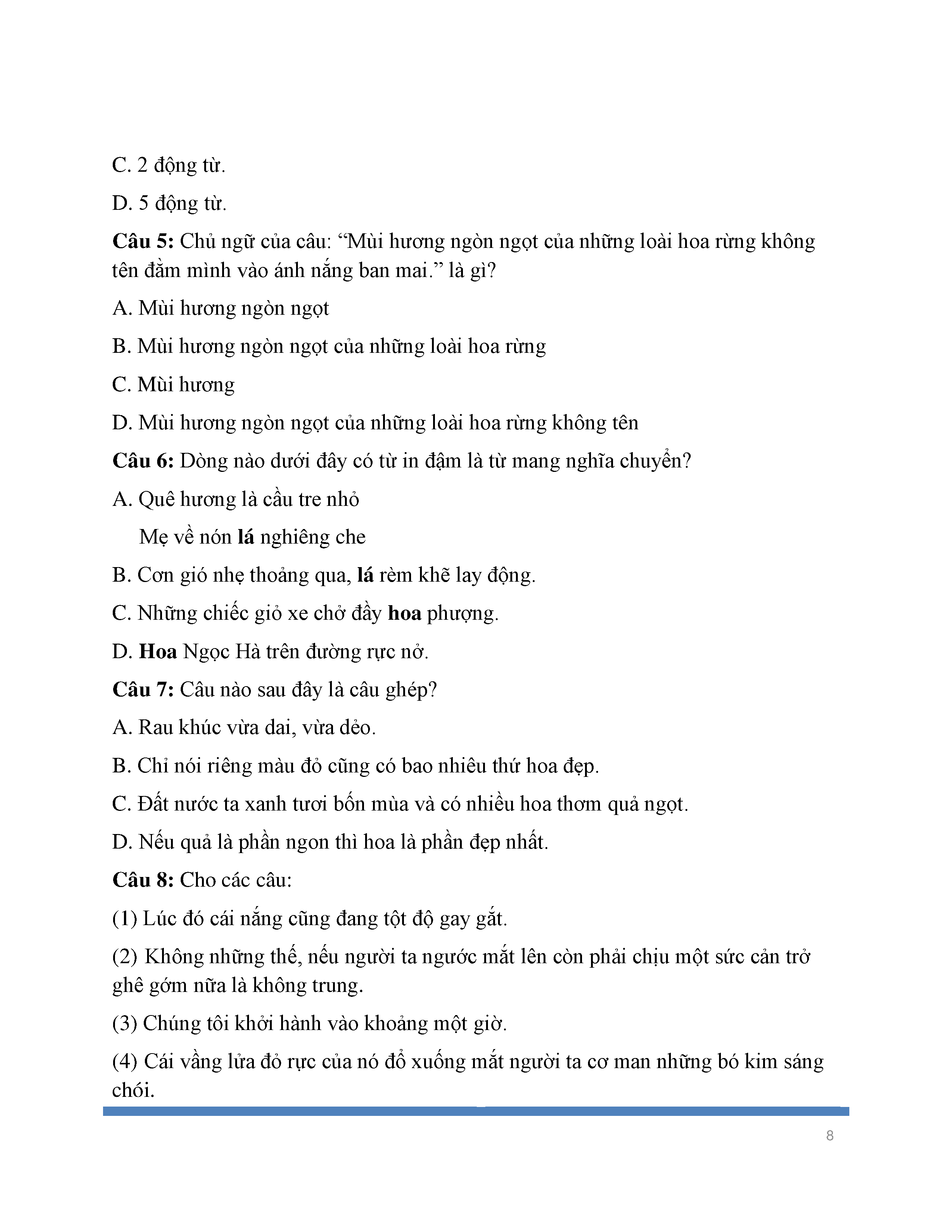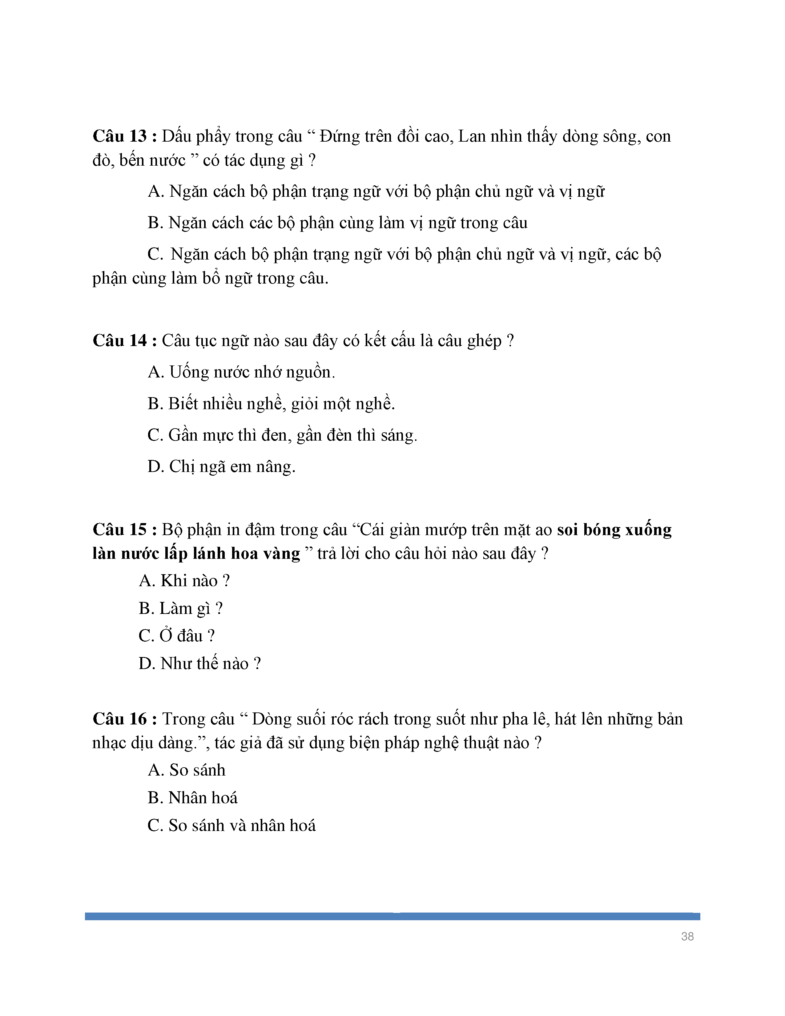BỘ ĐỀ TRẮC NGHIỆM ÔN THI VÀO 6 MÔN TIẾNG VIỆT