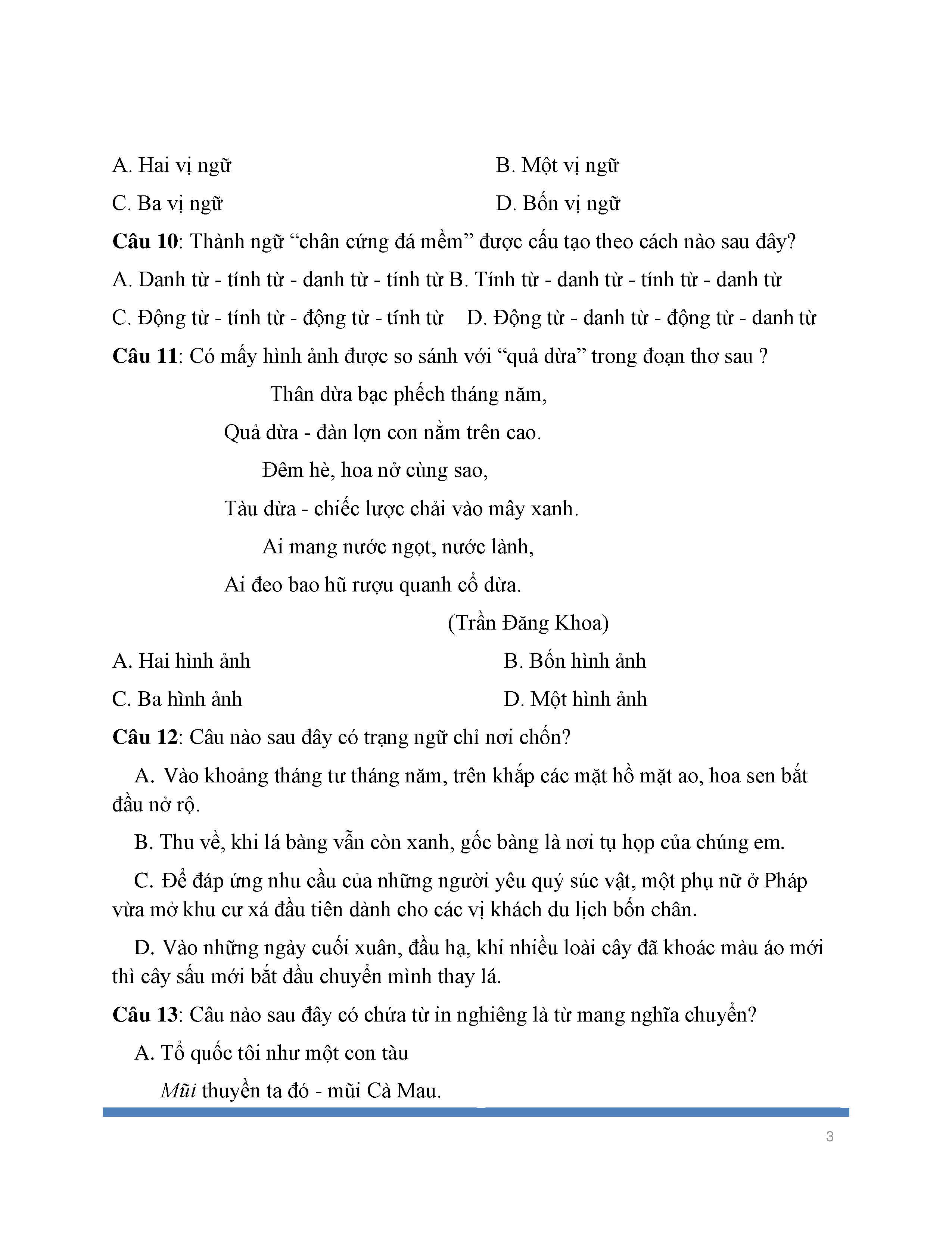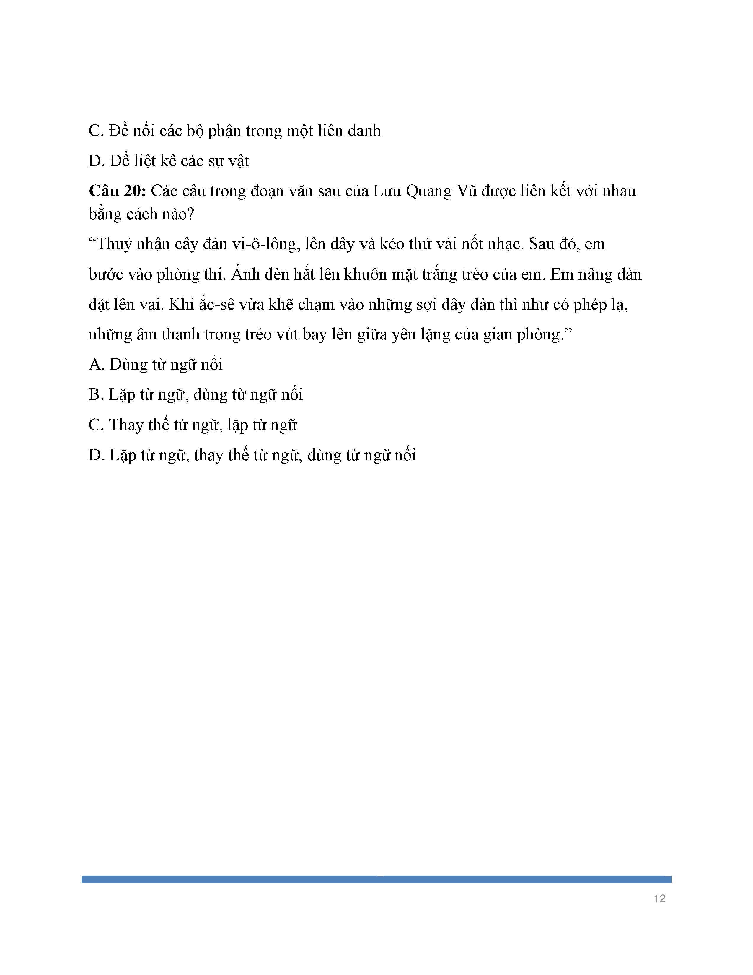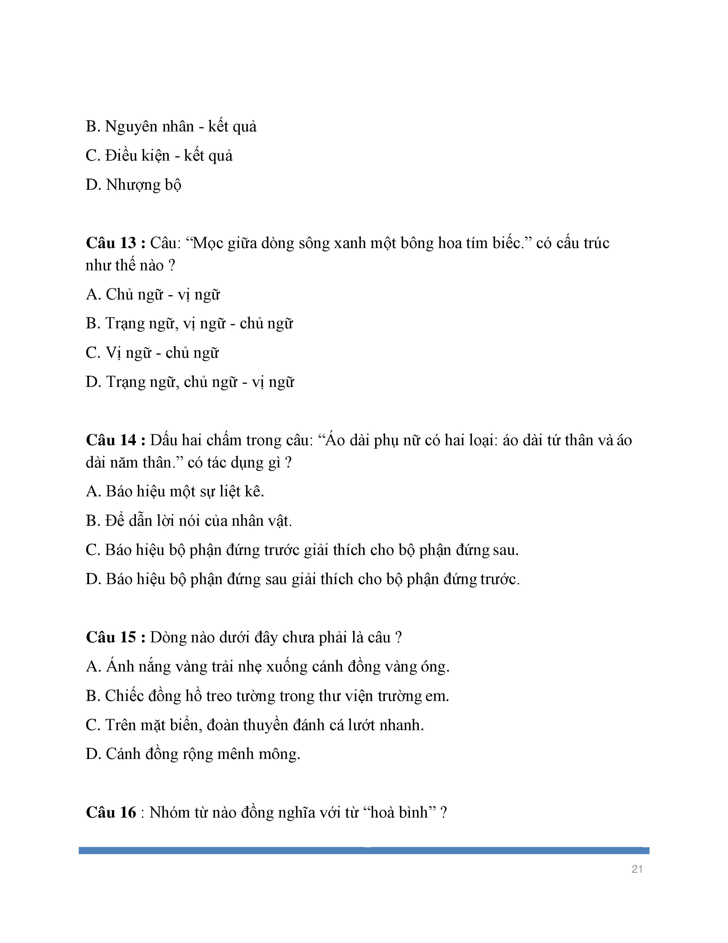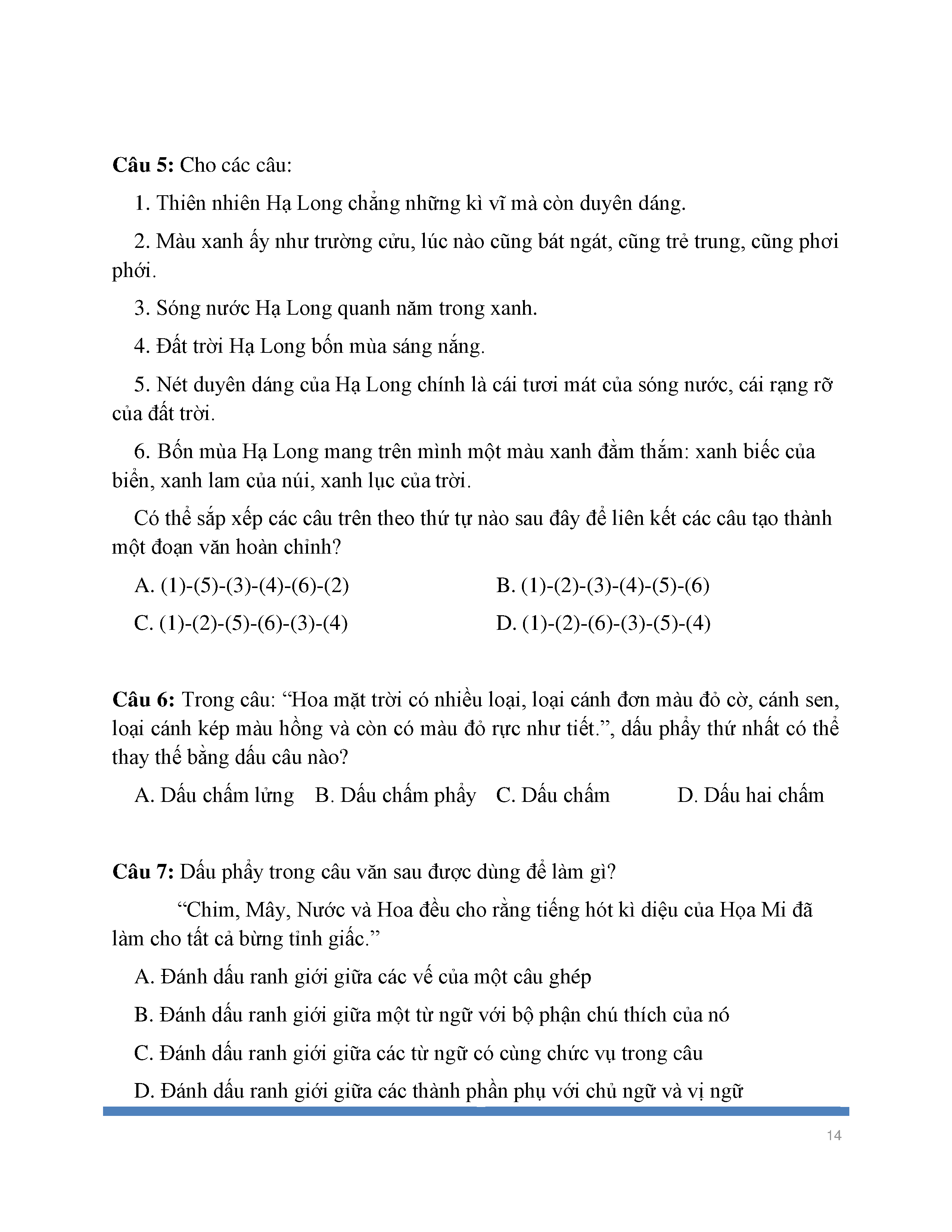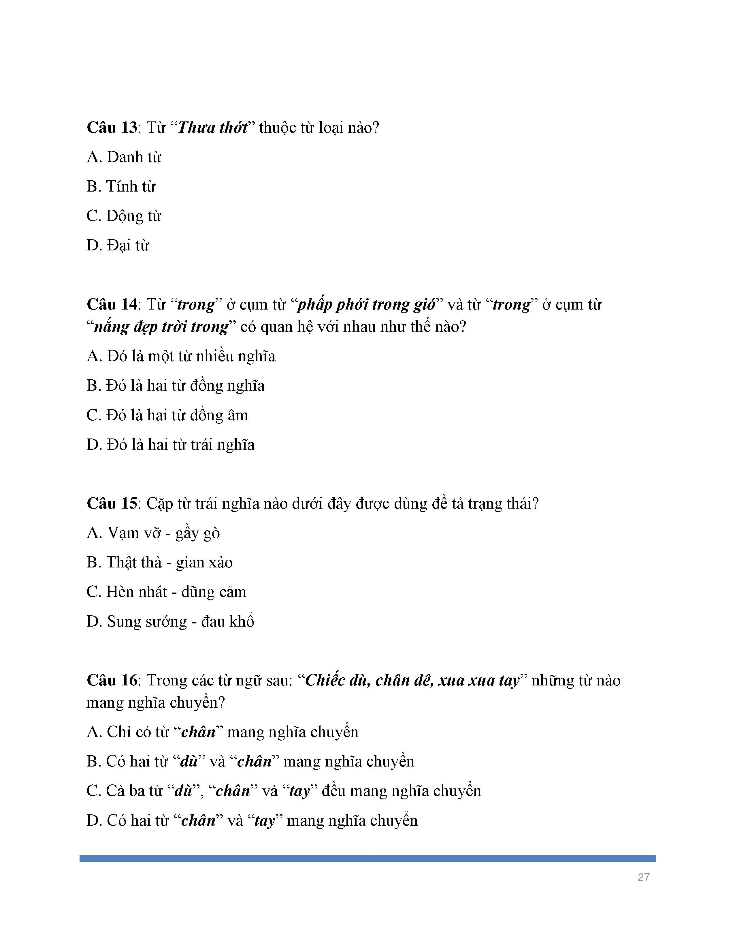 BỘ ĐỀ TRẮC NGHIỆM ÔN THI VÀO 6 MÔN TIẾNG VIỆT