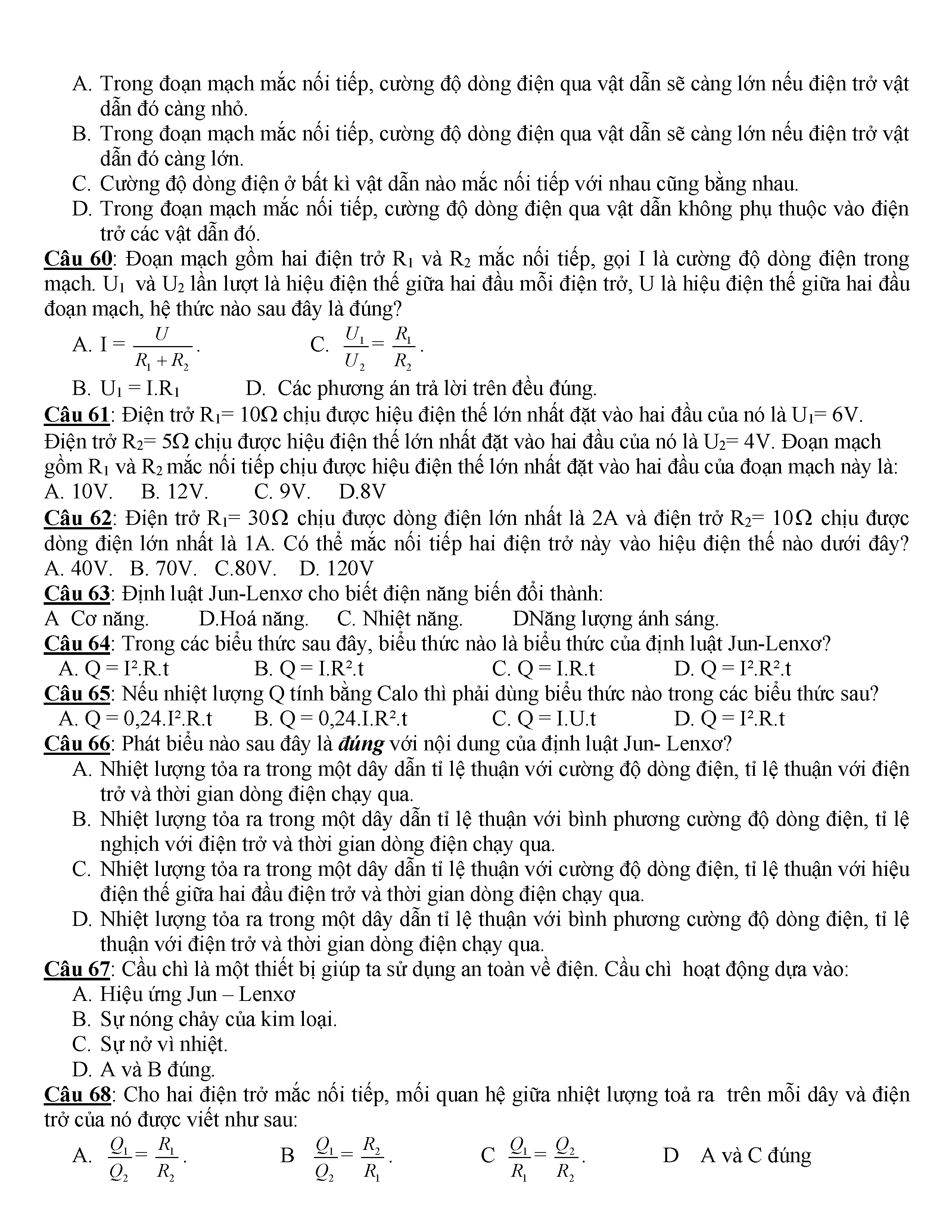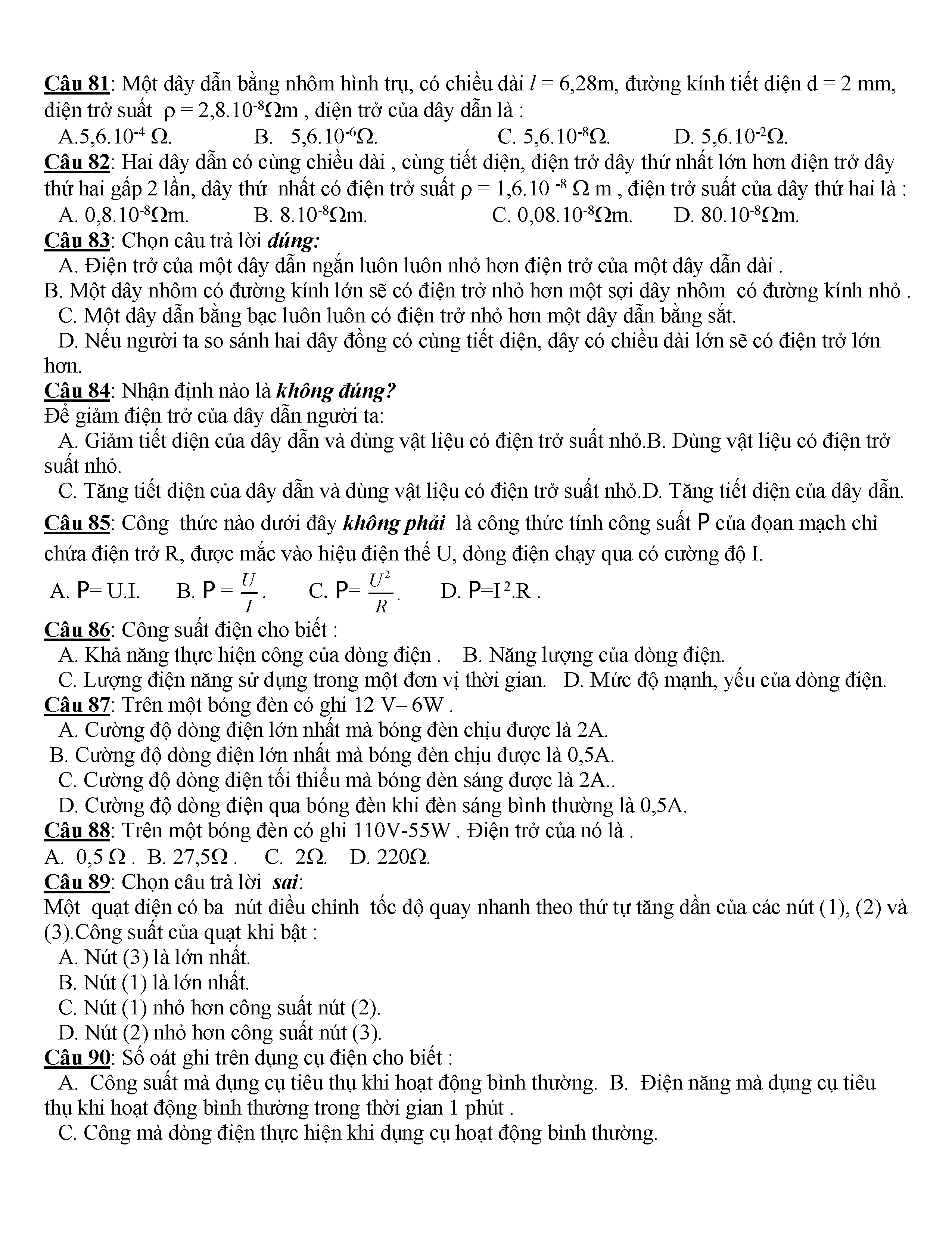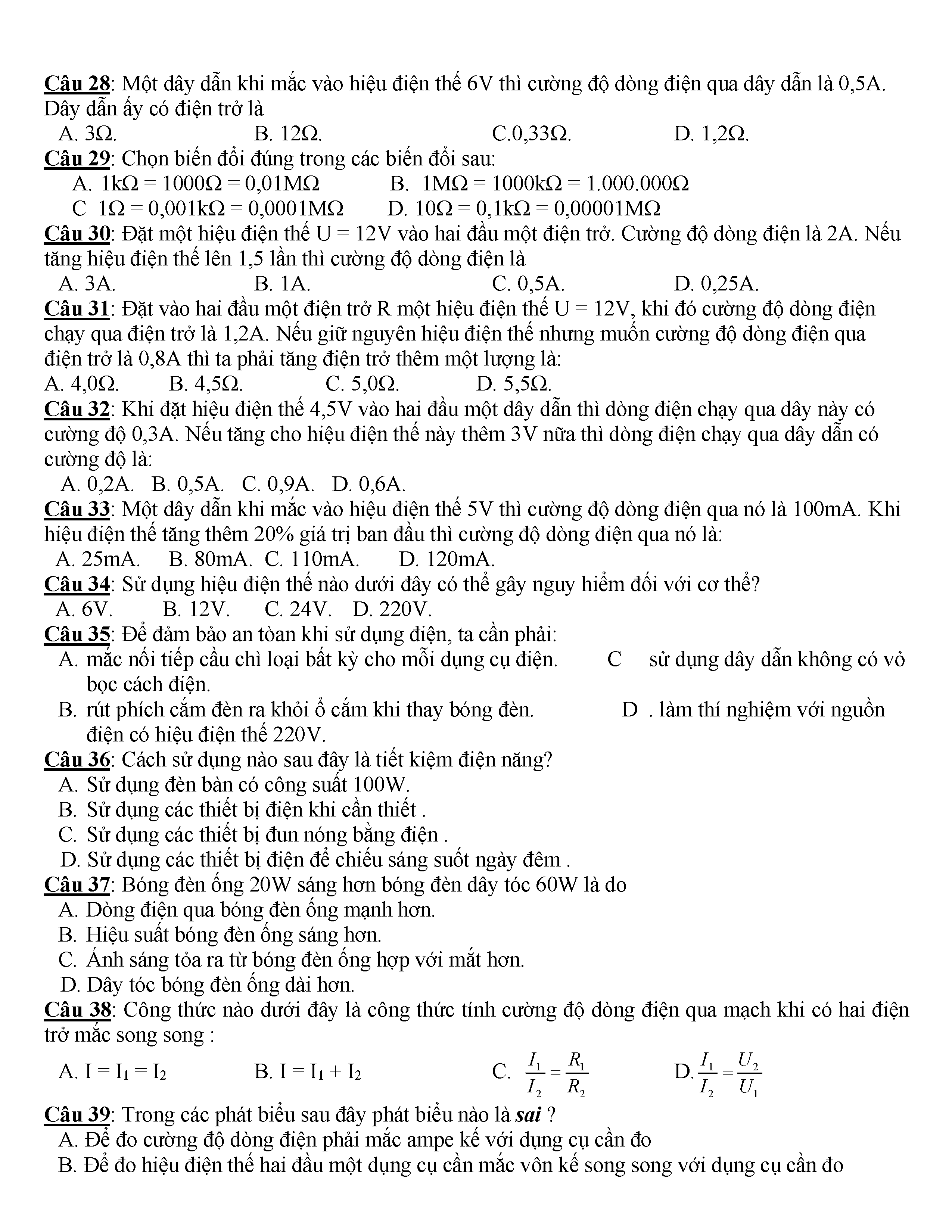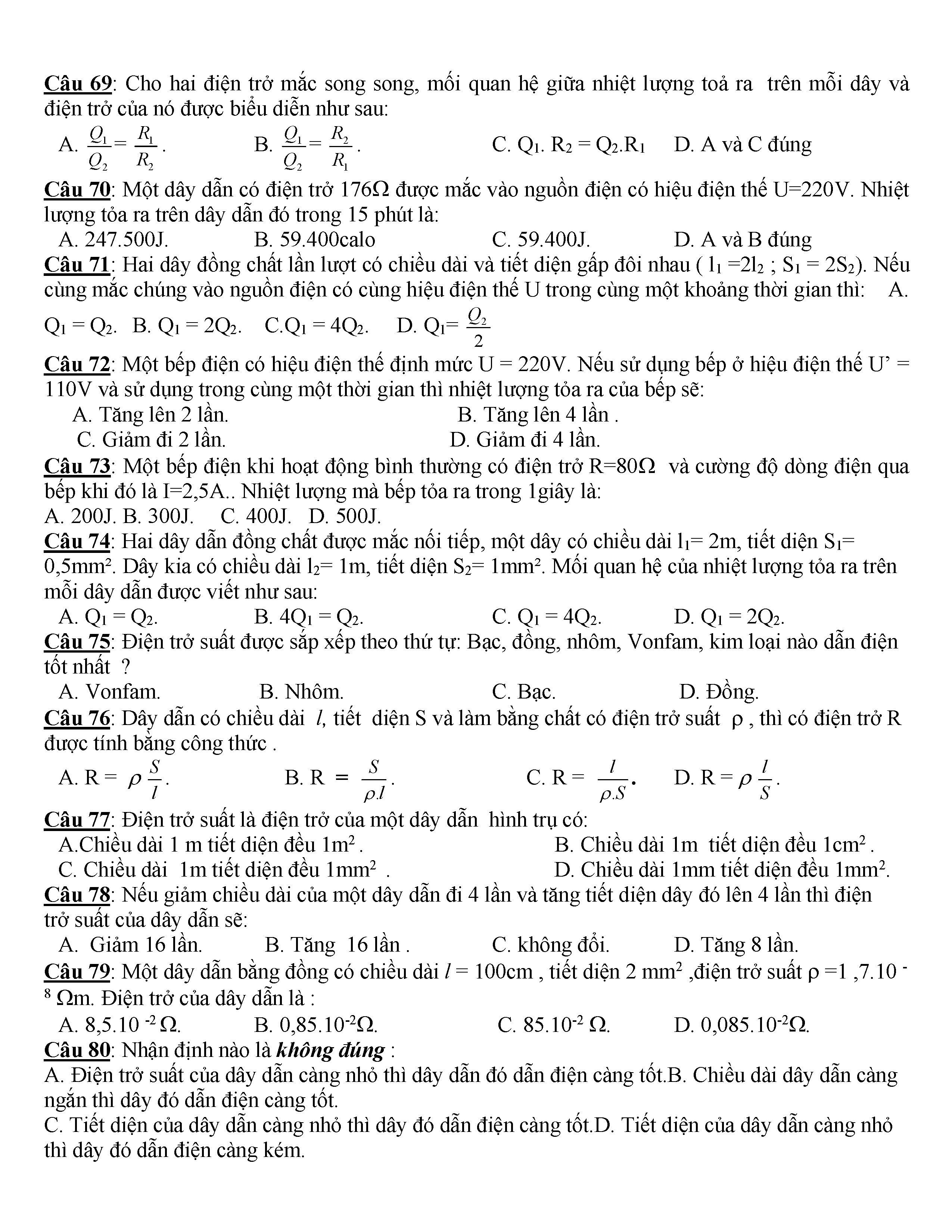 400 CÂU HỎI TRẮC NGHIỆM VẬT LÍ 9