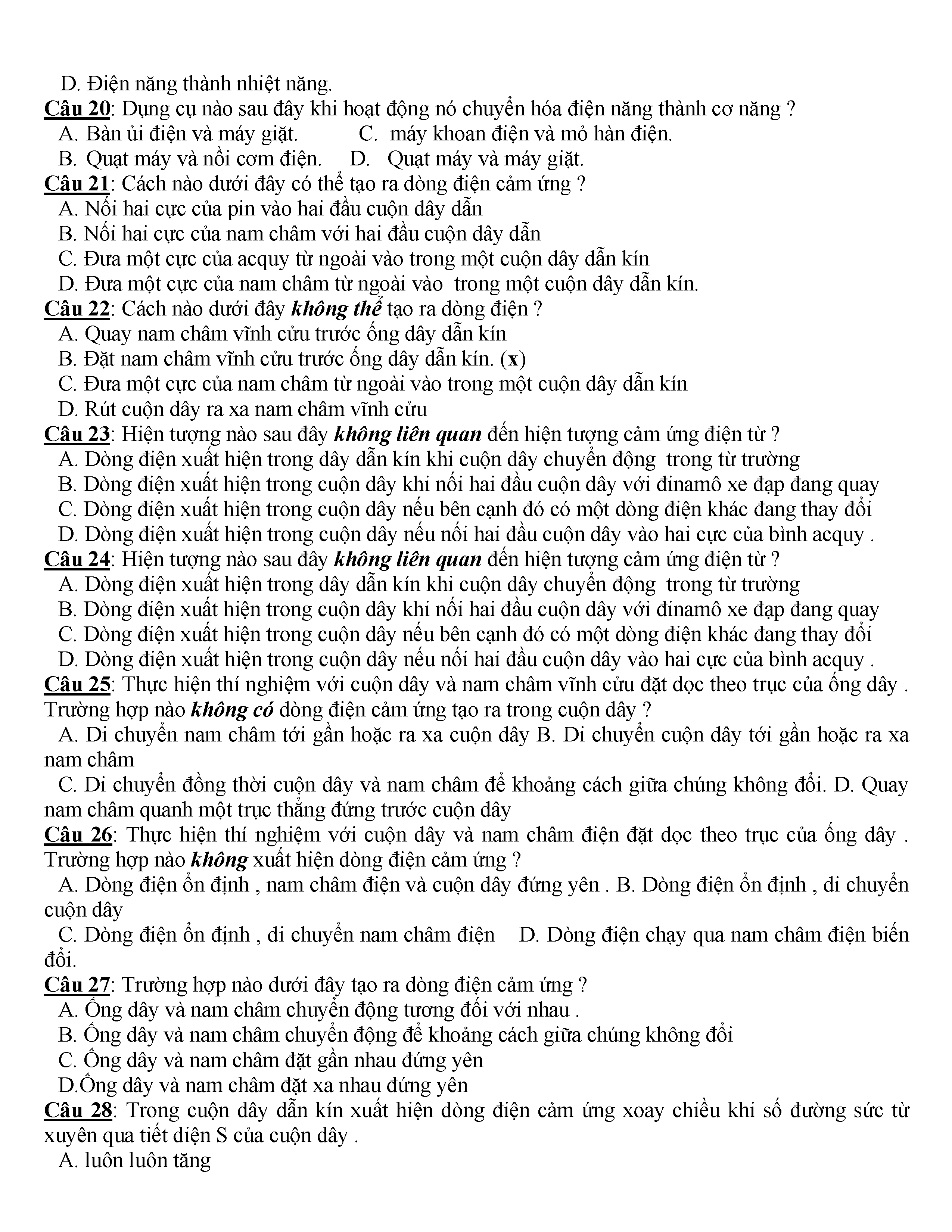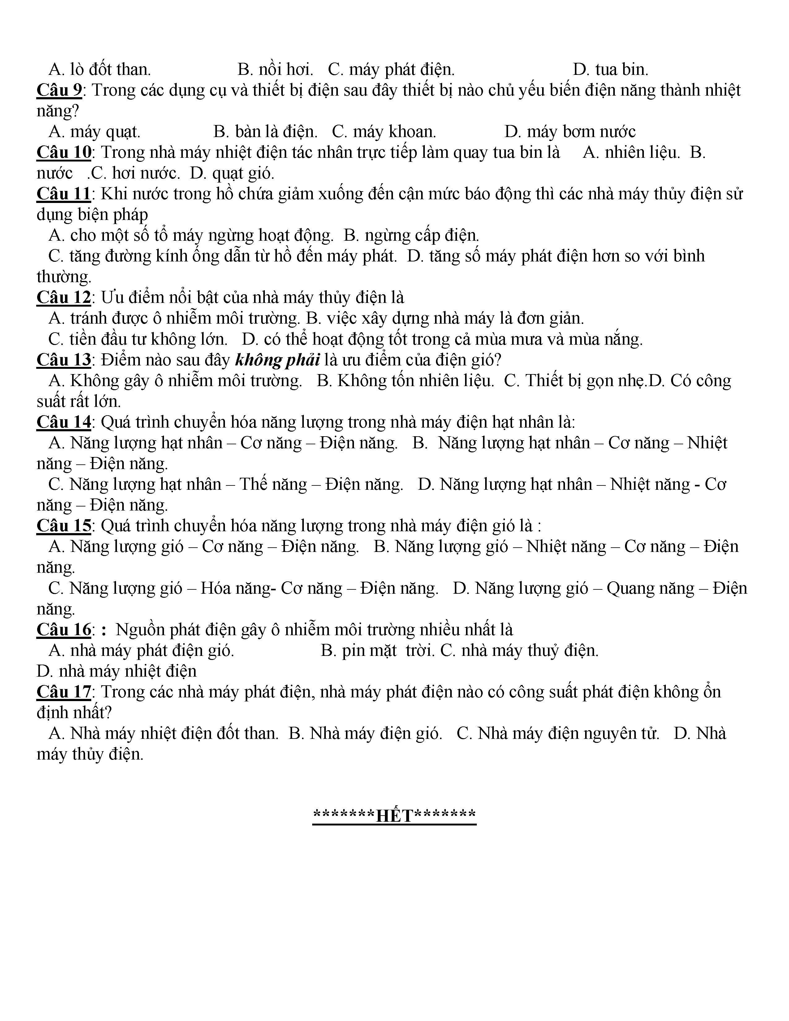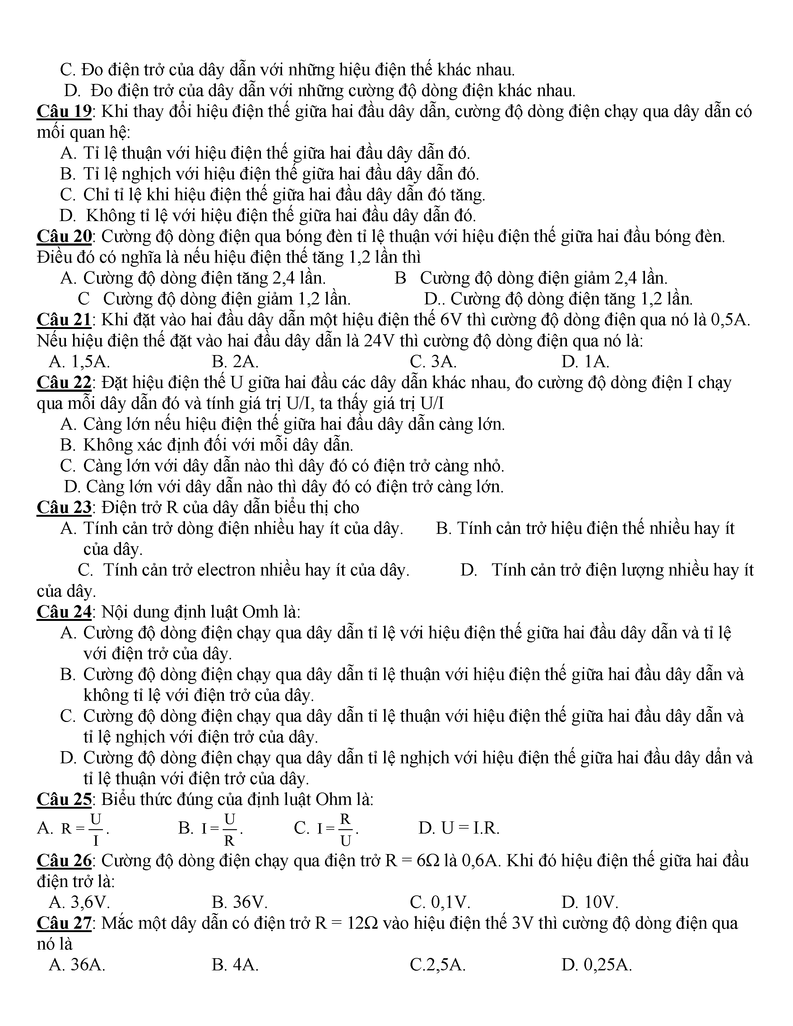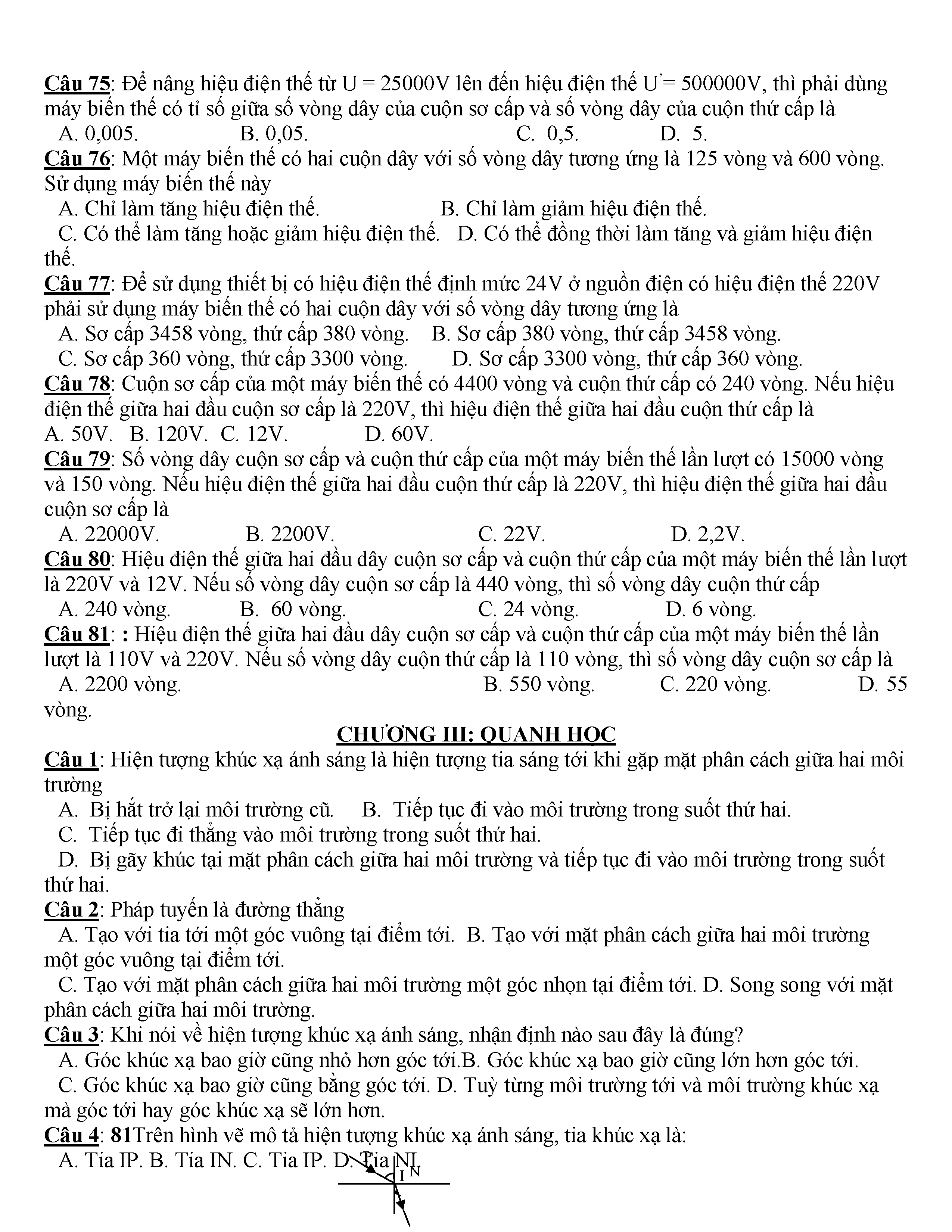 400 CÂU HỎI TRẮC NGHIỆM VẬT LÍ 9