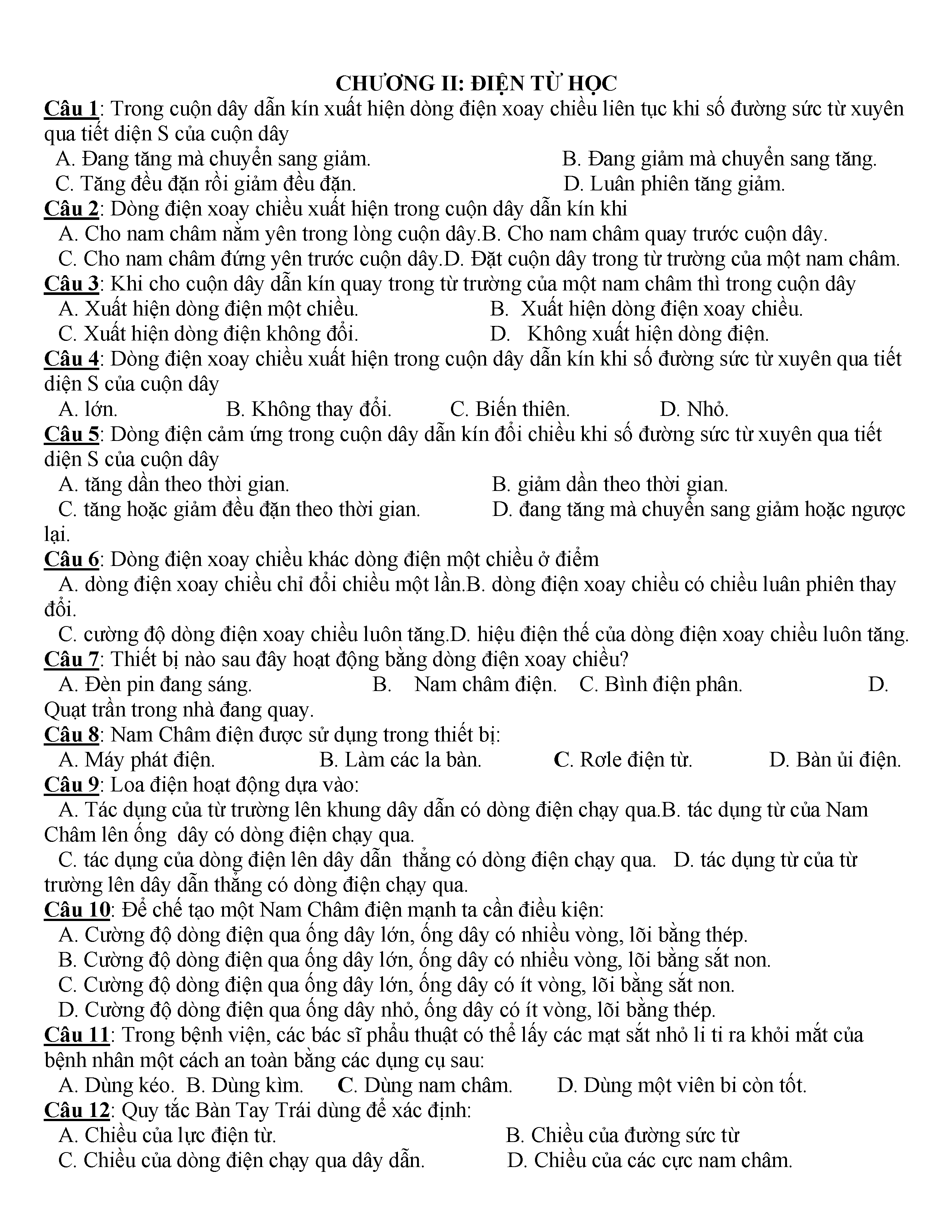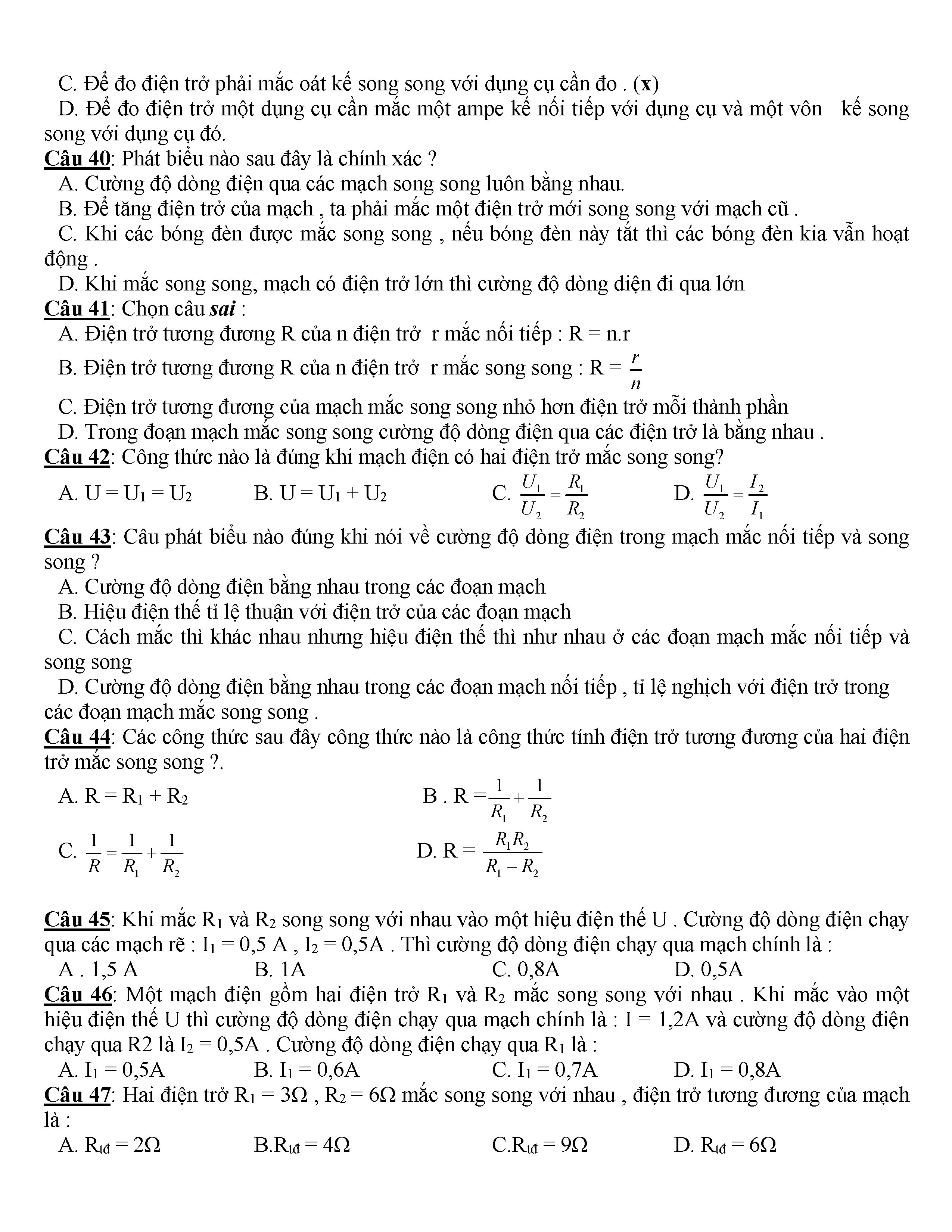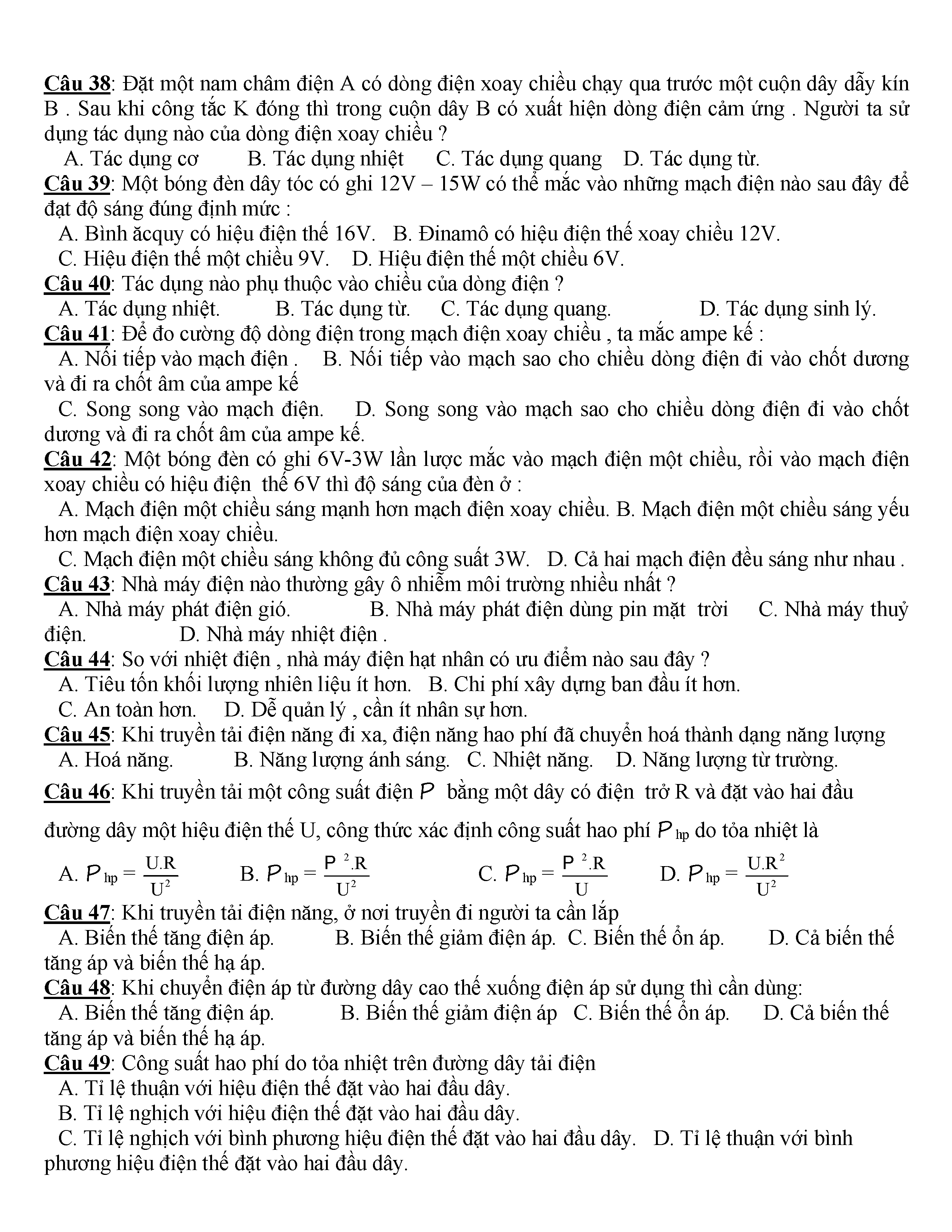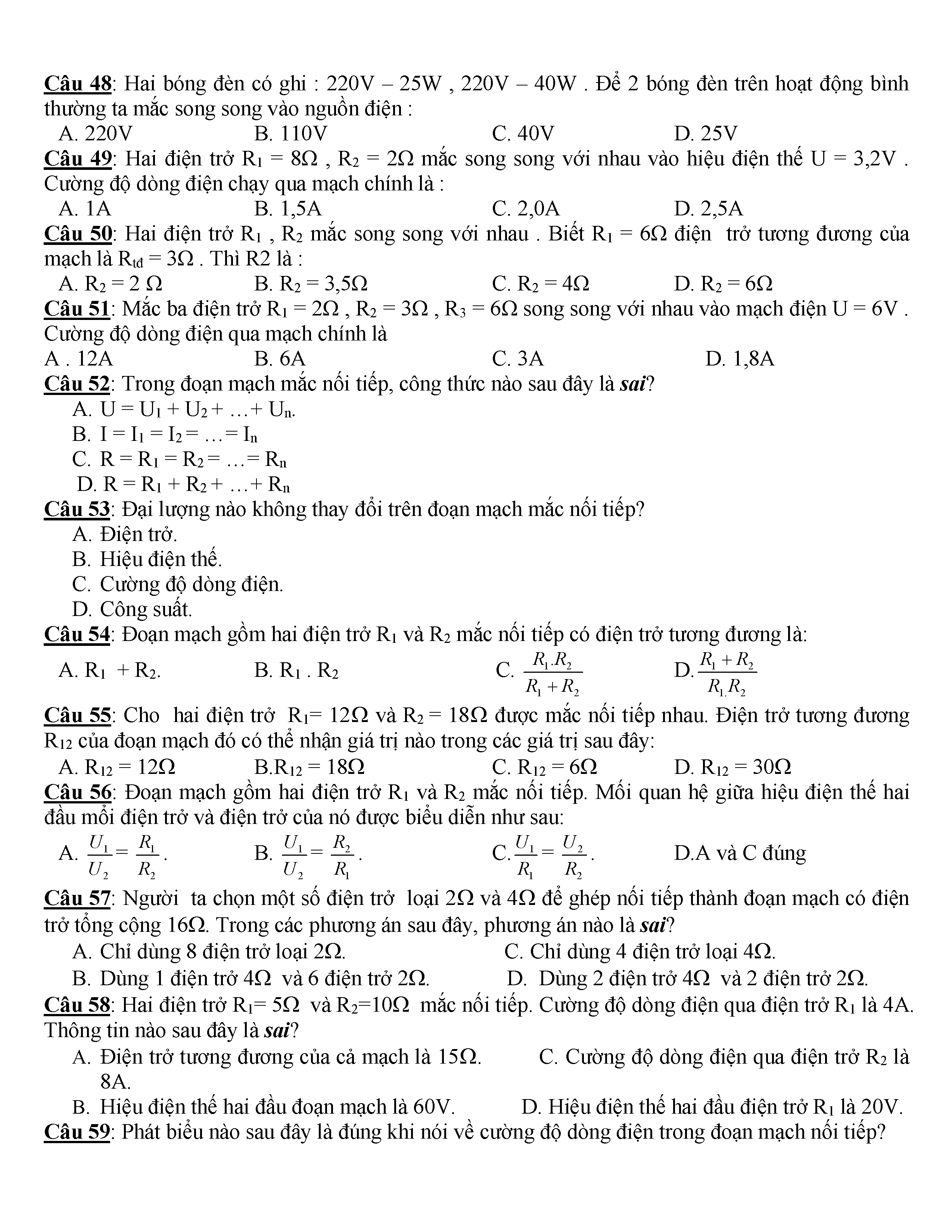 400 CÂU HỎI TRẮC NGHIỆM VẬT LÍ 9