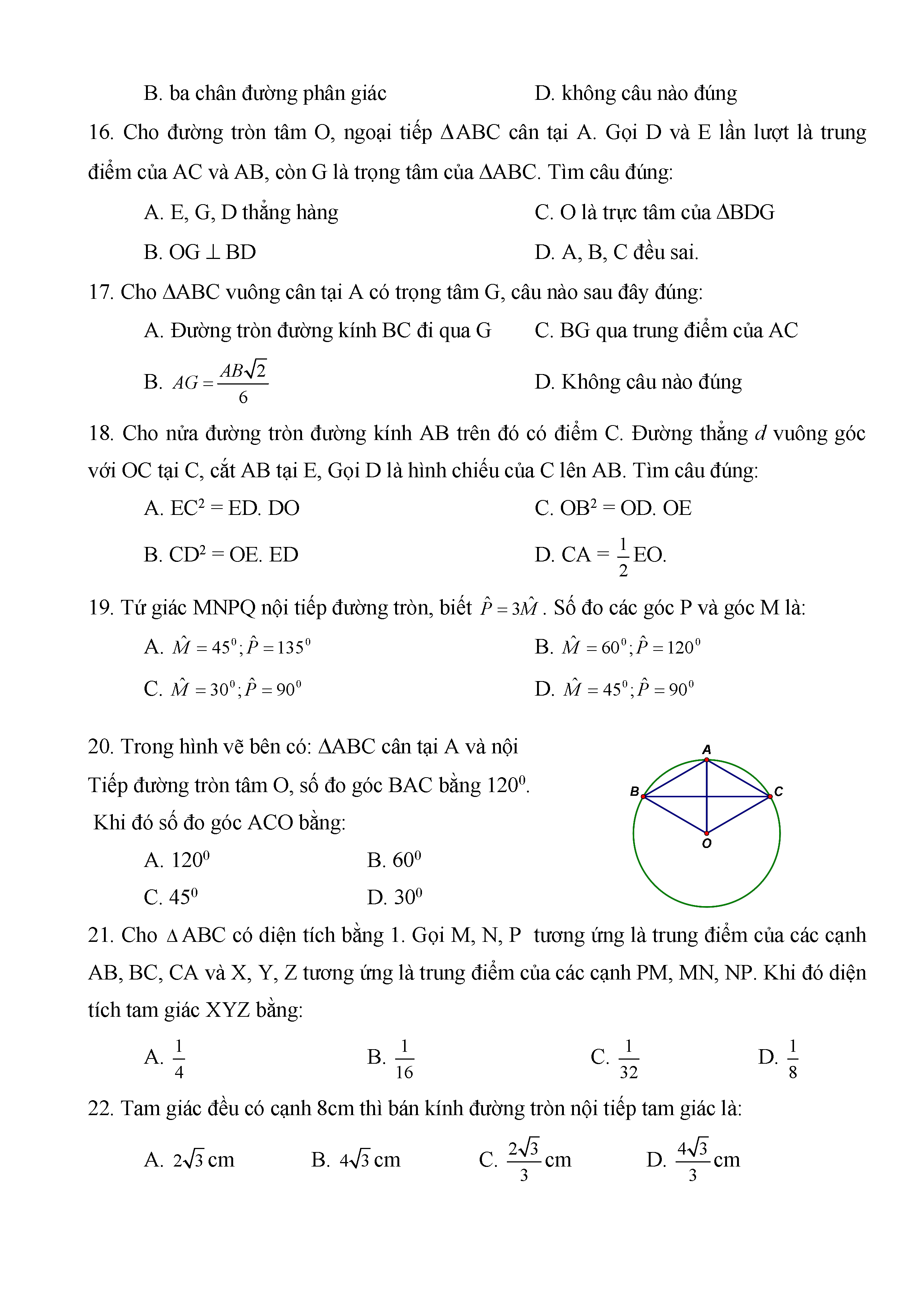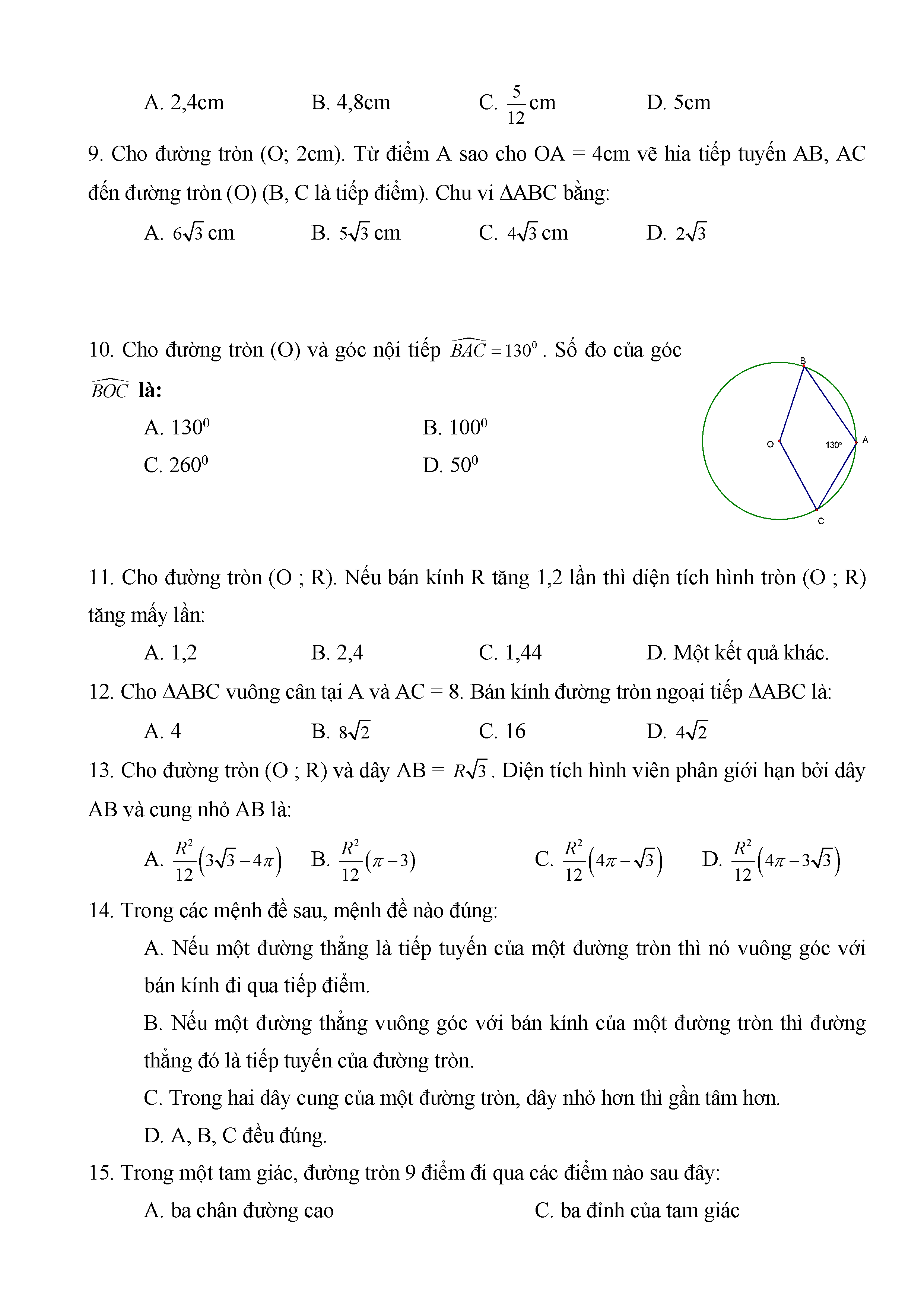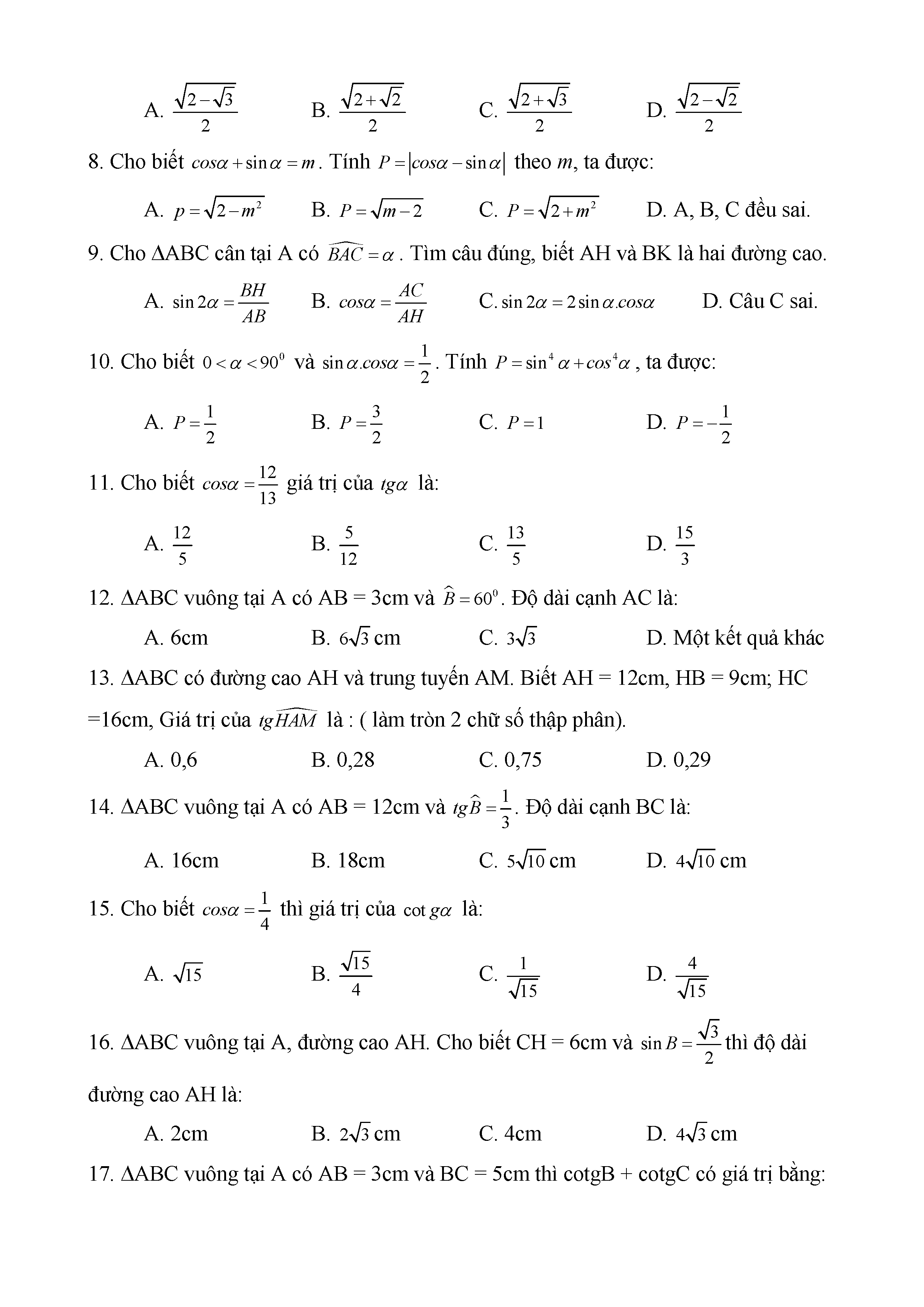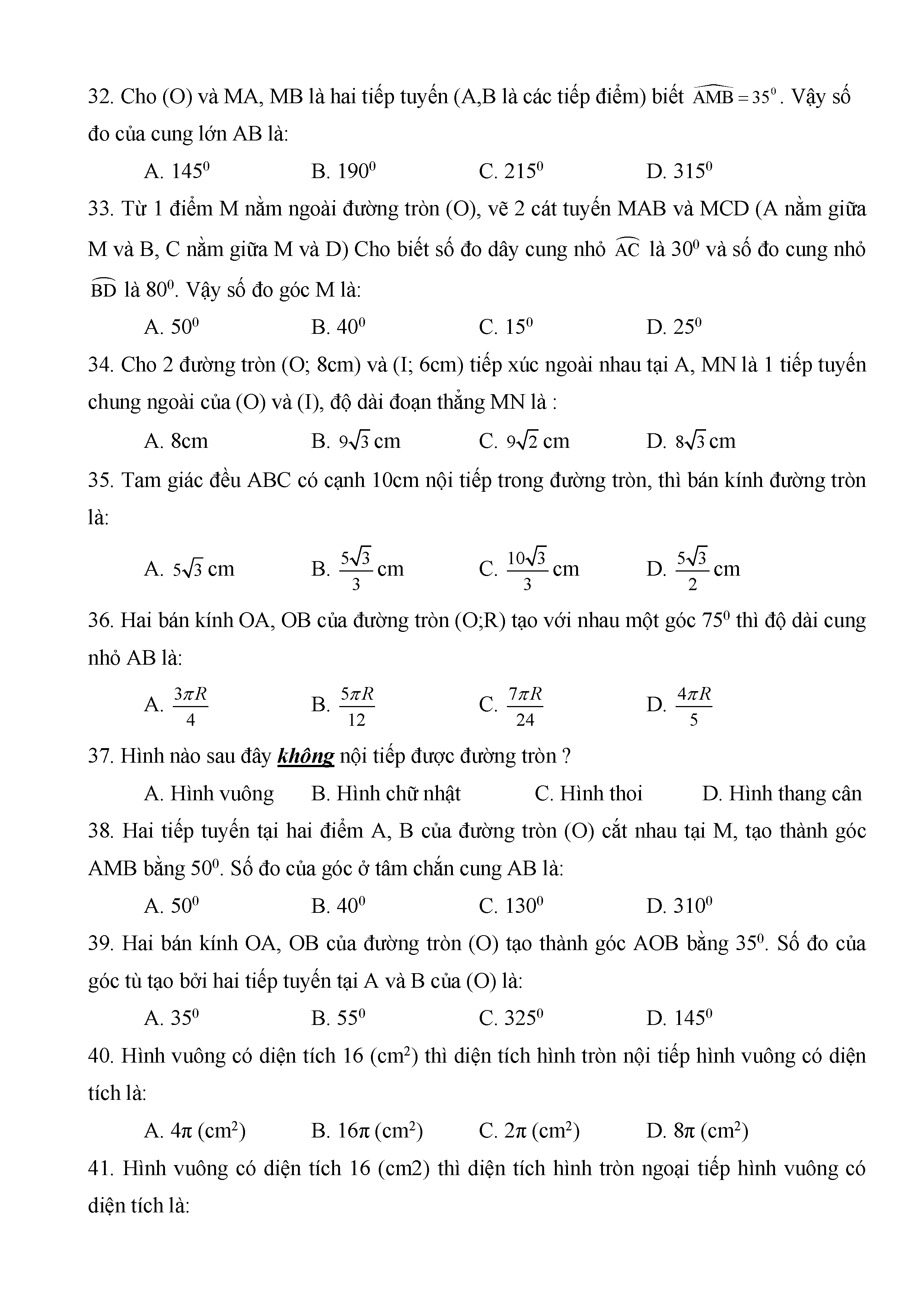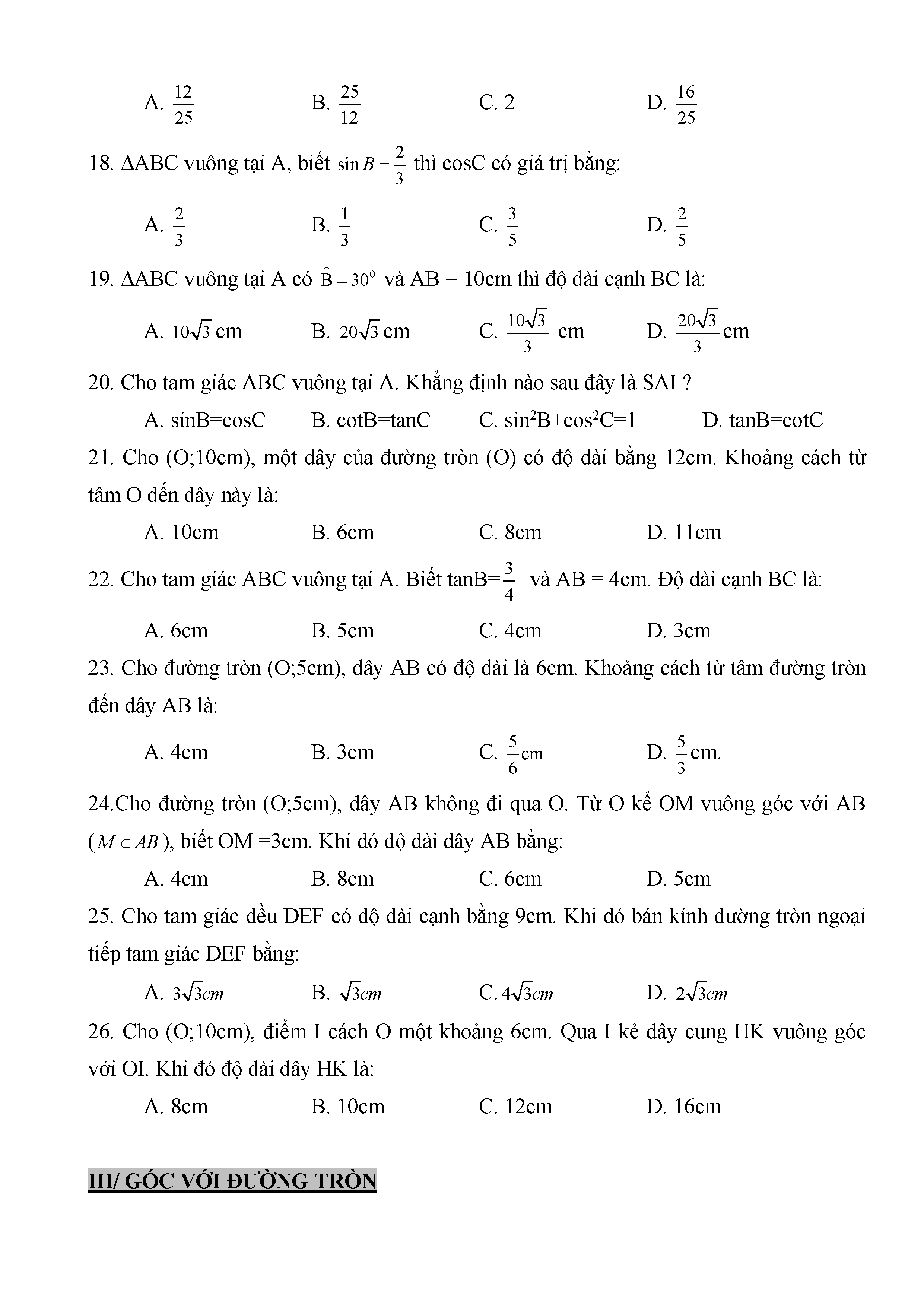 BÀI TẬP TRẮC NGHIỆM TOÁN 9