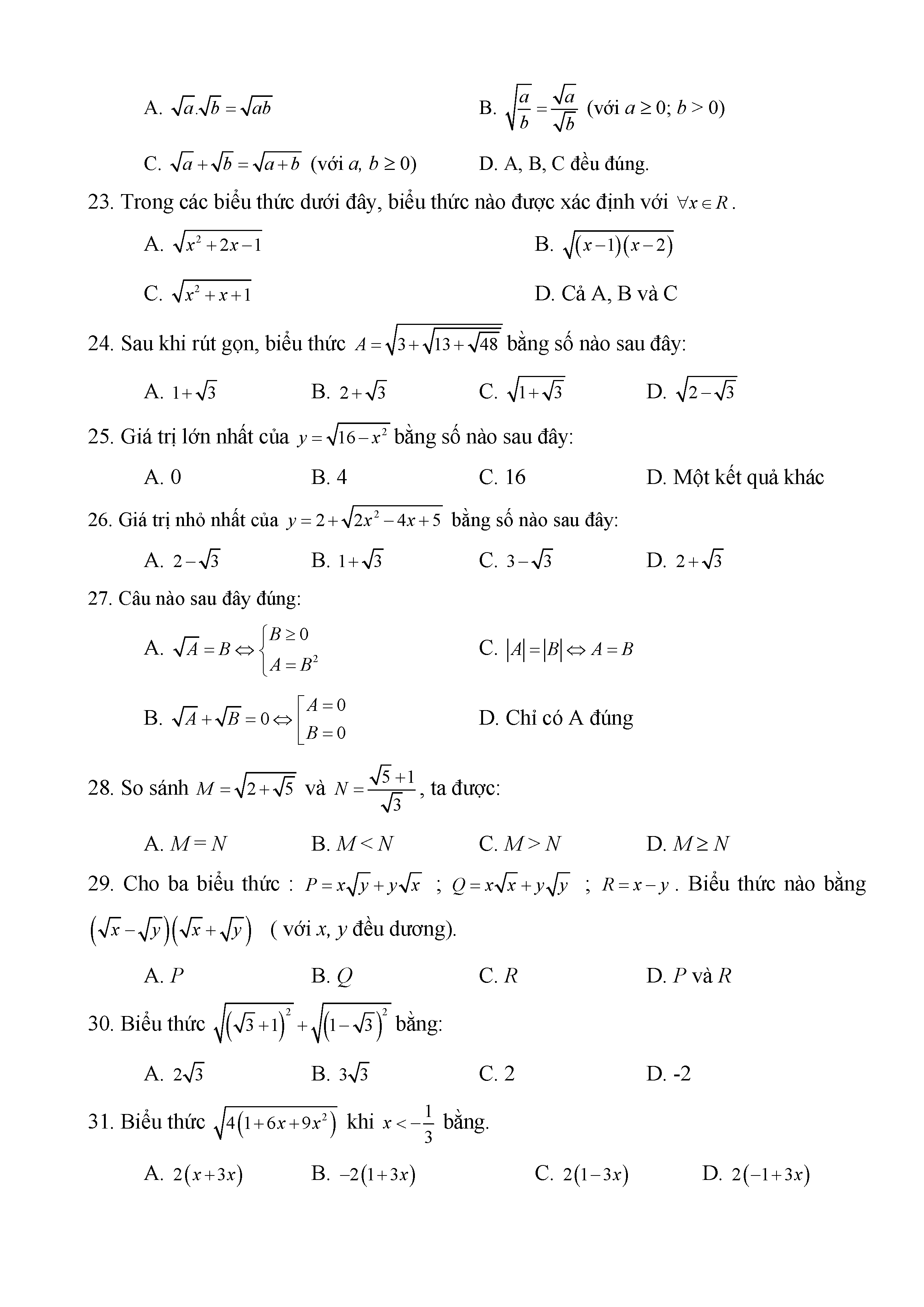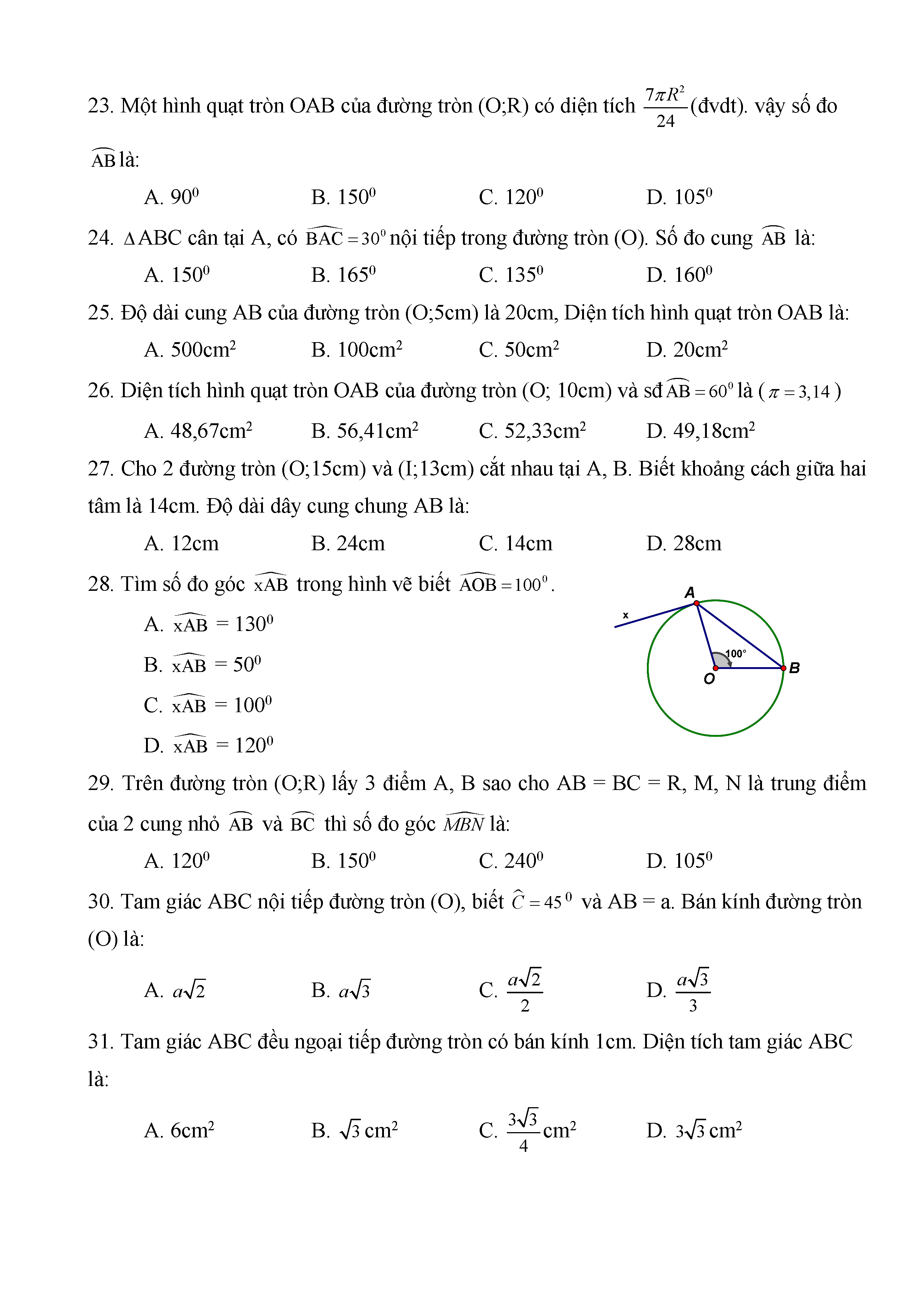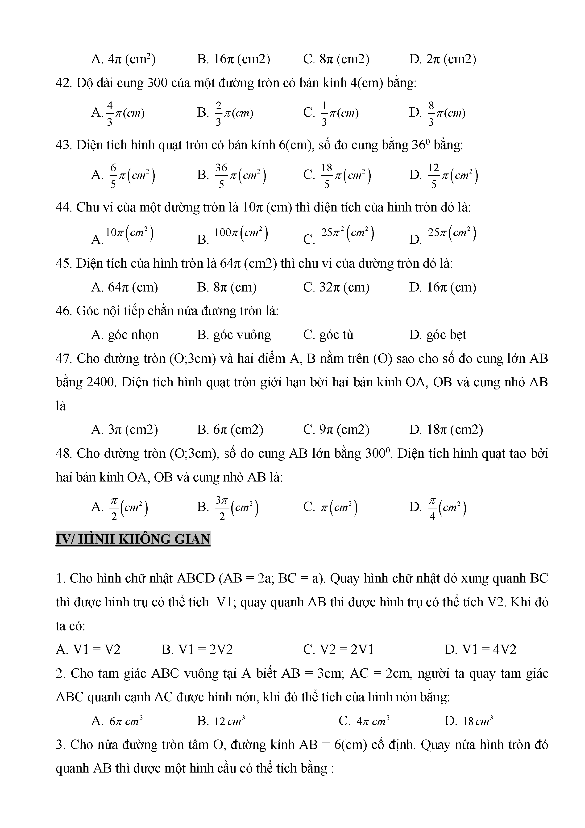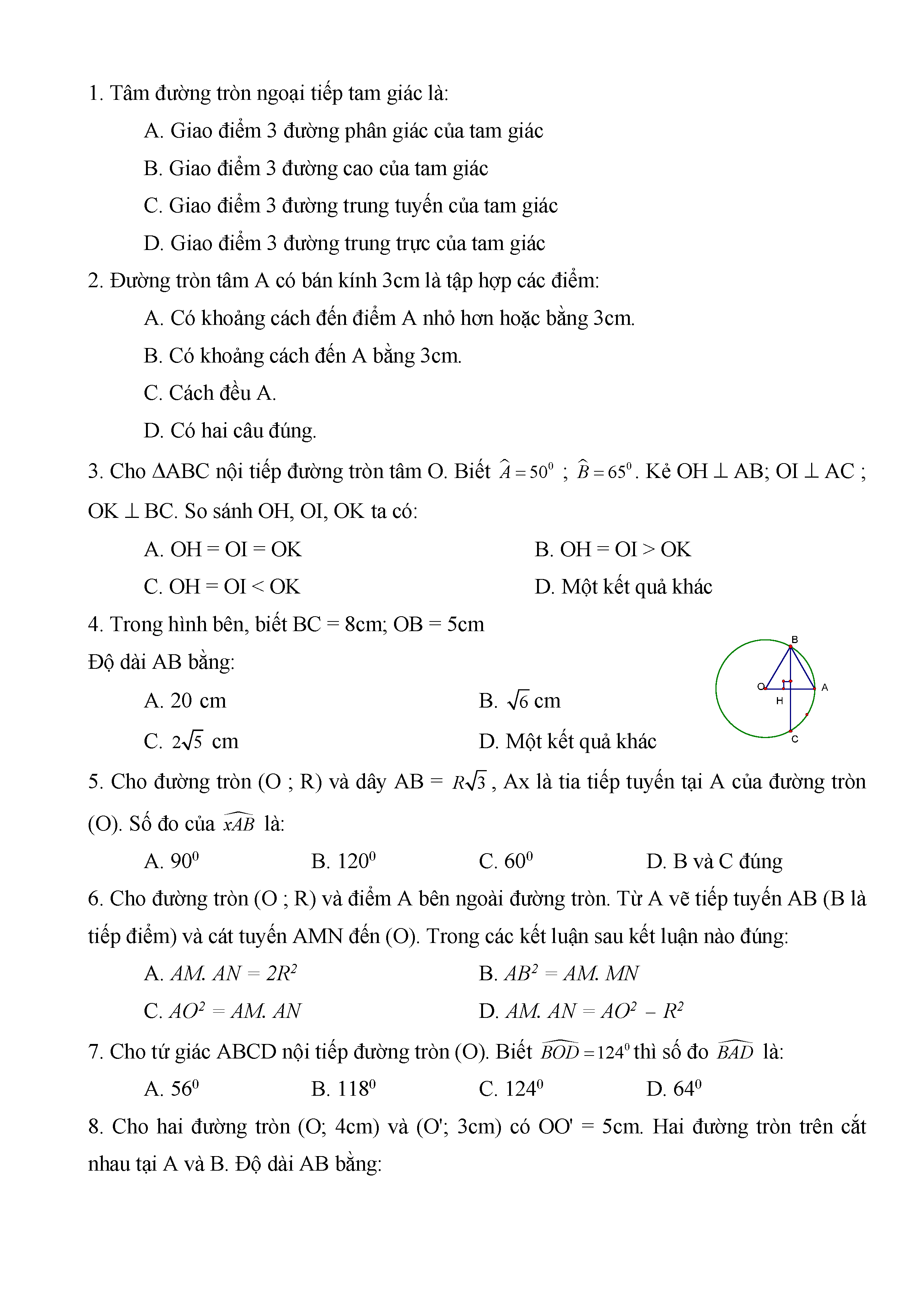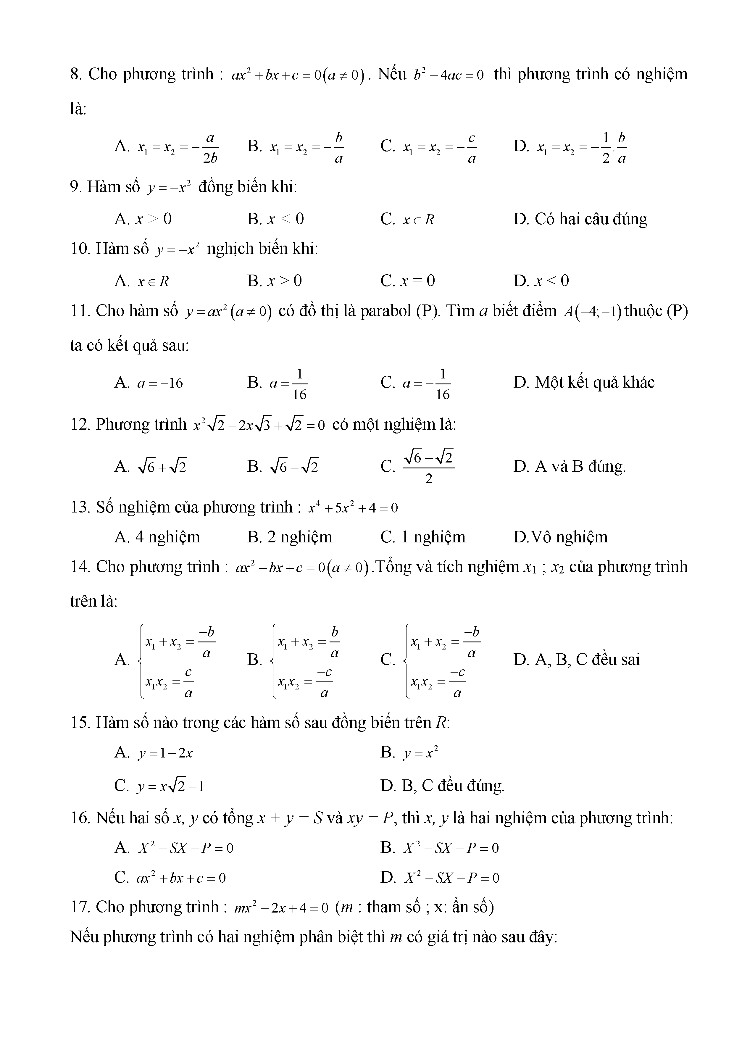 BÀI TẬP TRẮC NGHIỆM TOÁN 9