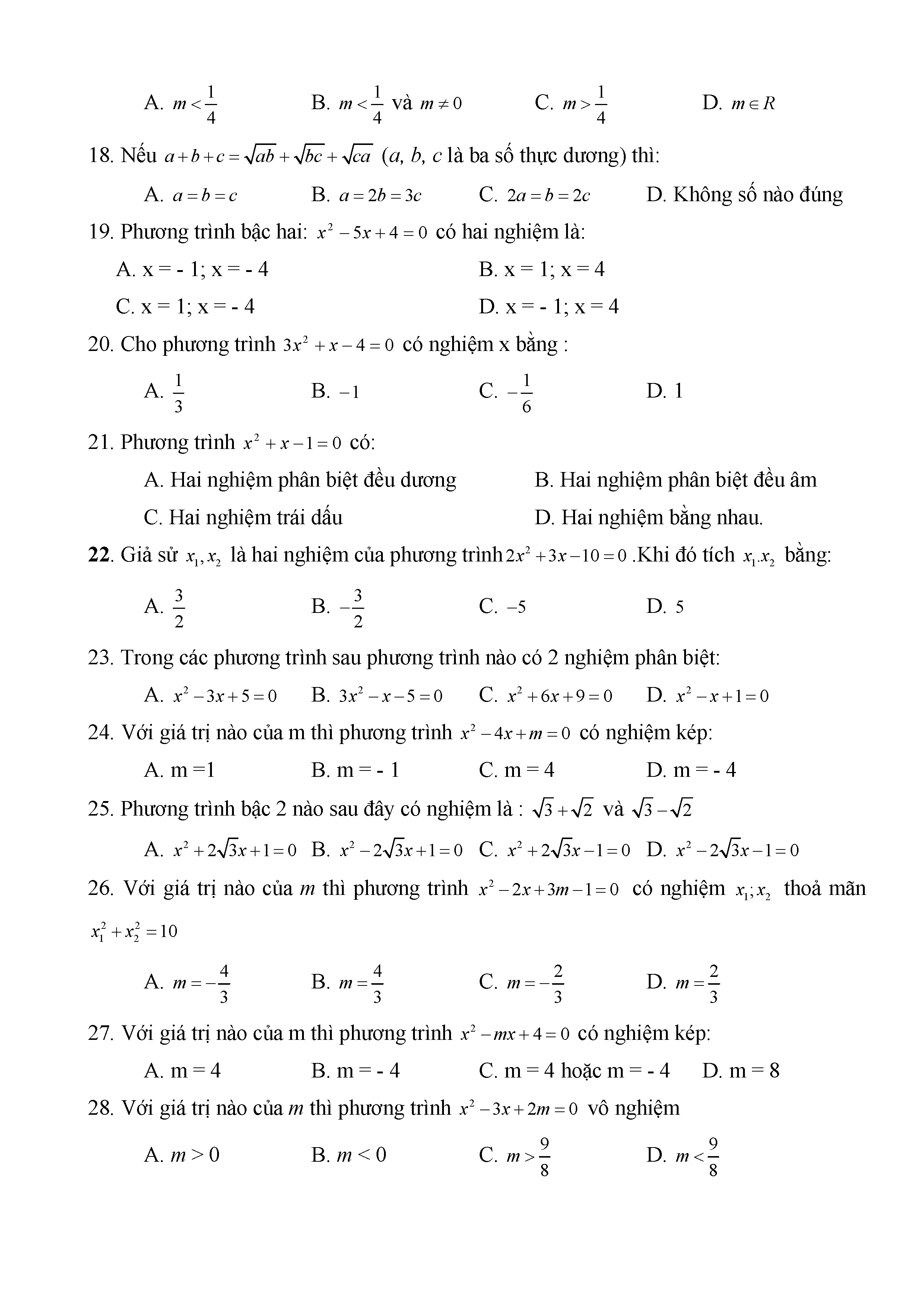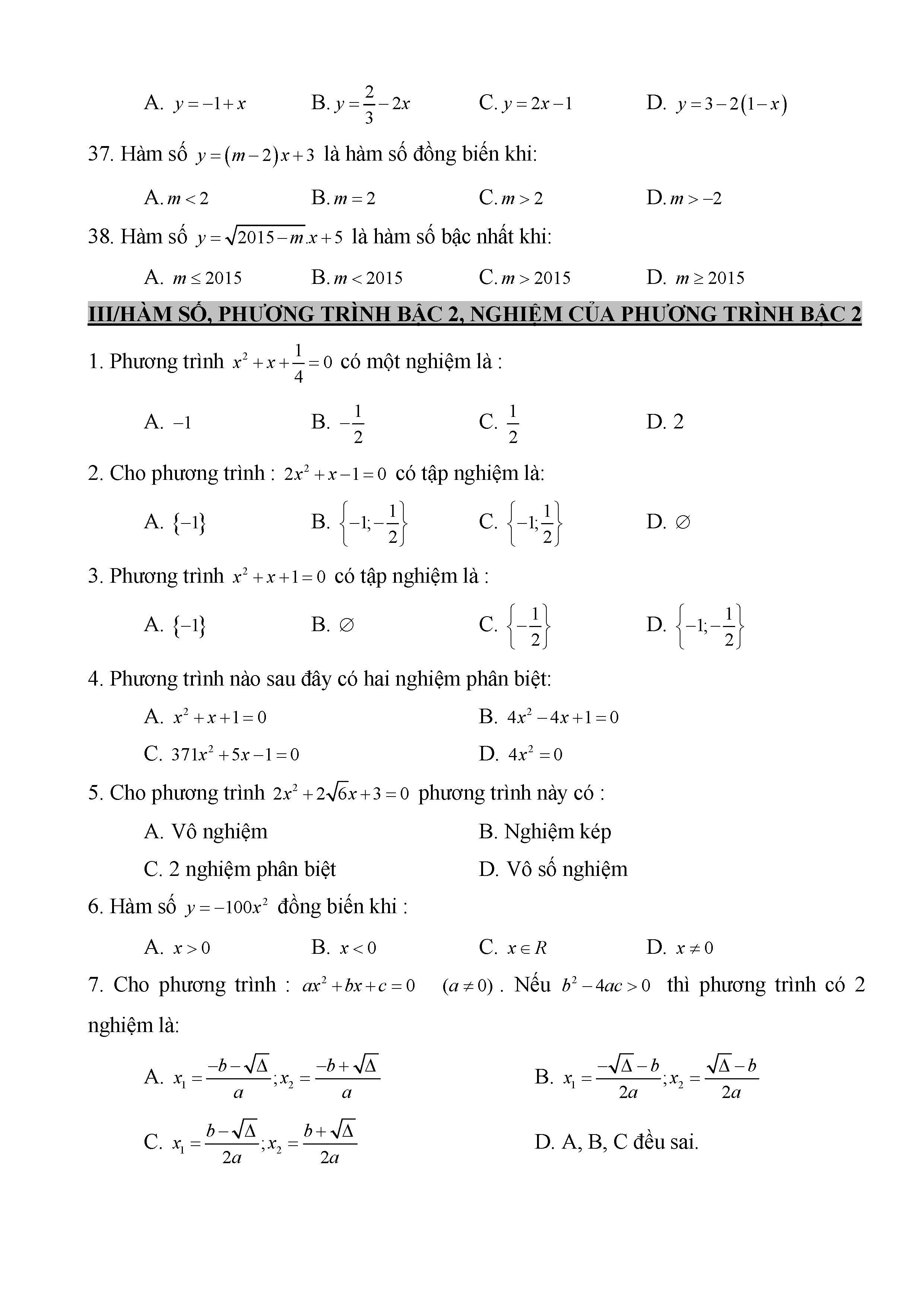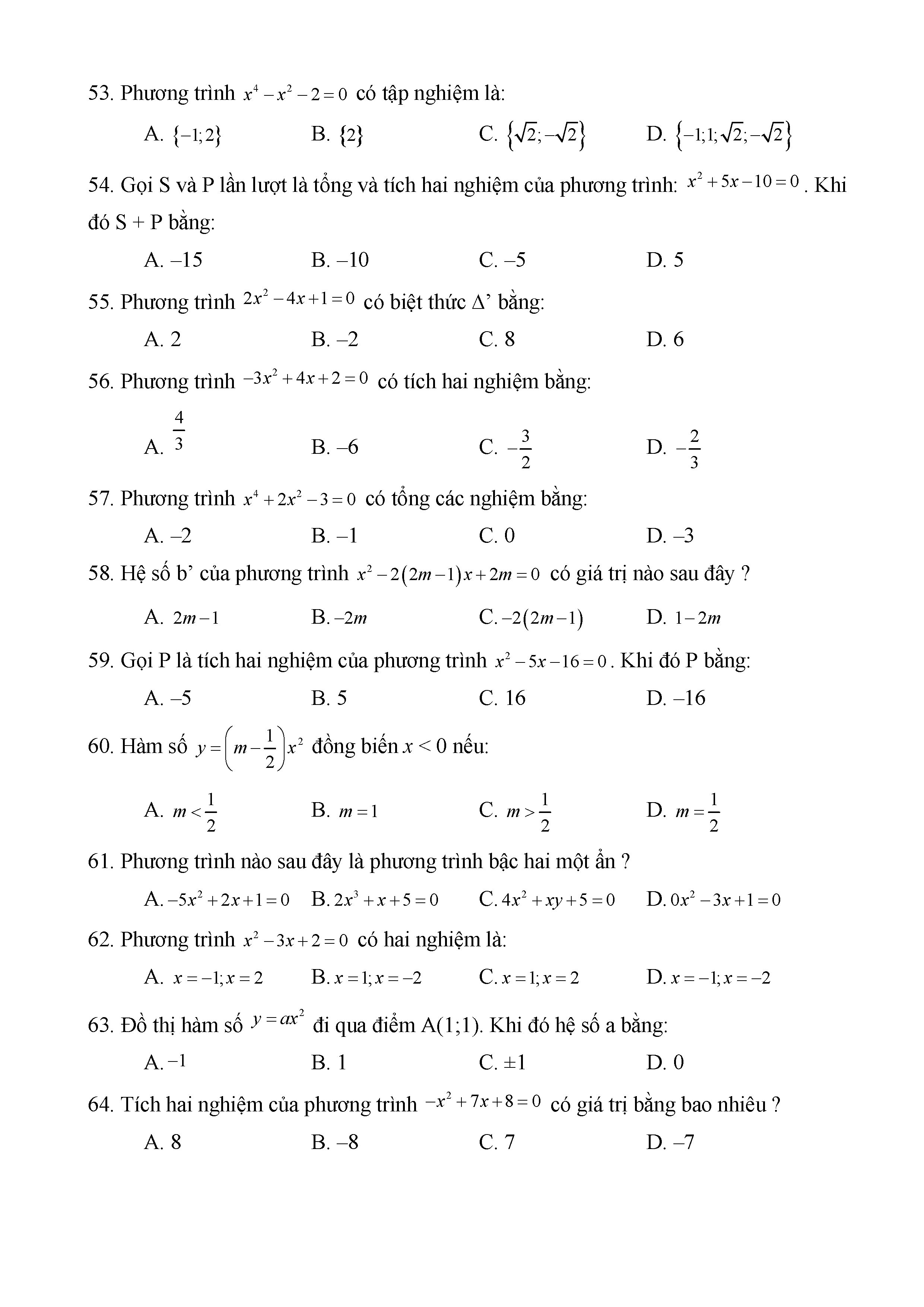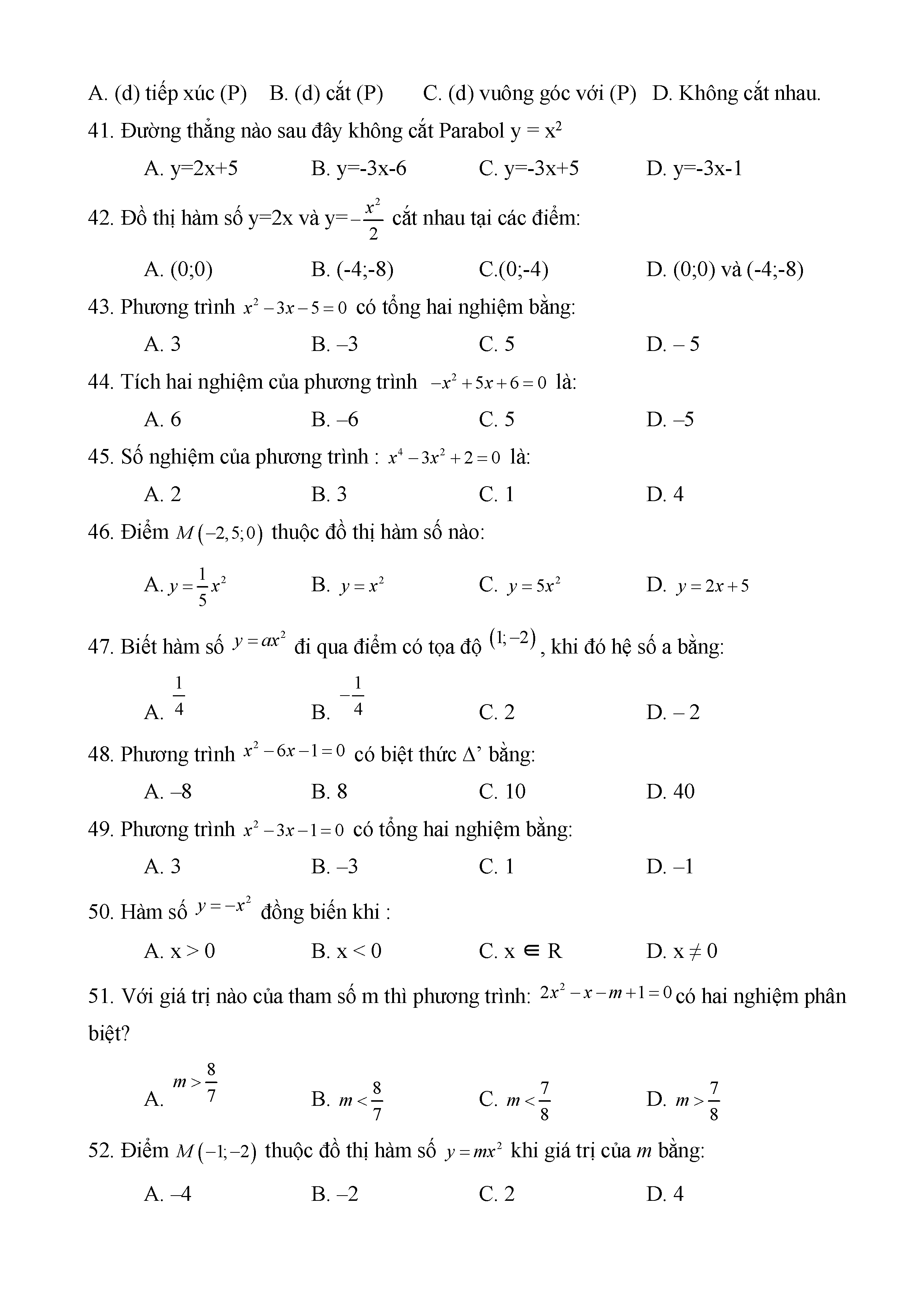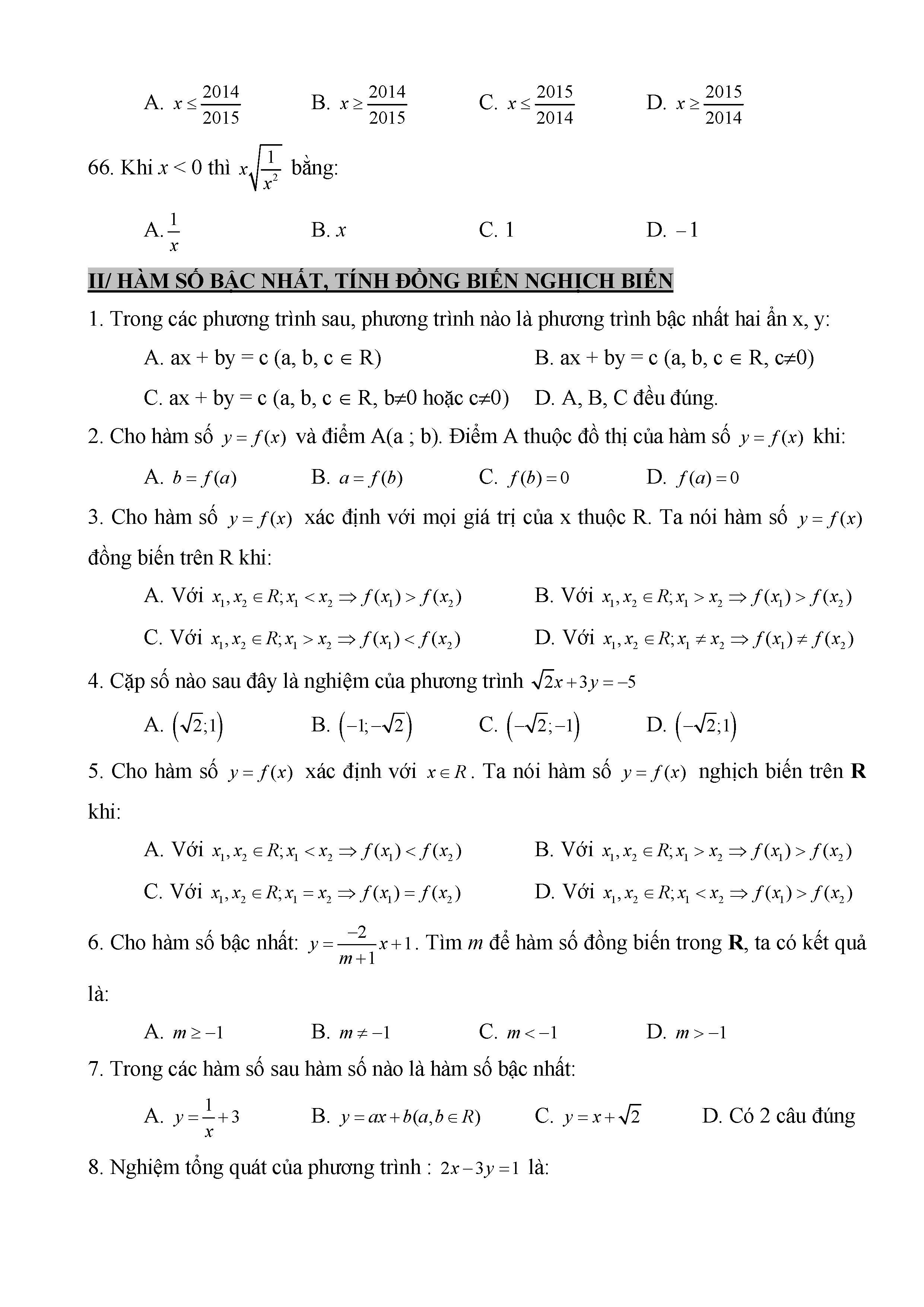 BÀI TẬP TRẮC NGHIỆM TOÁN 9