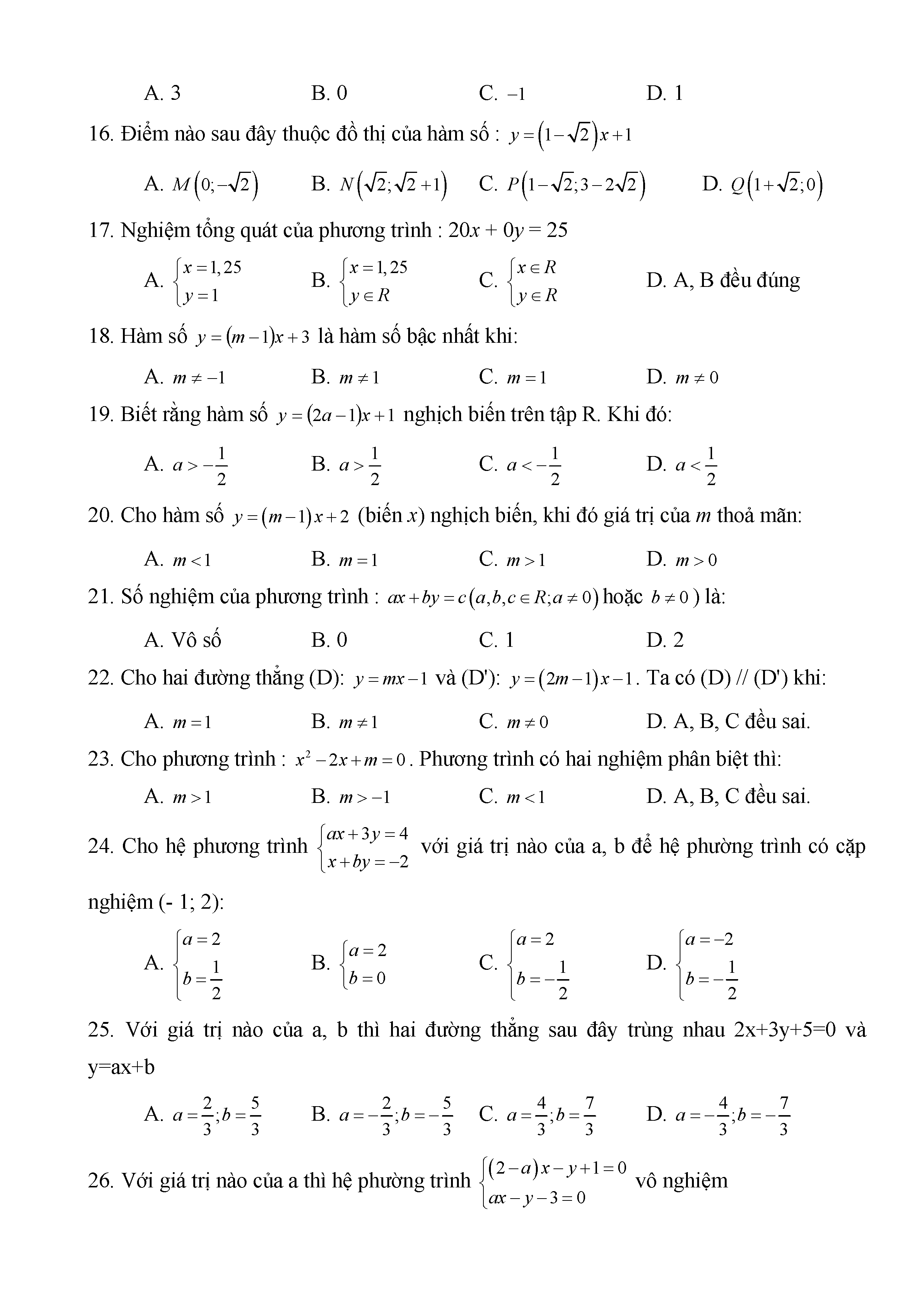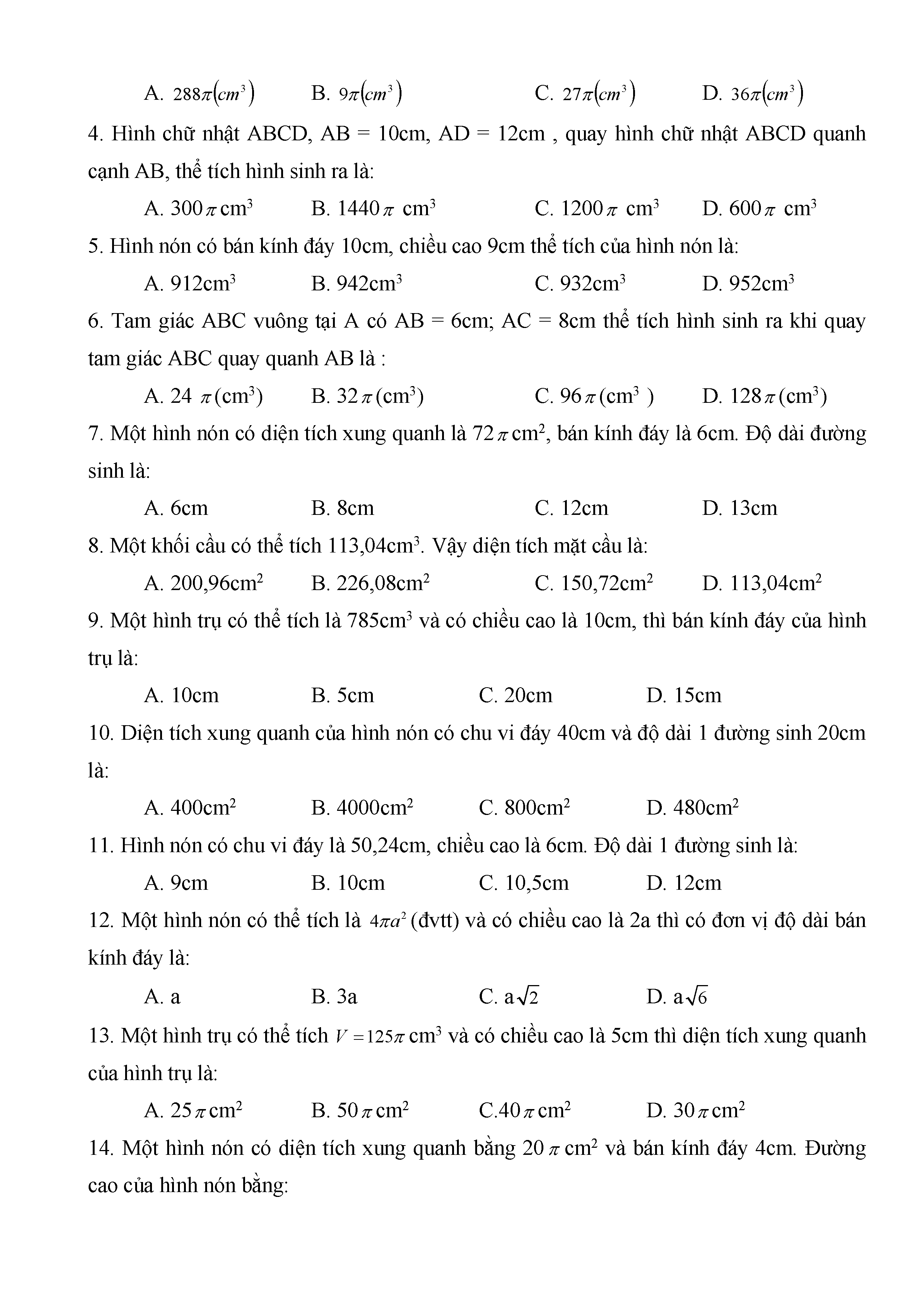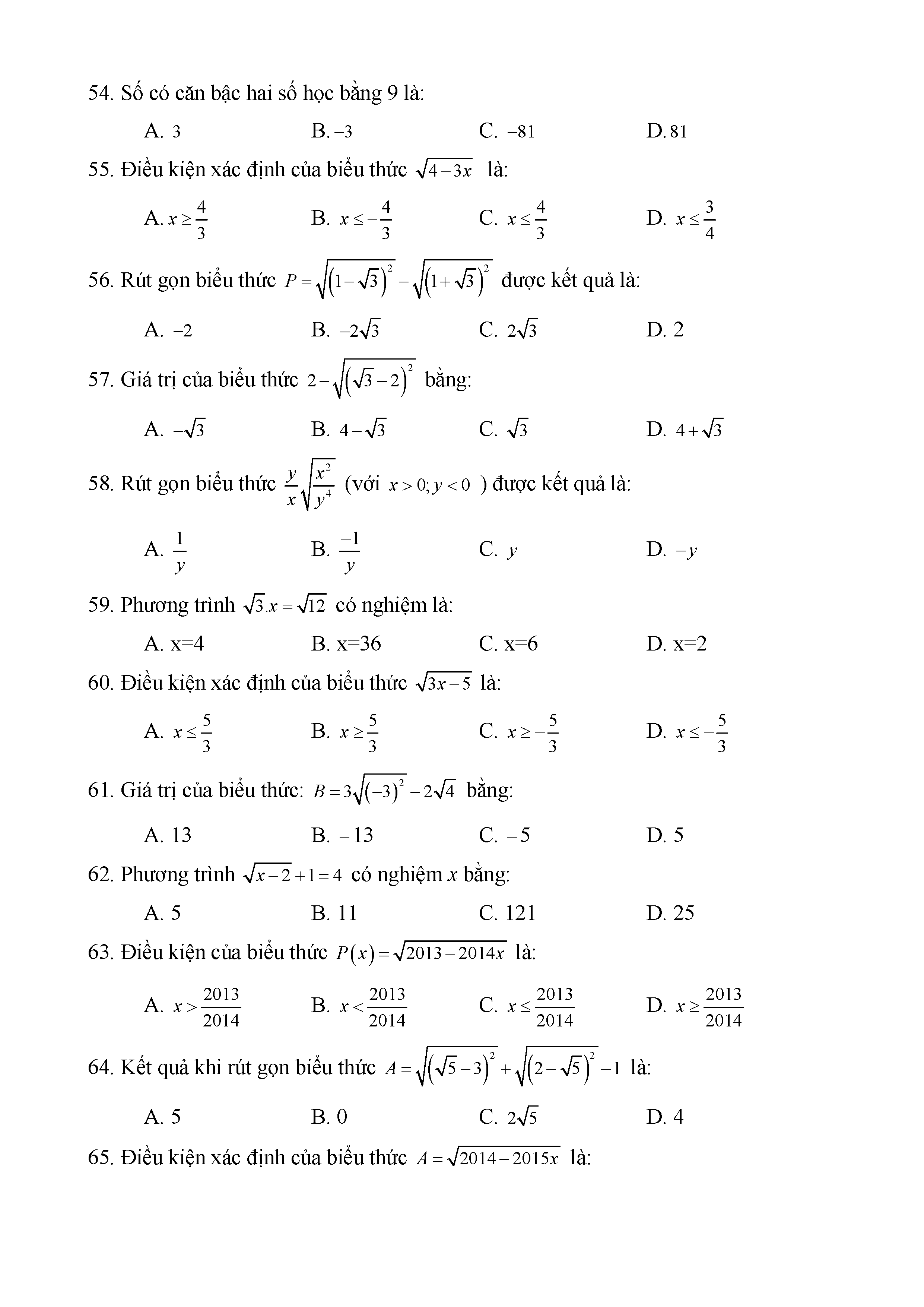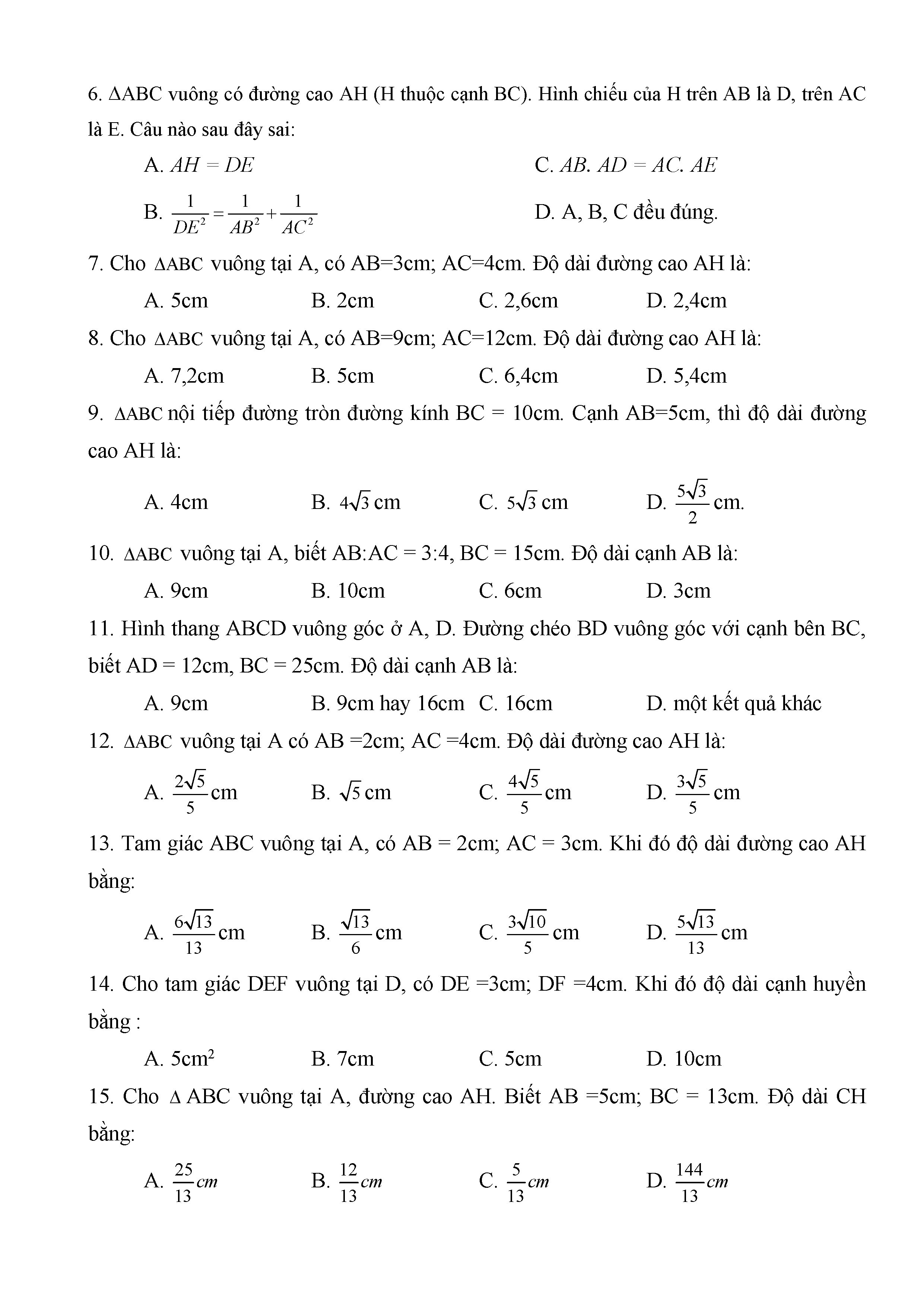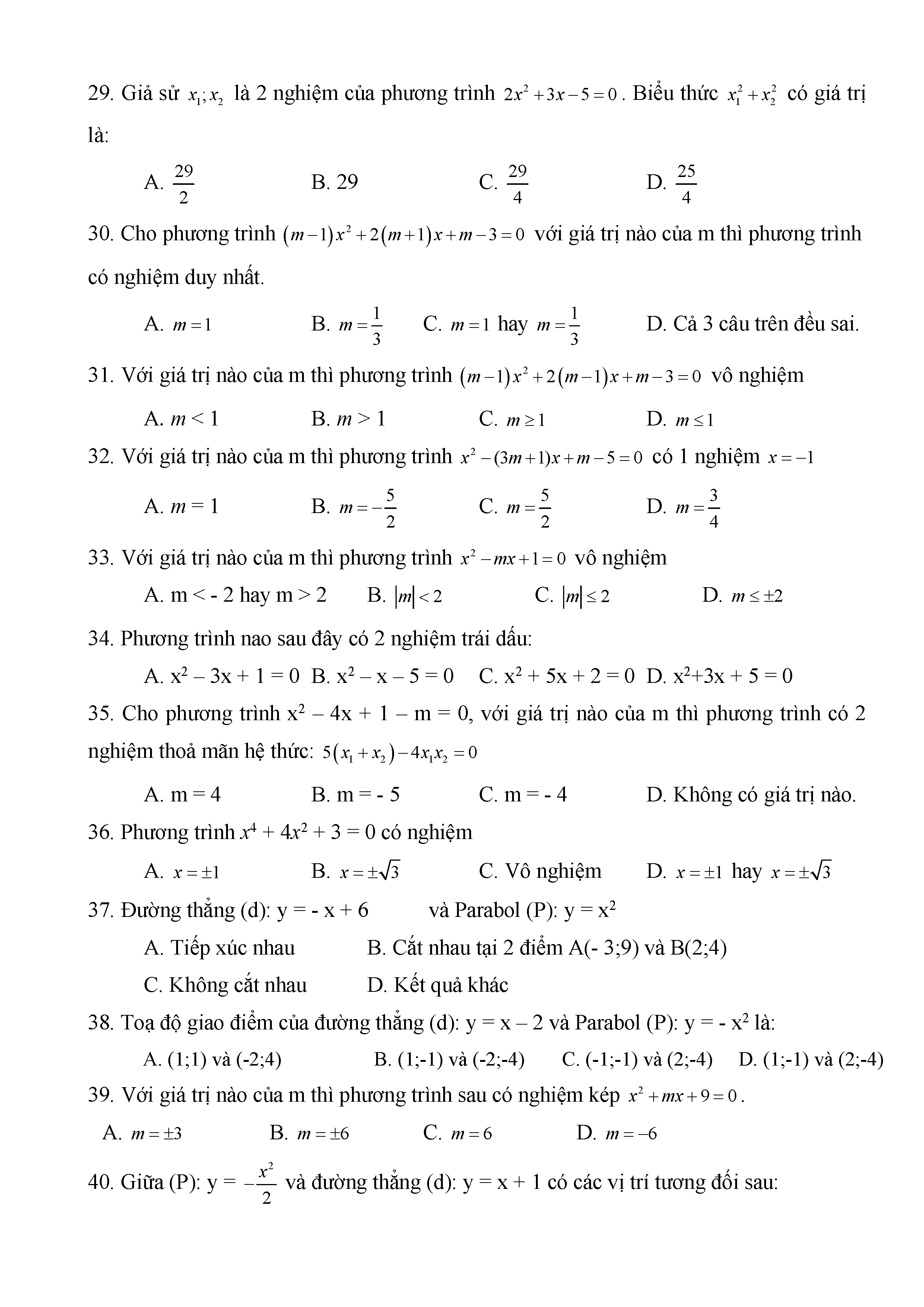 BÀI TẬP TRẮC NGHIỆM TOÁN 9