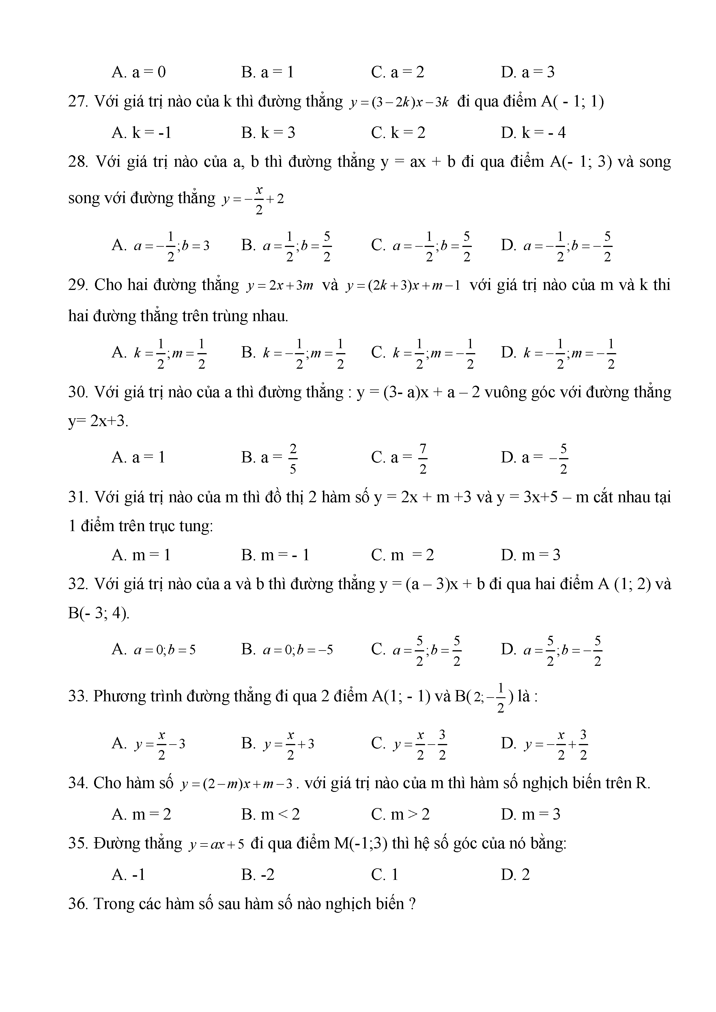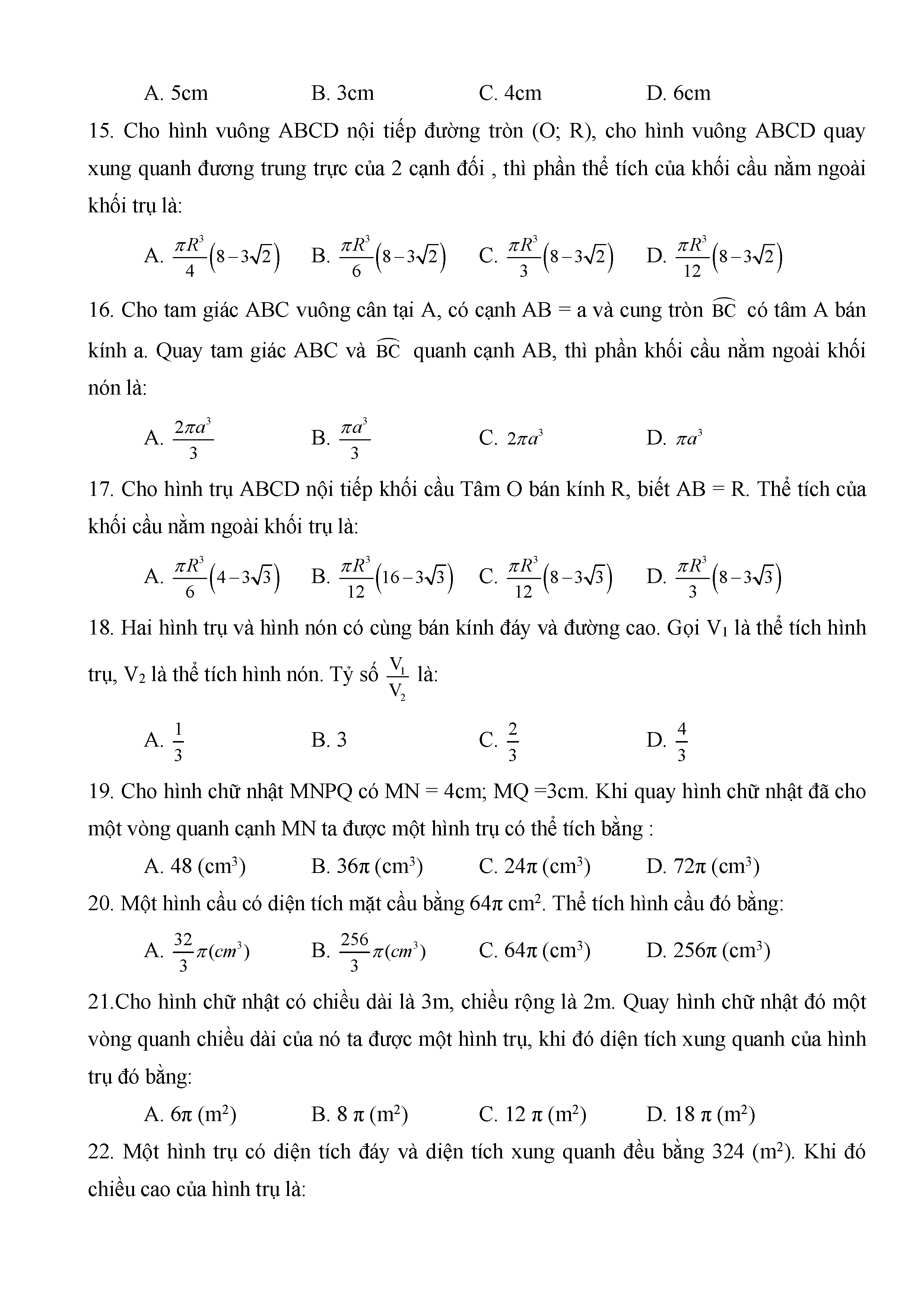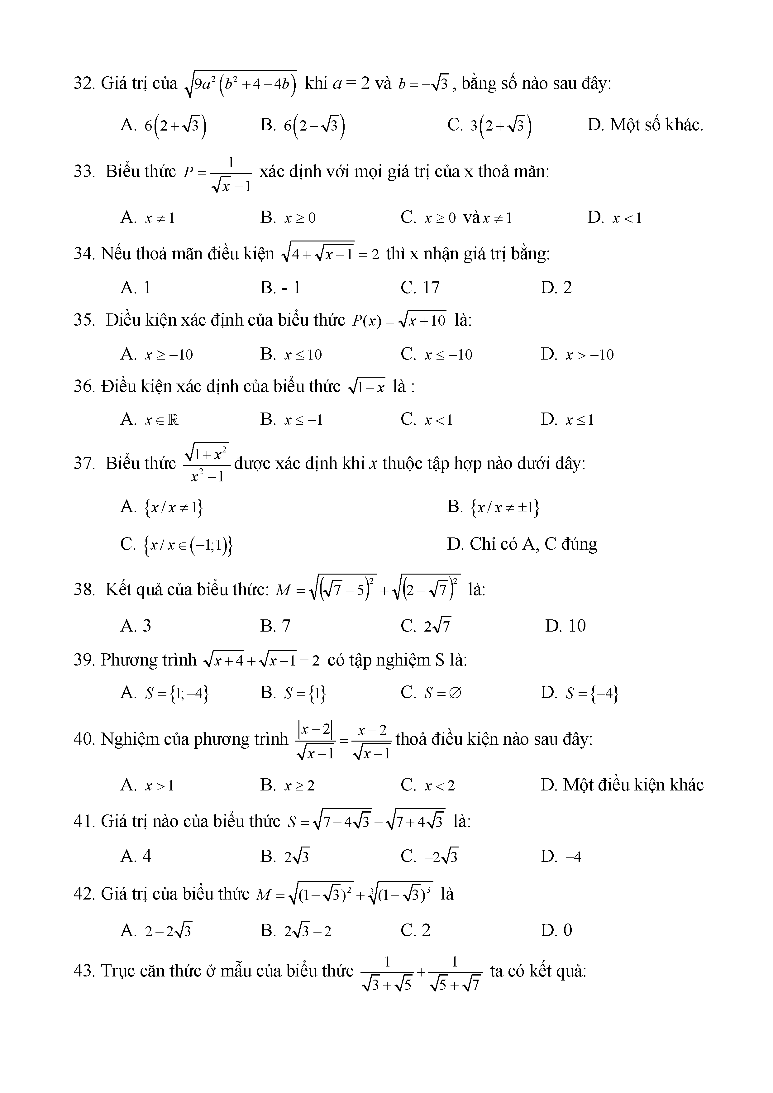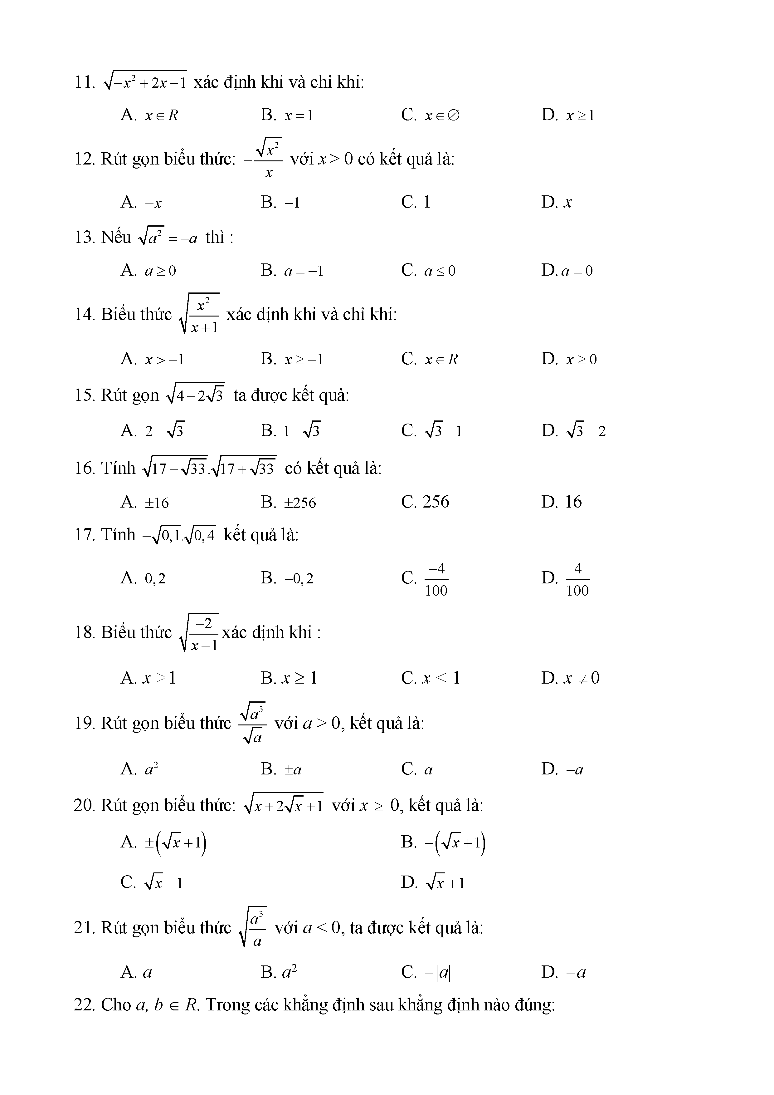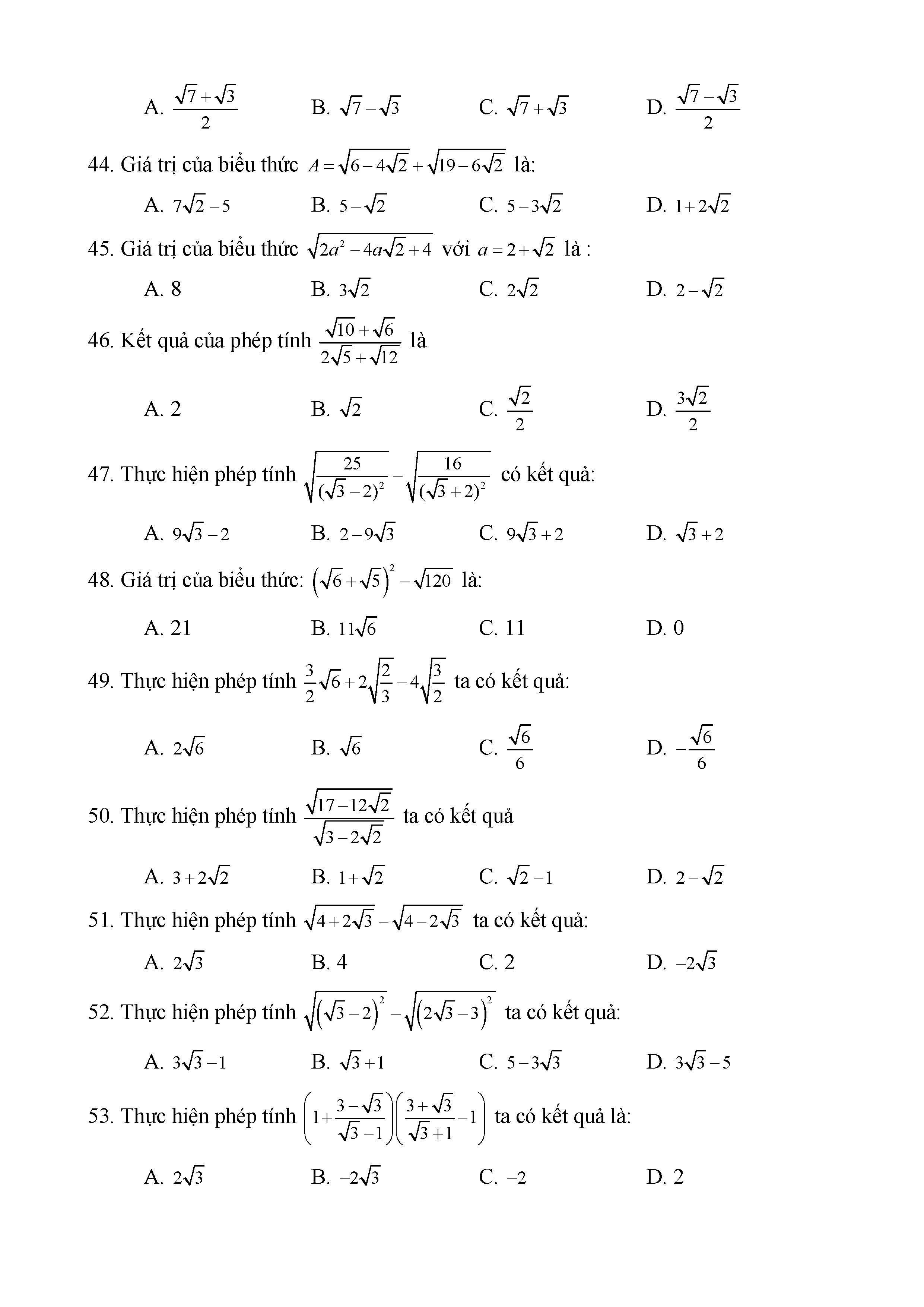 BÀI TẬP TRẮC NGHIỆM TOÁN 9