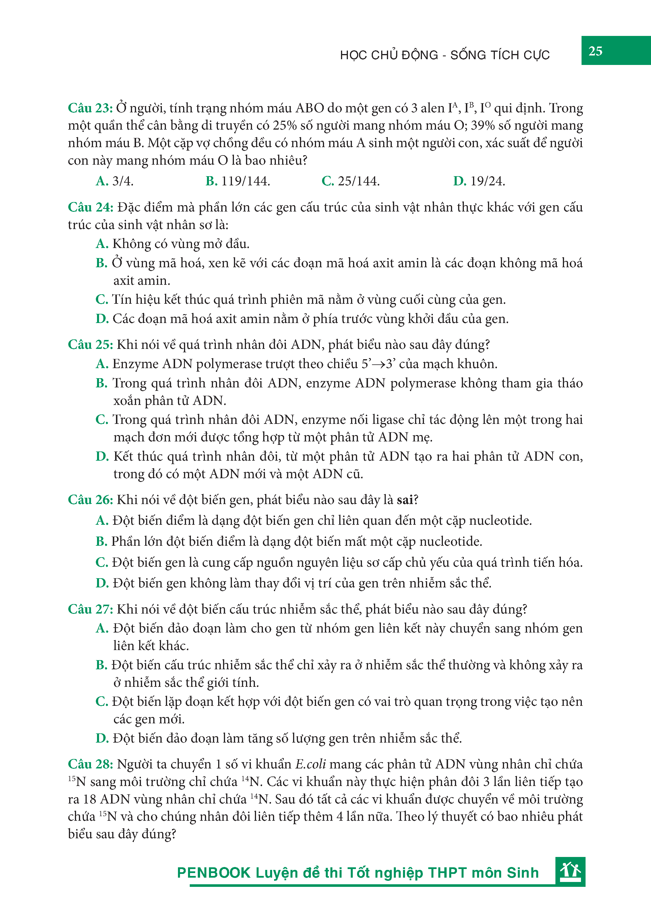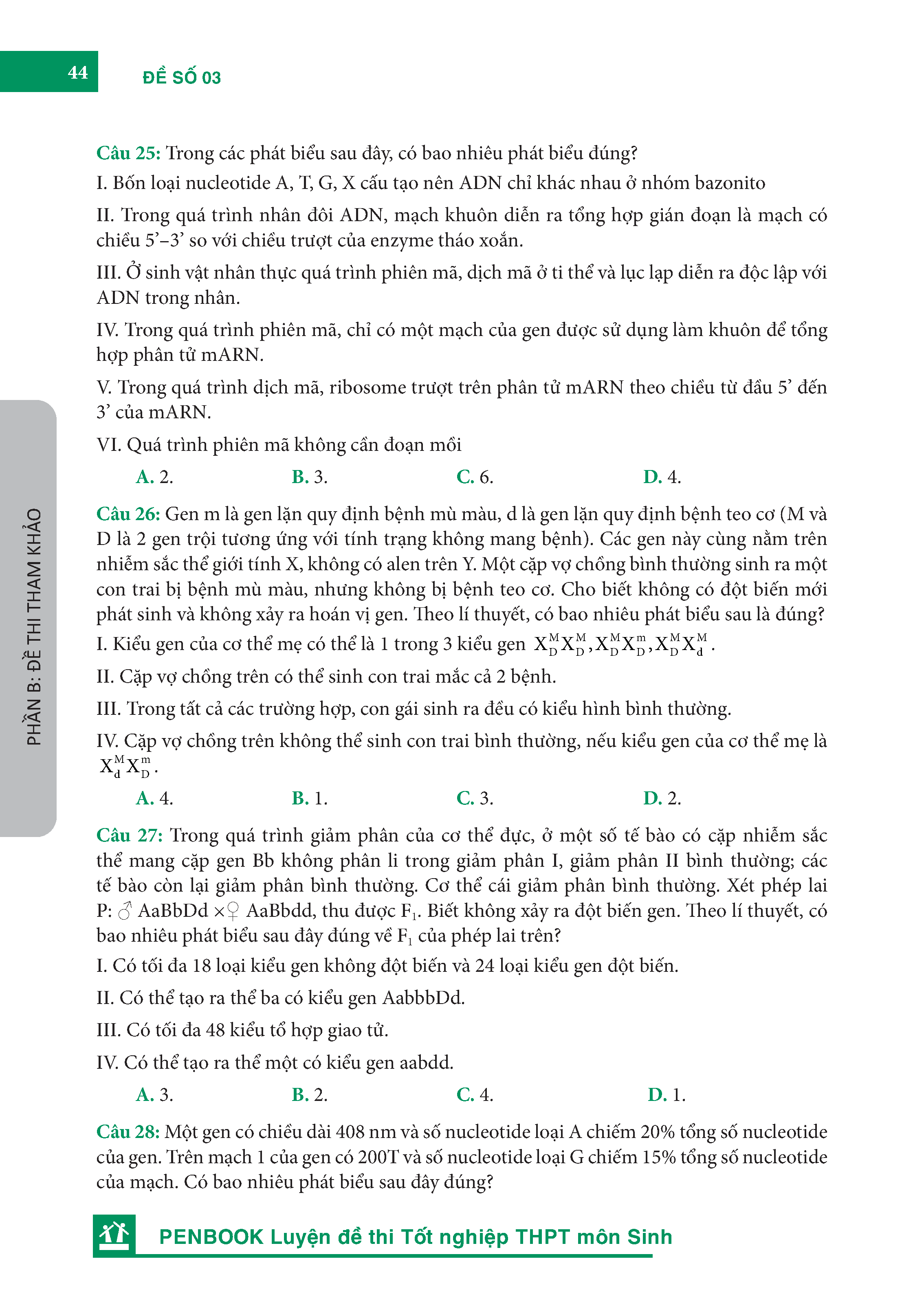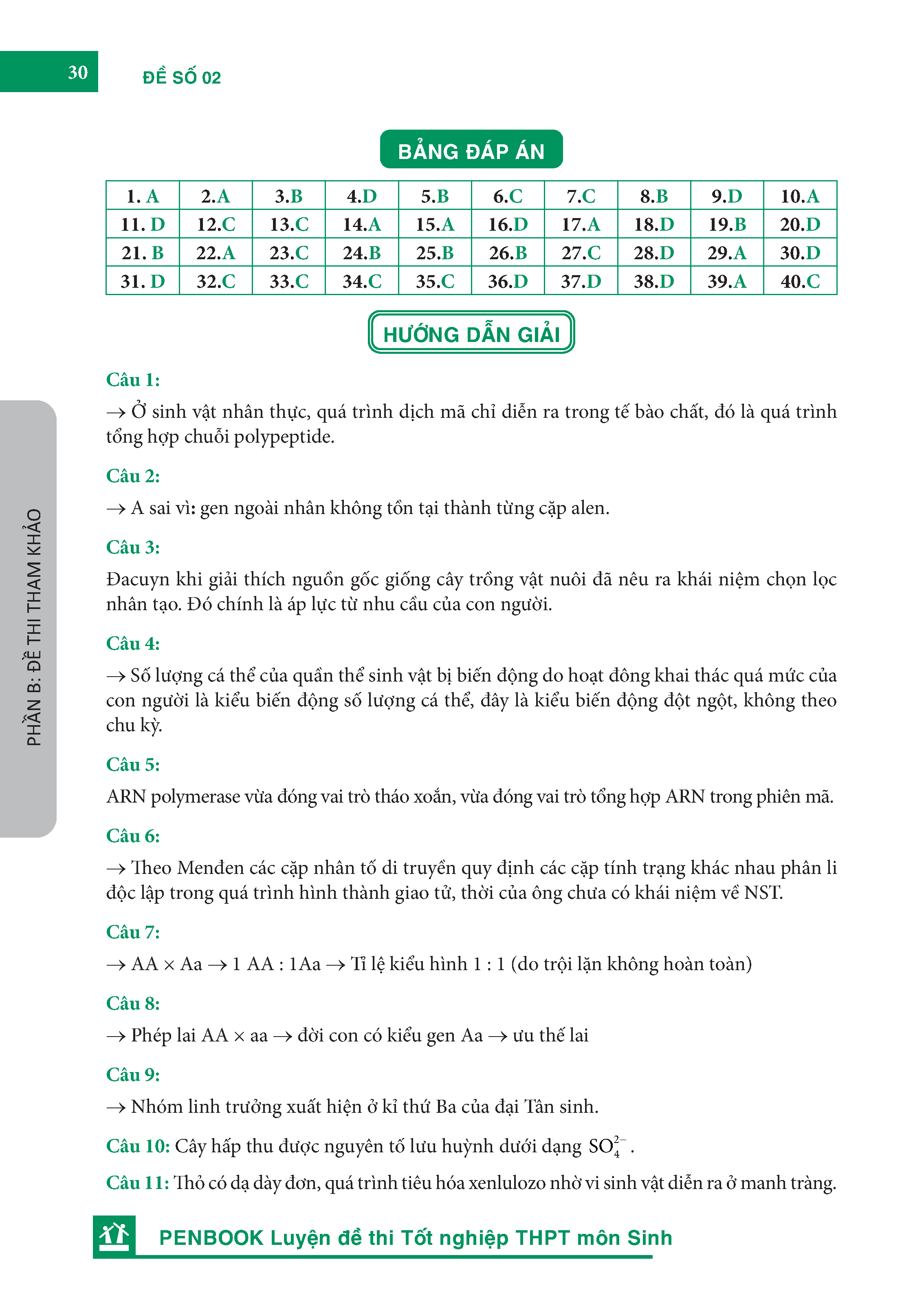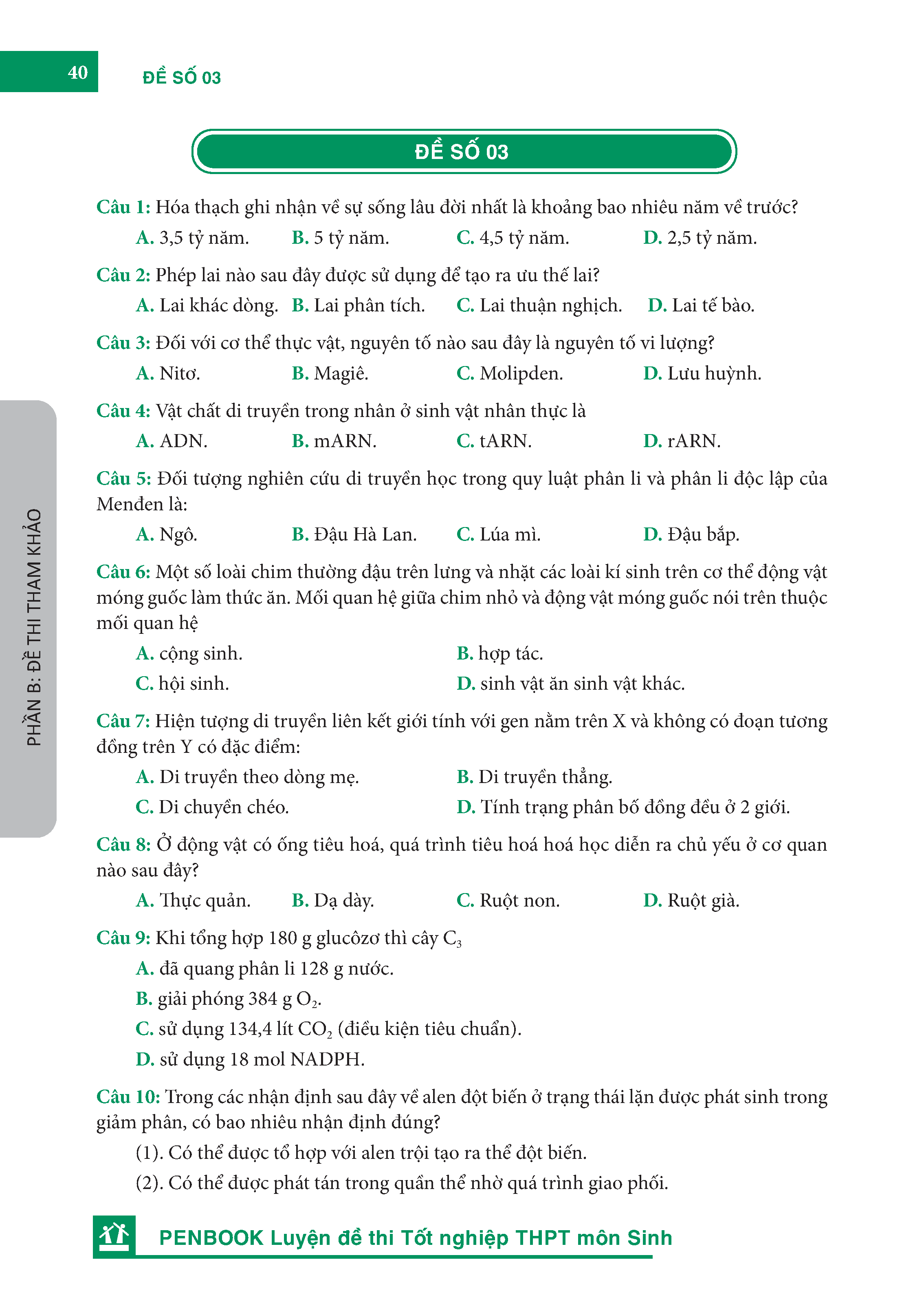 Đề tặng kèm Penbook 2022 - Môn Sinh học