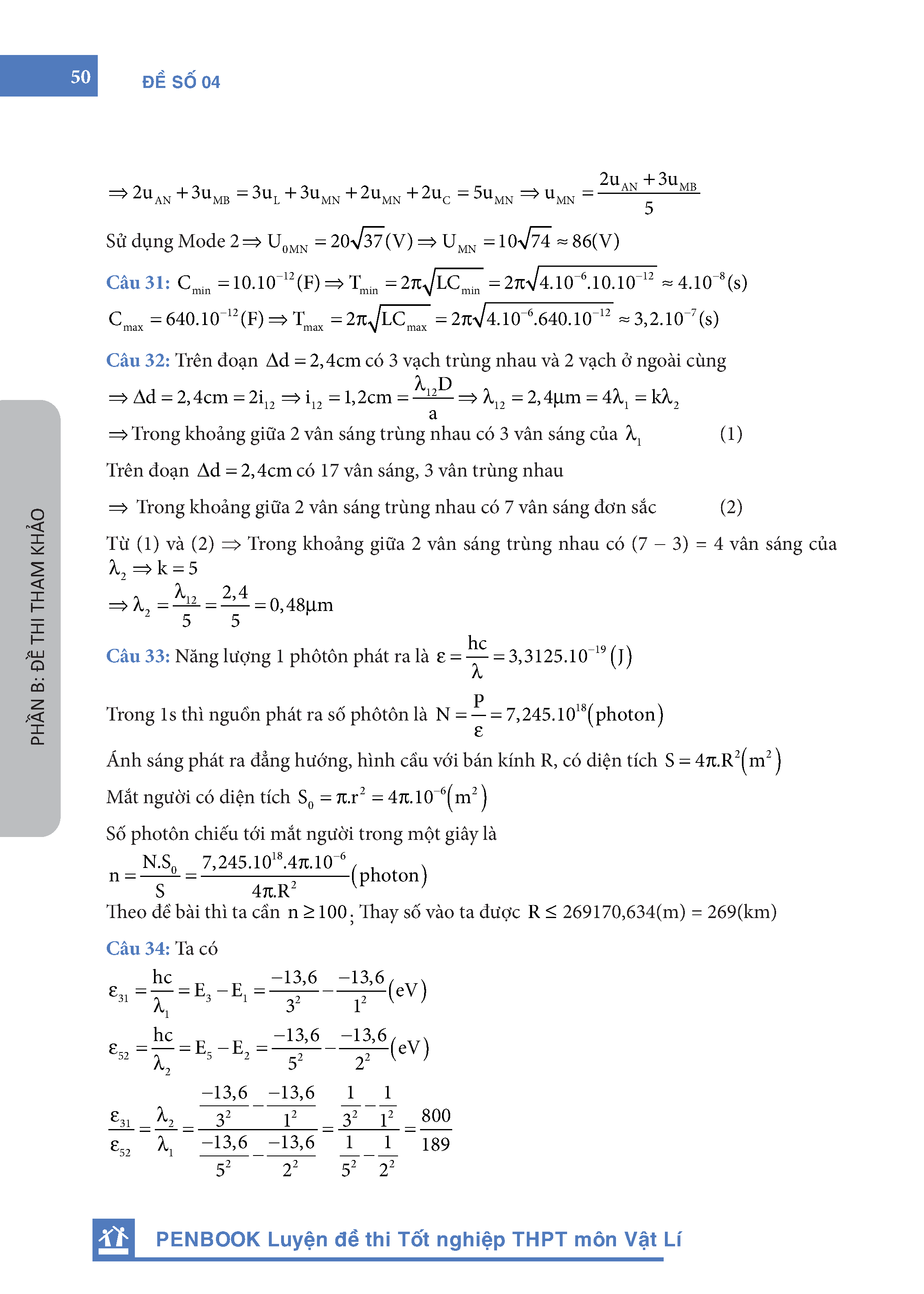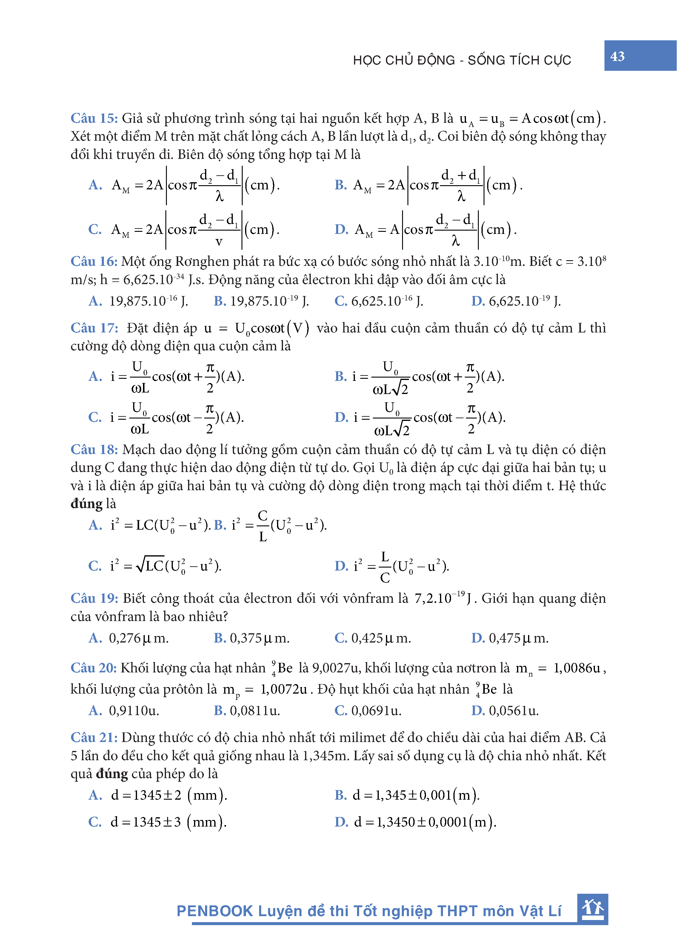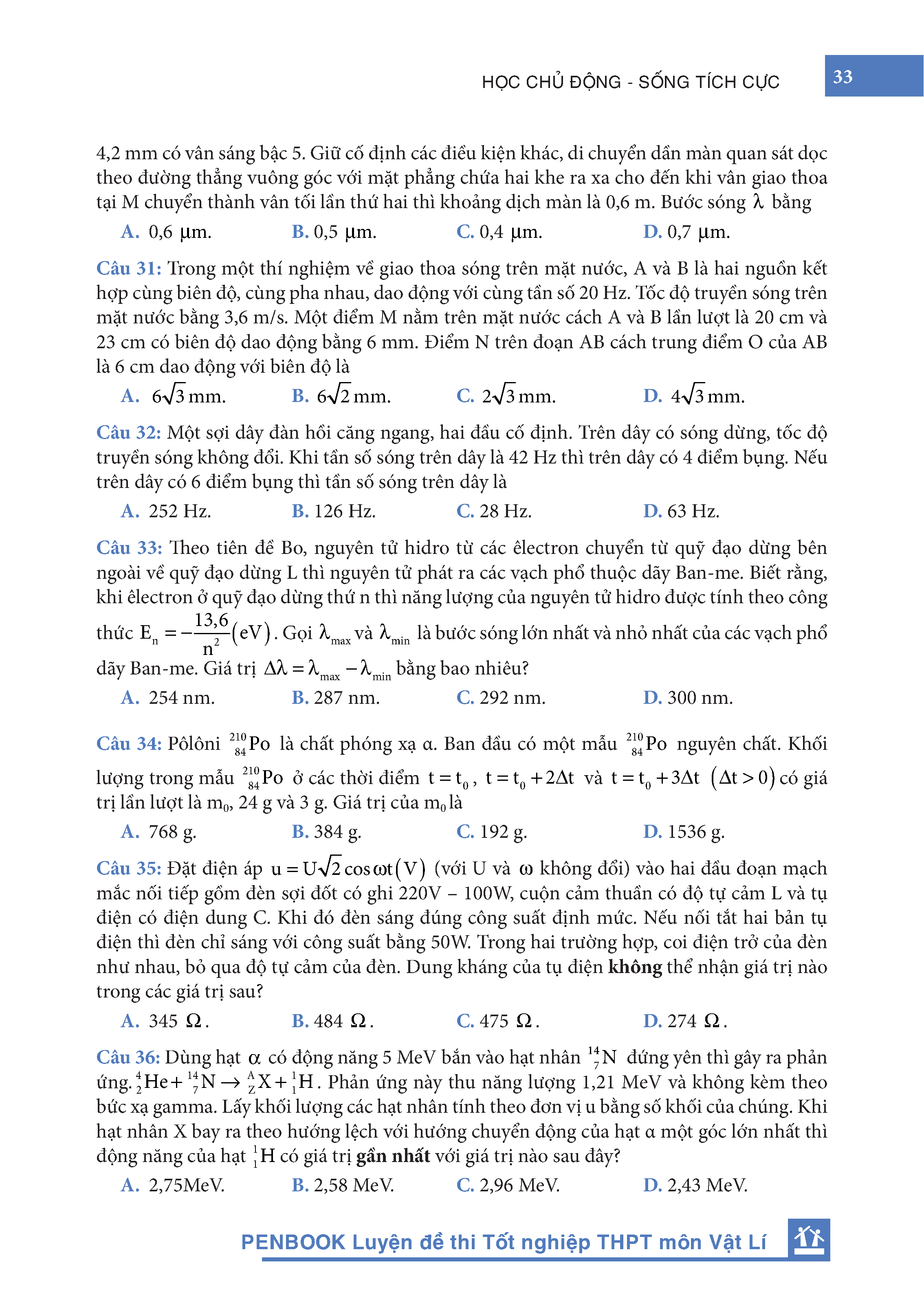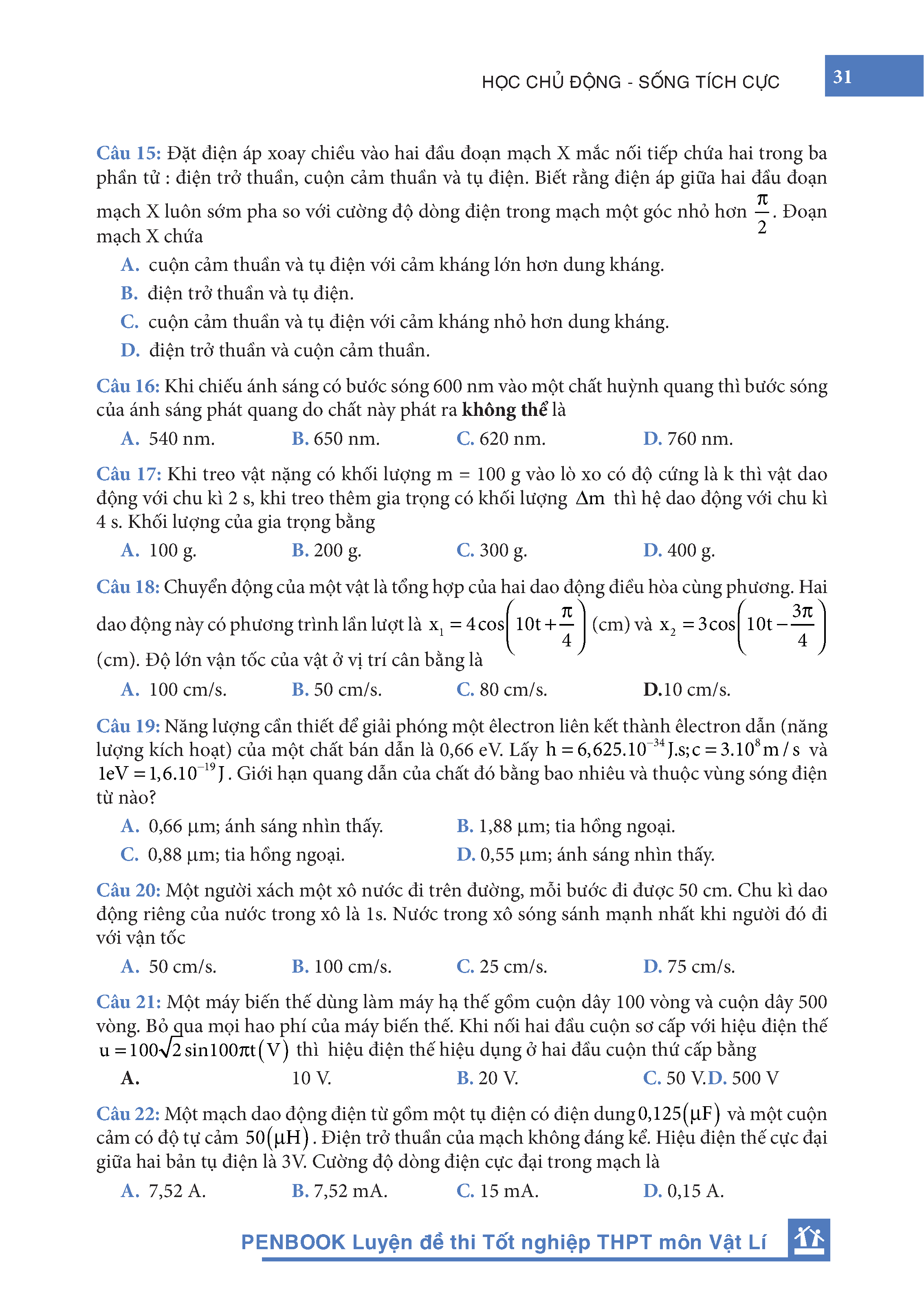Đề tặng kèm Penbook 2022 - Môn Vật lí