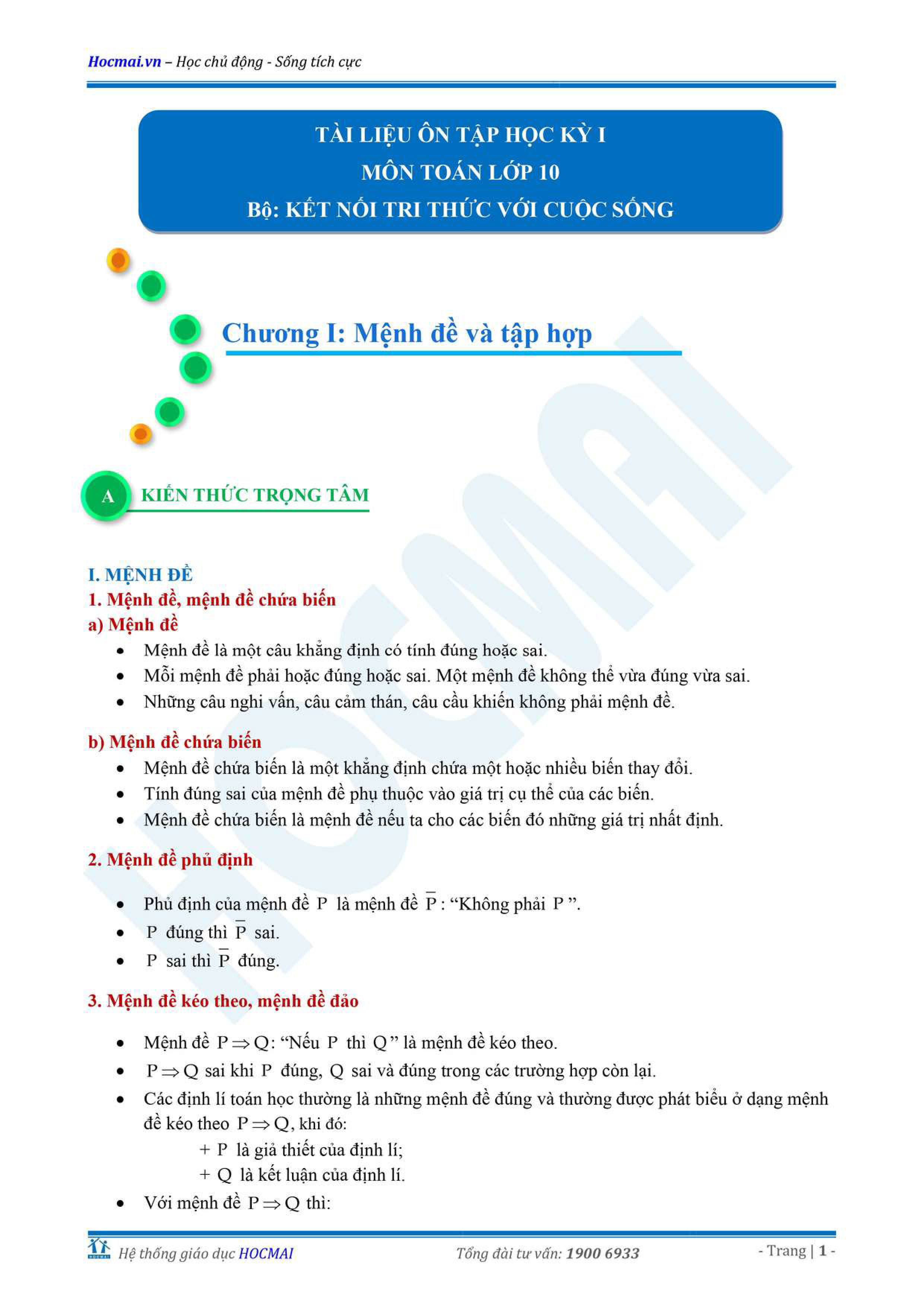 Tài liệu ôn thi Học kì I - Toán 10 KNTT