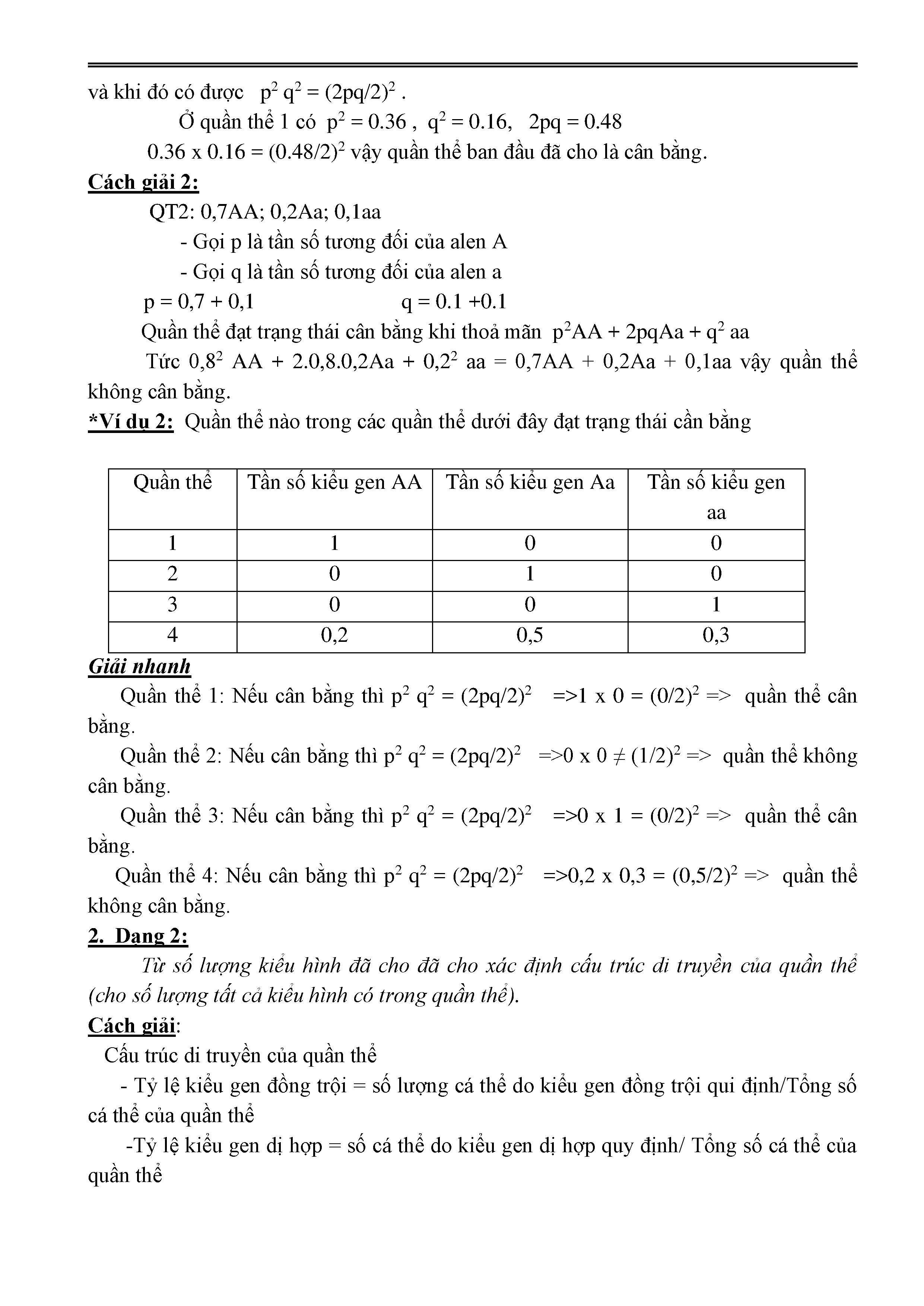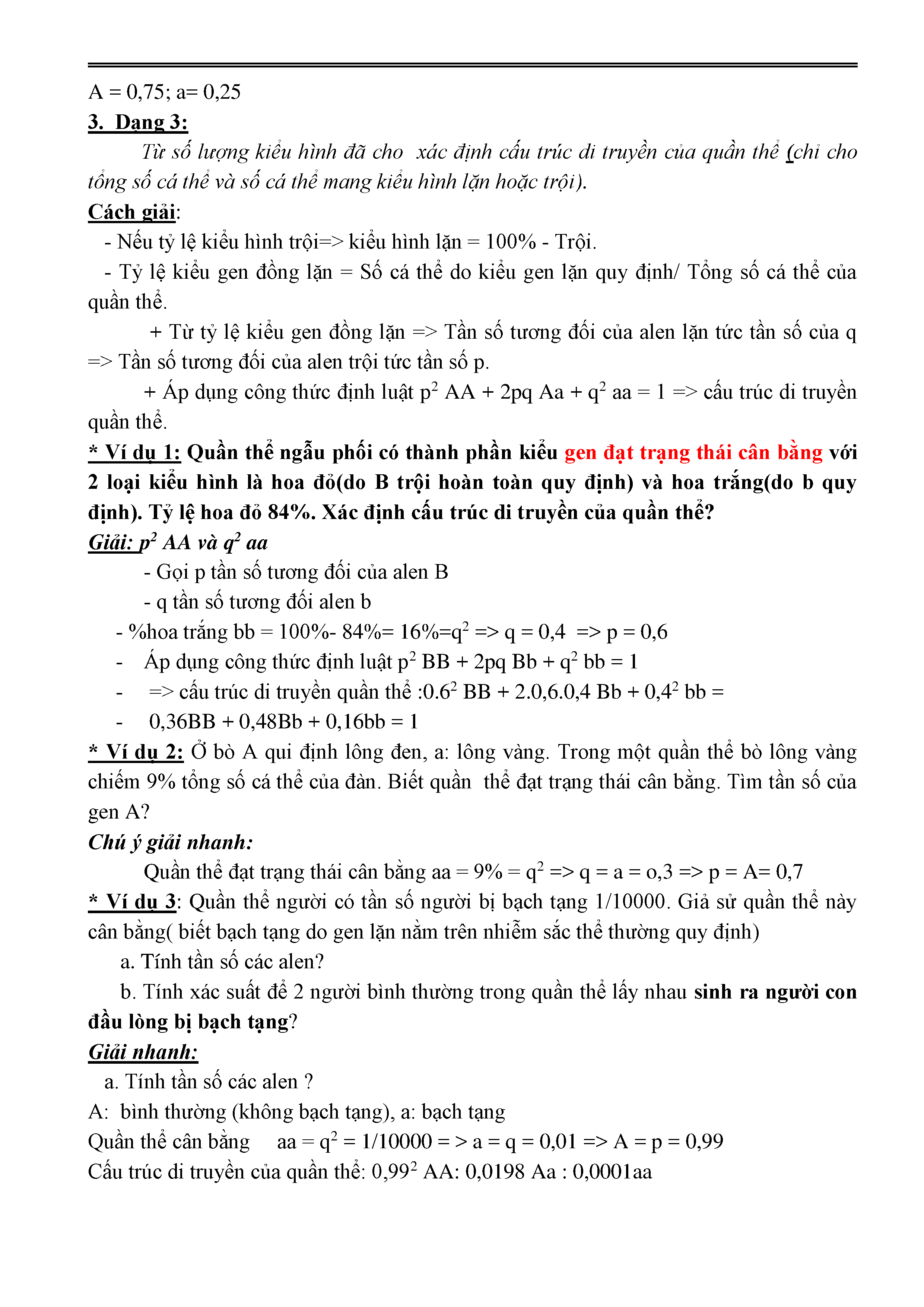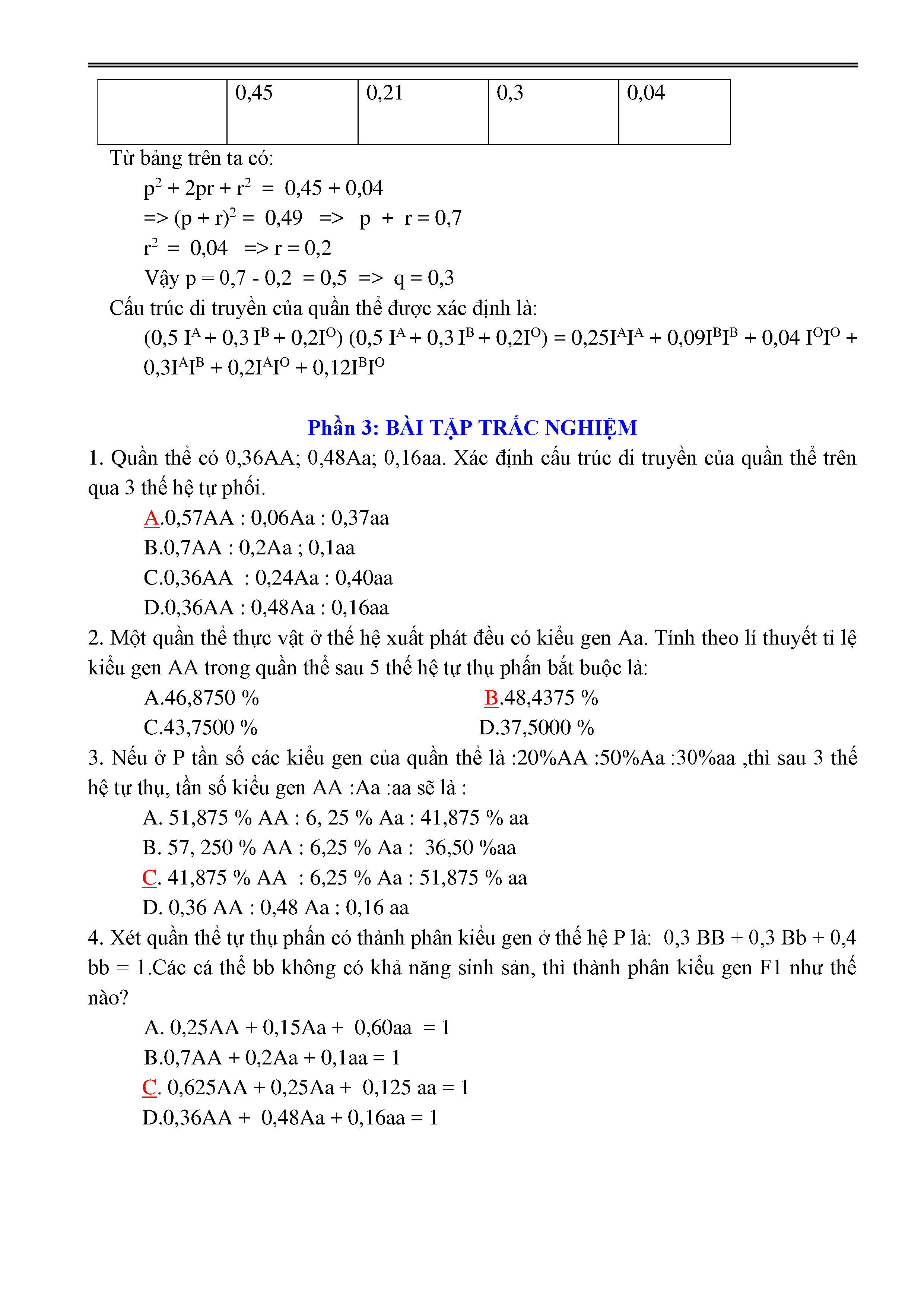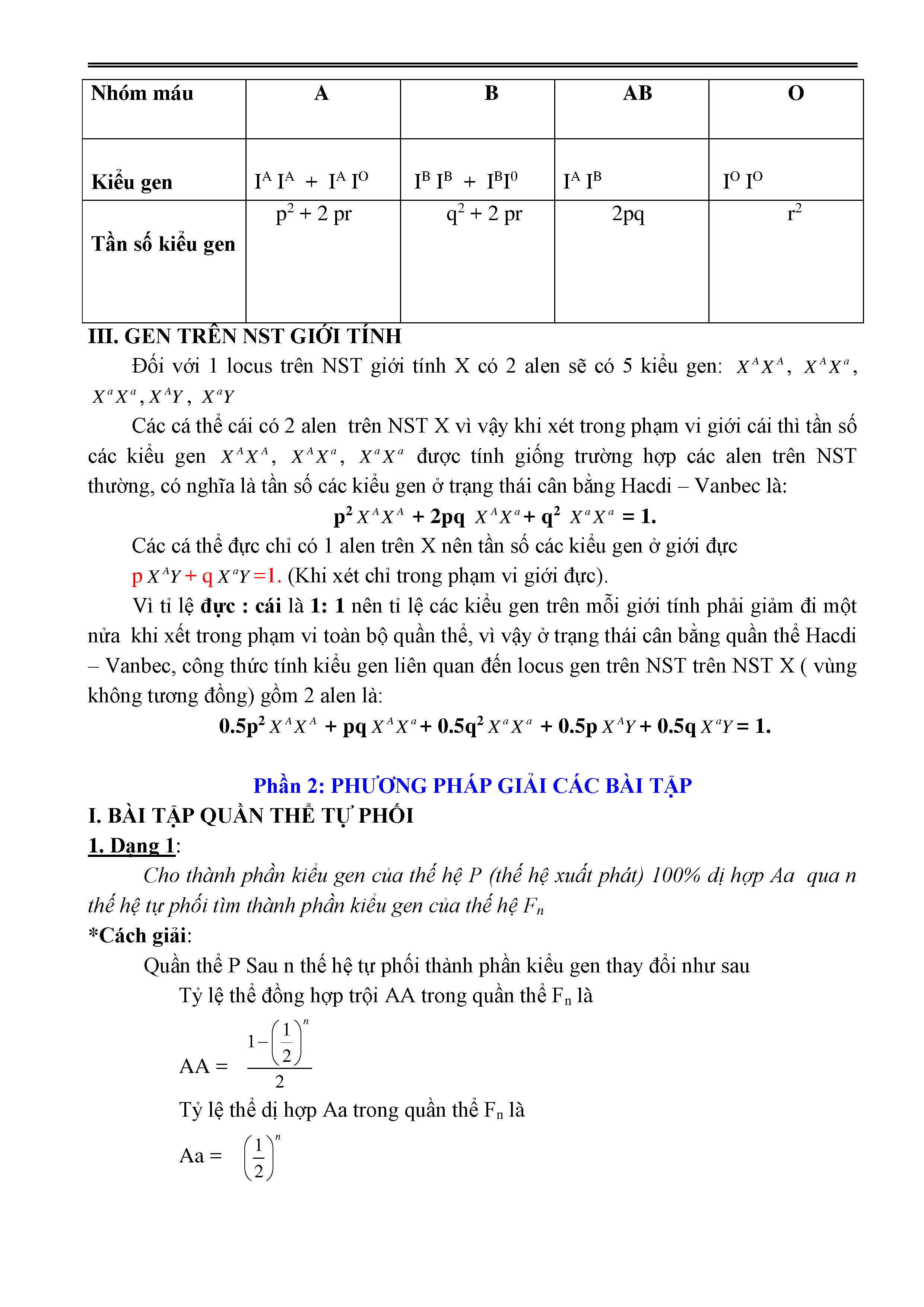 Tổng hợp bài tập di truyền quần thể trong đề thi THPT QG môn Sinh học
