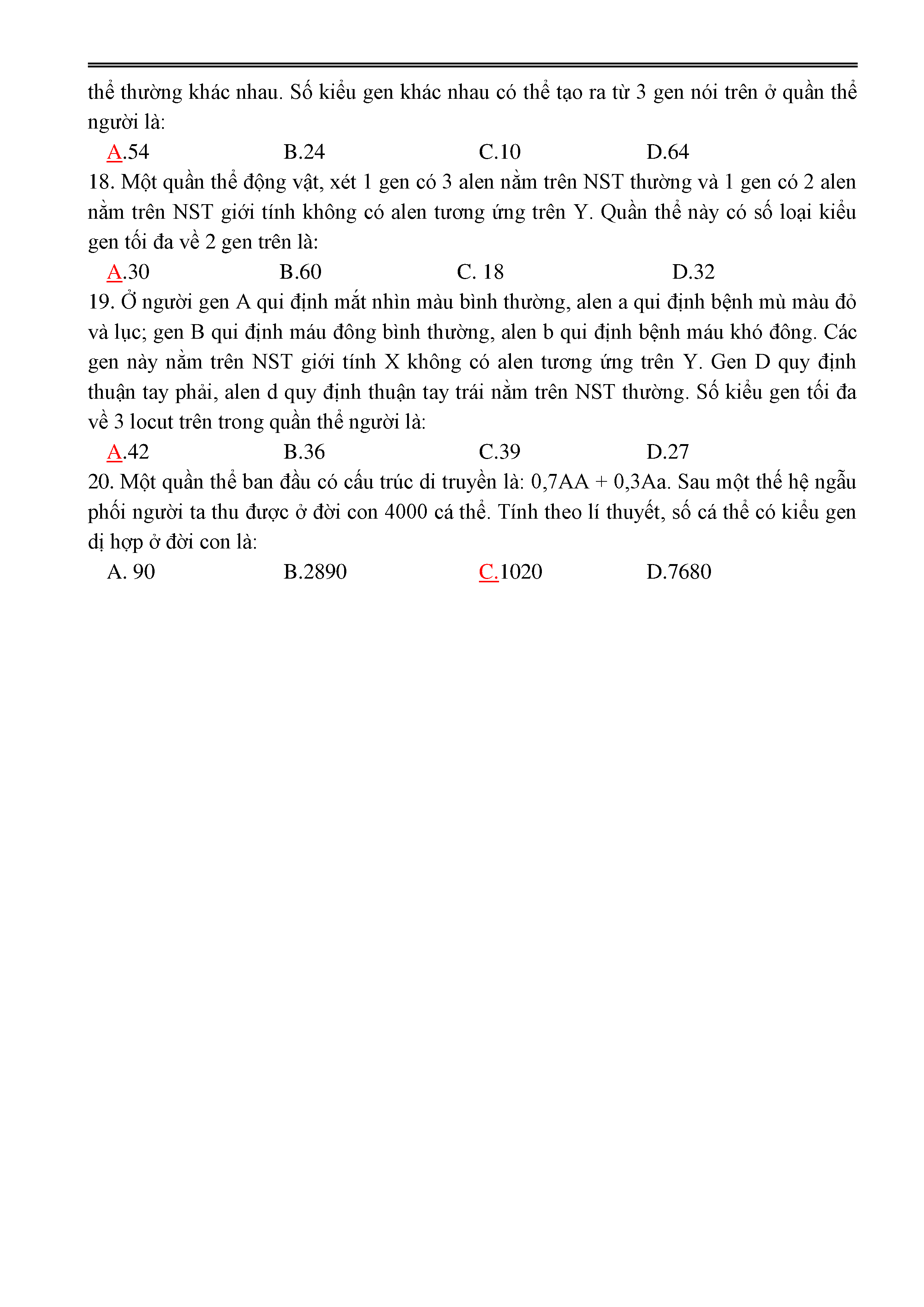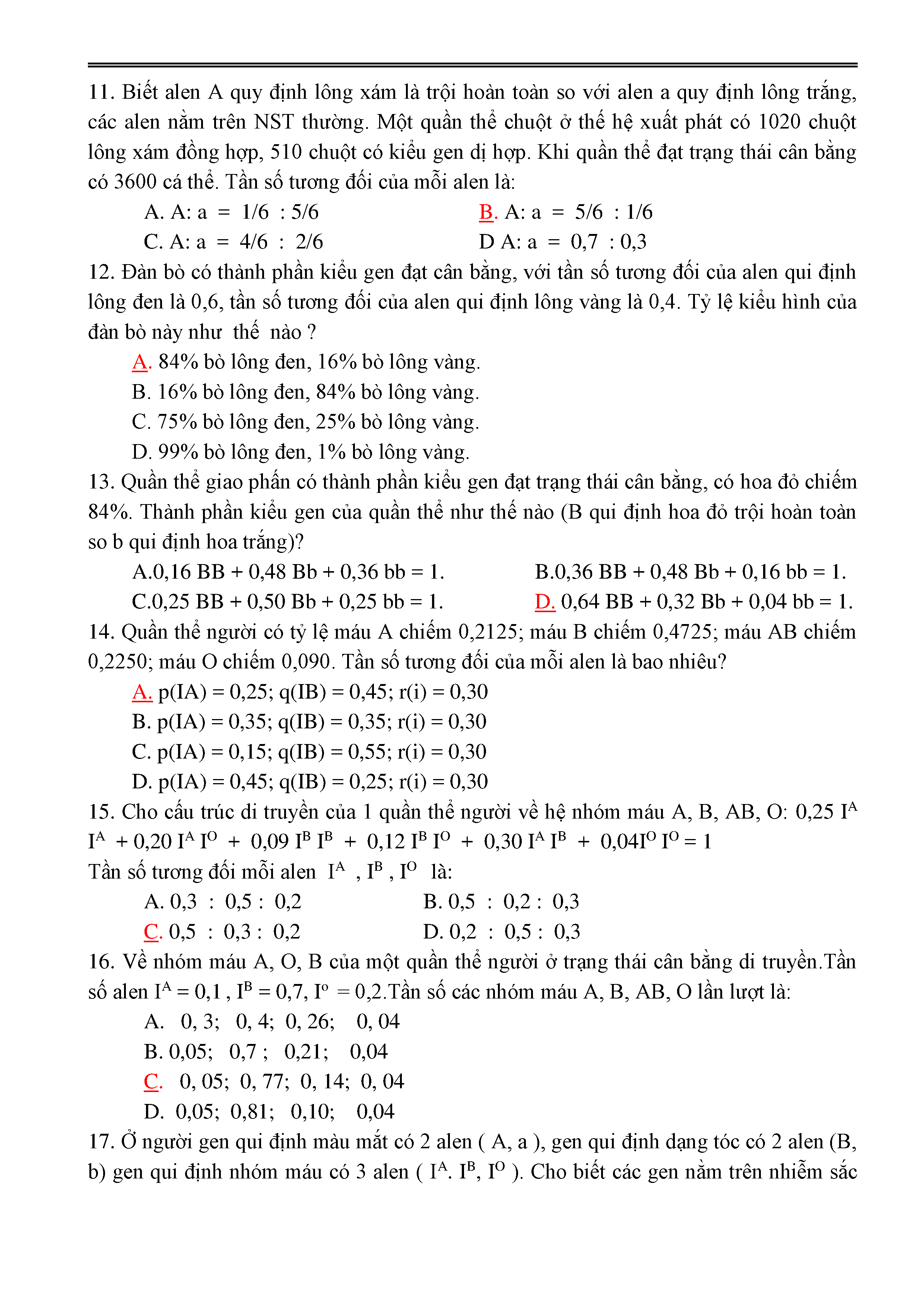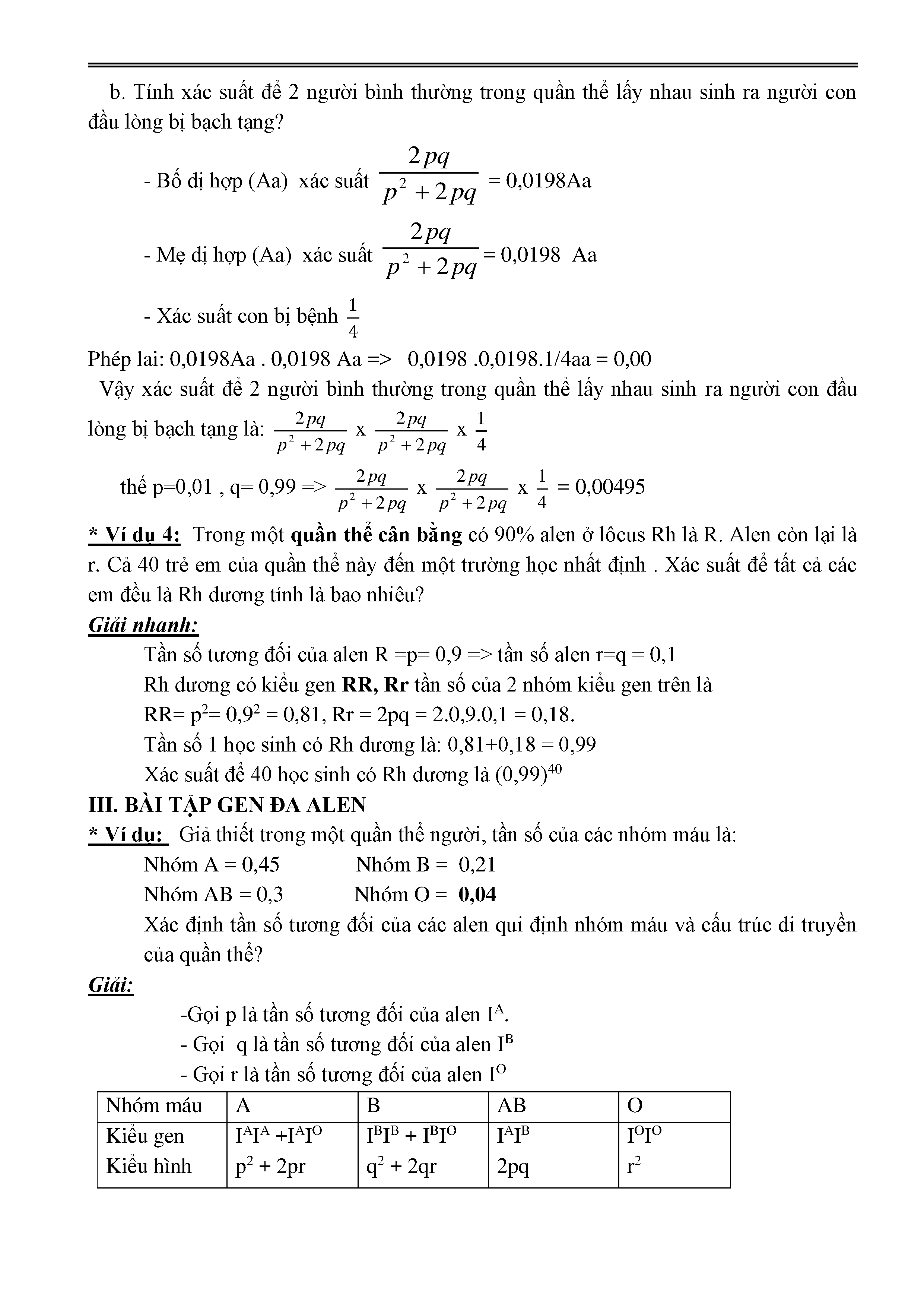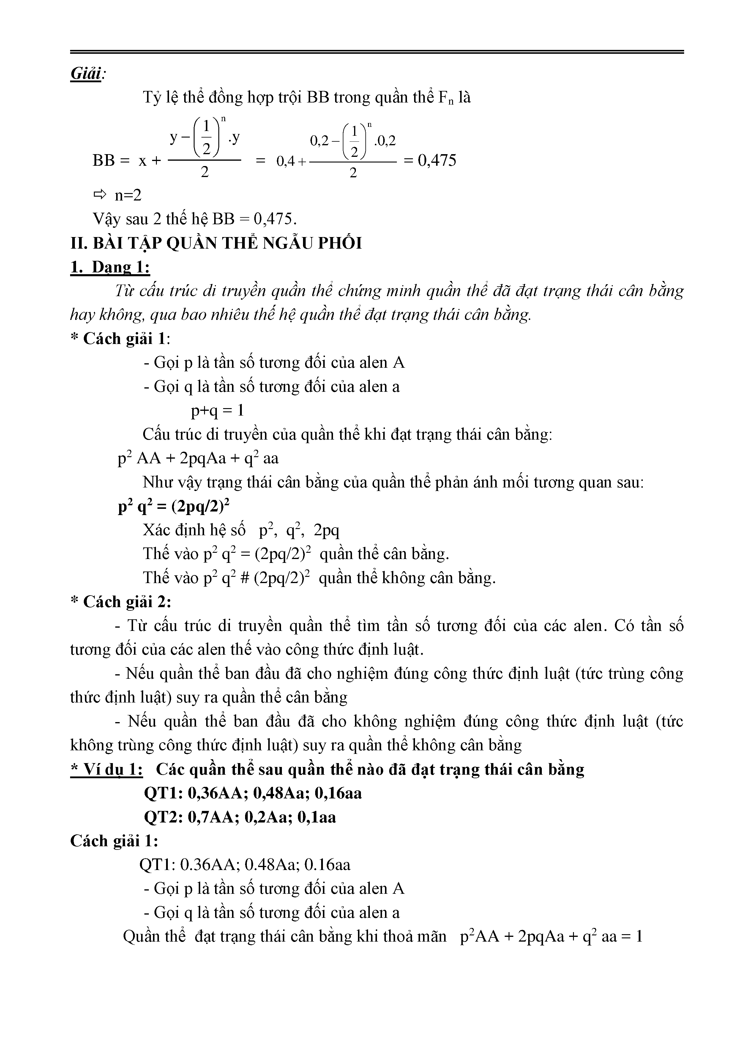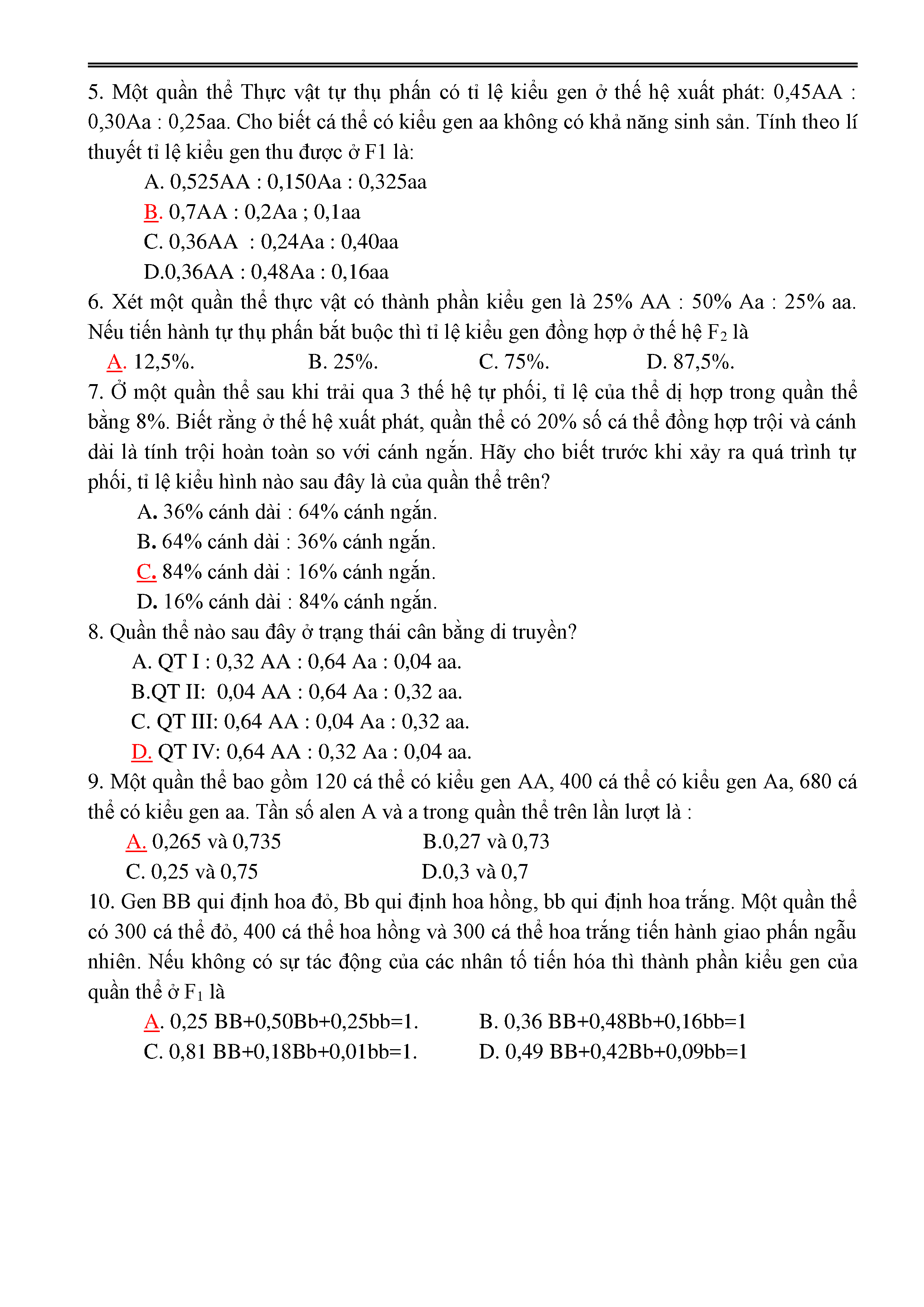 Tổng hợp bài tập di truyền quần thể trong đề thi THPT QG môn Sinh học
