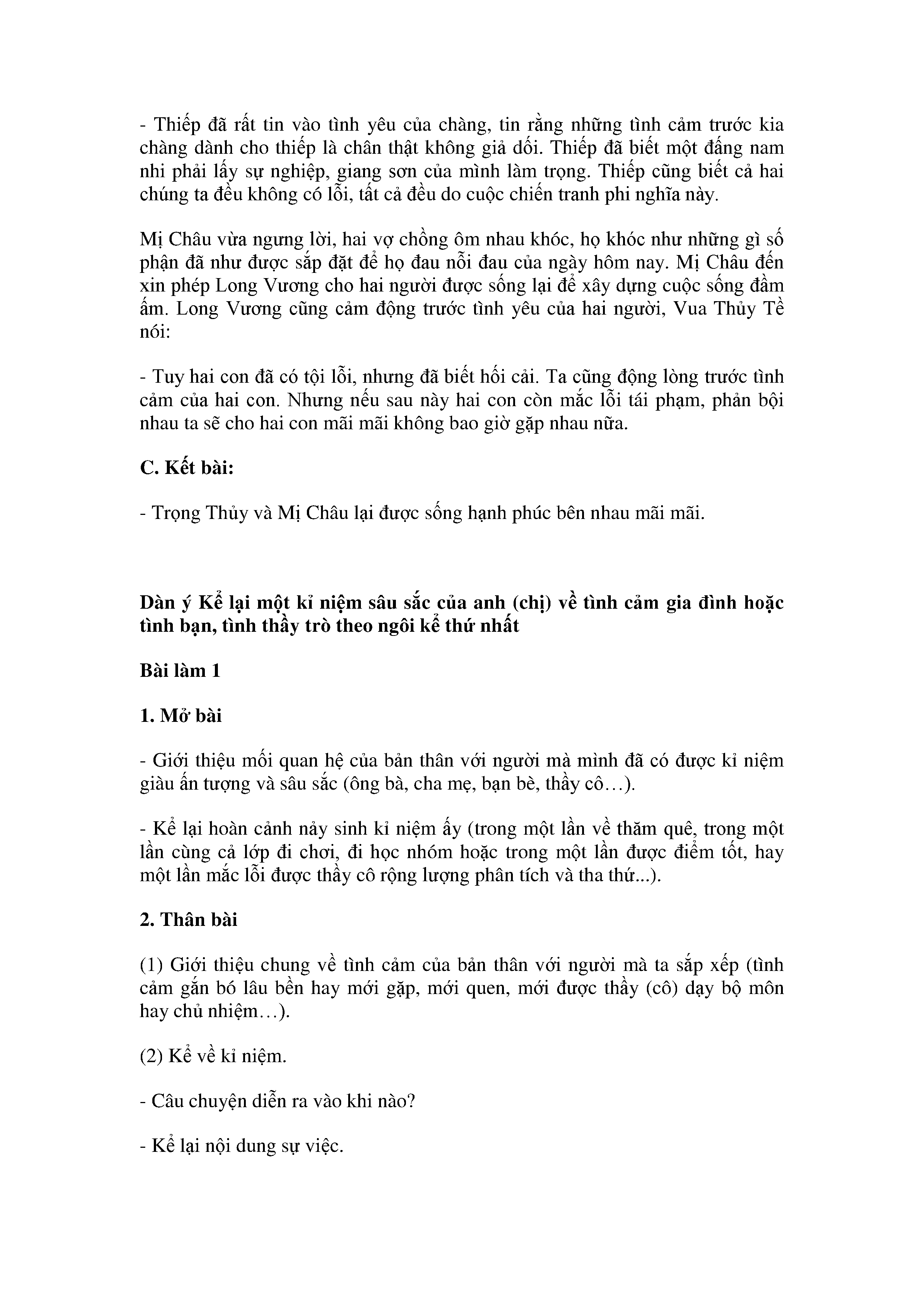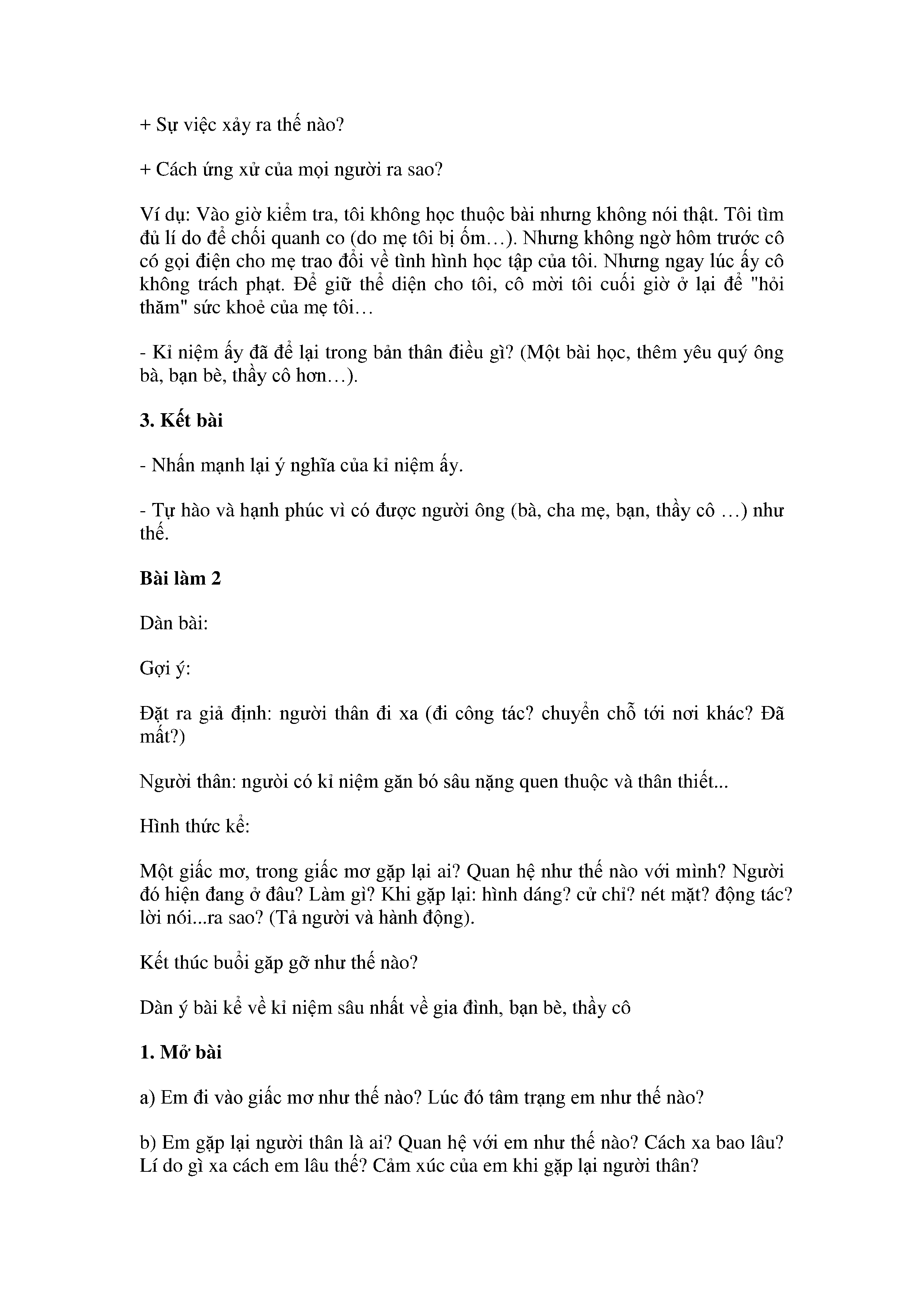 Hướng dẫn lập dàn ý một số bài văn tự sự