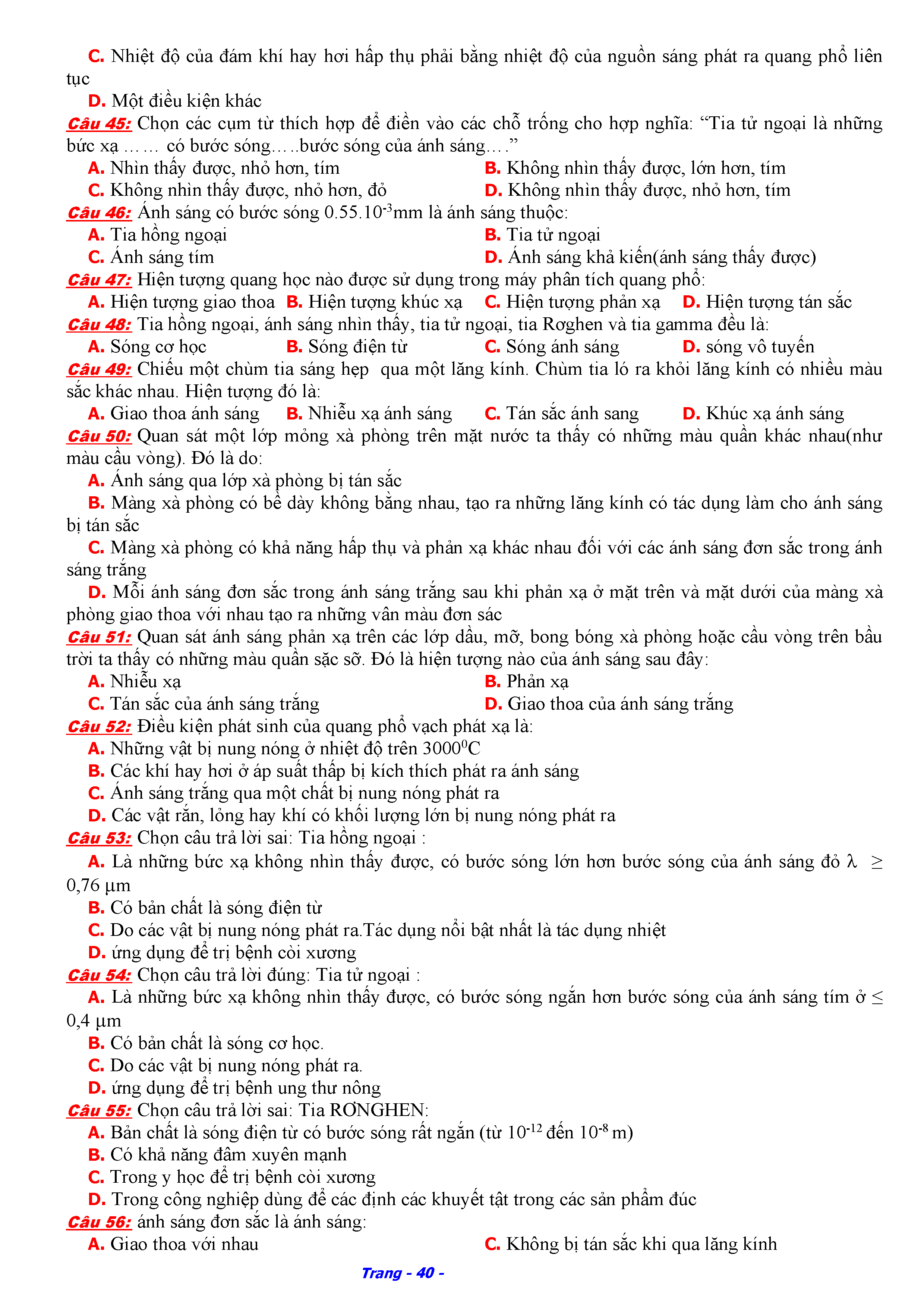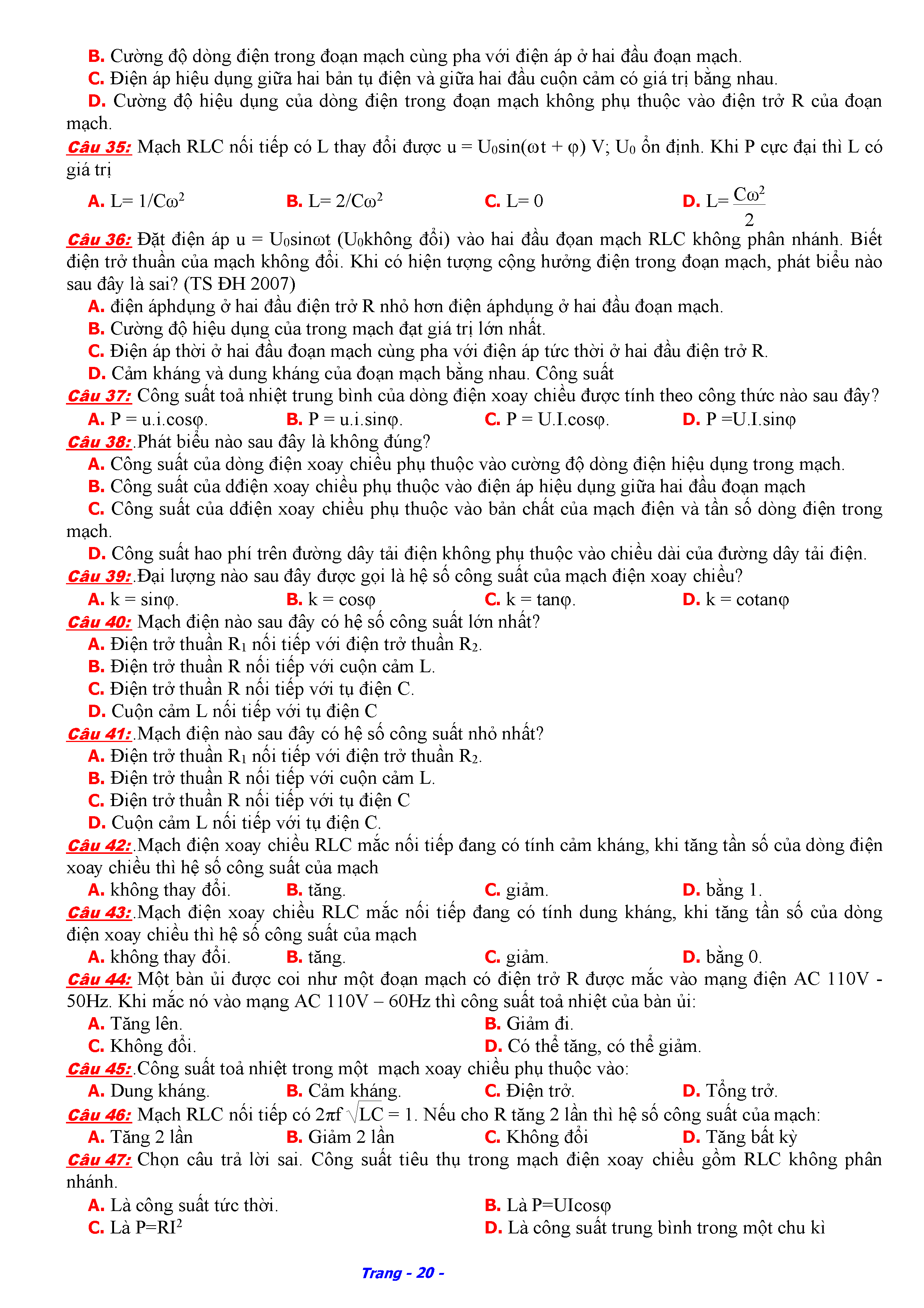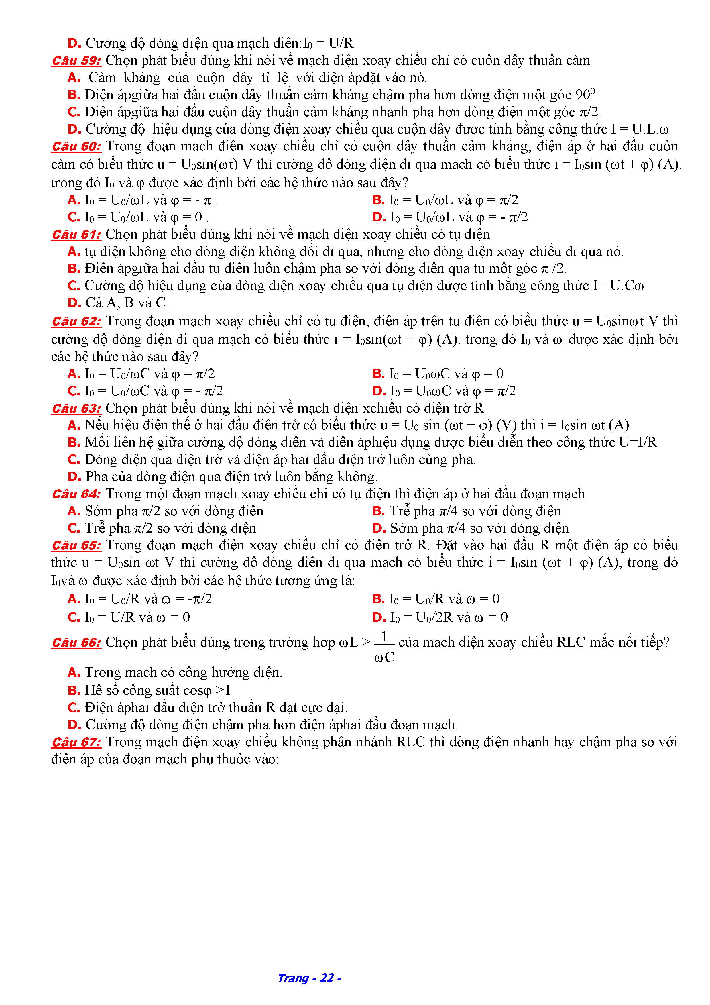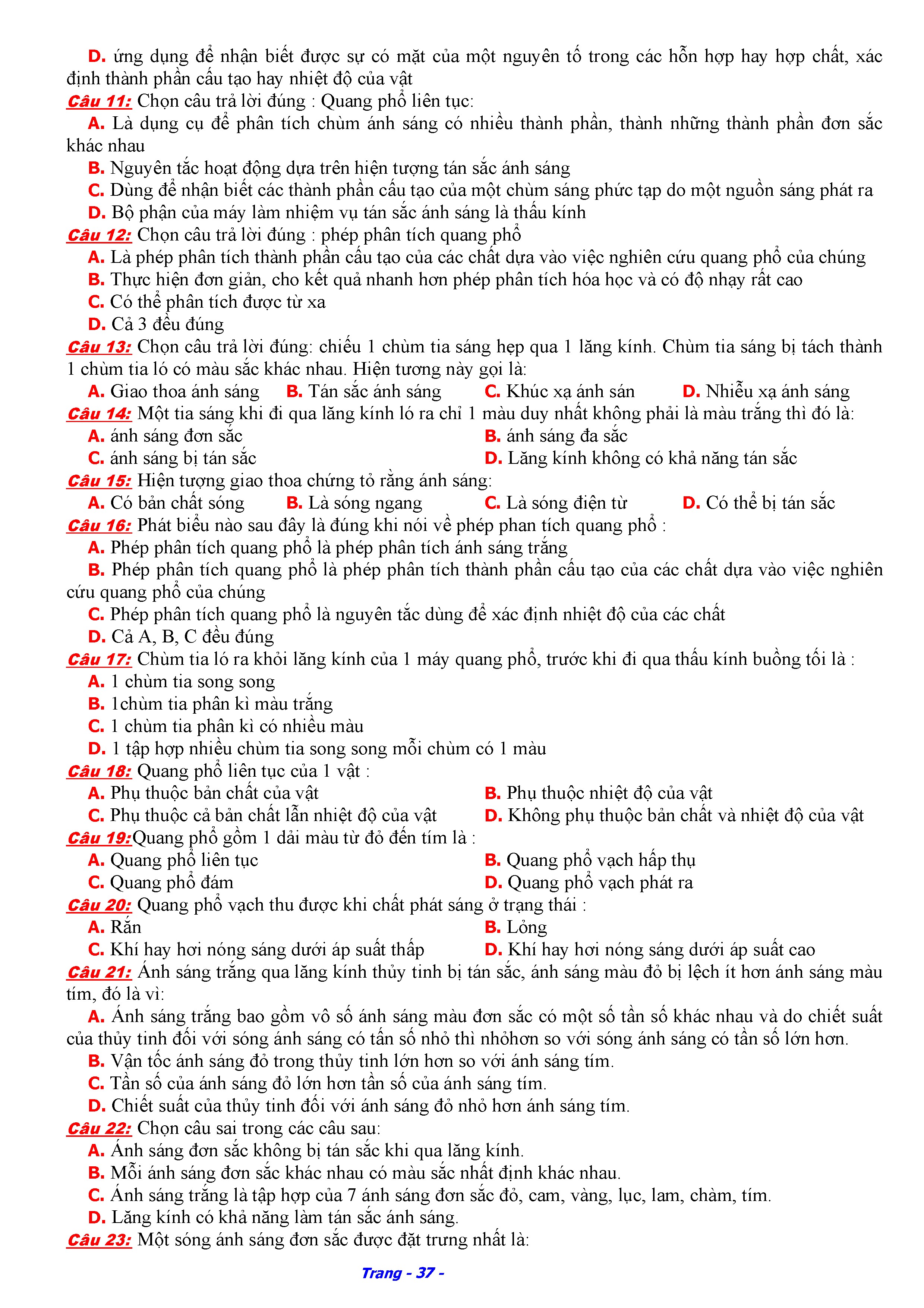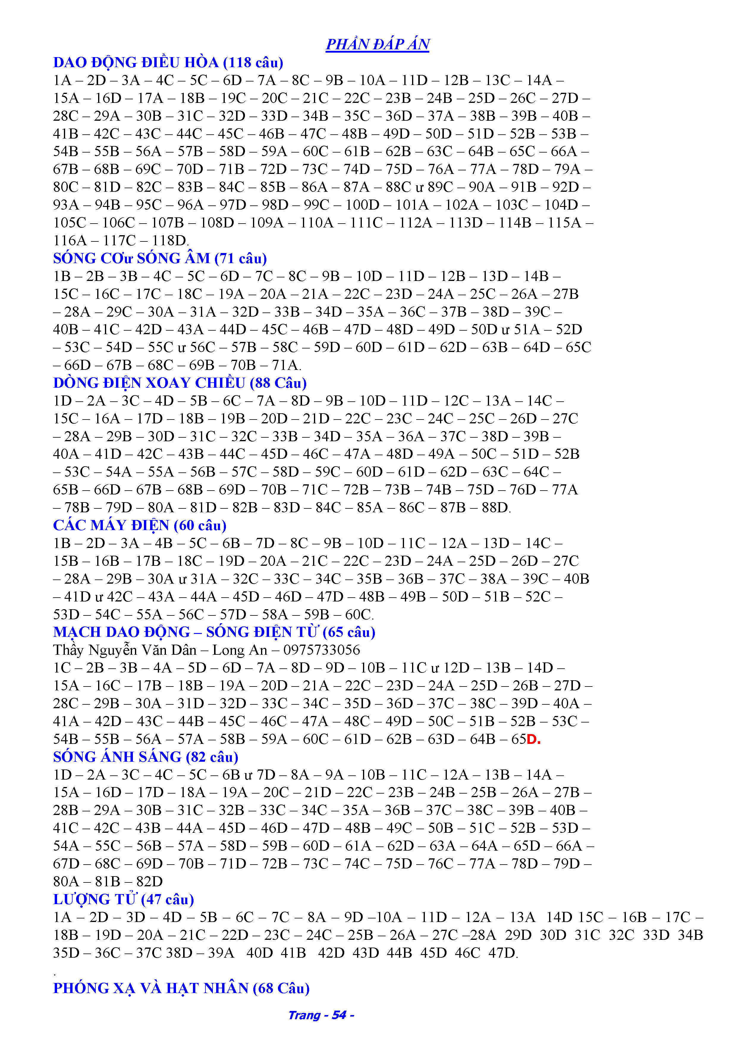 600 câu trắc nghiệm lý thuyết Vật lí 12
