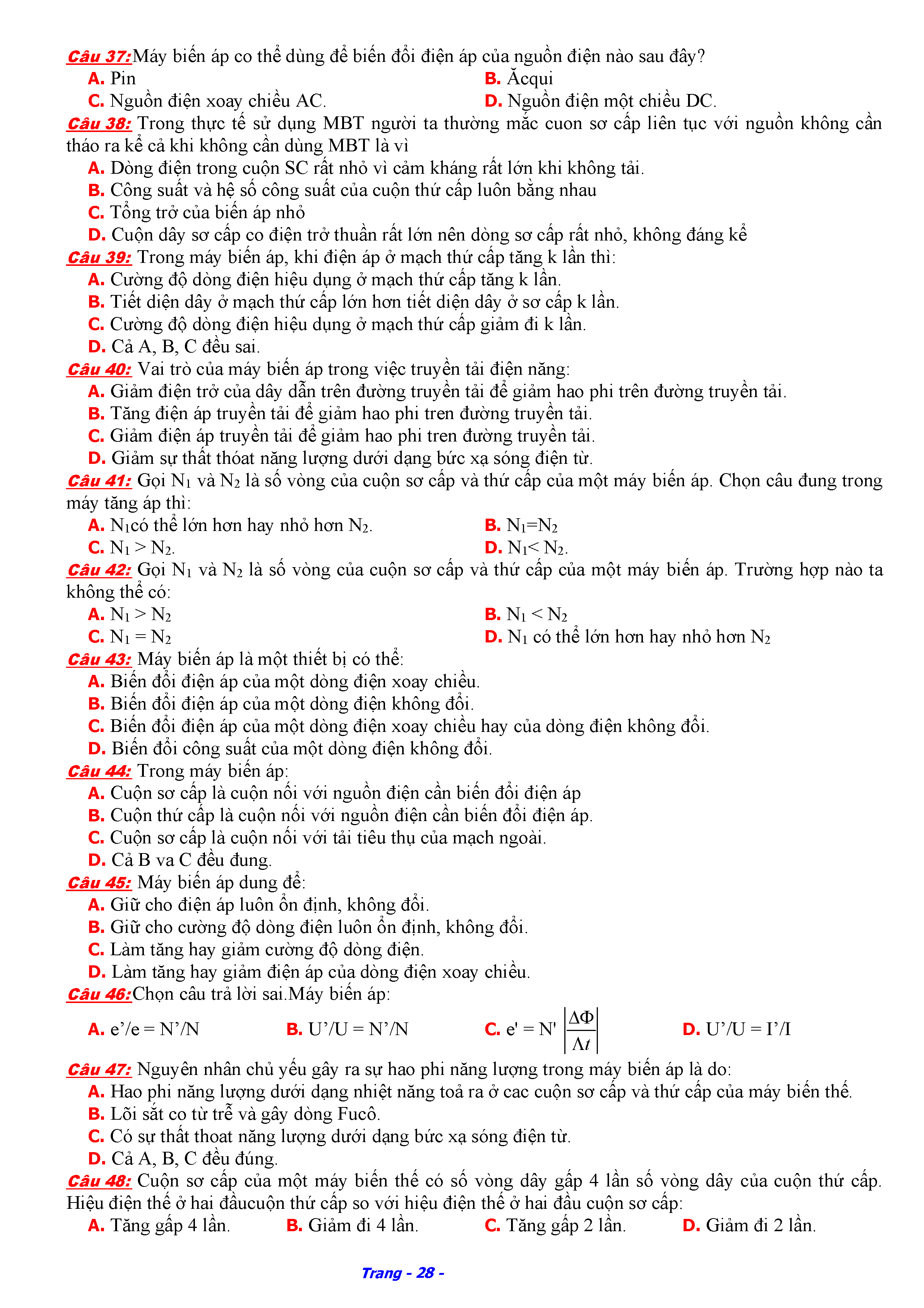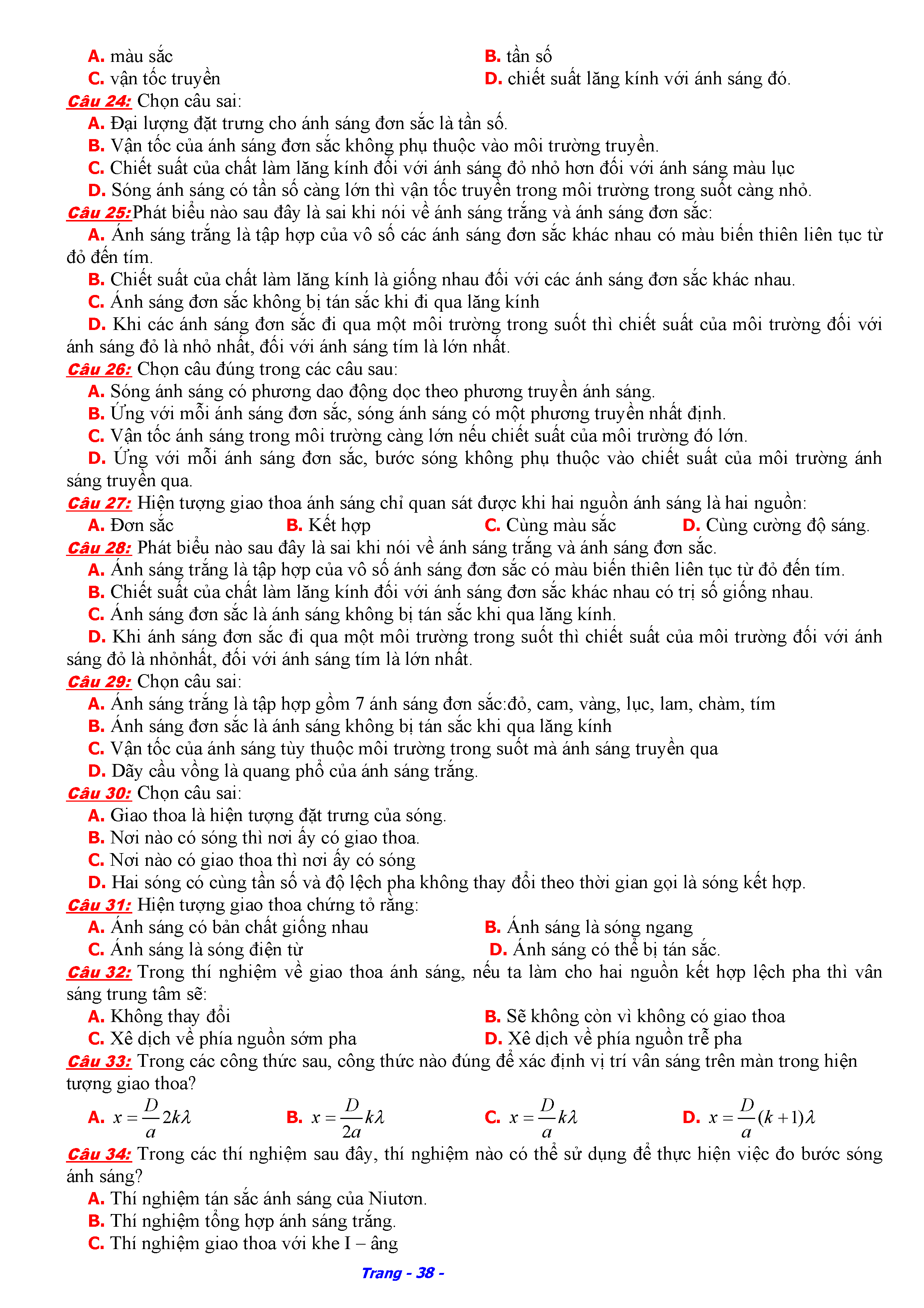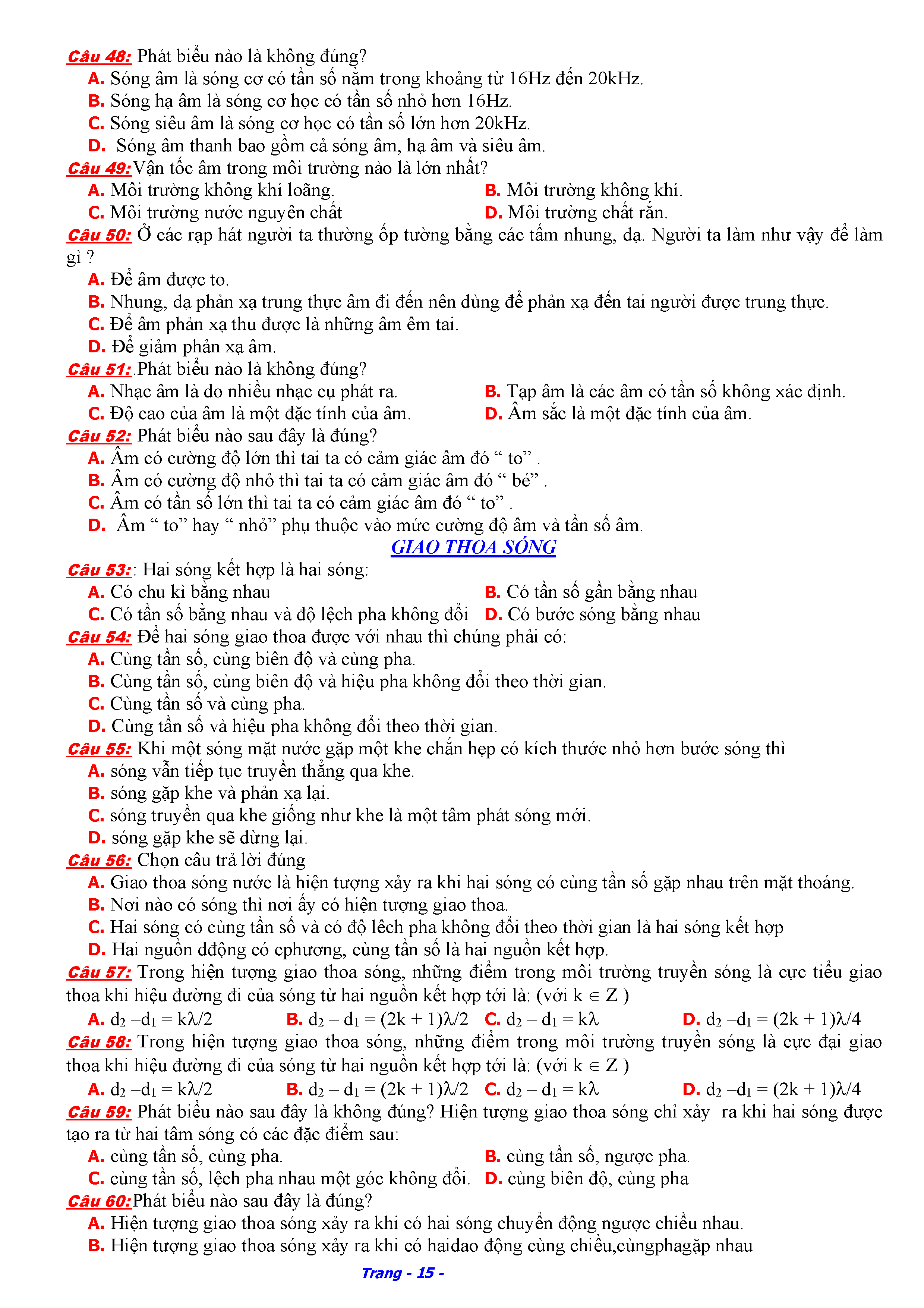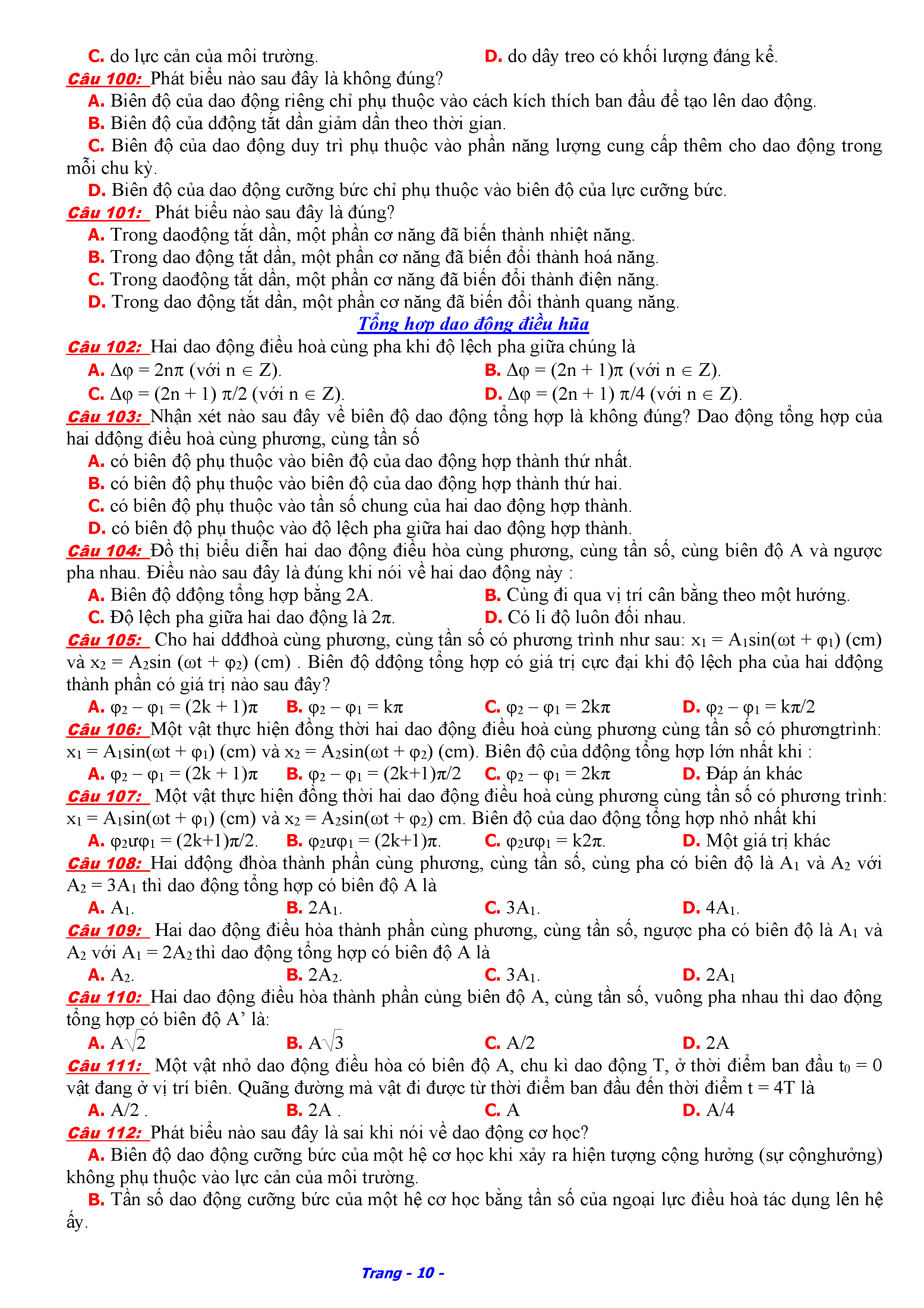 600 câu trắc nghiệm lý thuyết Vật lí 12