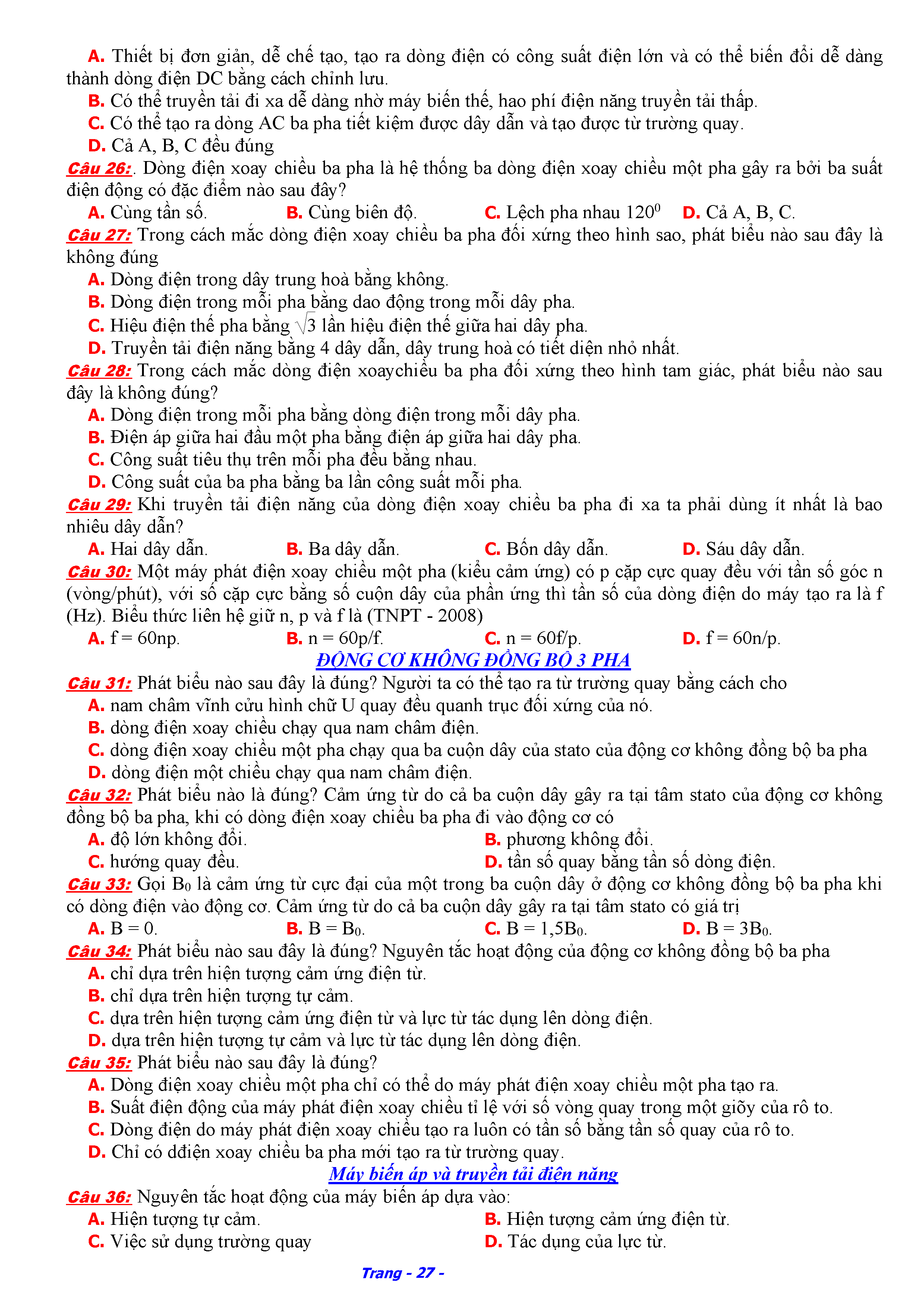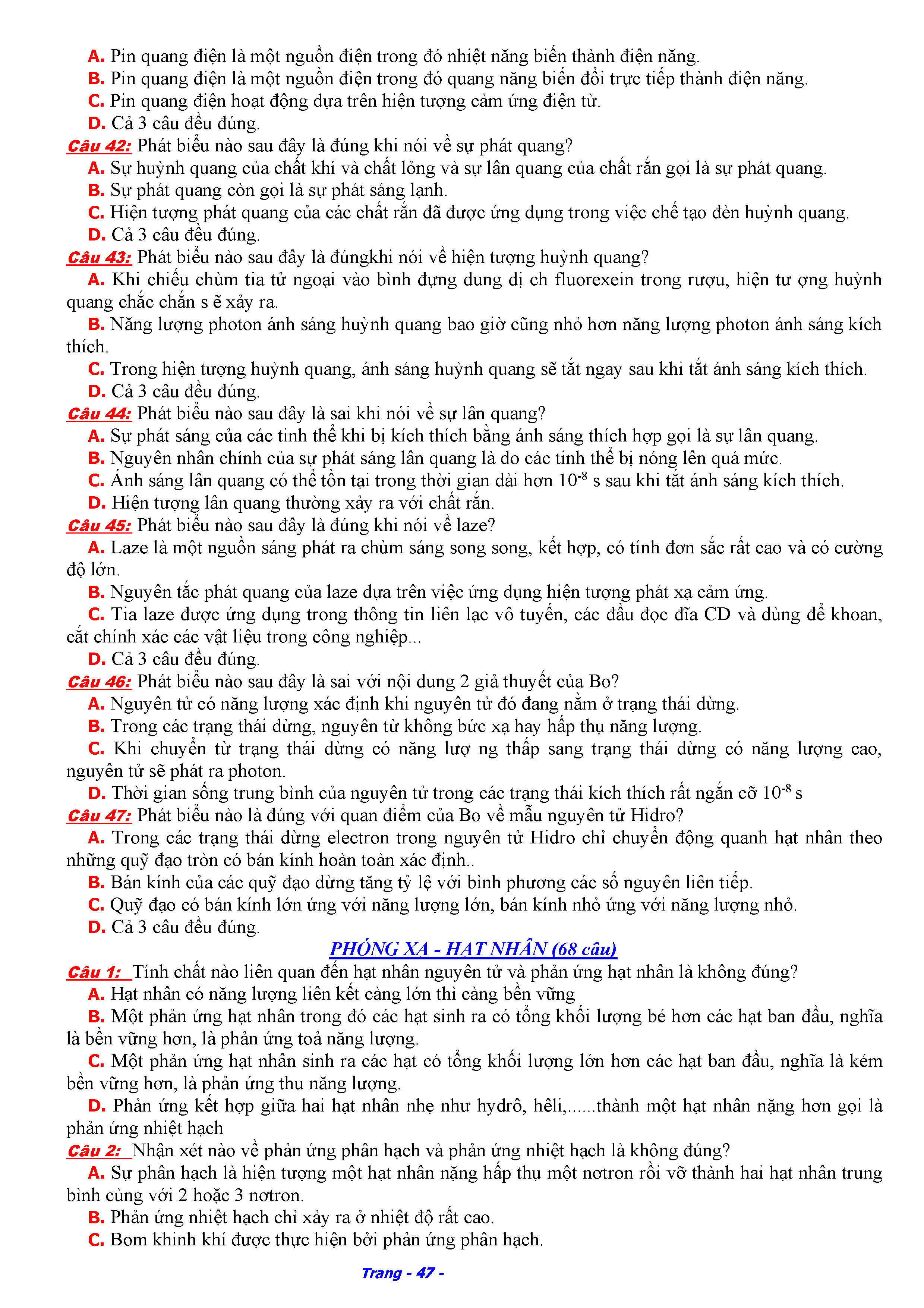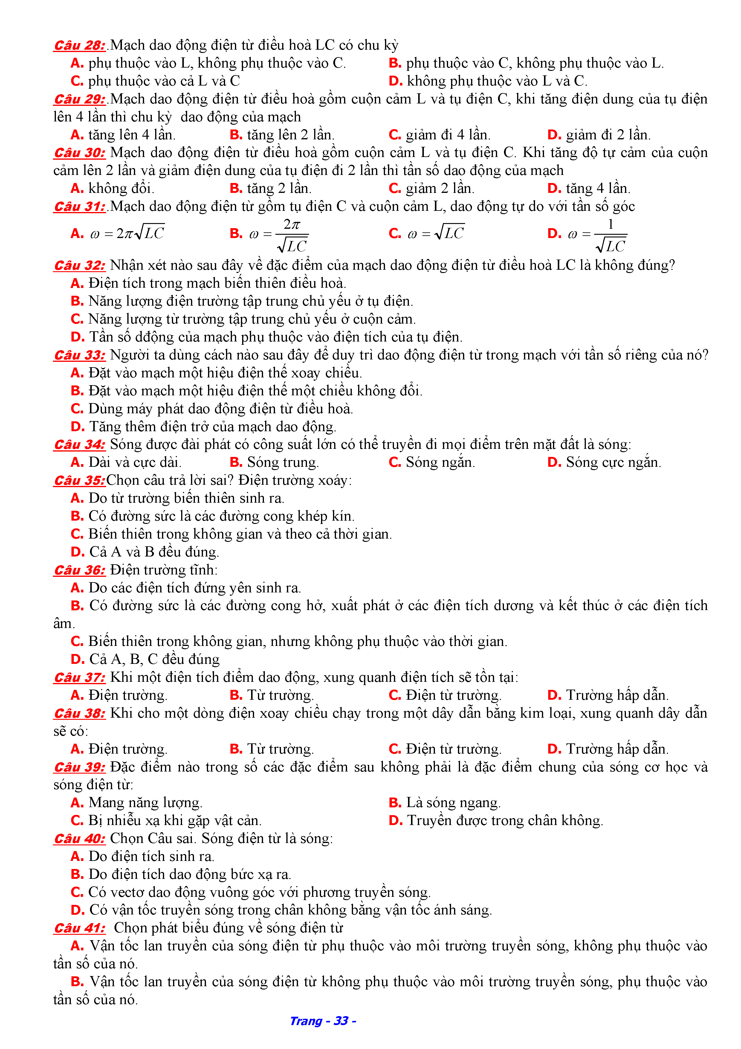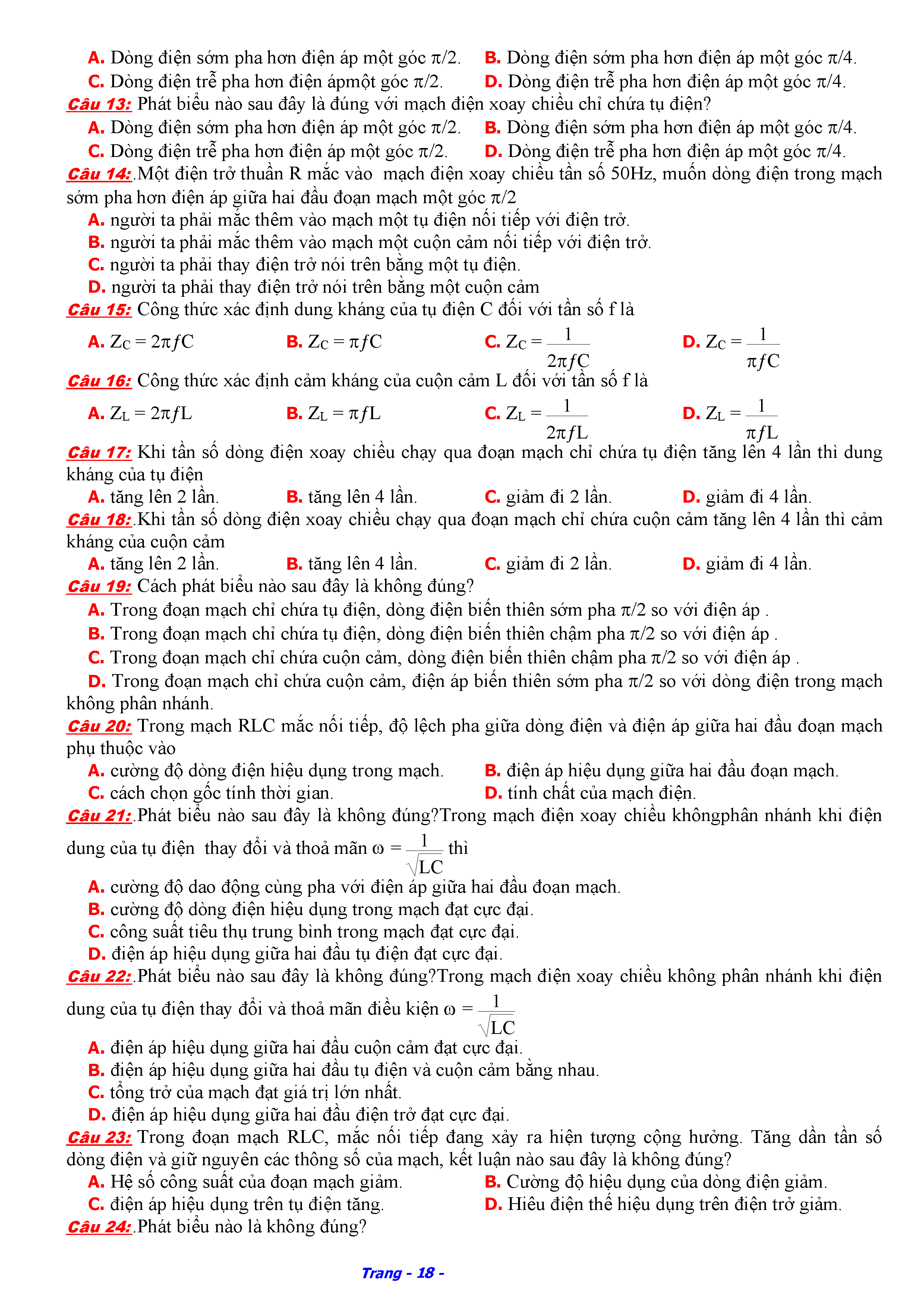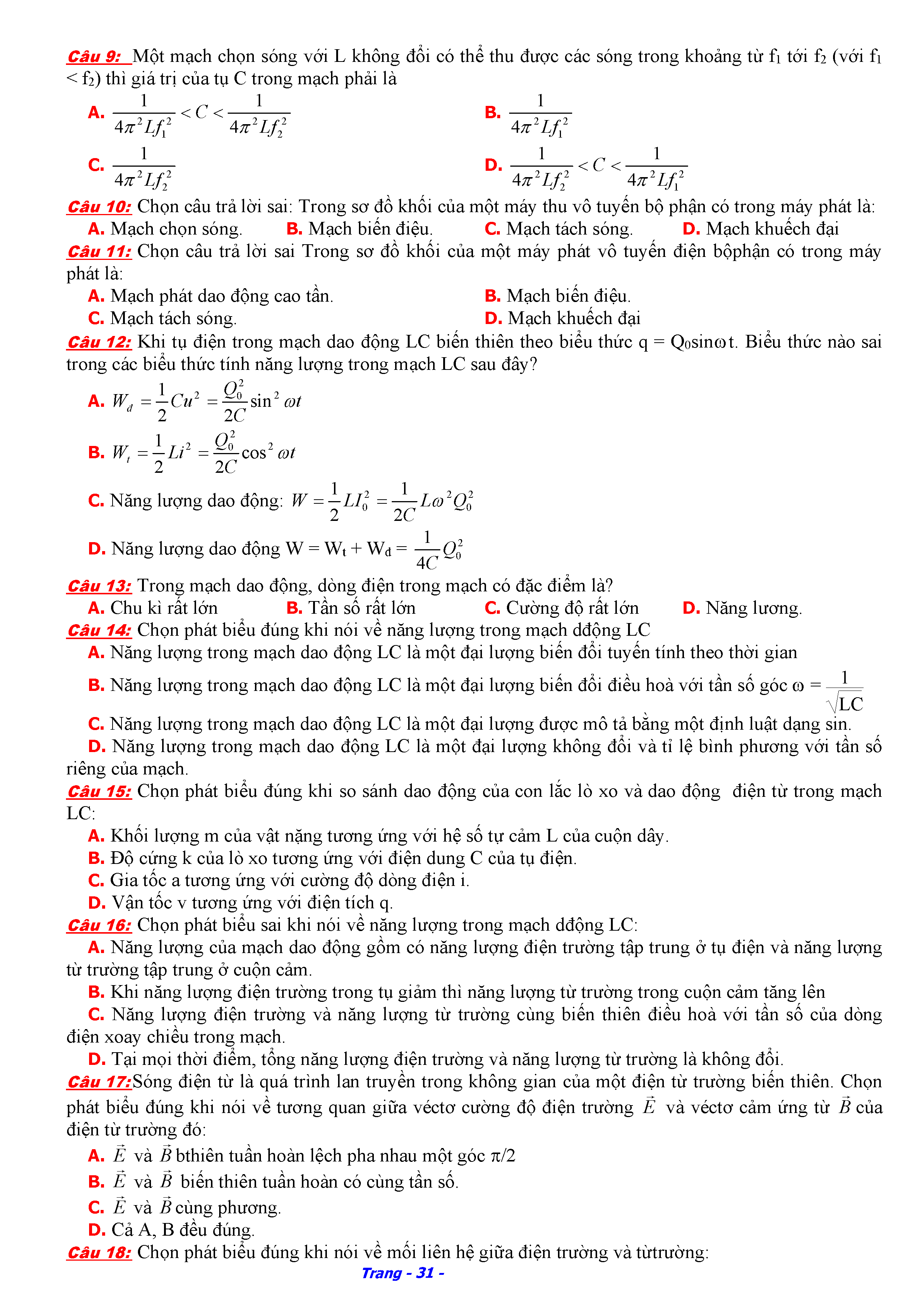600 câu trắc nghiệm lý thuyết Vật lí 12