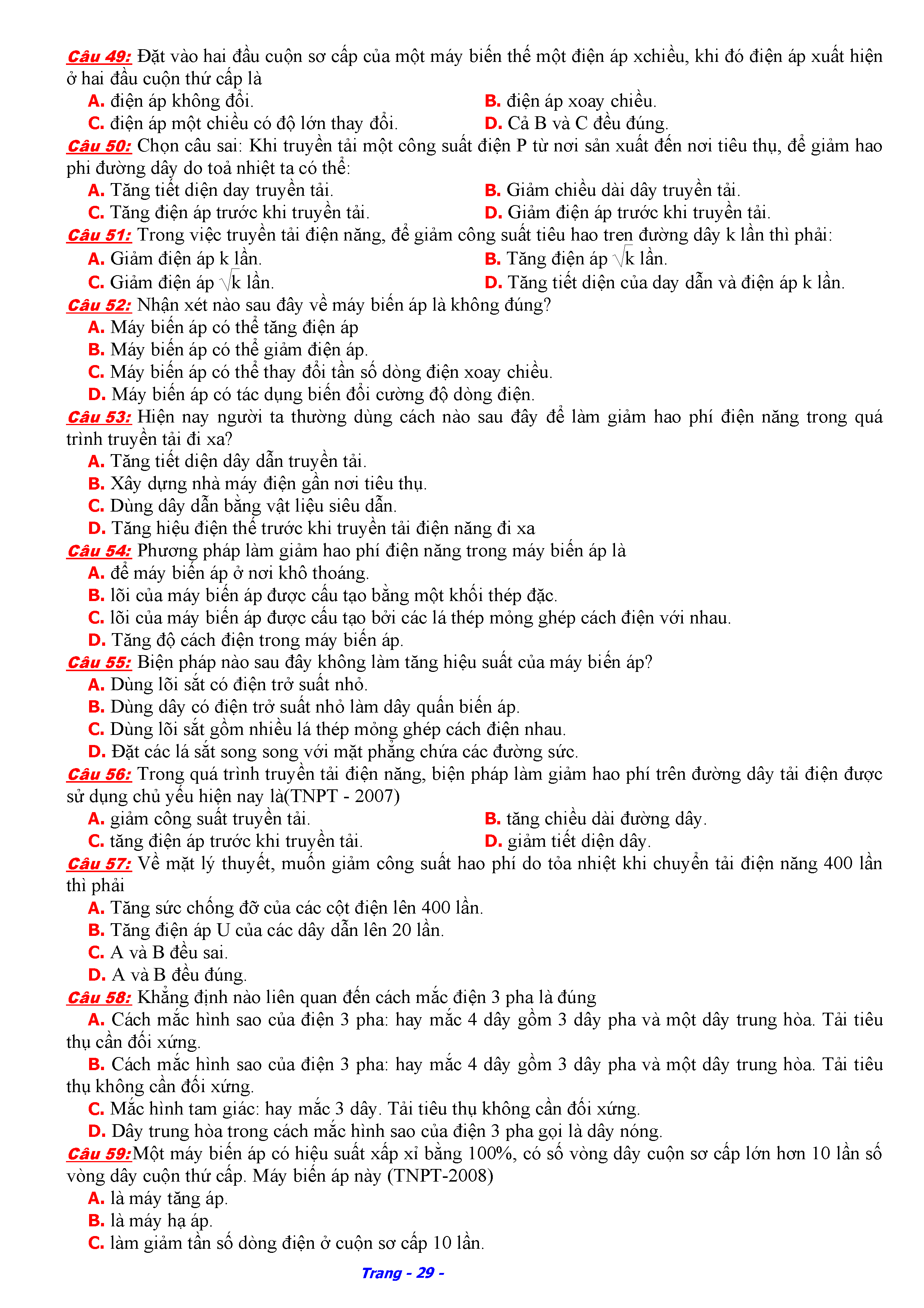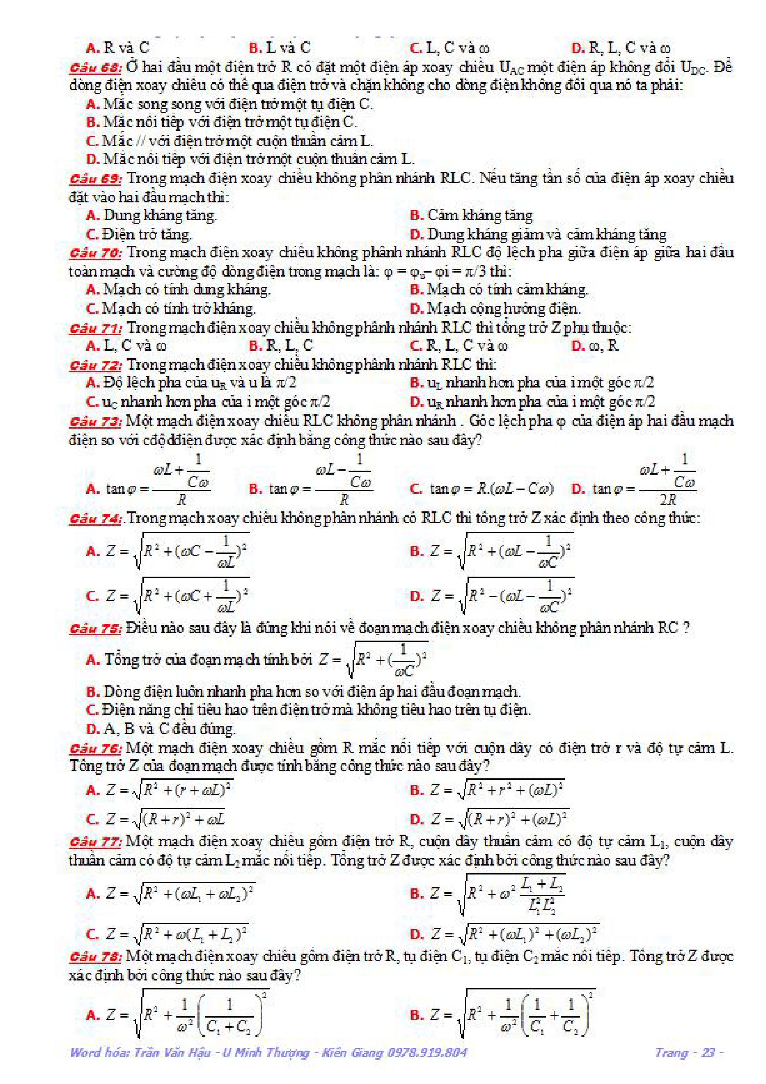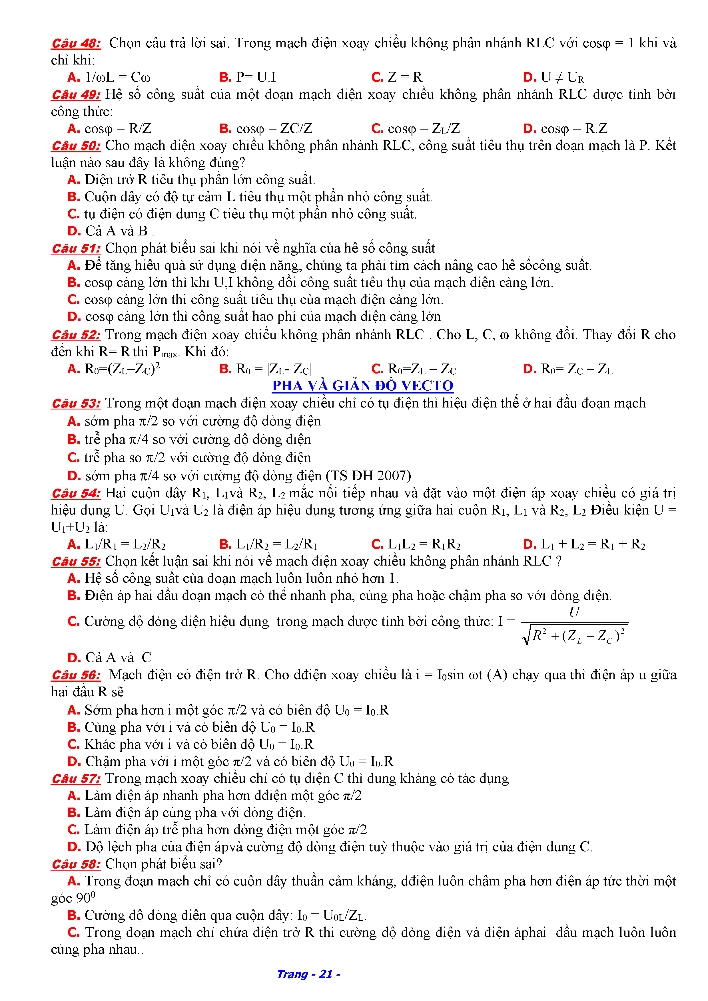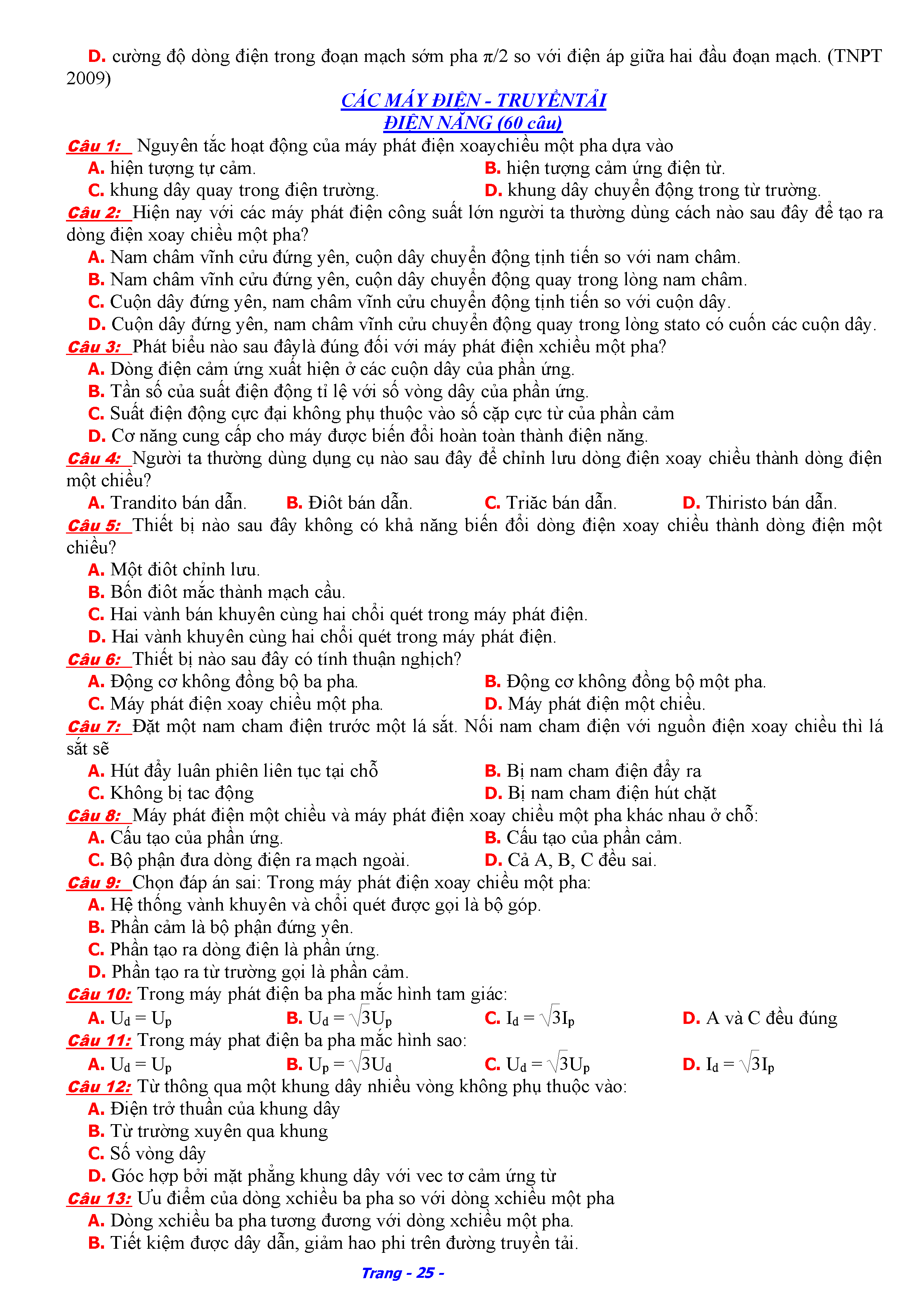 600 câu trắc nghiệm lý thuyết Vật lí 12