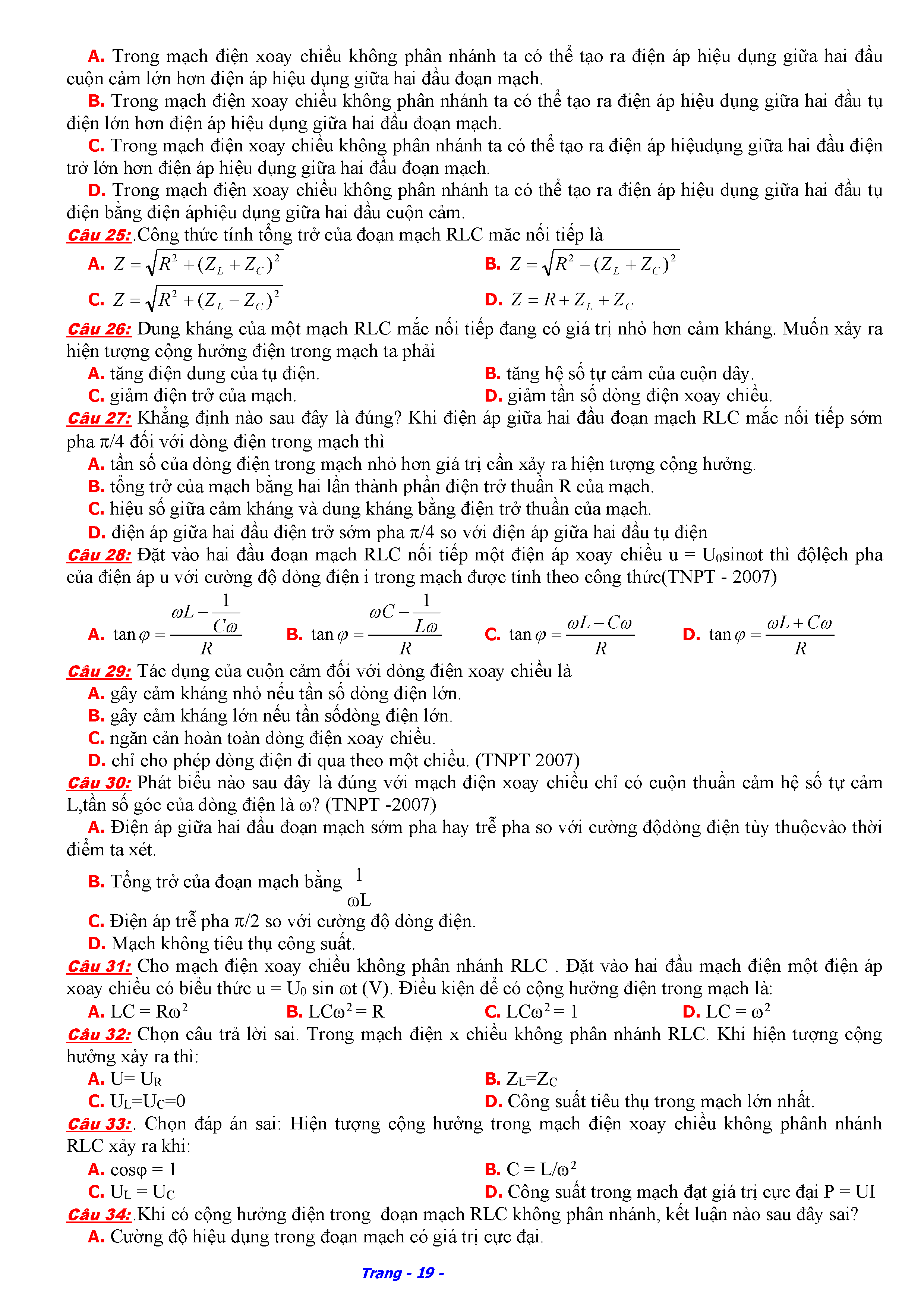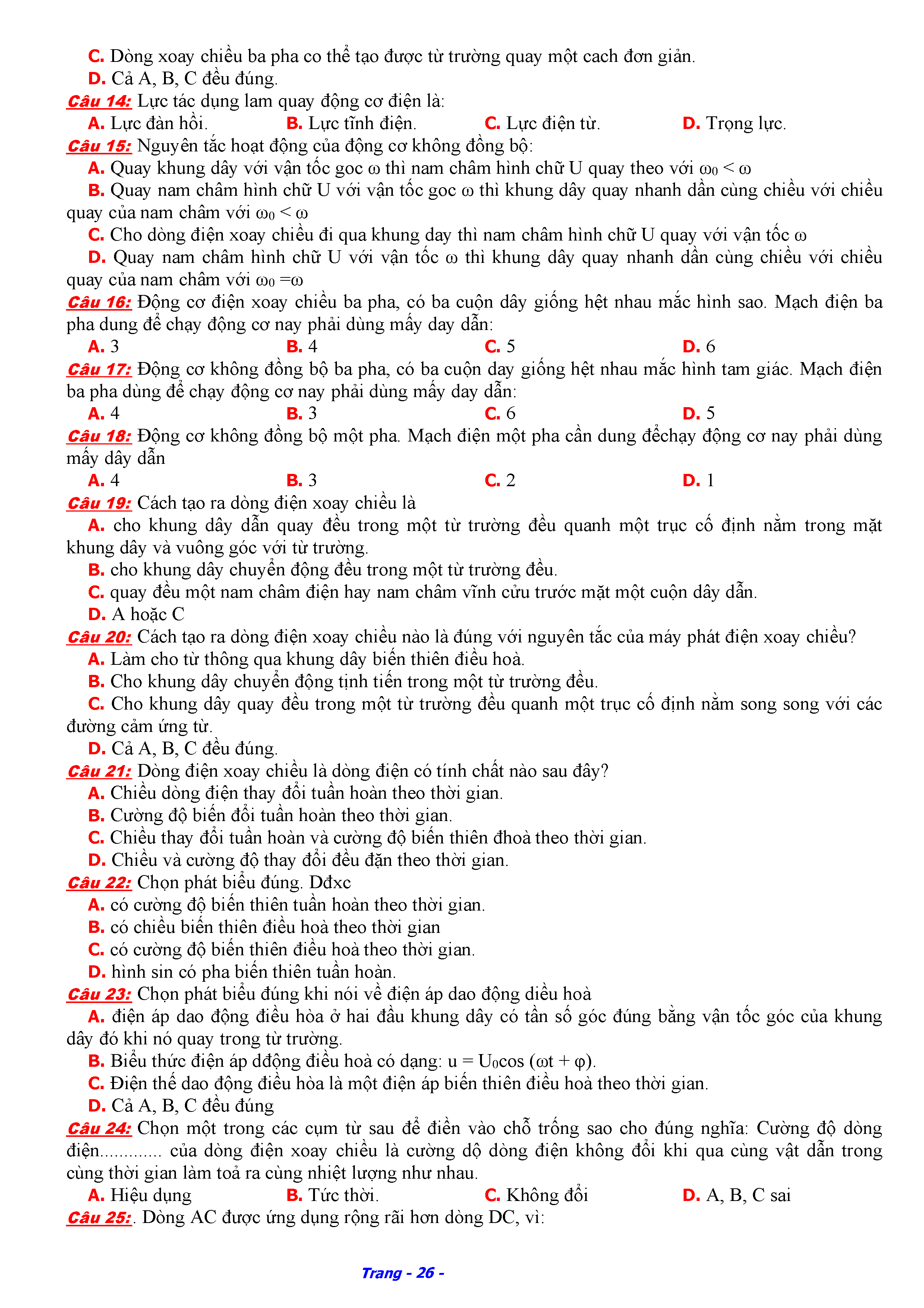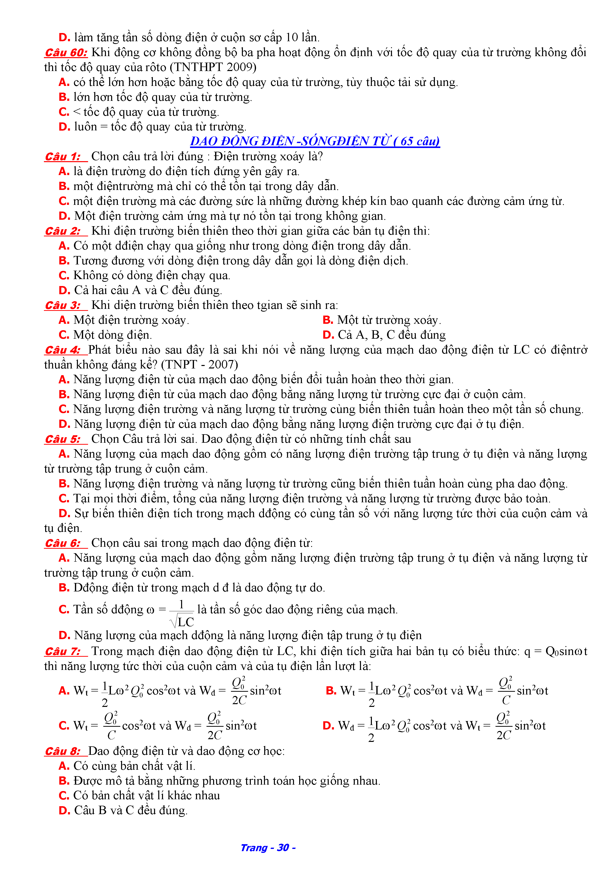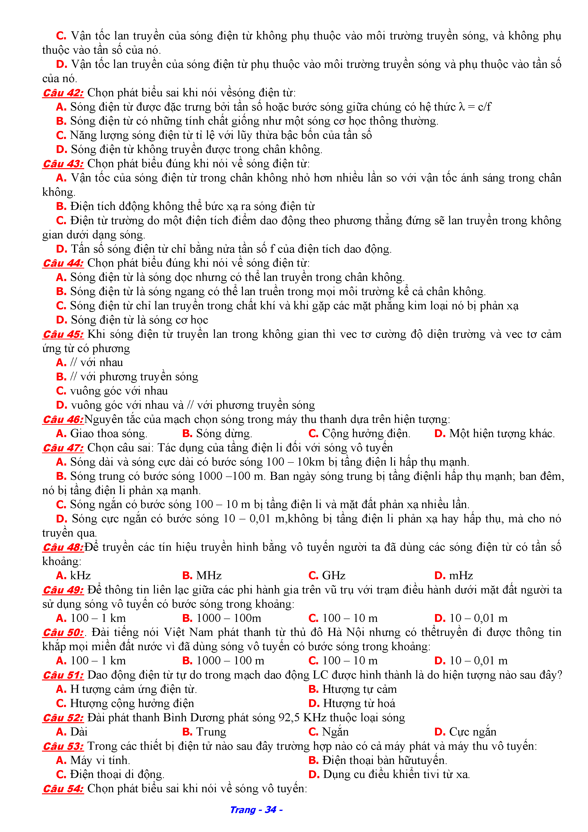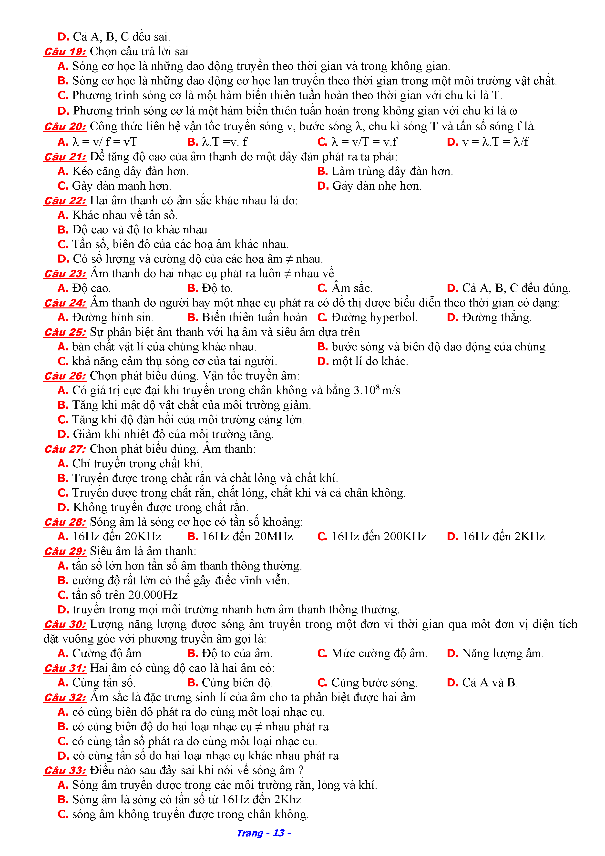 600 câu trắc nghiệm lý thuyết Vật lí 12
