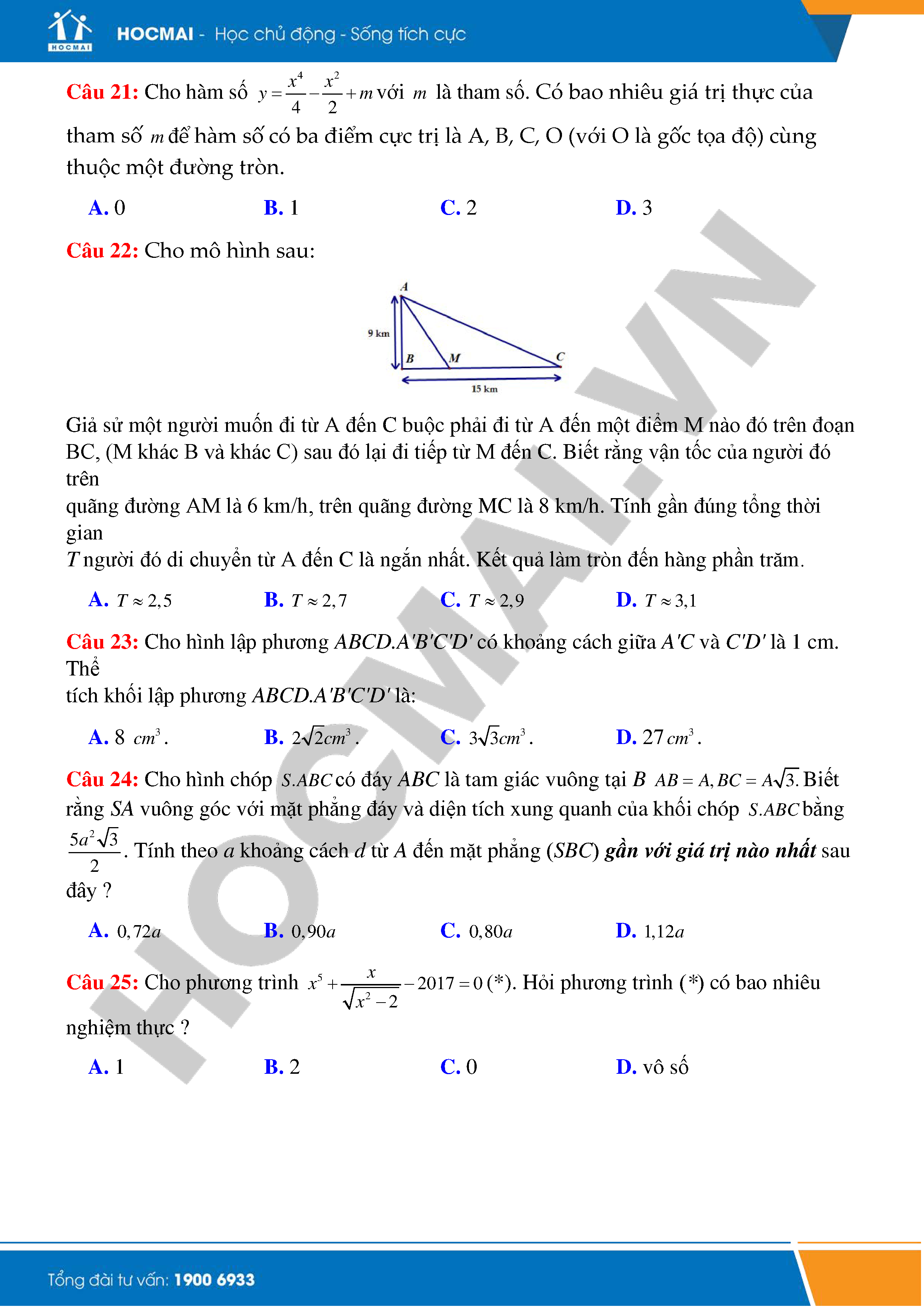 Đề kiểm tra chất lượng định kỳ môn Toán (Lần 7) Năm học 2017-2018 do HOCMAI sưu tầm gồm 25 câu, mỗi câu 0,4 điểm dưới hình thức trắc nghiệm. Bộ đề xoay quanh kiến thức lớp 12. Các bạn cùng tham khảo nhé!