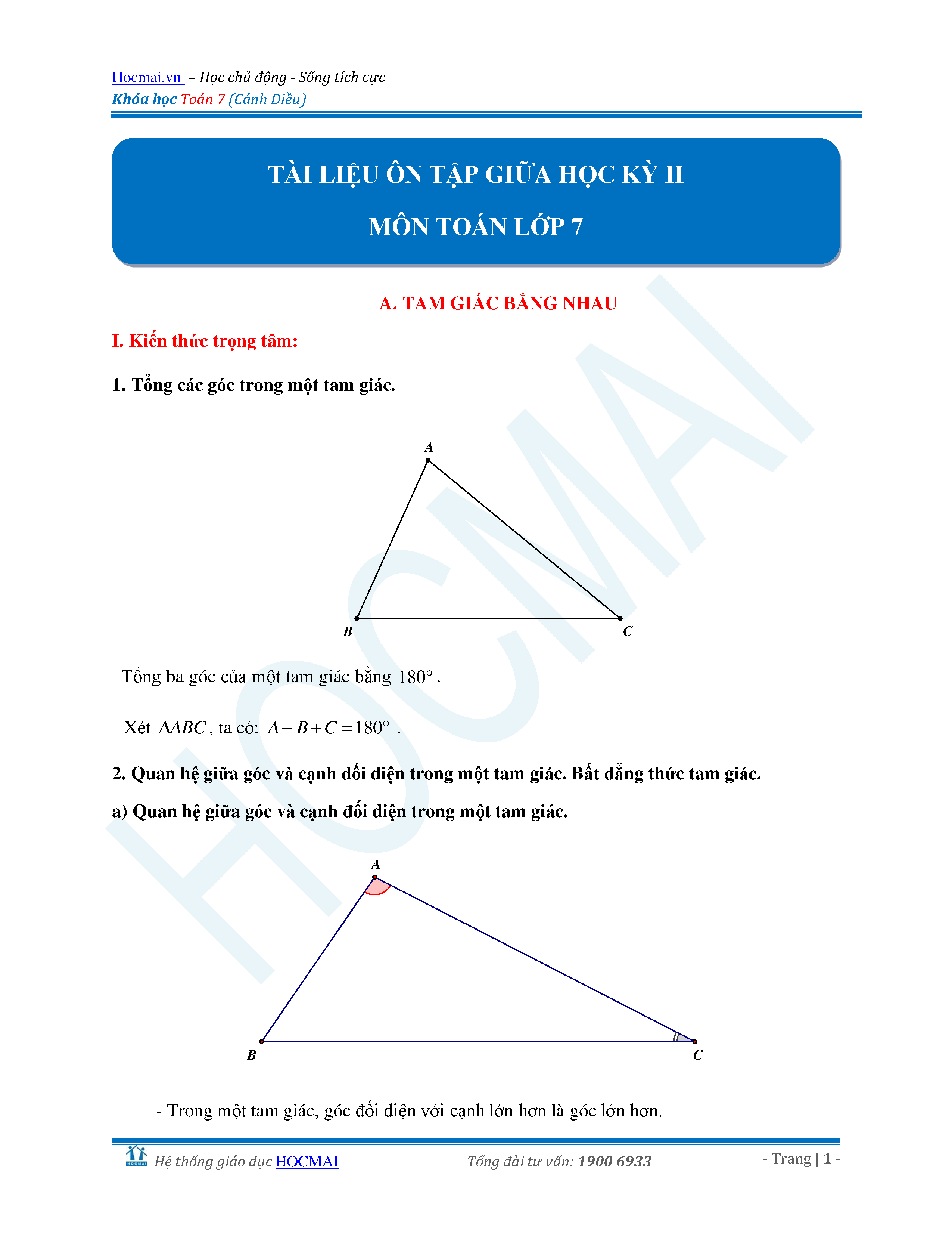 Tài liệu ôn thi giữa học kì II - Toán 7 CD