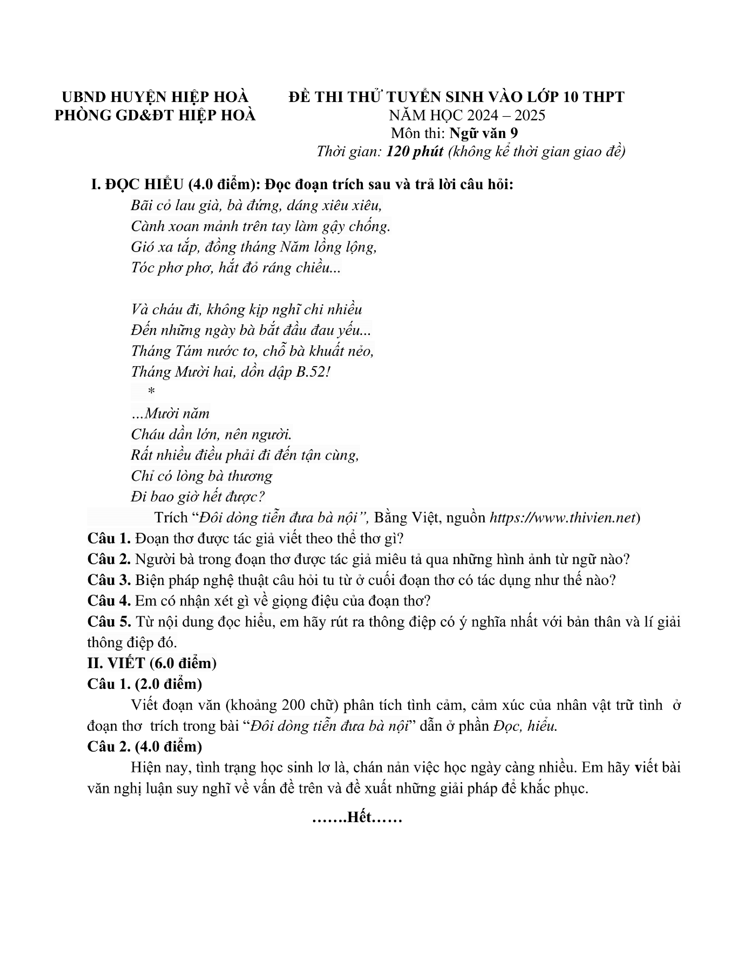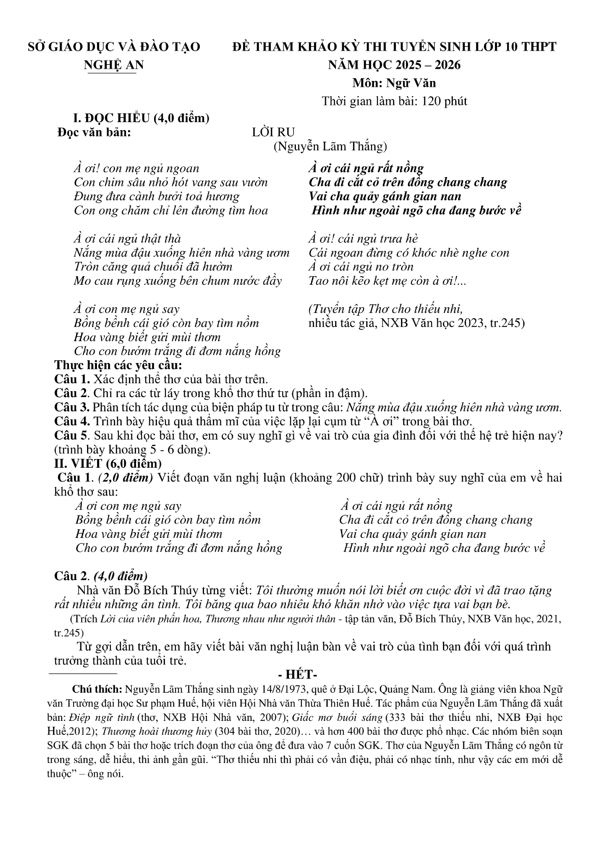 Tổng hợp đề thi thử & tham khảo môn Ngữ văn vào 10 năm 2025
