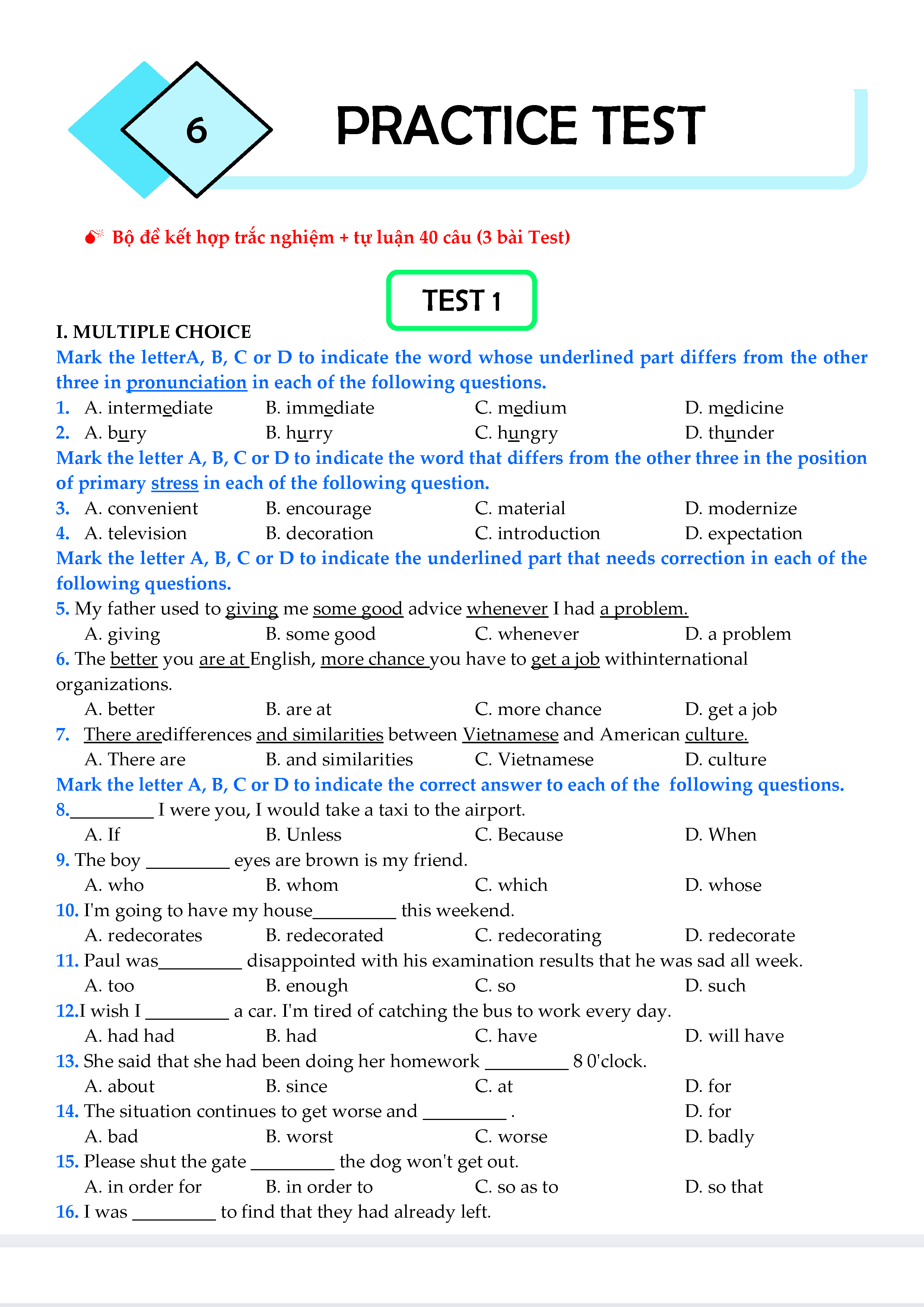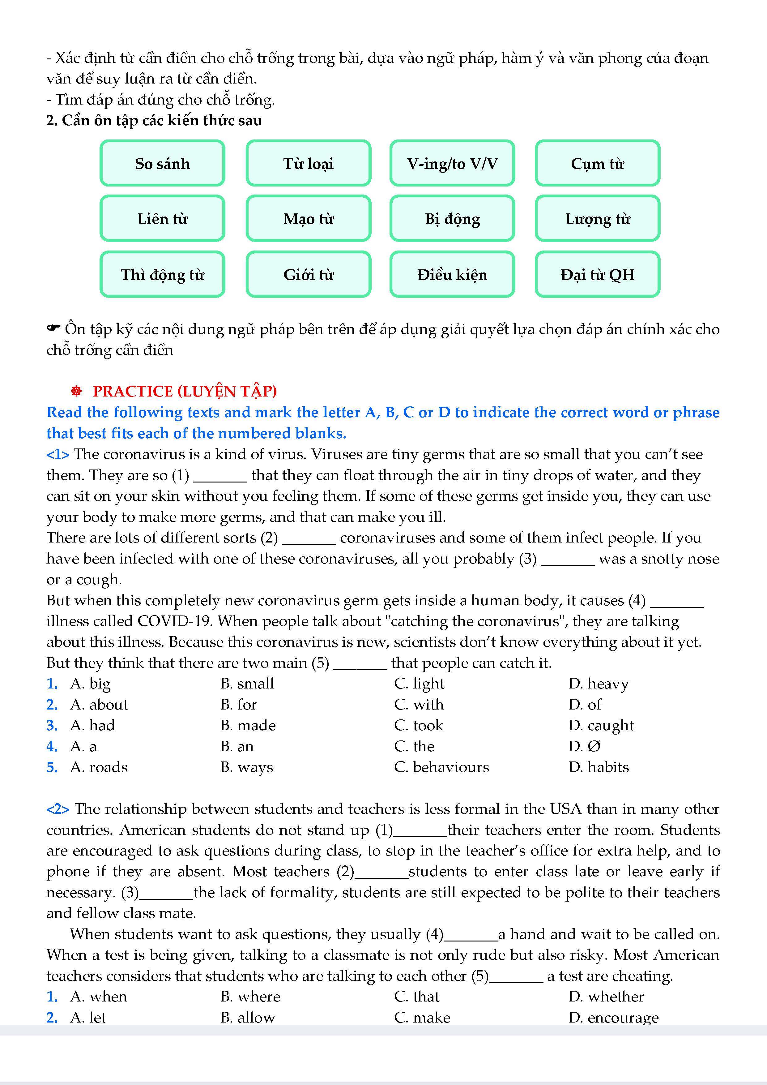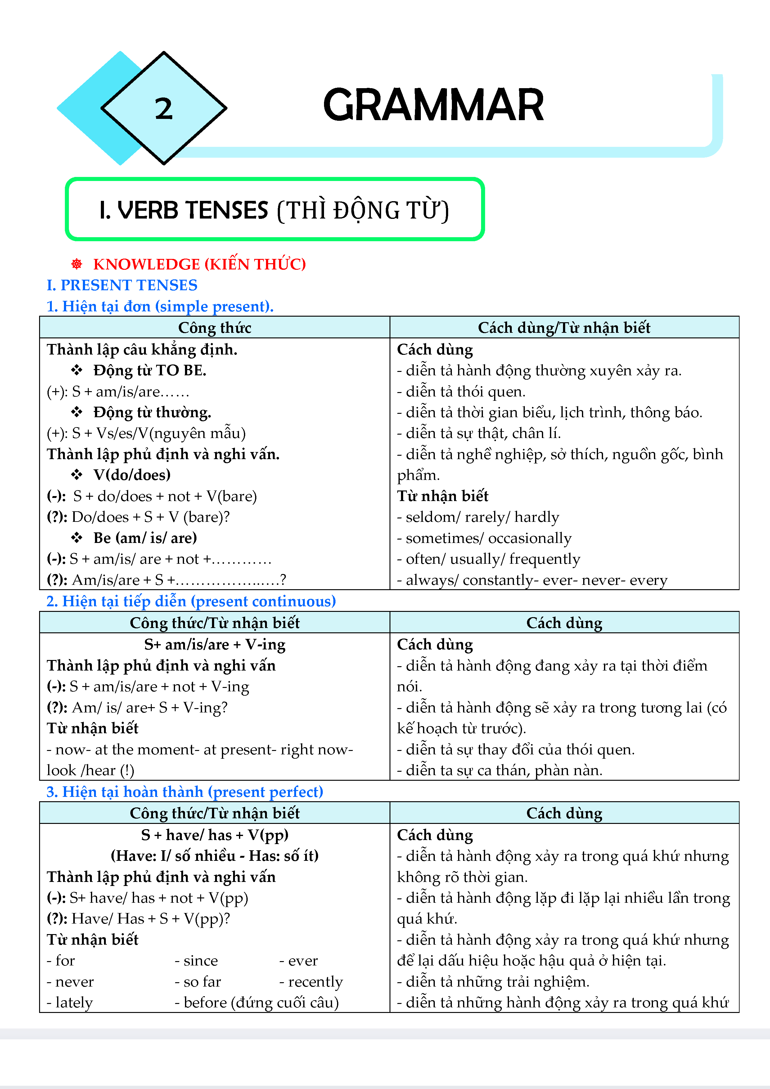 Ngữ pháp & đề luyện tập vào 10 môn Tiếng anh