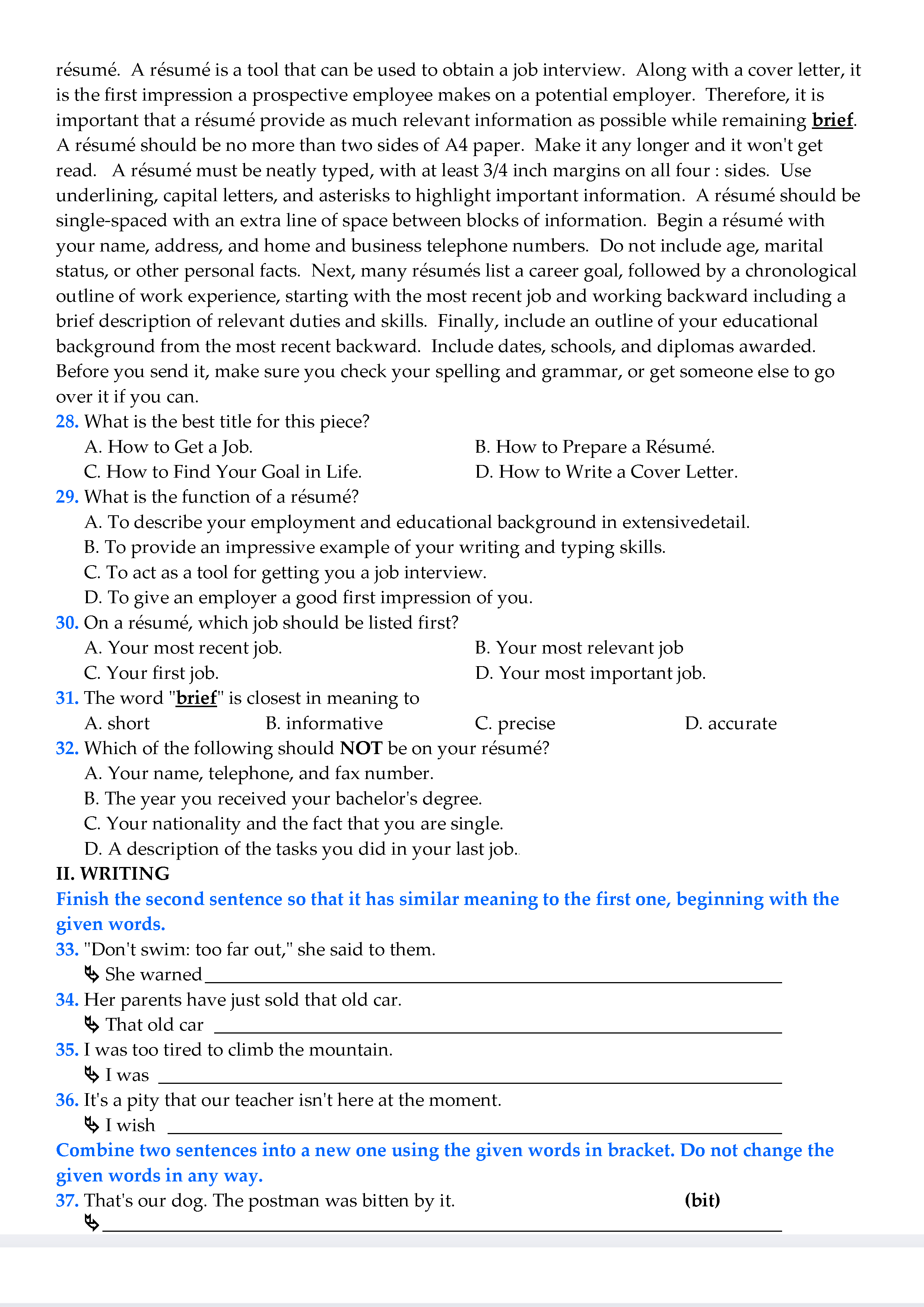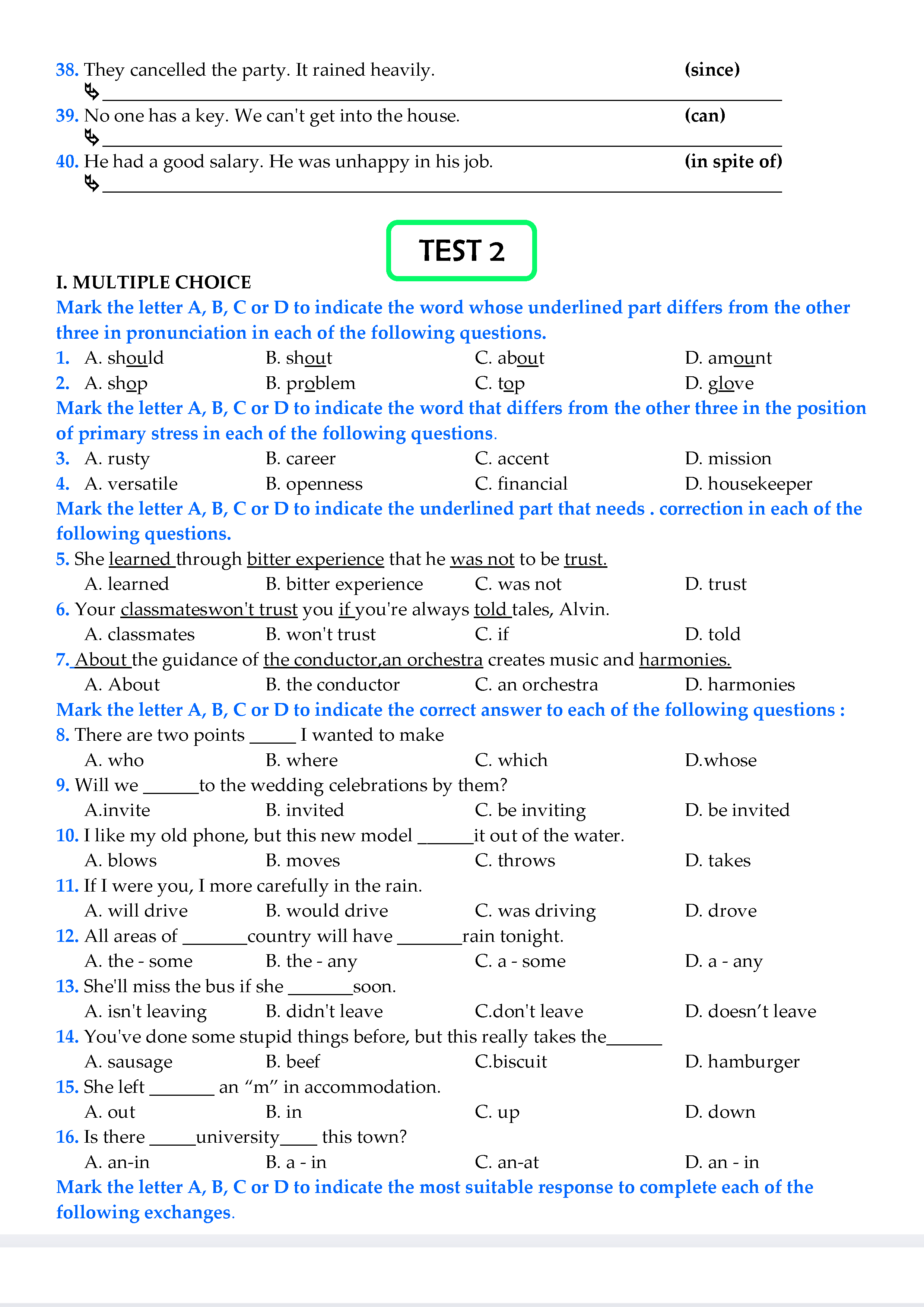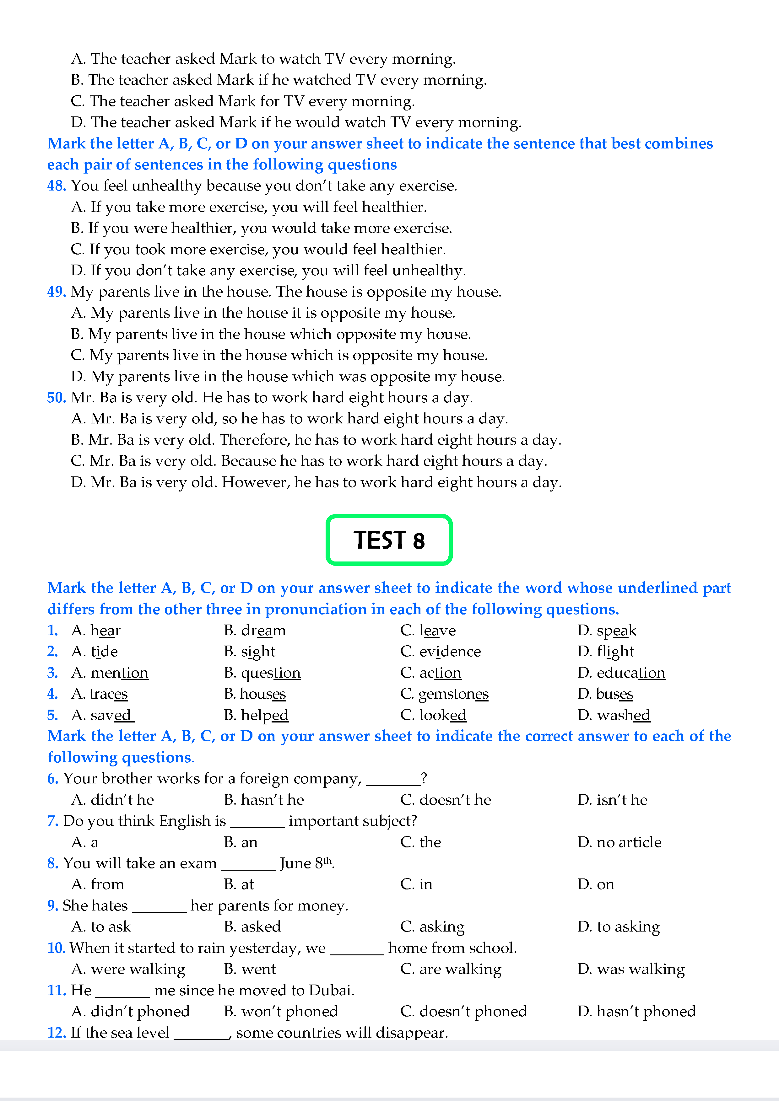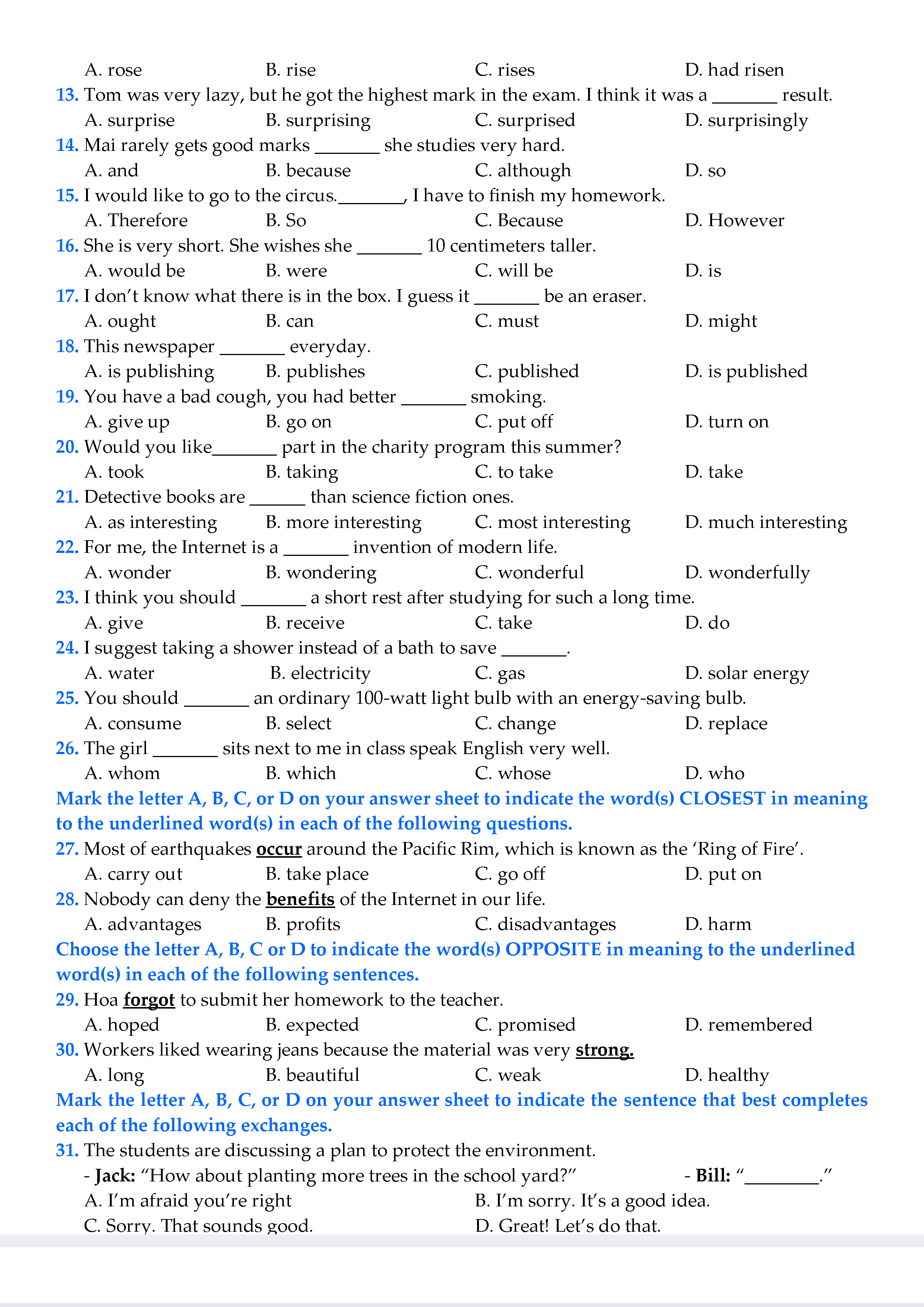 Ngữ pháp & đề luyện tập vào 10 môn Tiếng anh