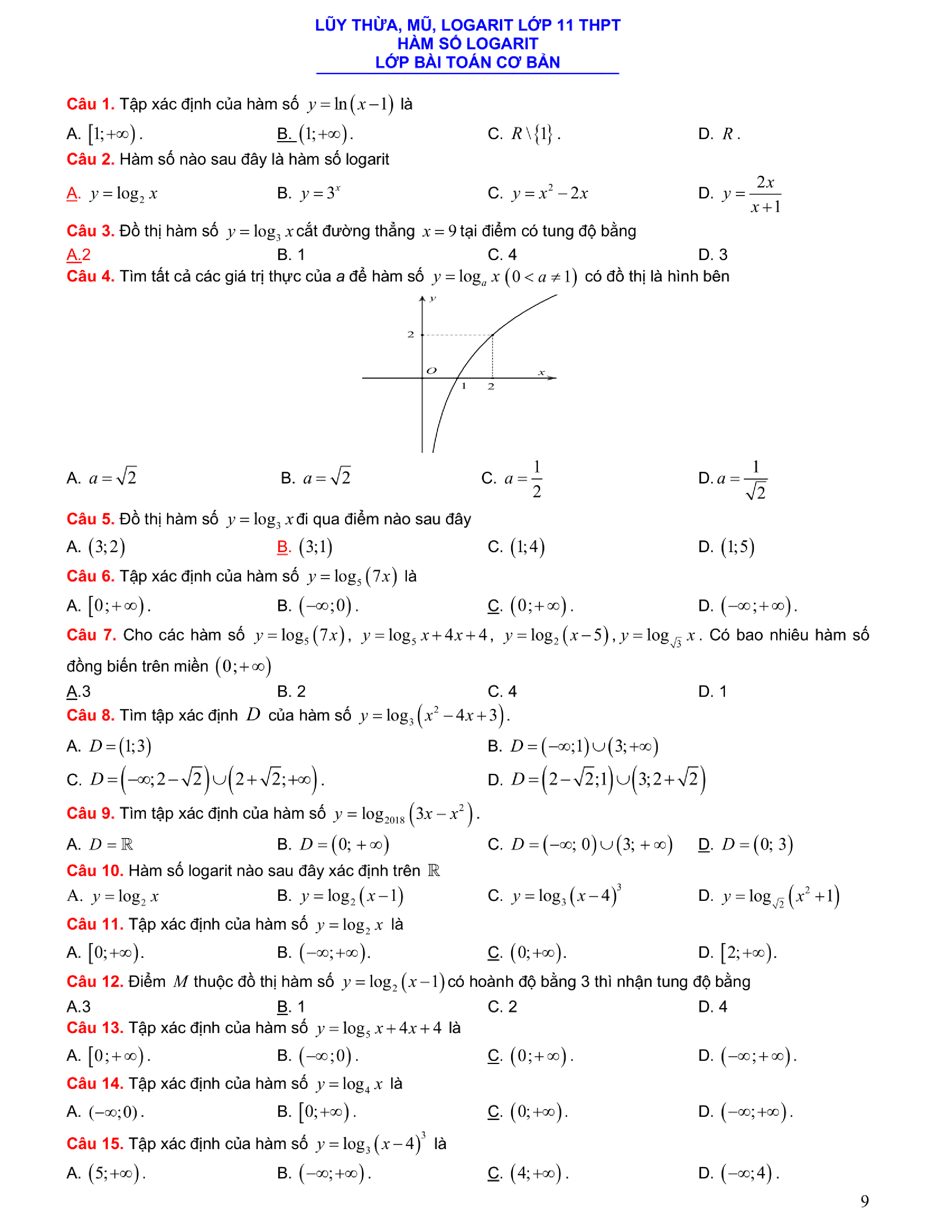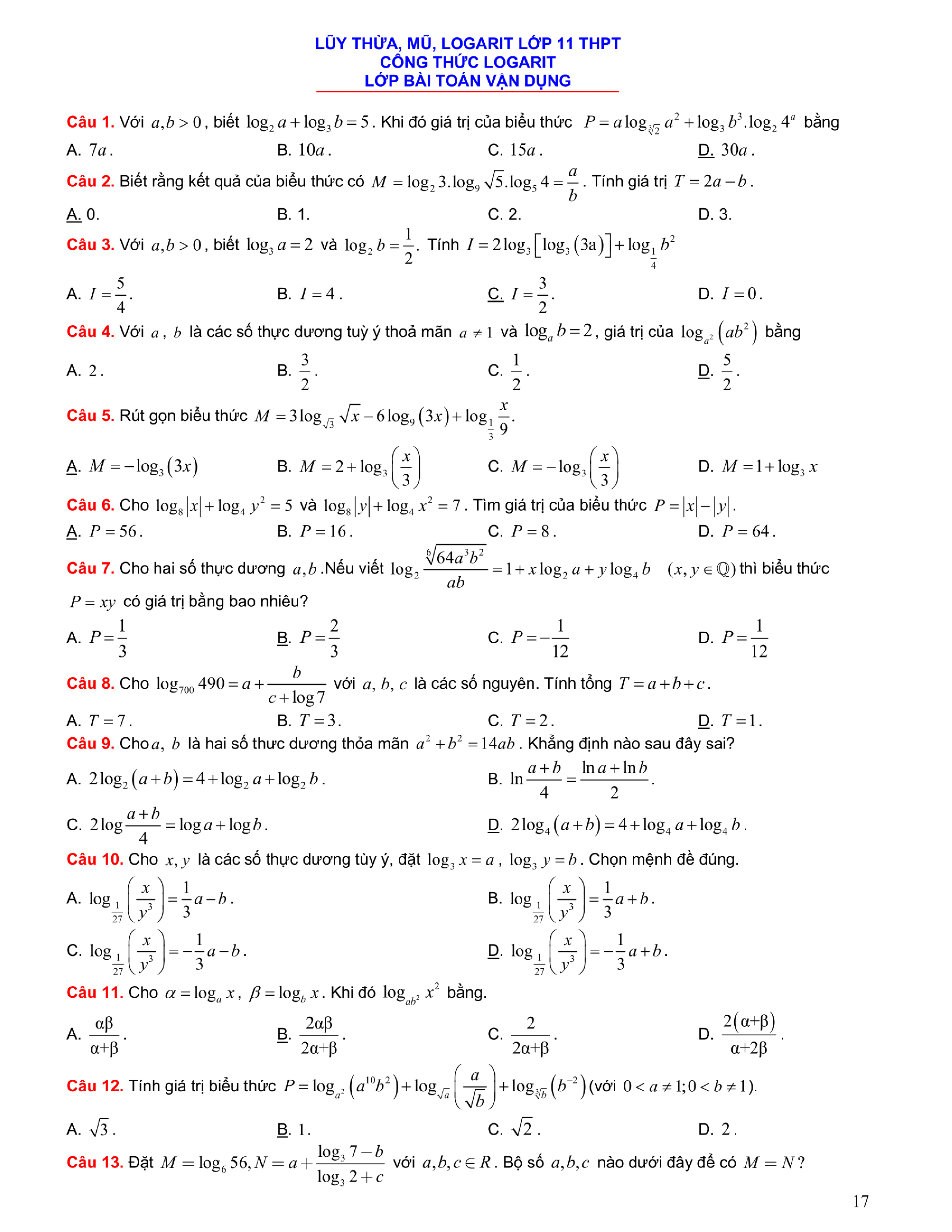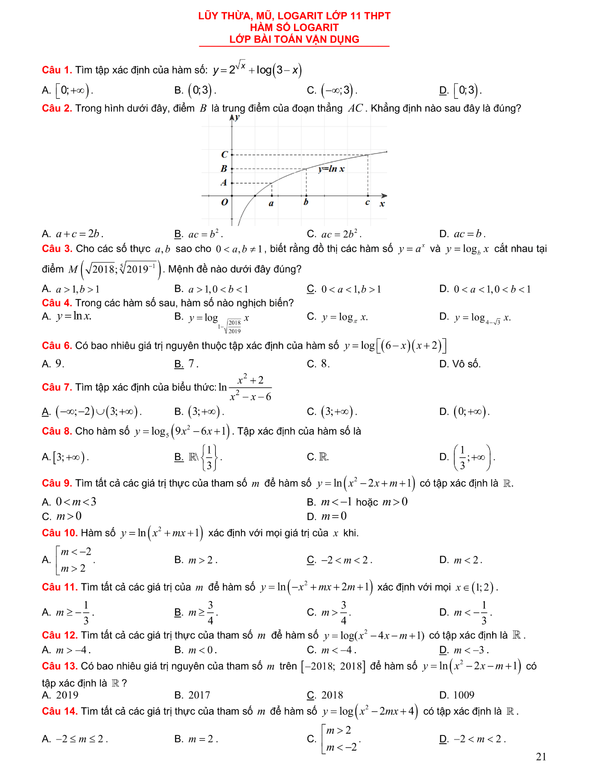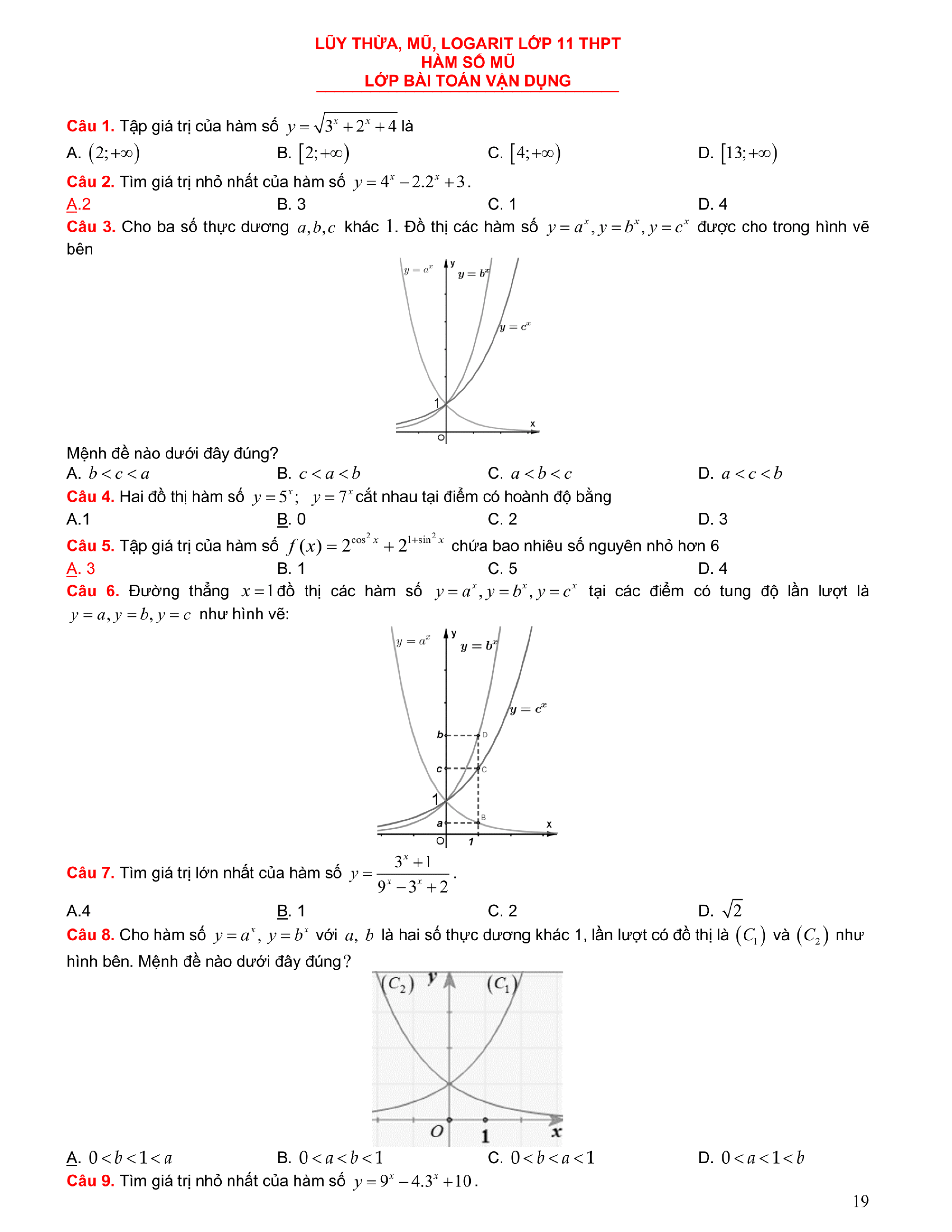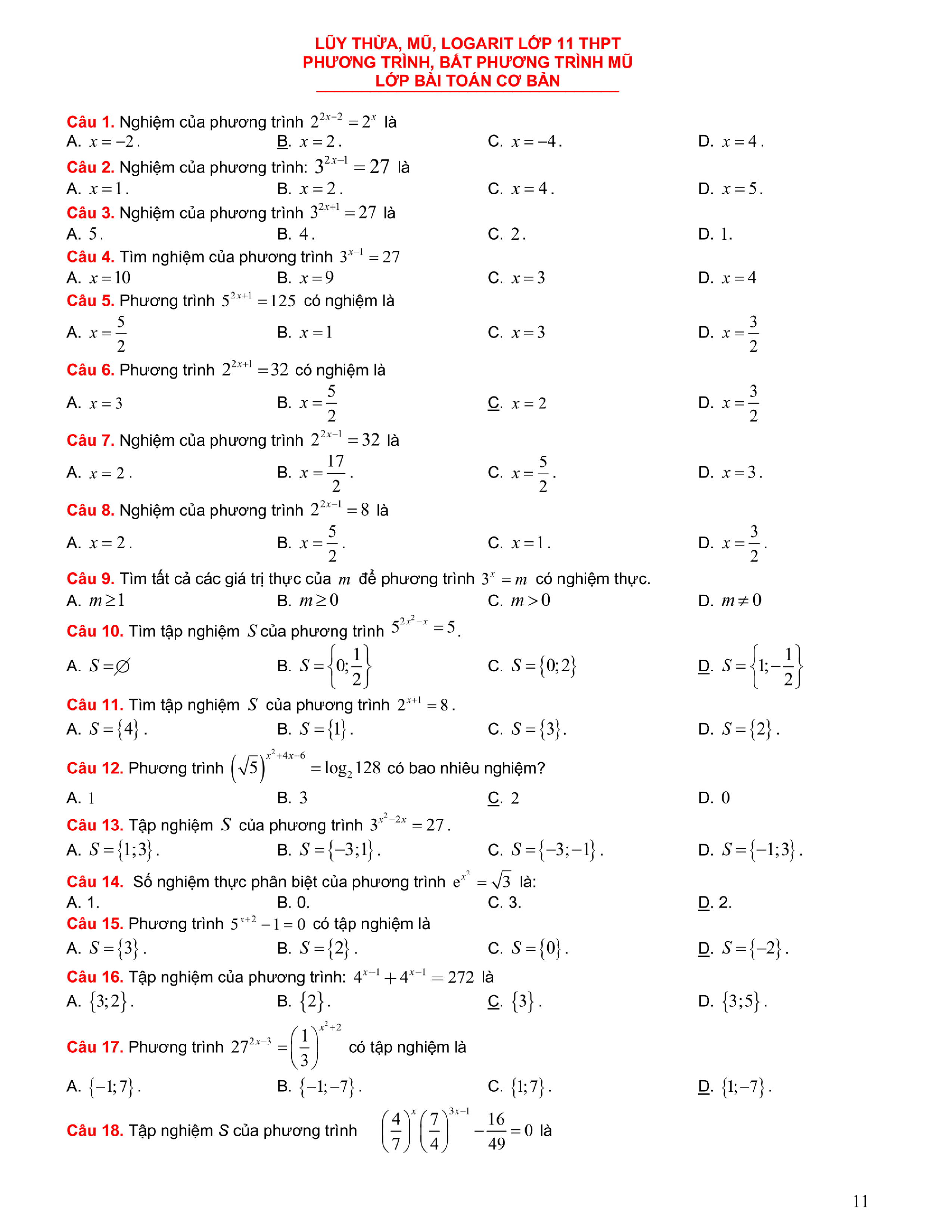 Tuyển chọn bài tập Lũy thừa, Mũ, Logarit