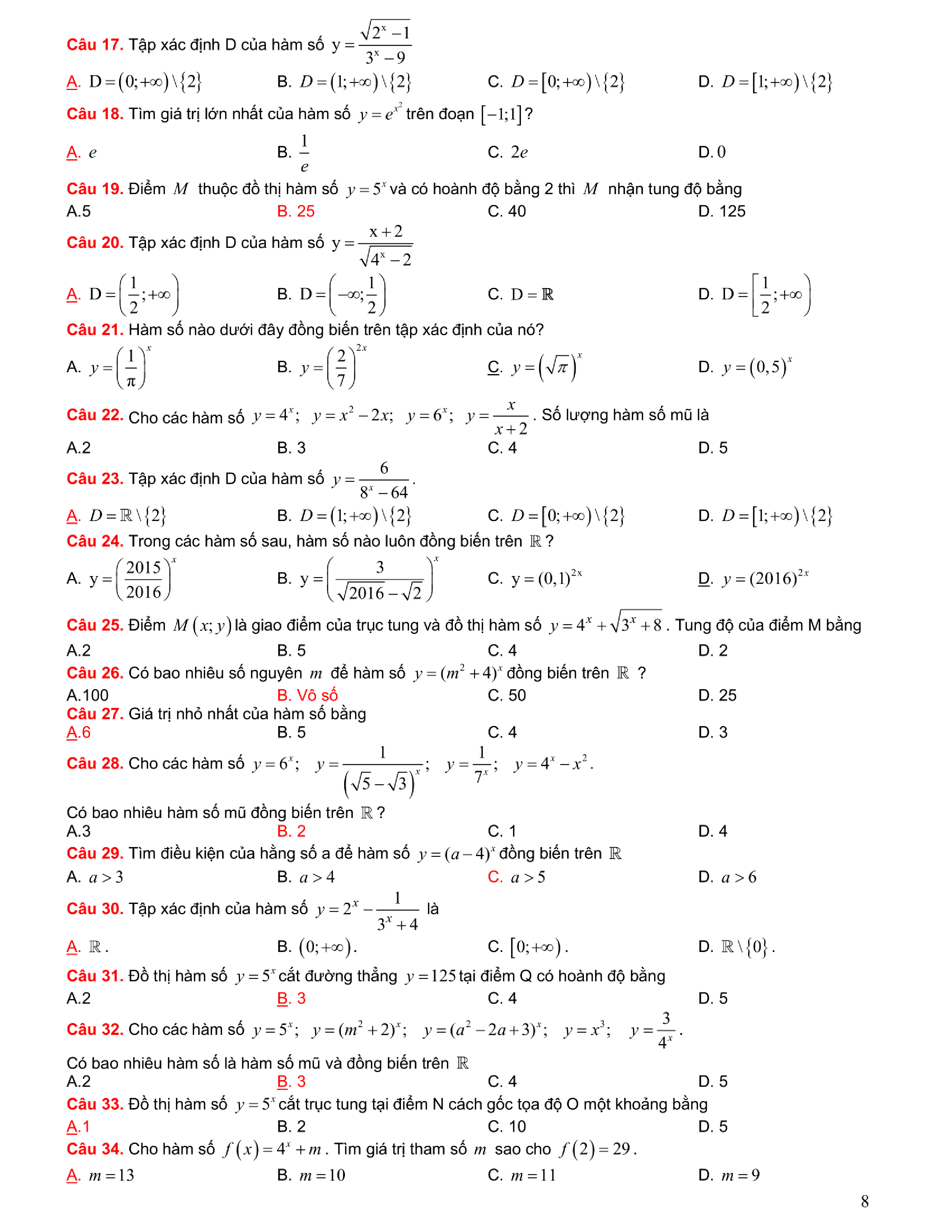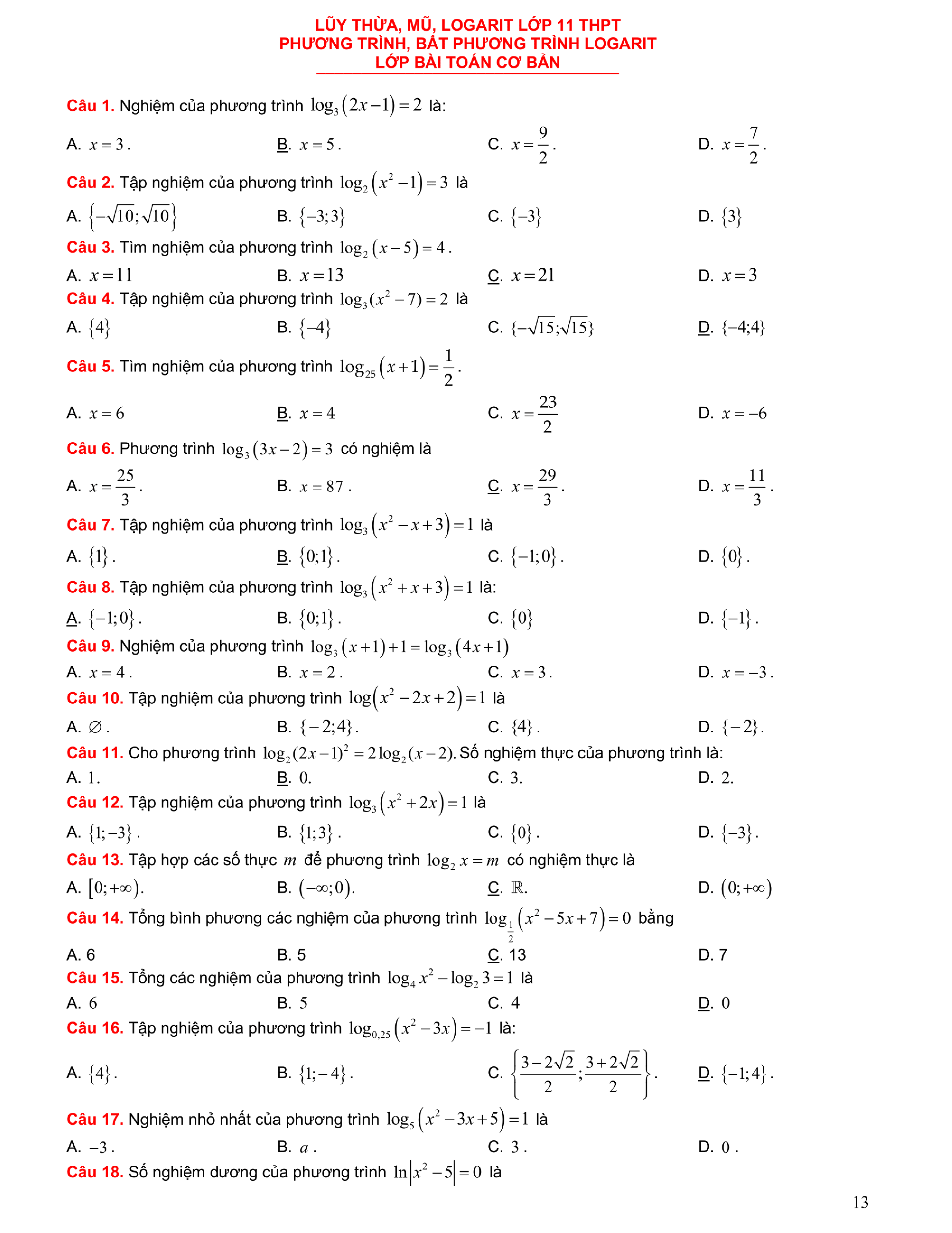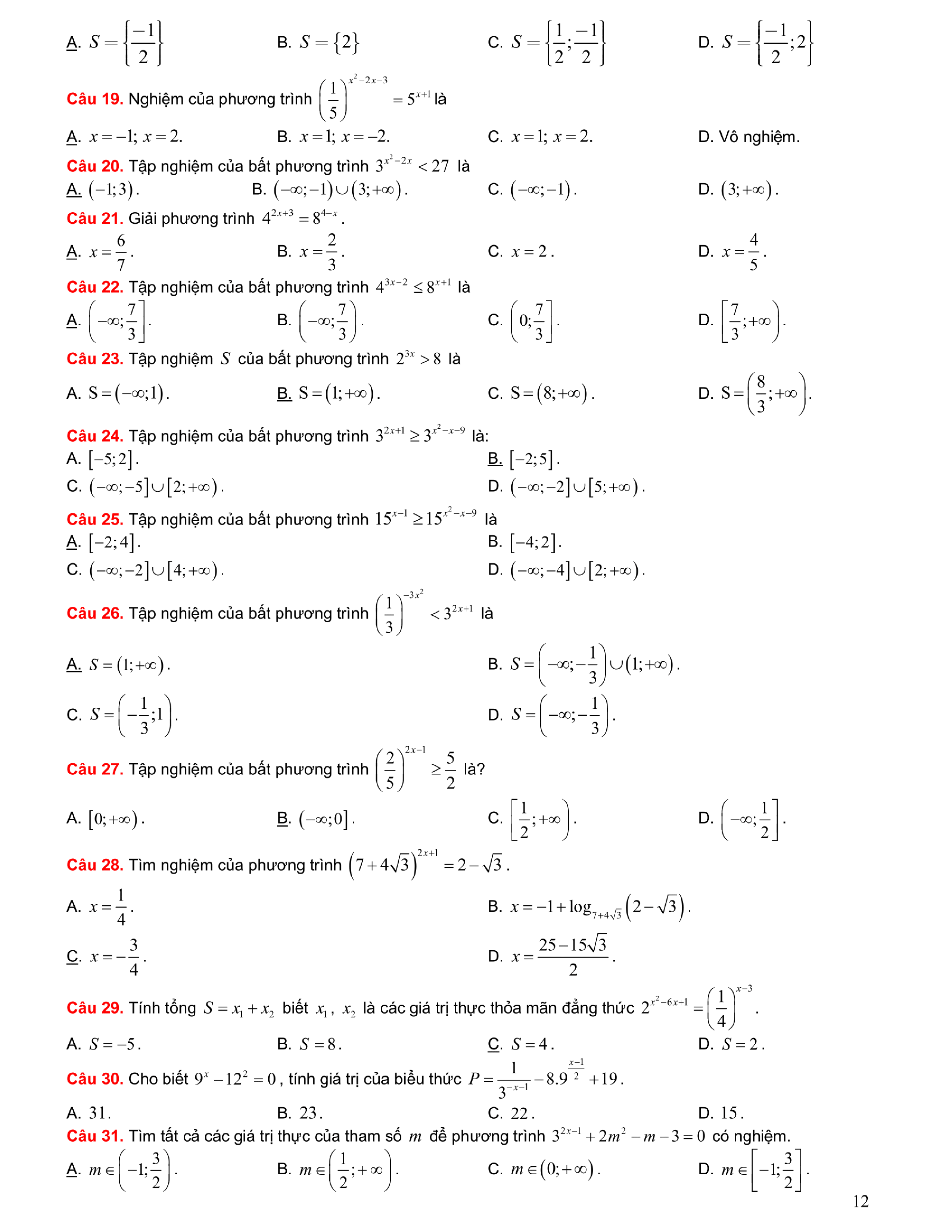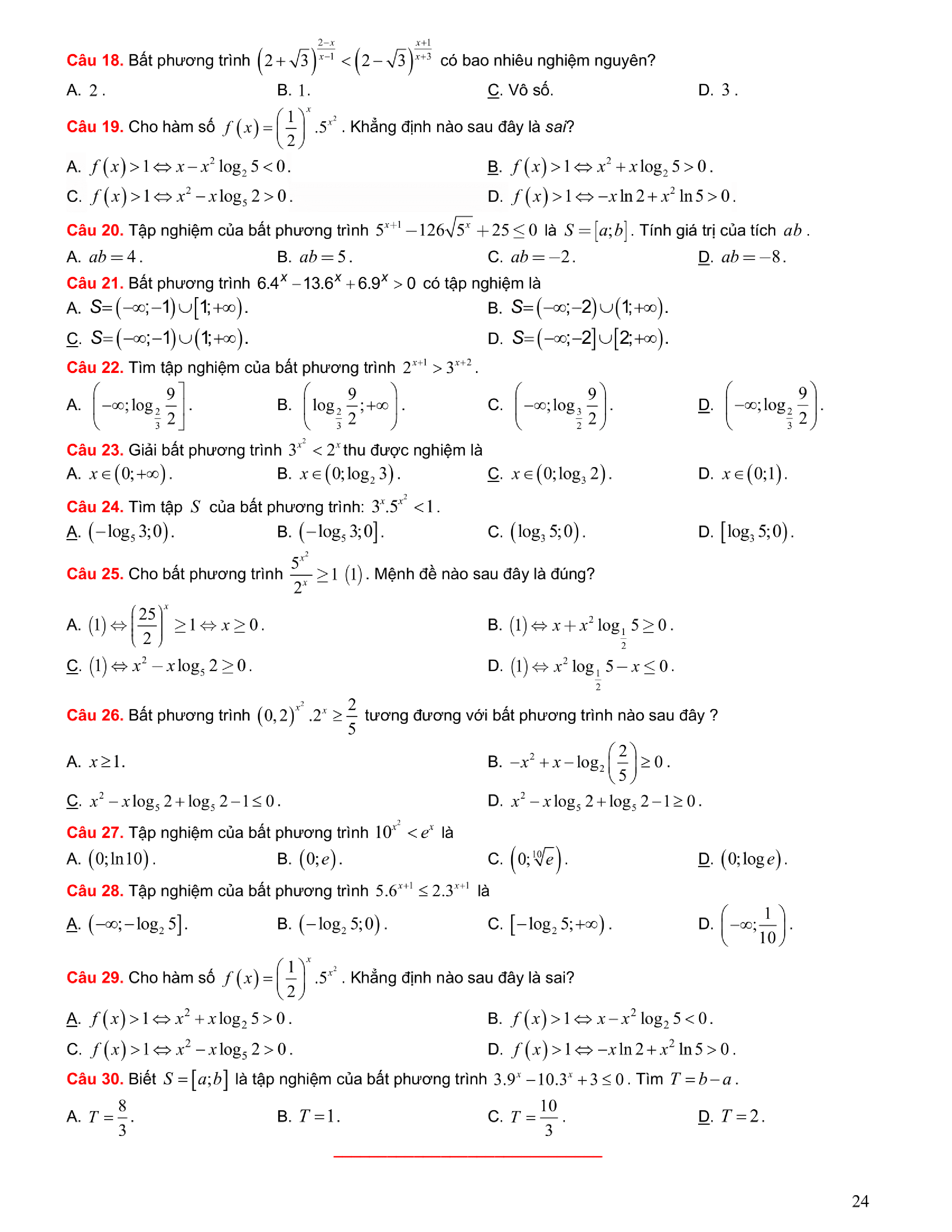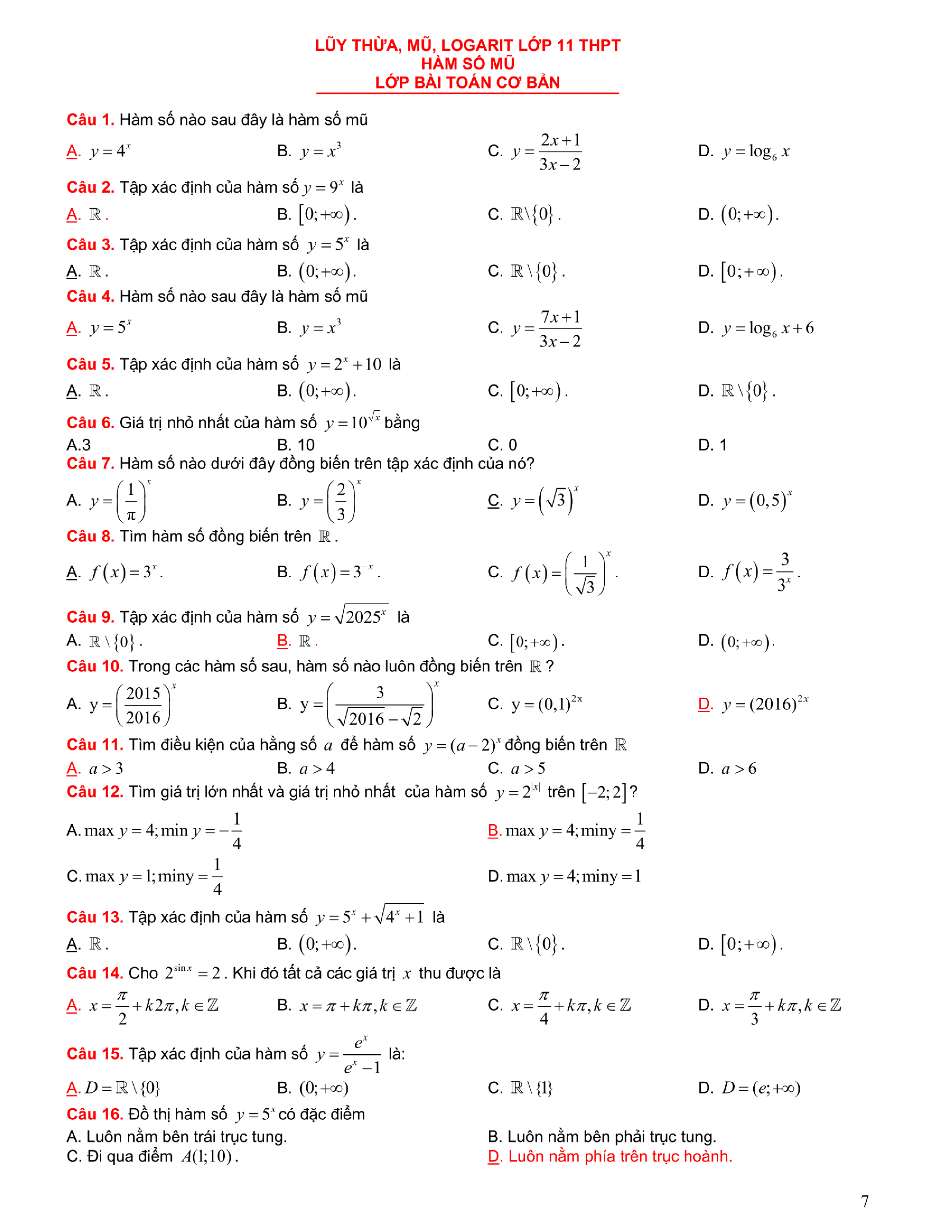 Tuyển chọn bài tập Lũy thừa, Mũ, Logarit