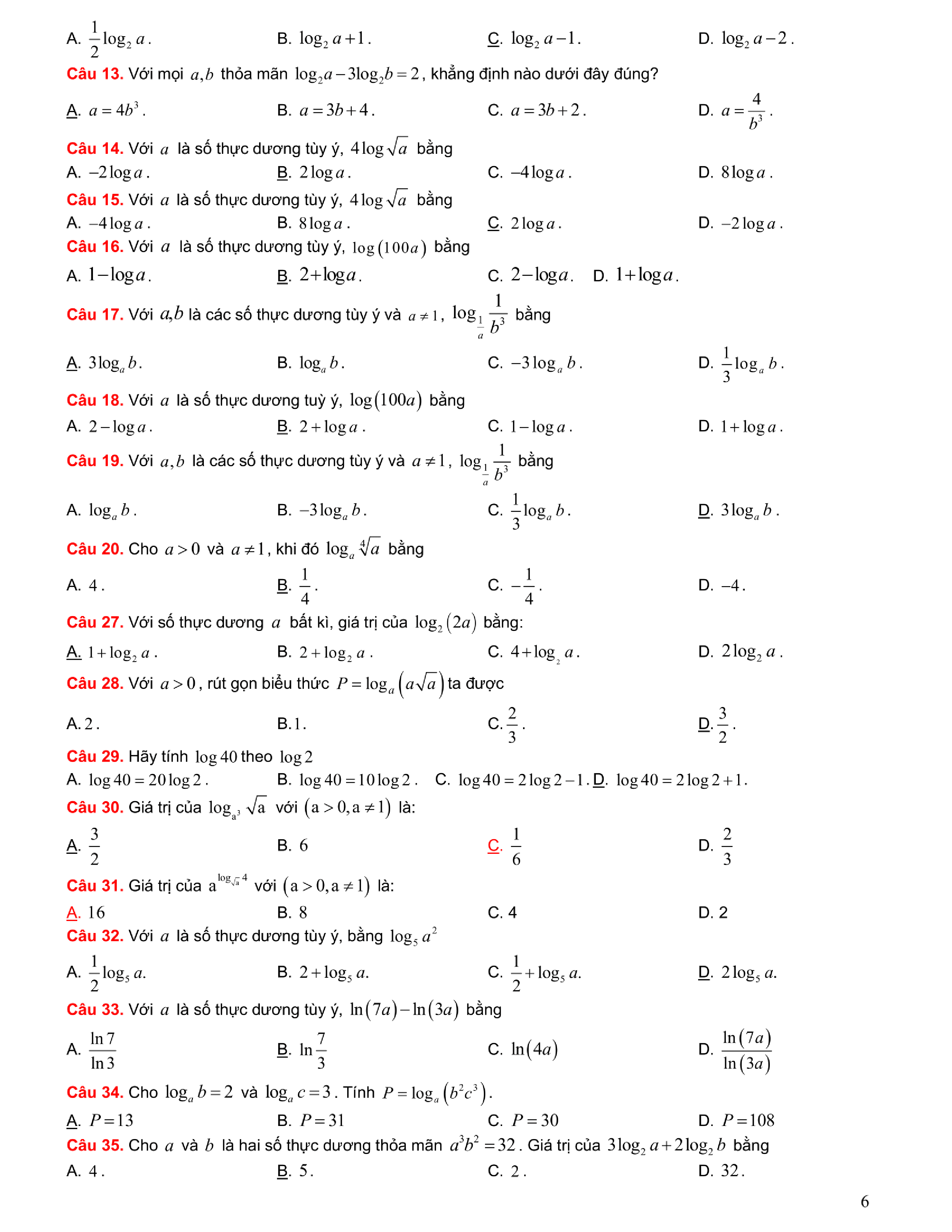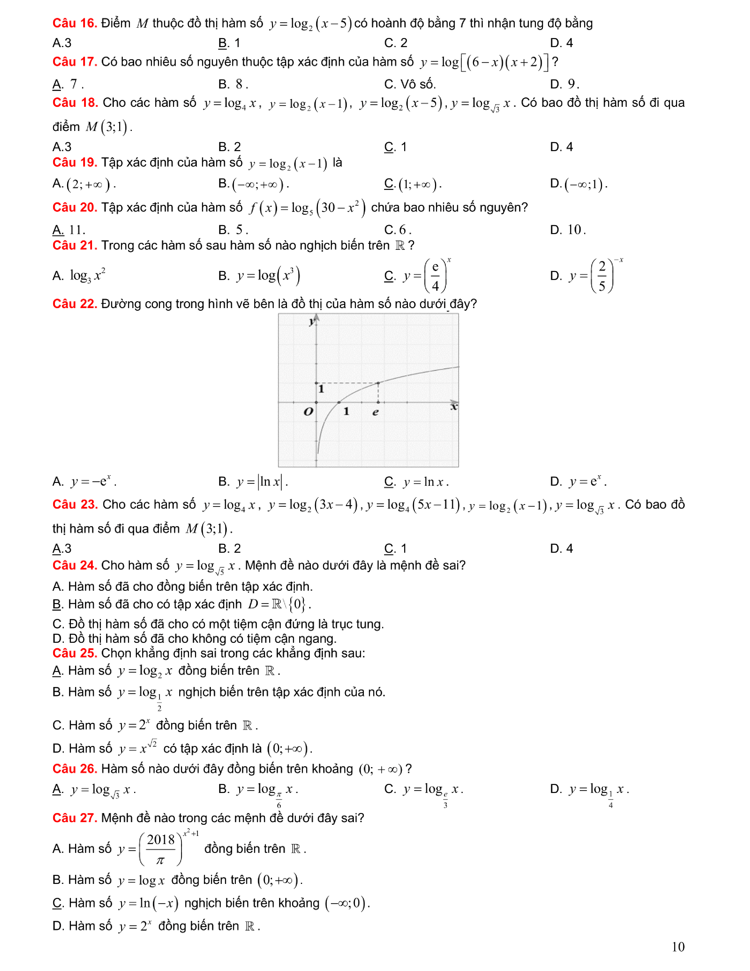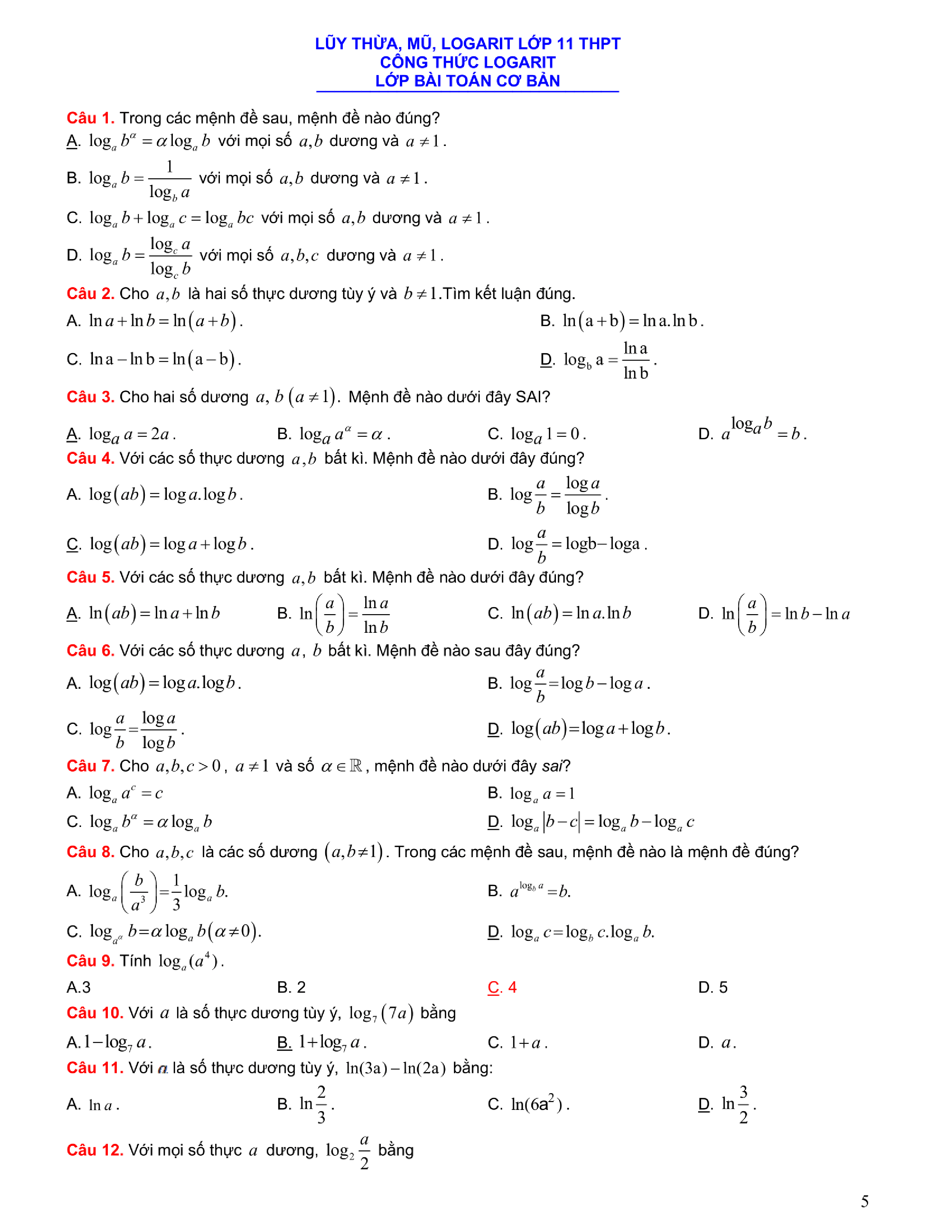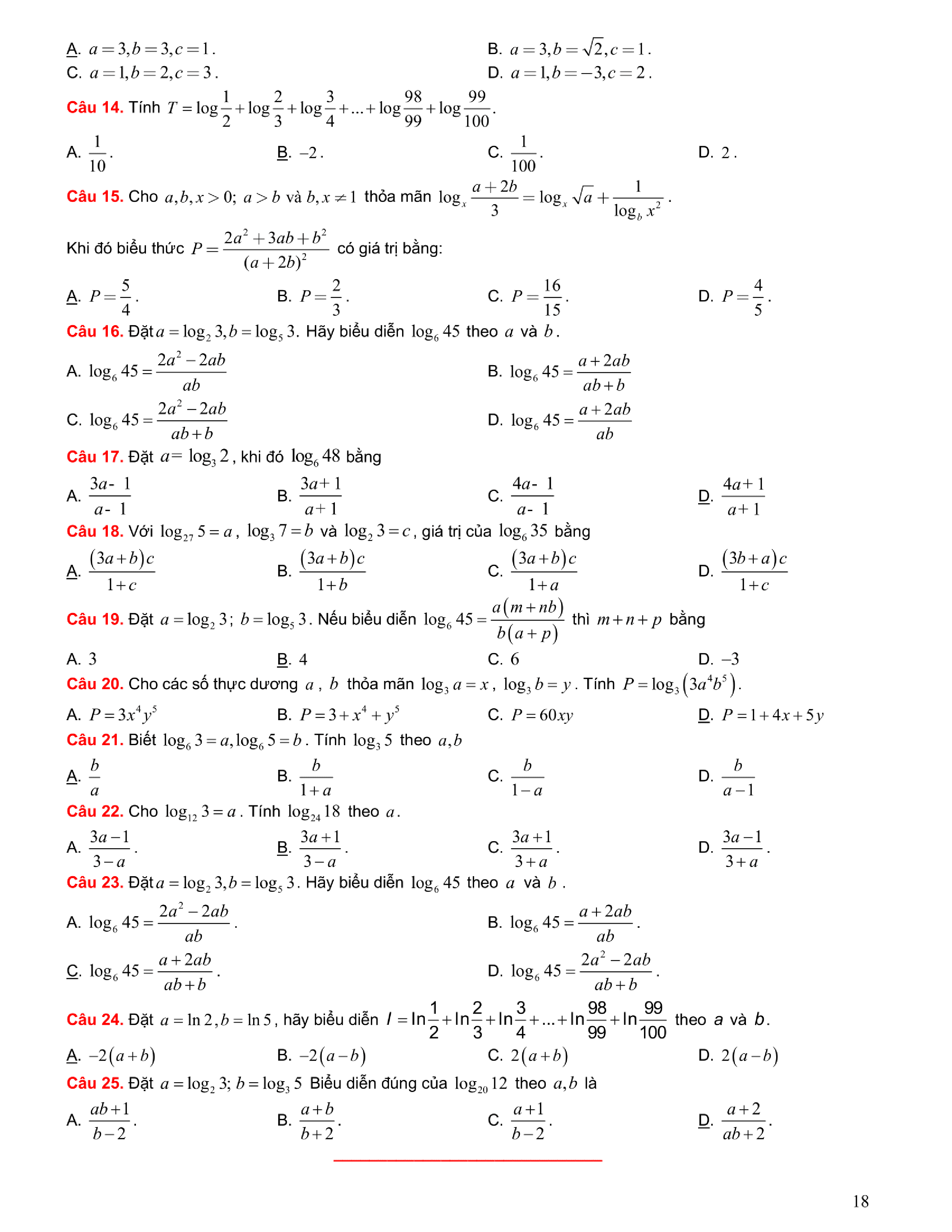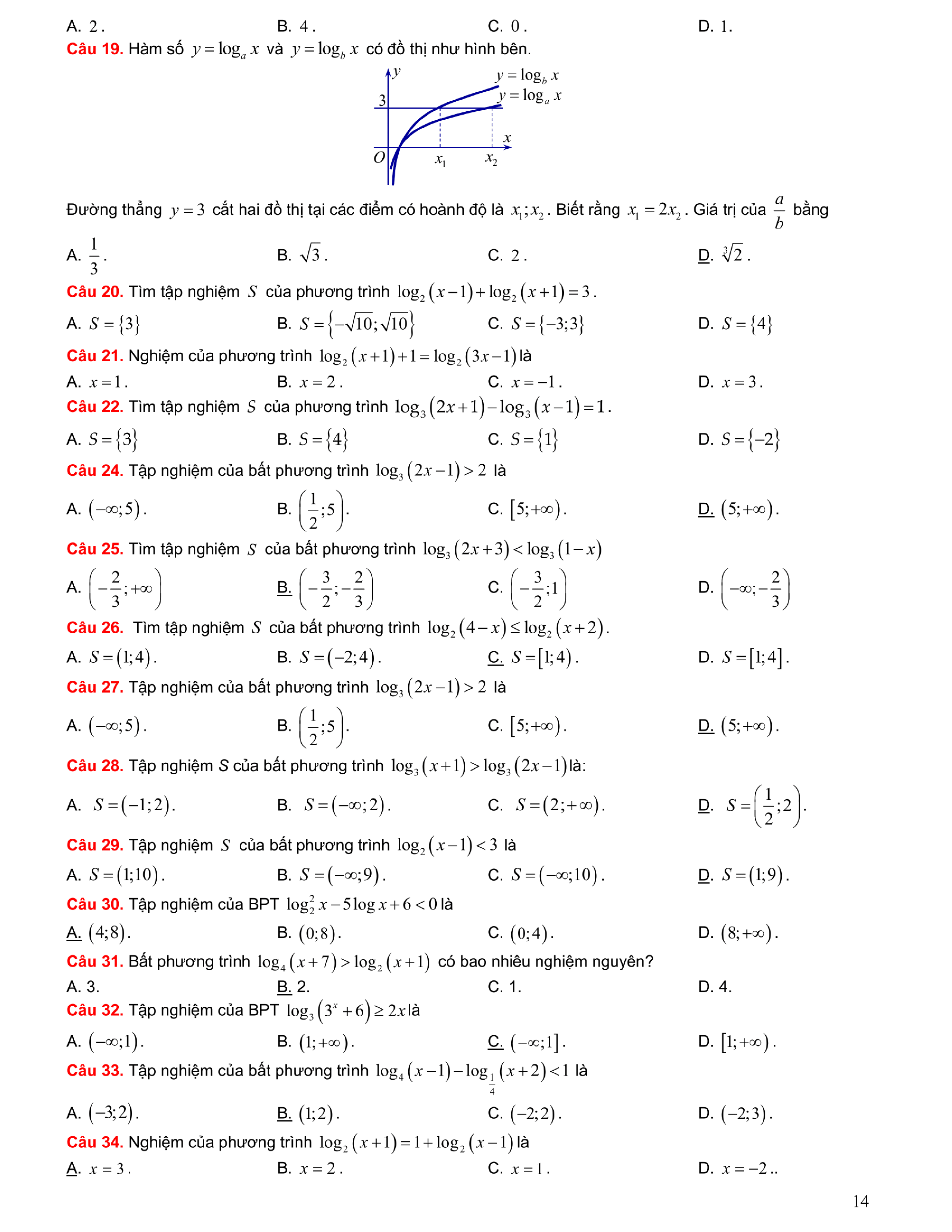 Tuyển chọn bài tập Lũy thừa, Mũ, Logarit