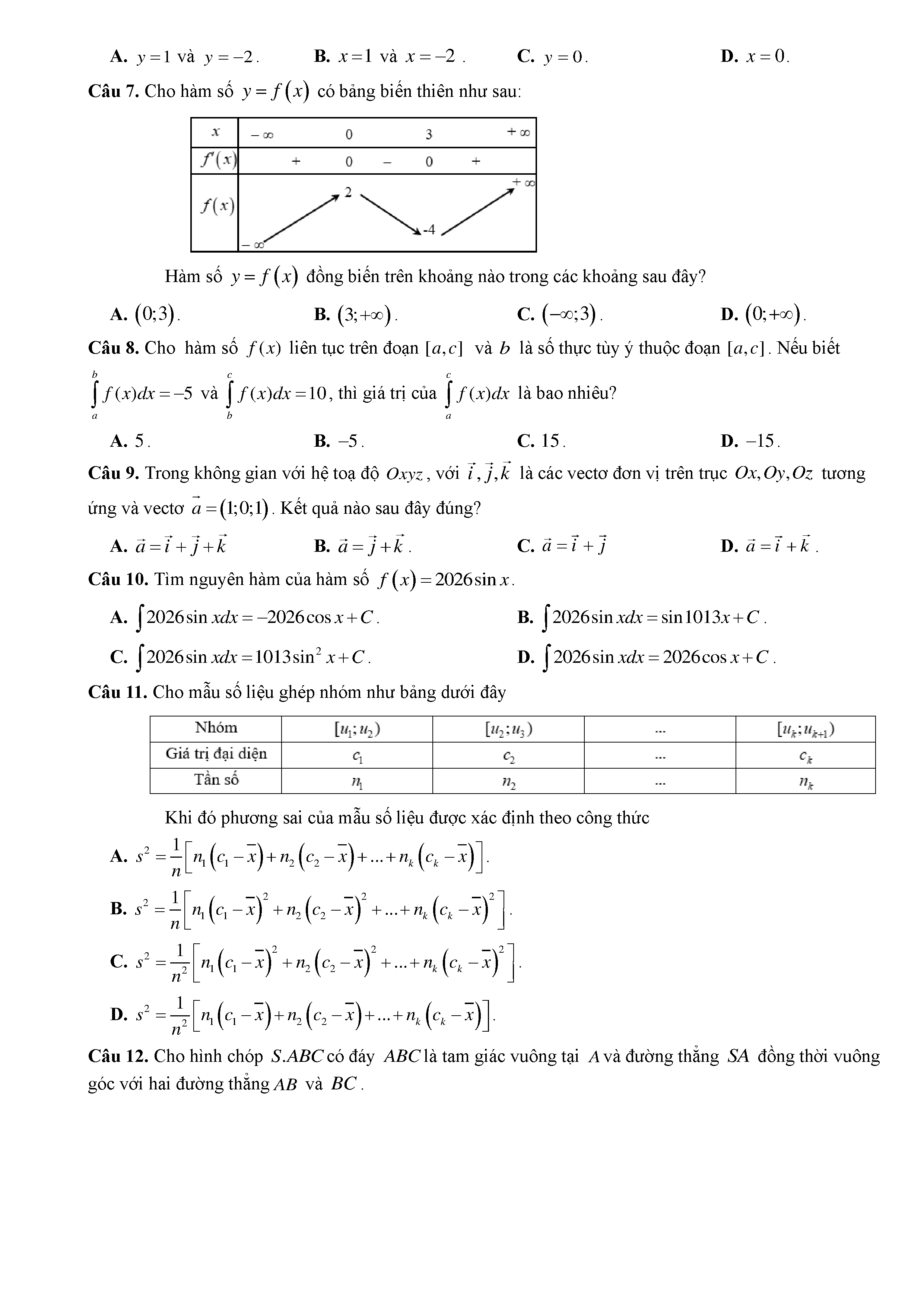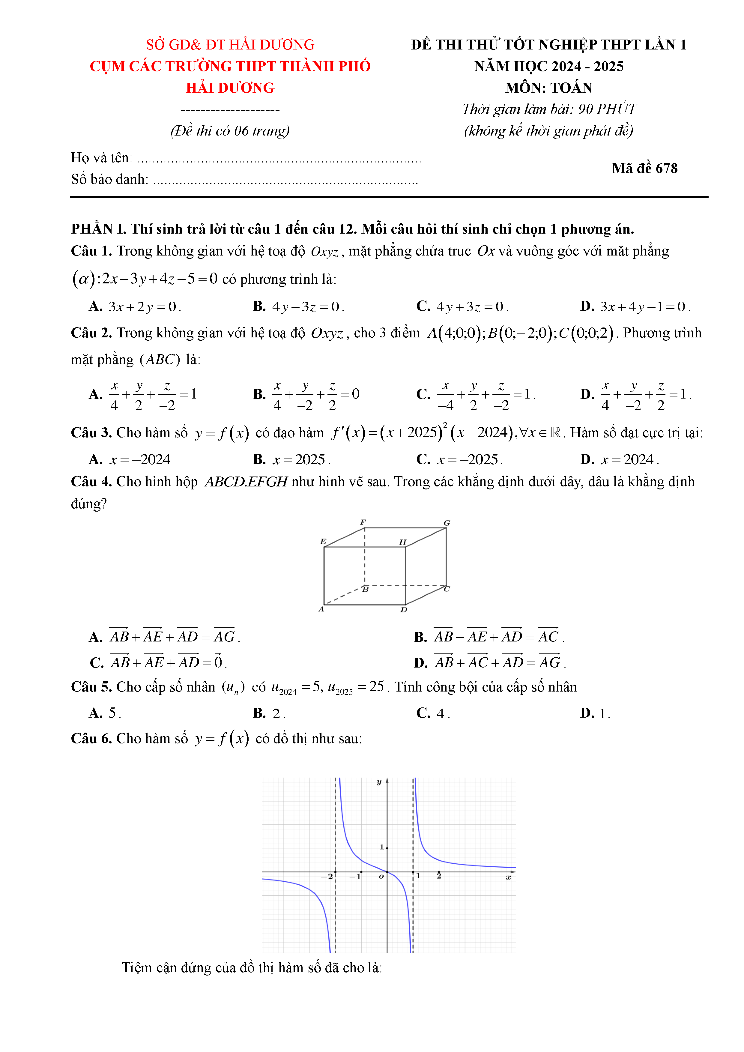 Đề thi thử TN THPT 2025 lần 1 môn Toán cụm các trường THPT TP Hải Dương