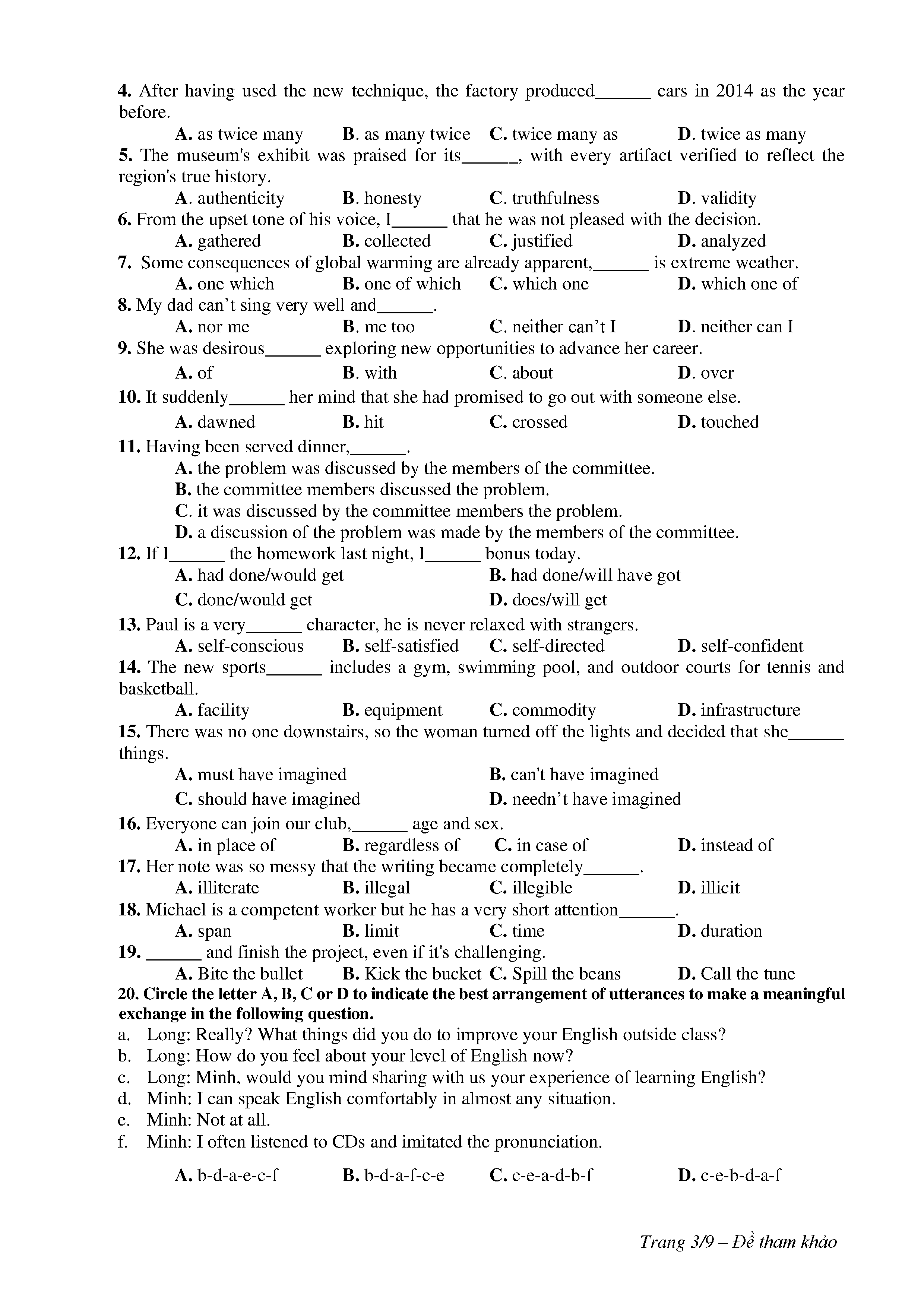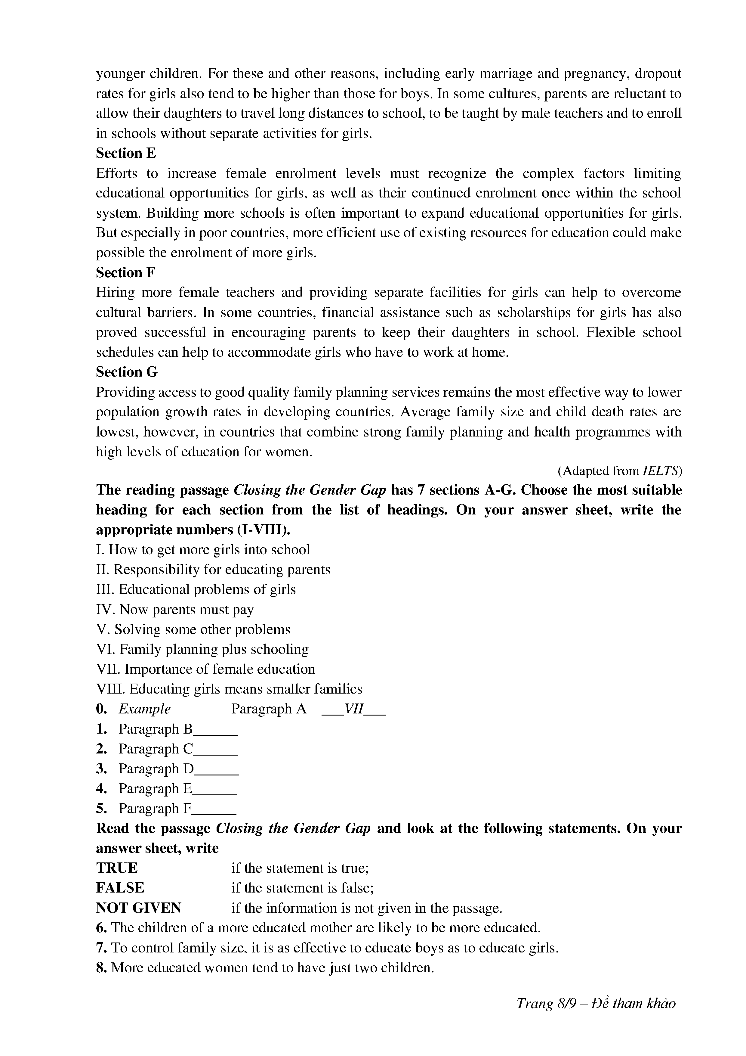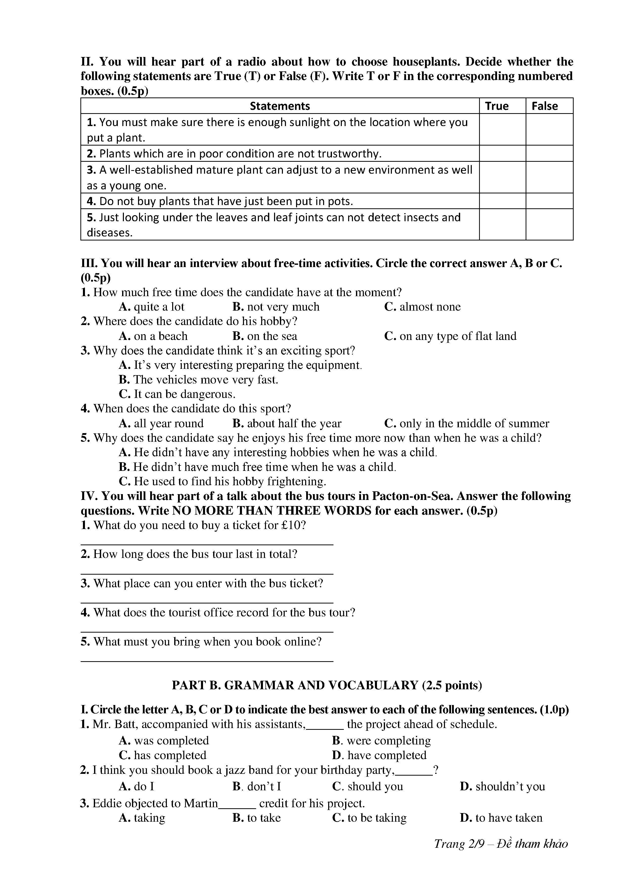 Đề tham khảo thi tuyển sinh vào lớp 10 chuyên Tiếng Anh – Sở GD&ĐT Nam Định