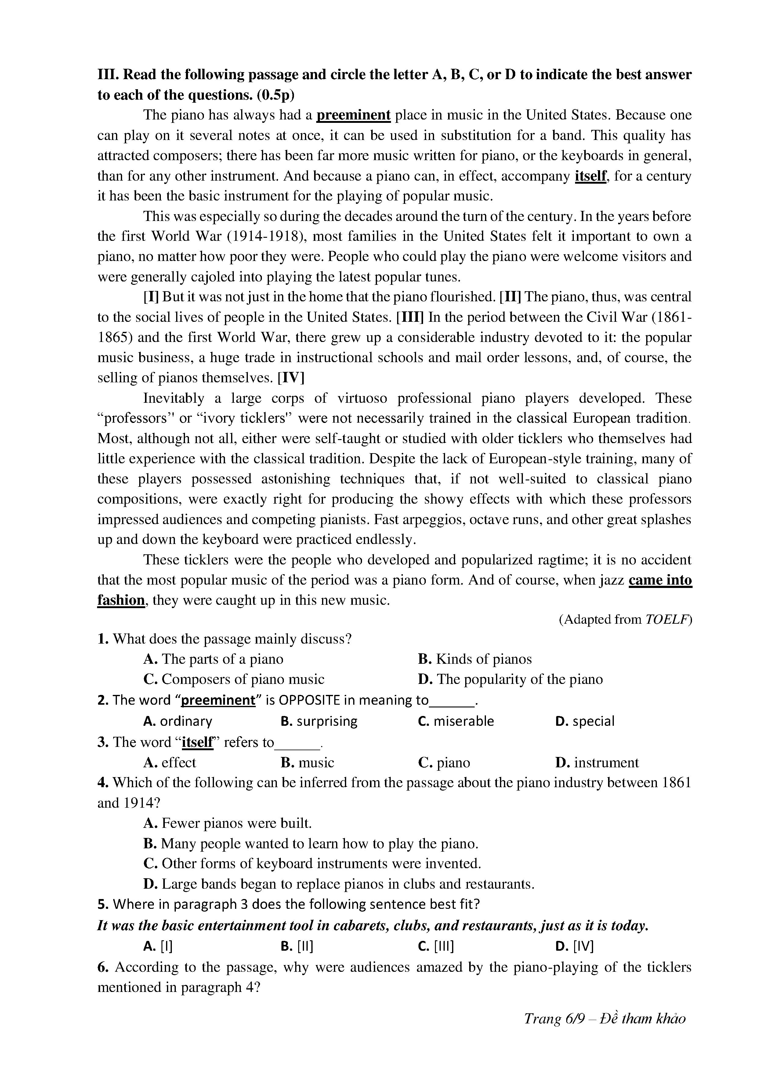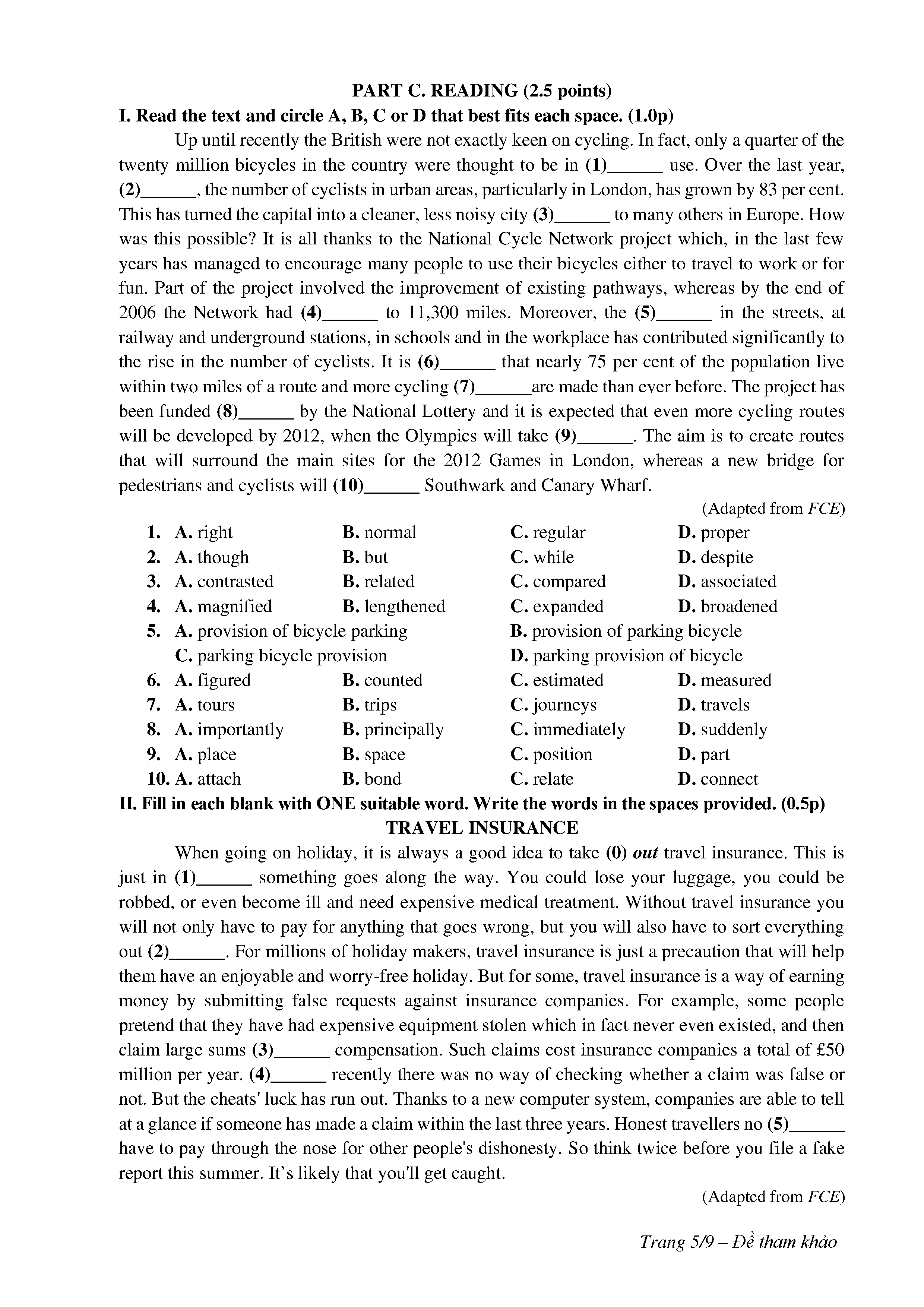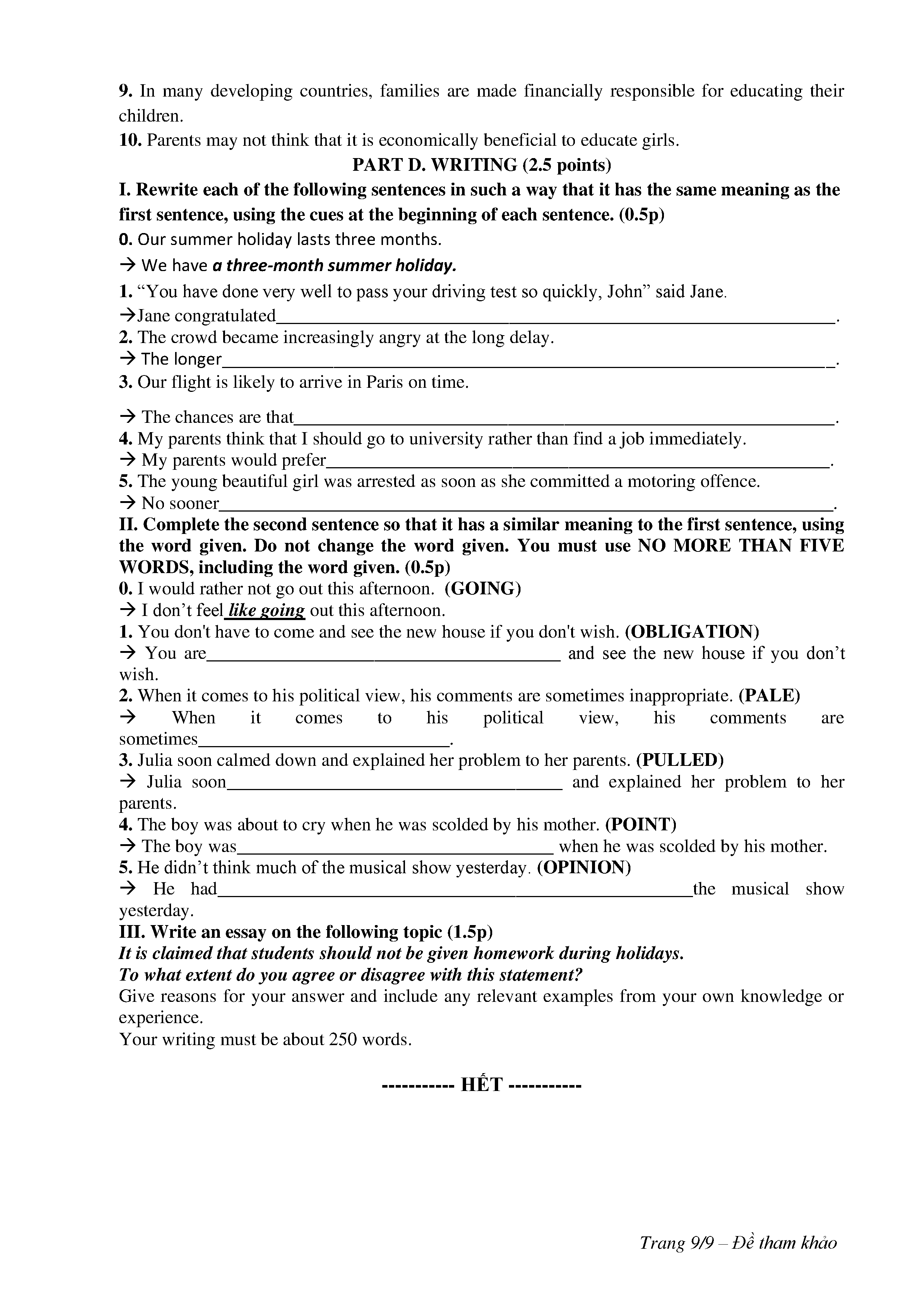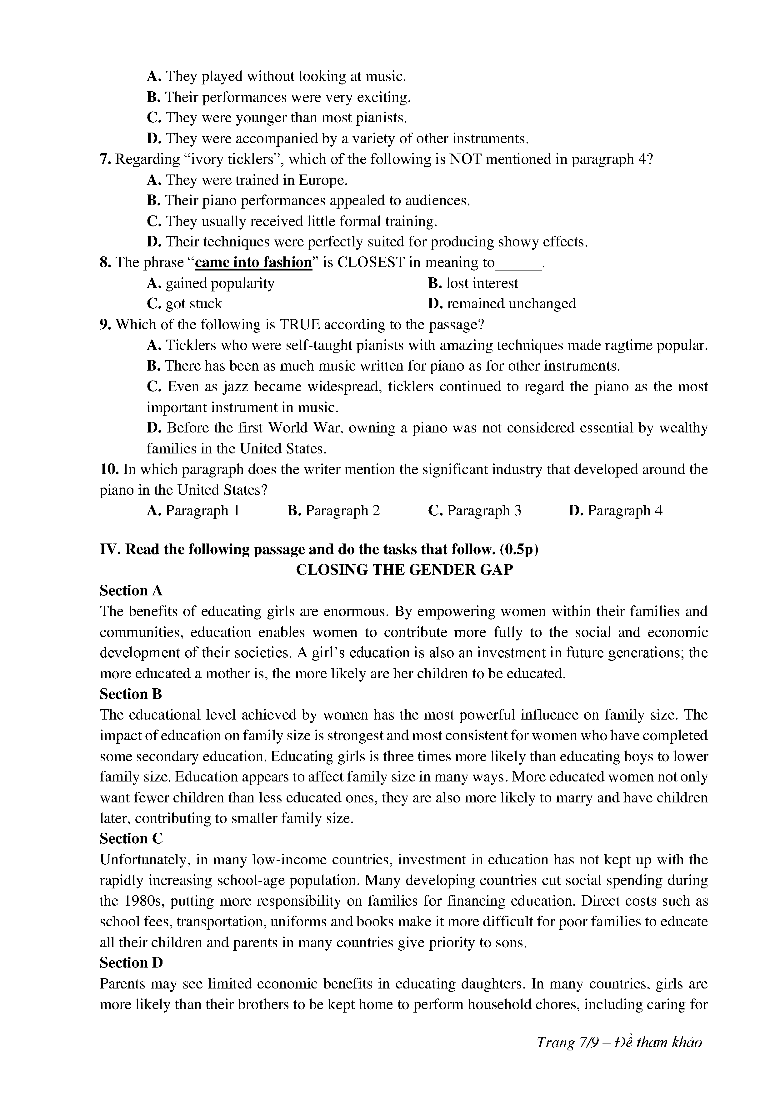 Đề tham khảo thi tuyển sinh vào lớp 10 chuyên Tiếng Anh – Sở GD&ĐT Nam Định