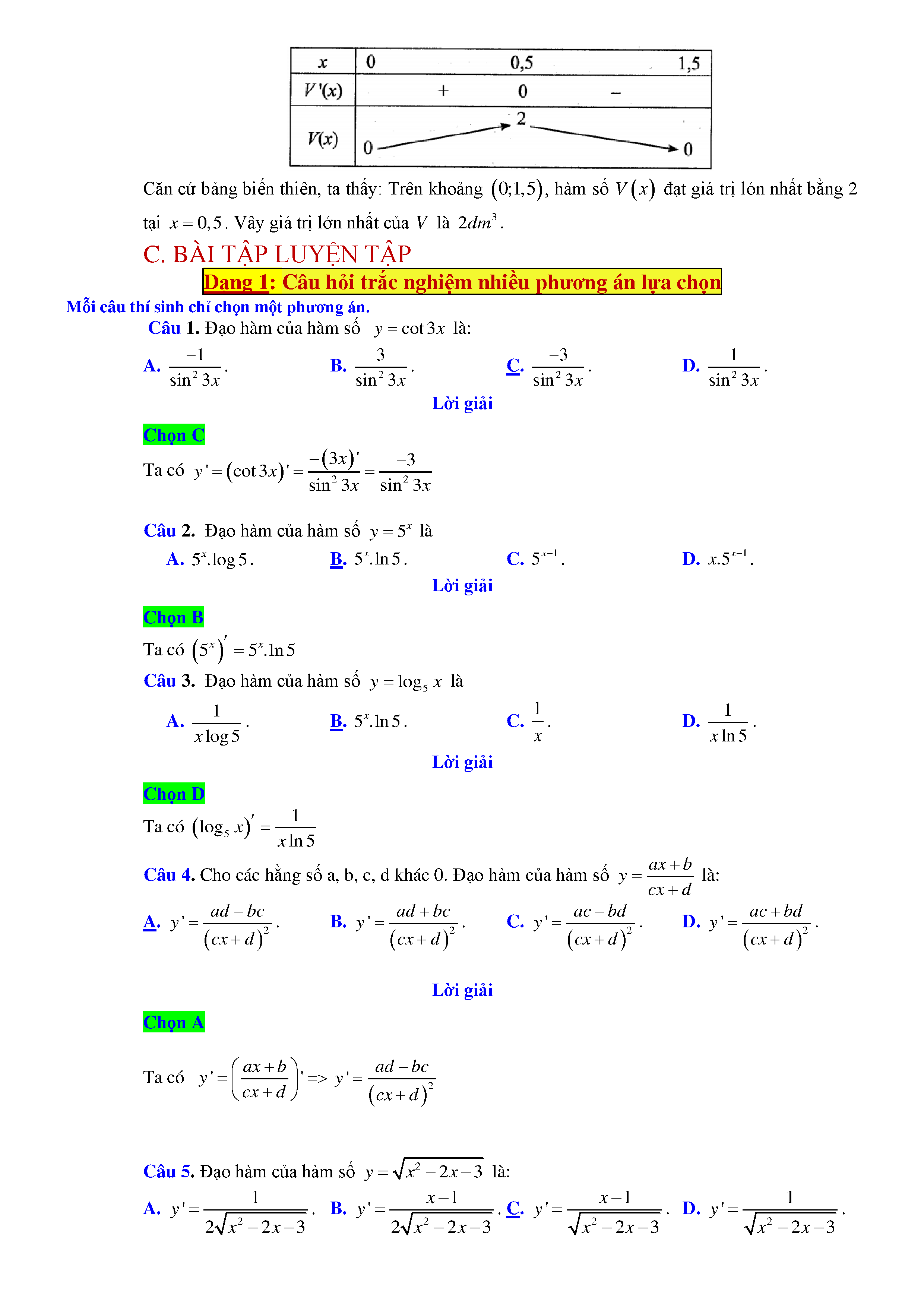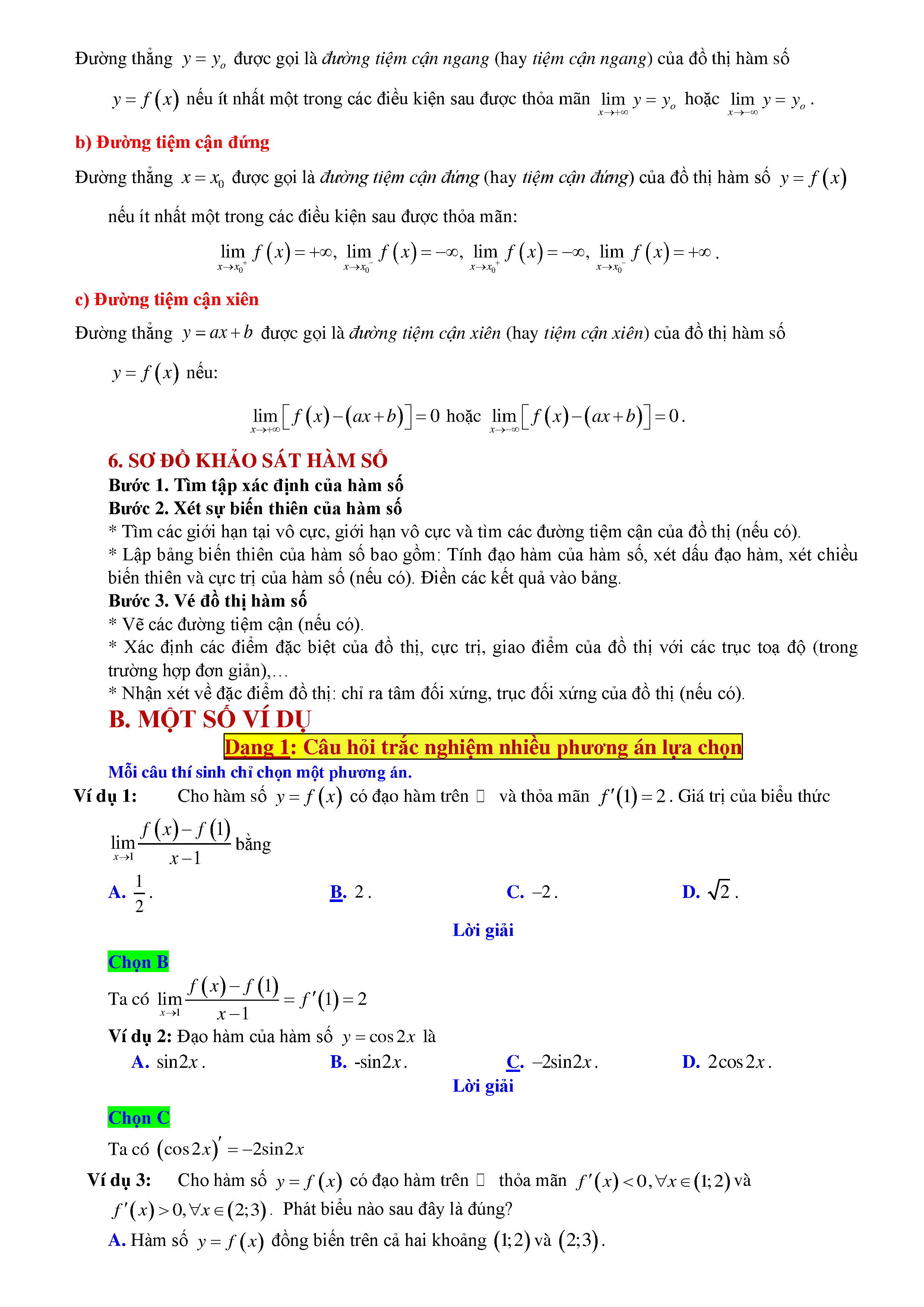 Tổng hợp kiến thức Chuyên đề Đạo hàm và Khảo sát hàm số Ôn thi Tốt nghiệp THPT