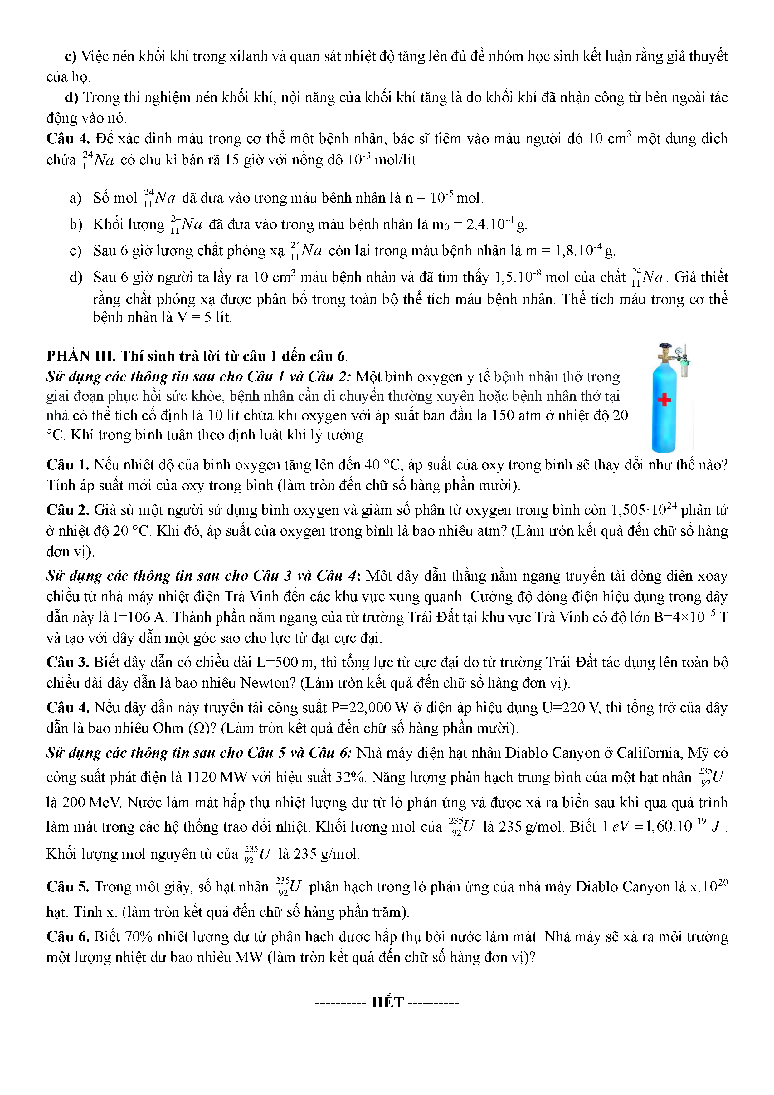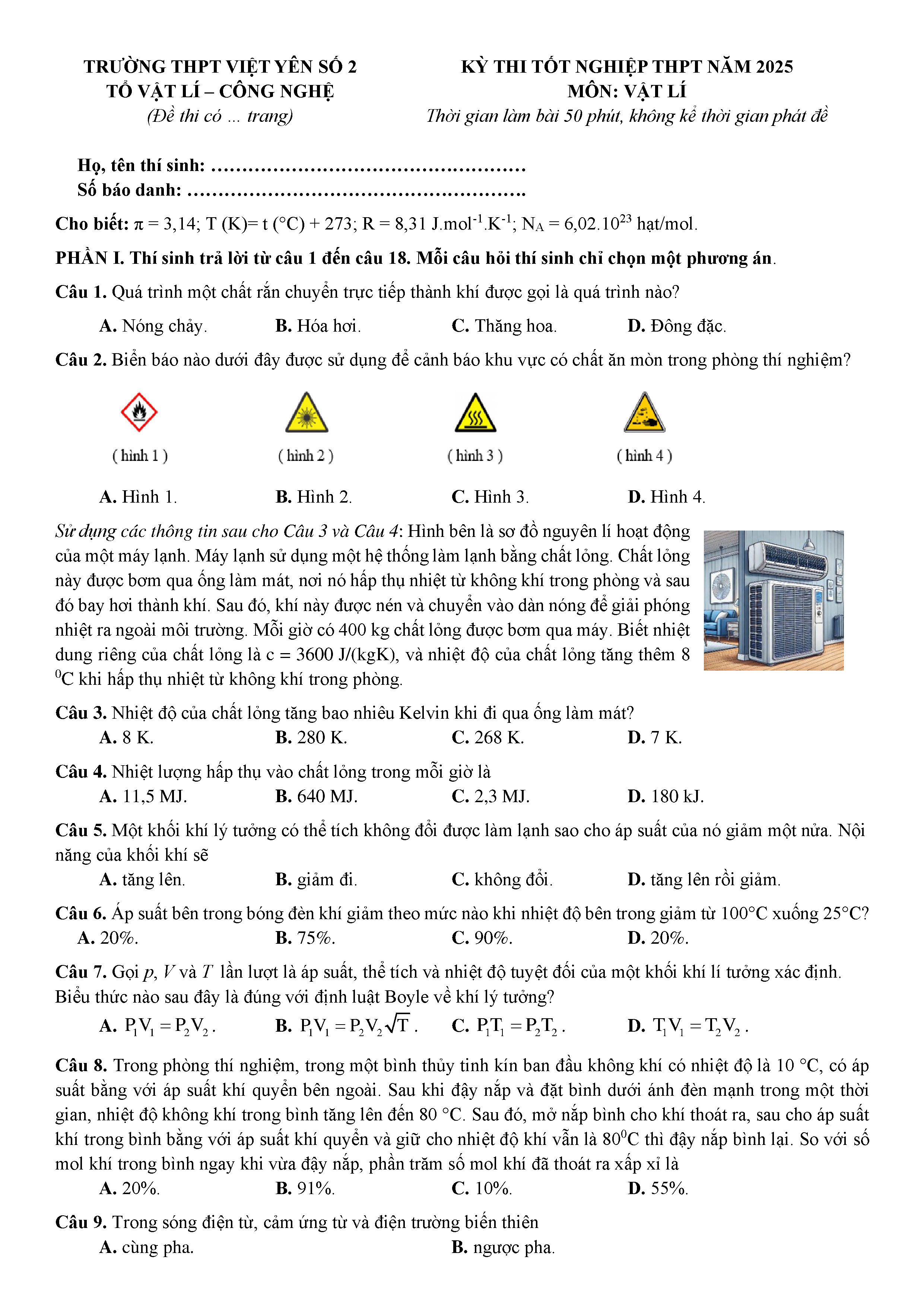Đề thi thử tốt nghiệp môn Vật lí - THPT Việt Yên - Bắc giang