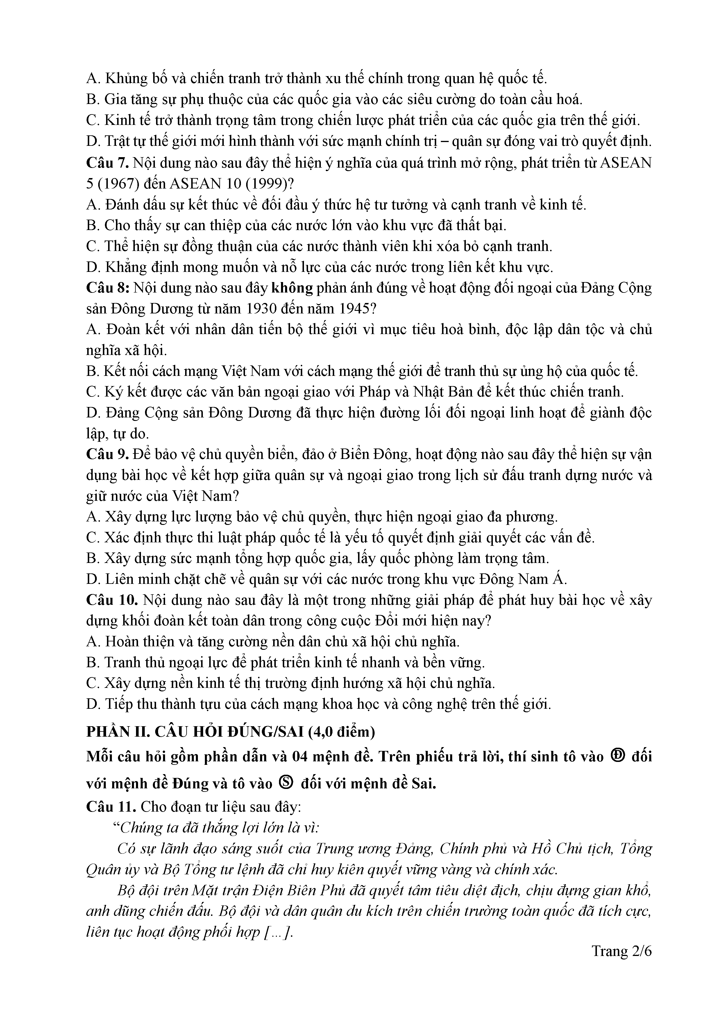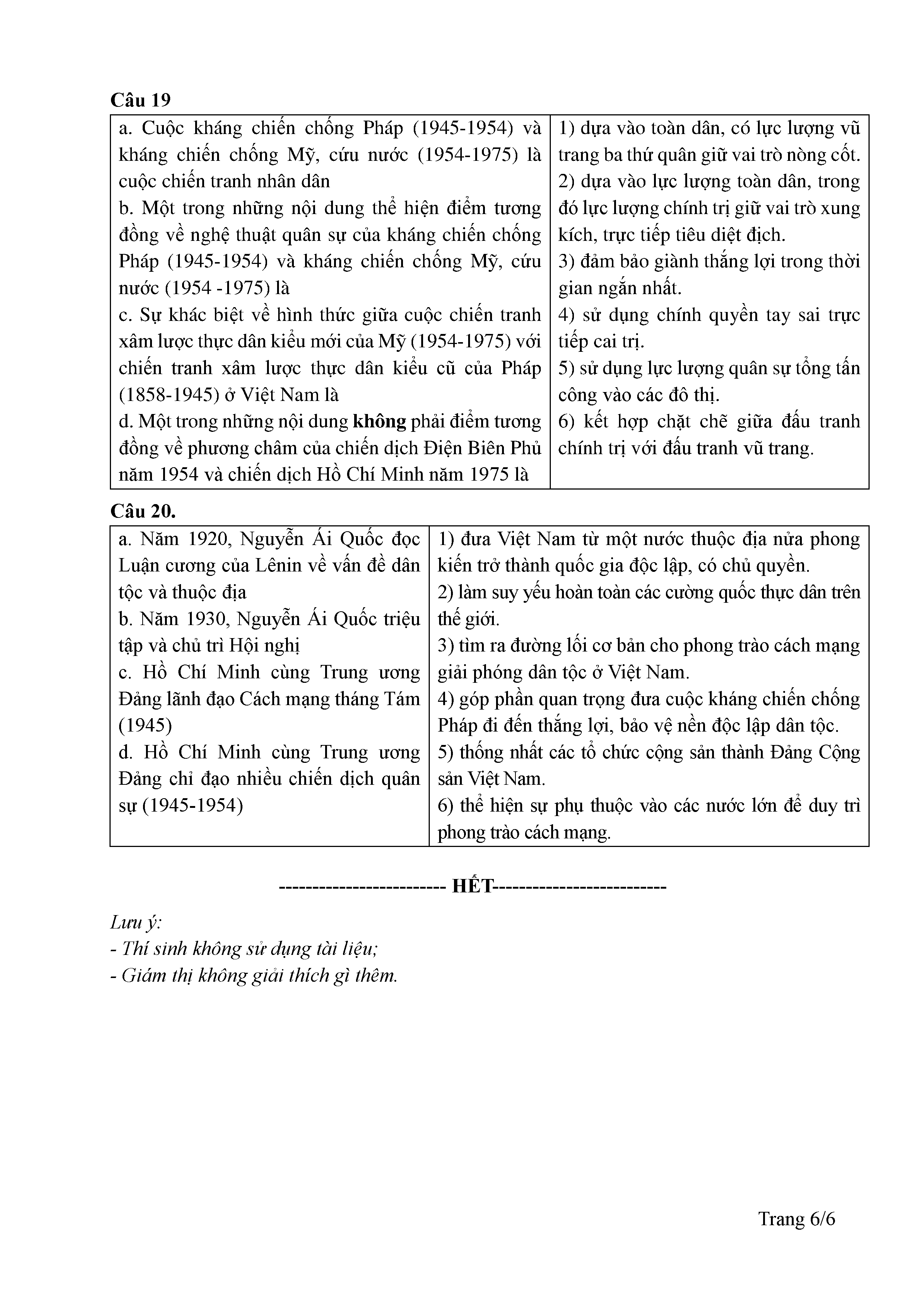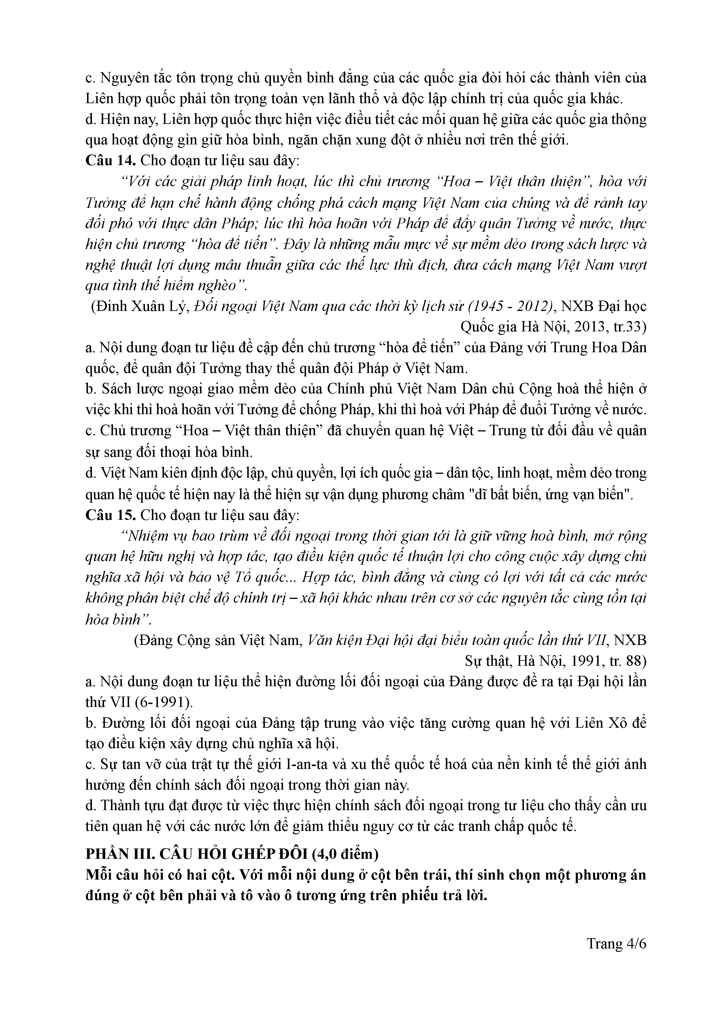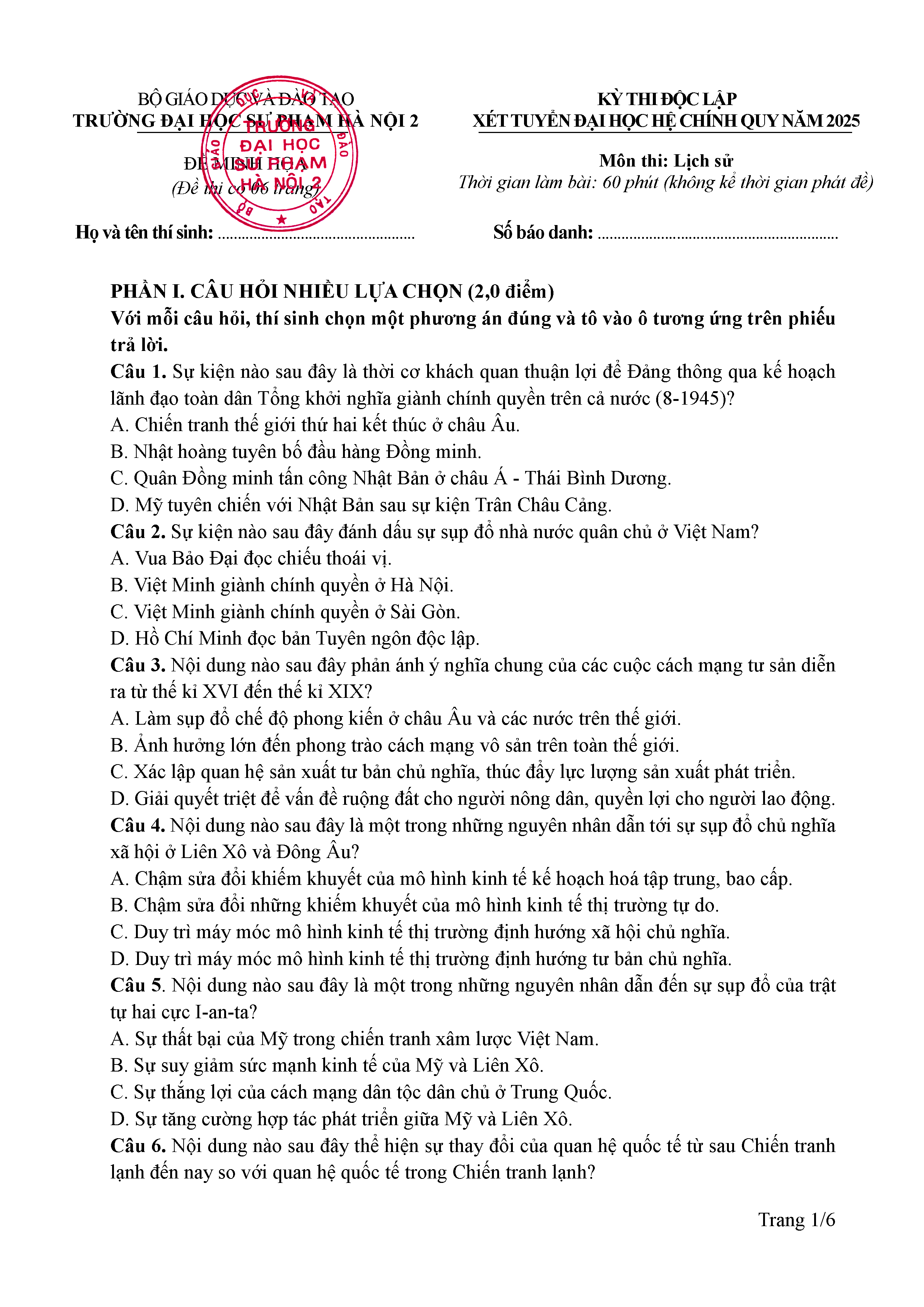 Đề minh họa môn Lịch Sử kỳ thi riêng trường ĐHSP Hà Nội 2