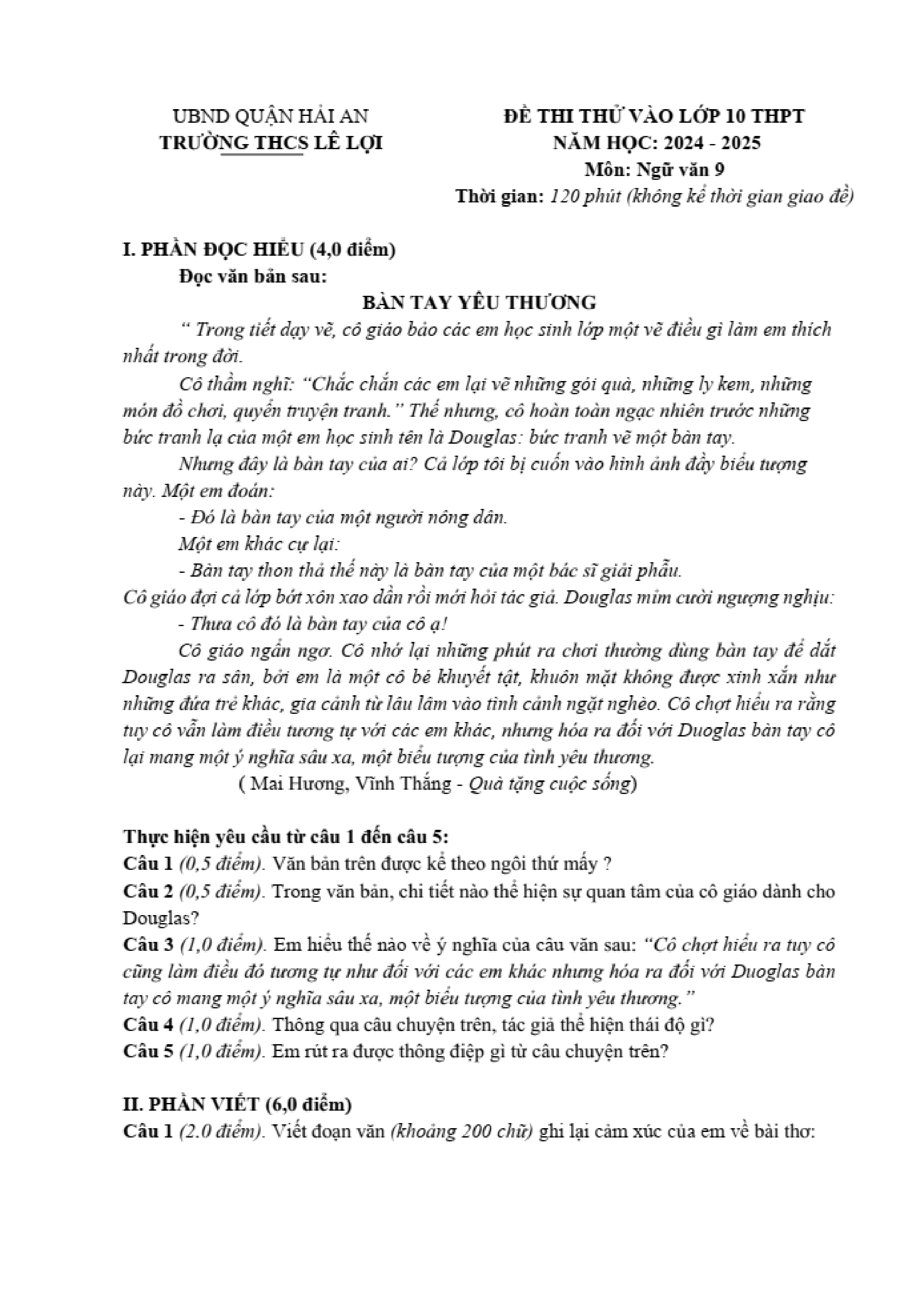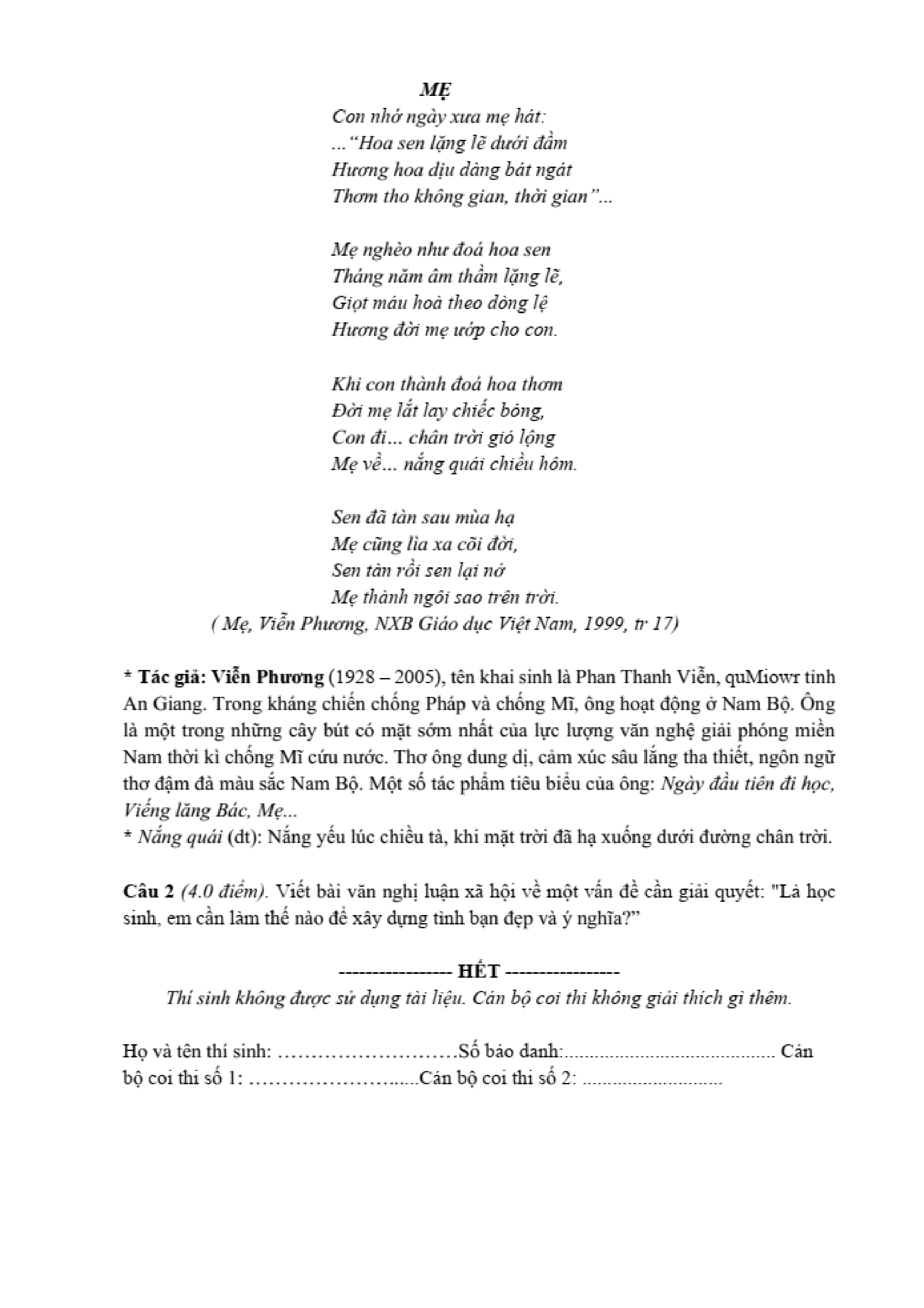 Sưu tầm các đề thi thử ngữ văn vào 10 của các trường