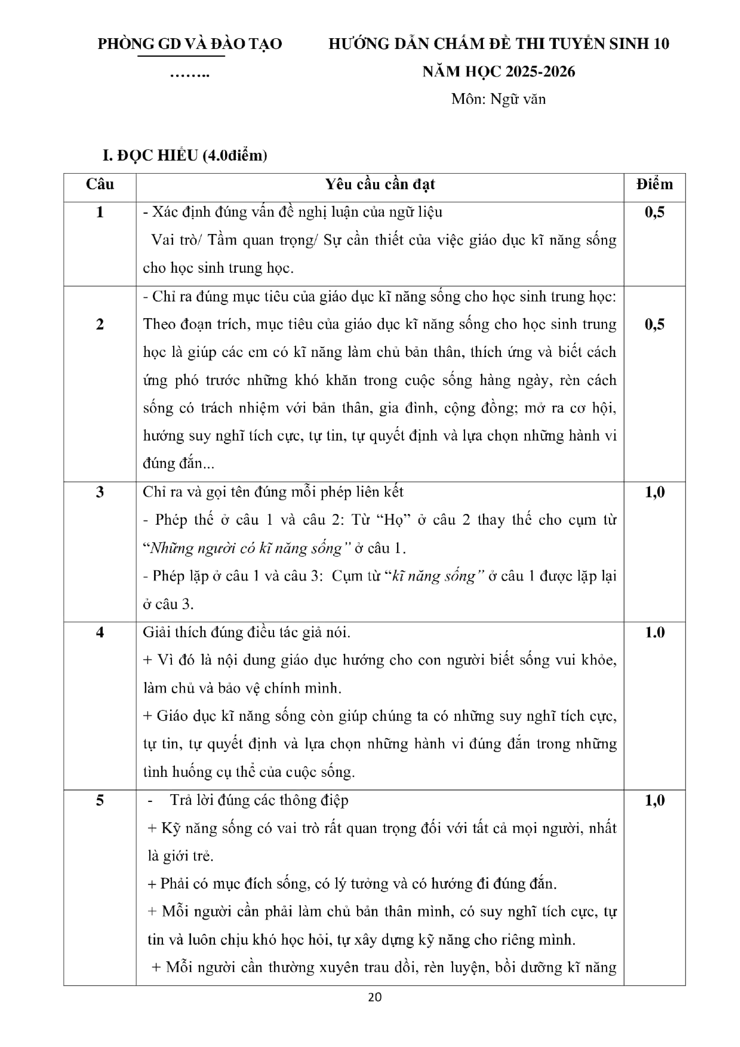 Đề Ôn Thi Vào 10 môn Ngữ Văn 2025 Có Đáp Án ( Đề 3)