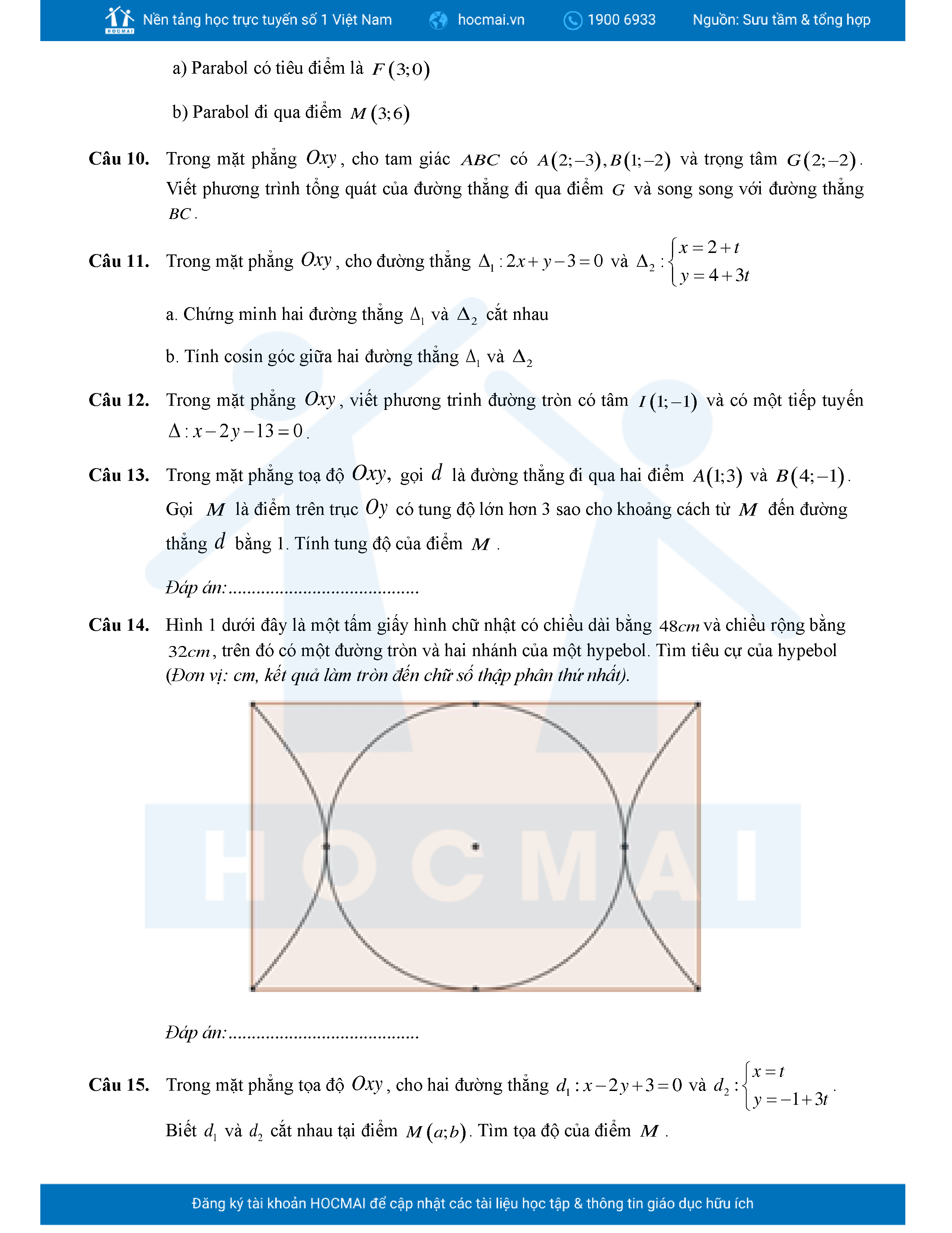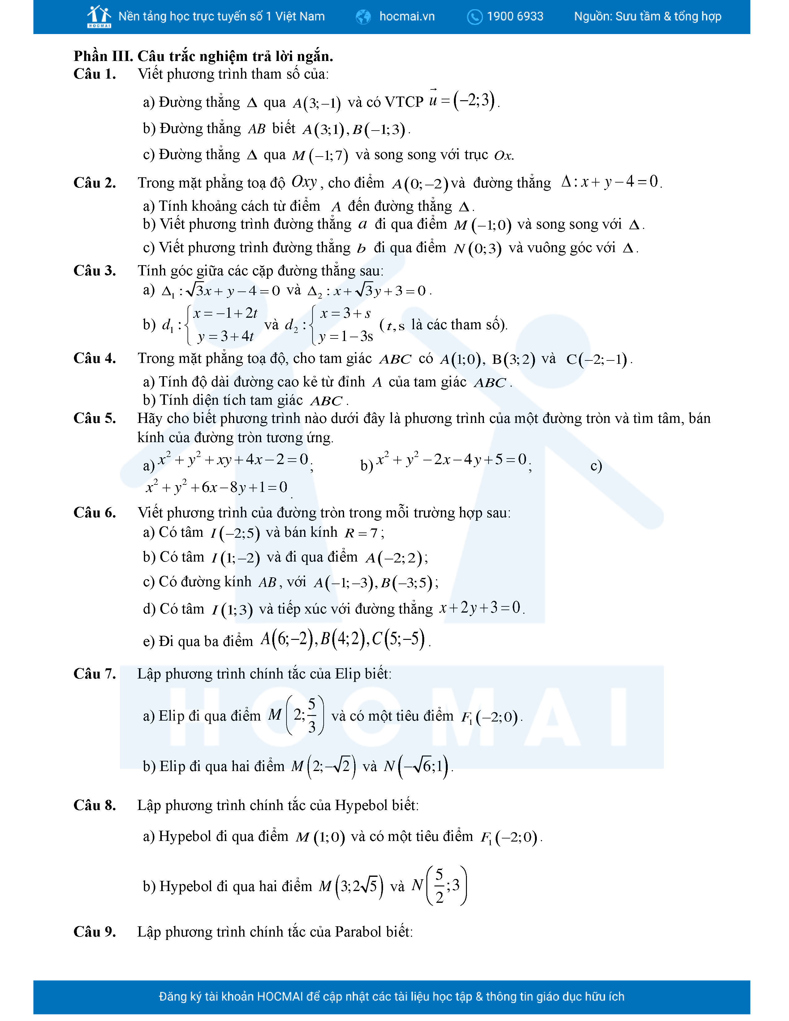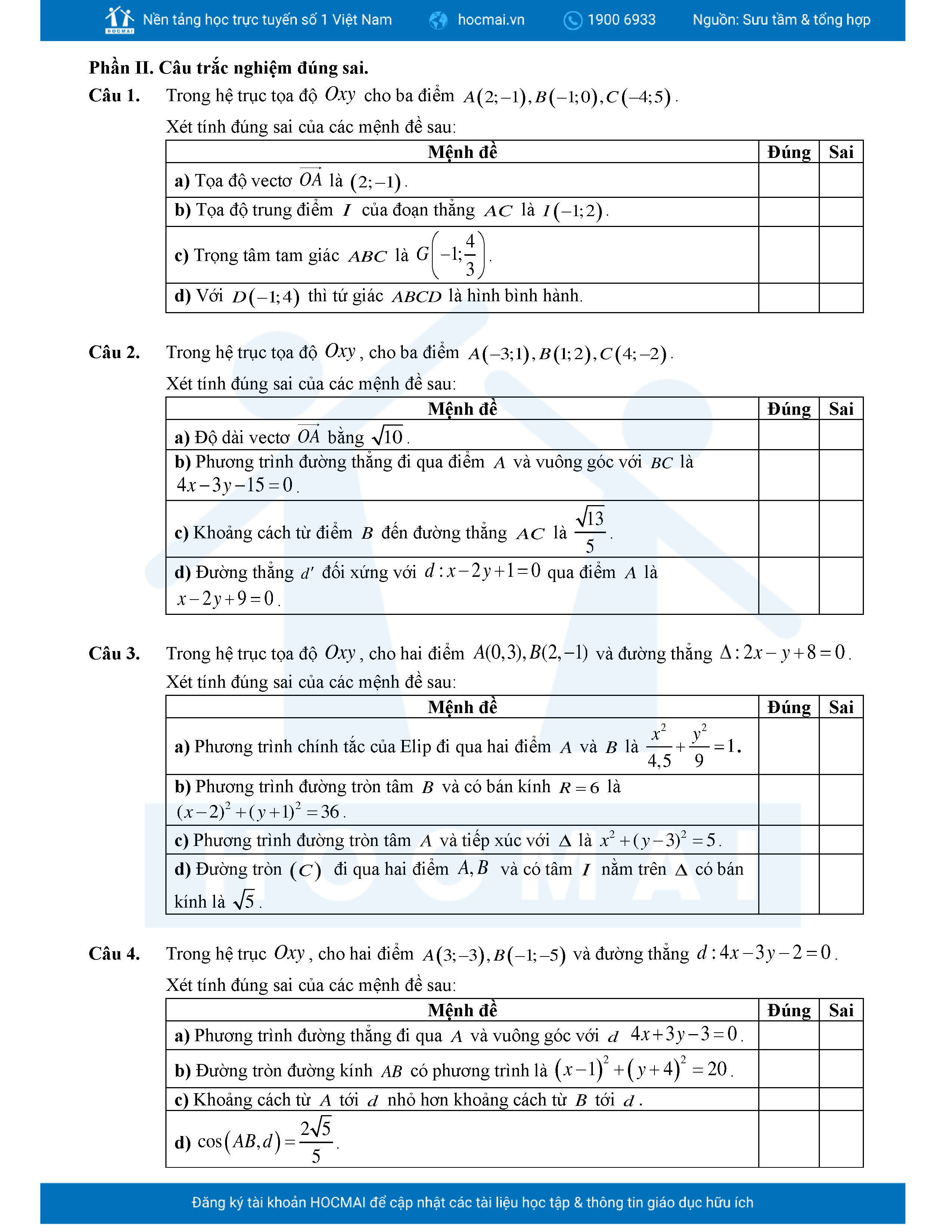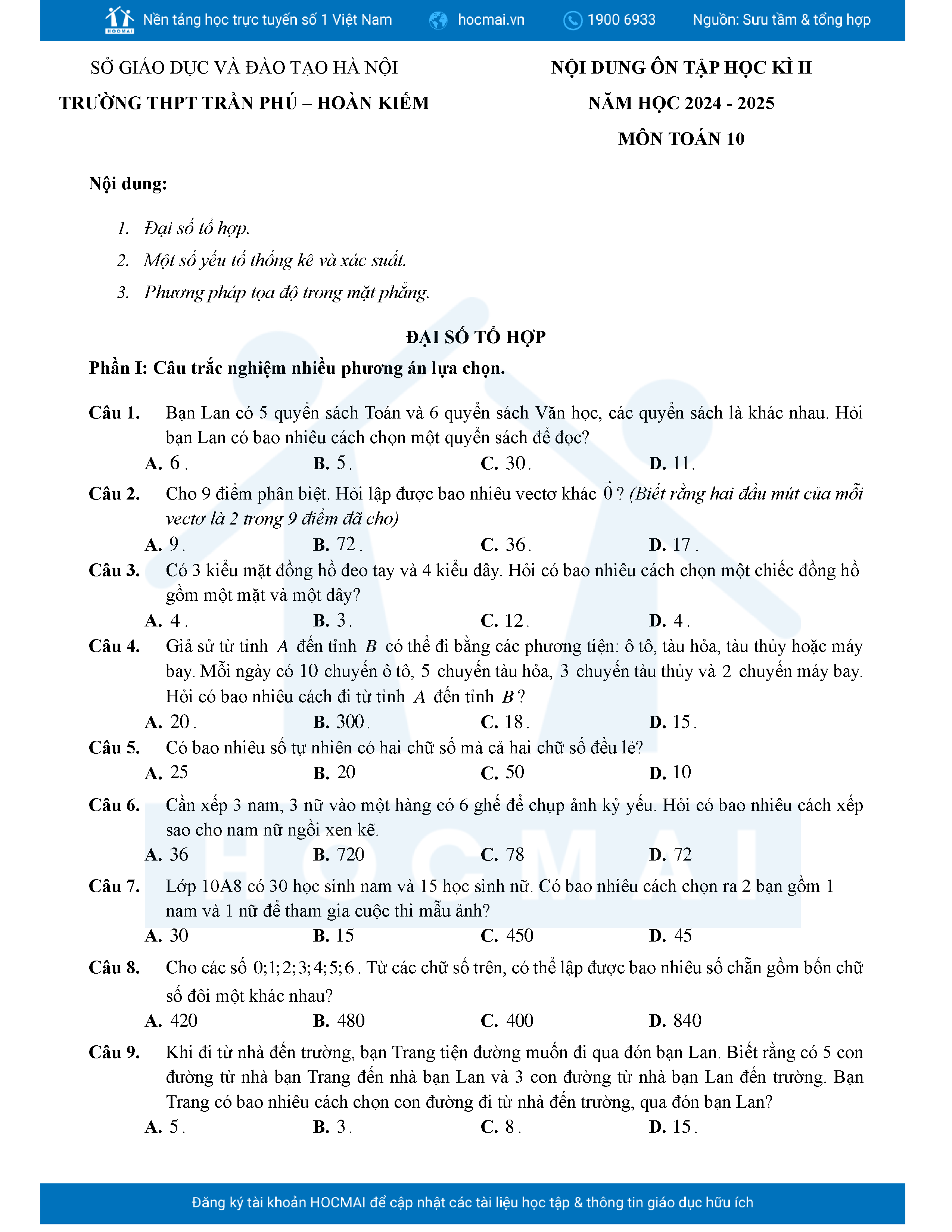 Ôn tập cuối kì 2 Toán 10 năm 2024 – 2025 trường THPT Trần Phú – Hà Nội