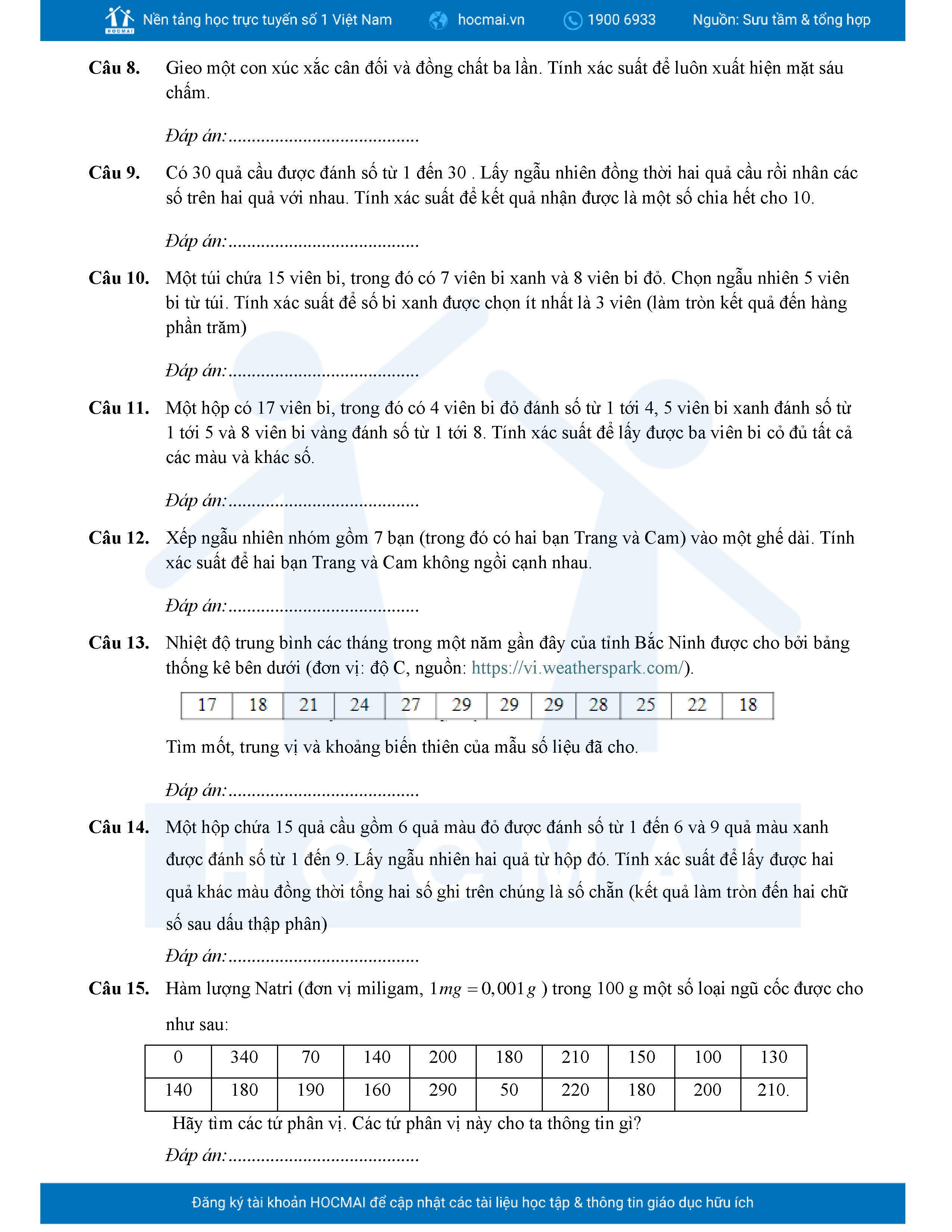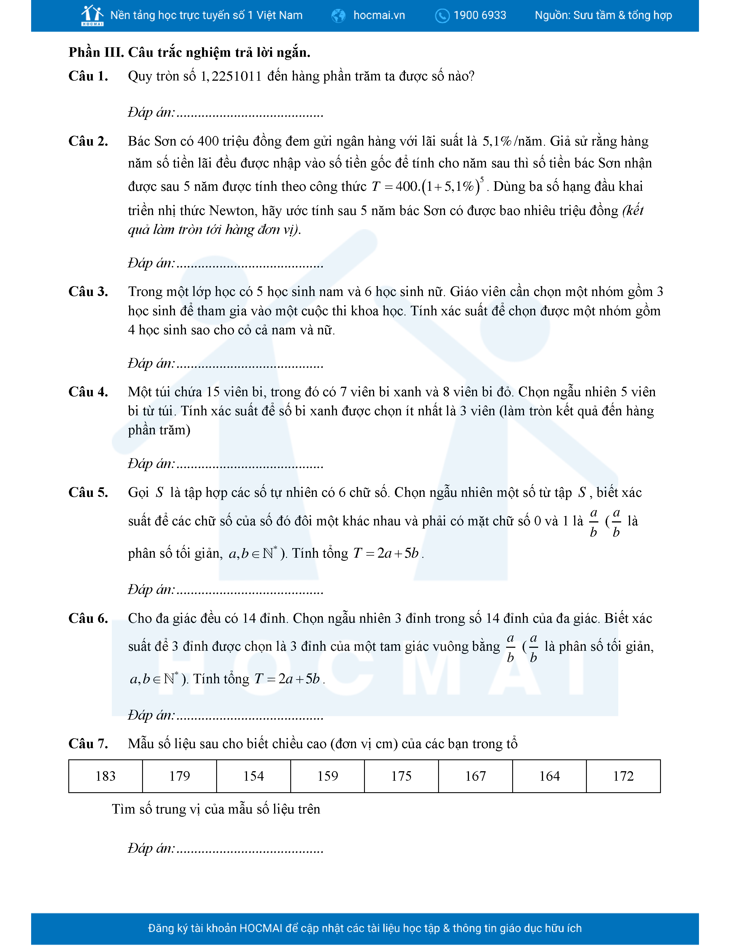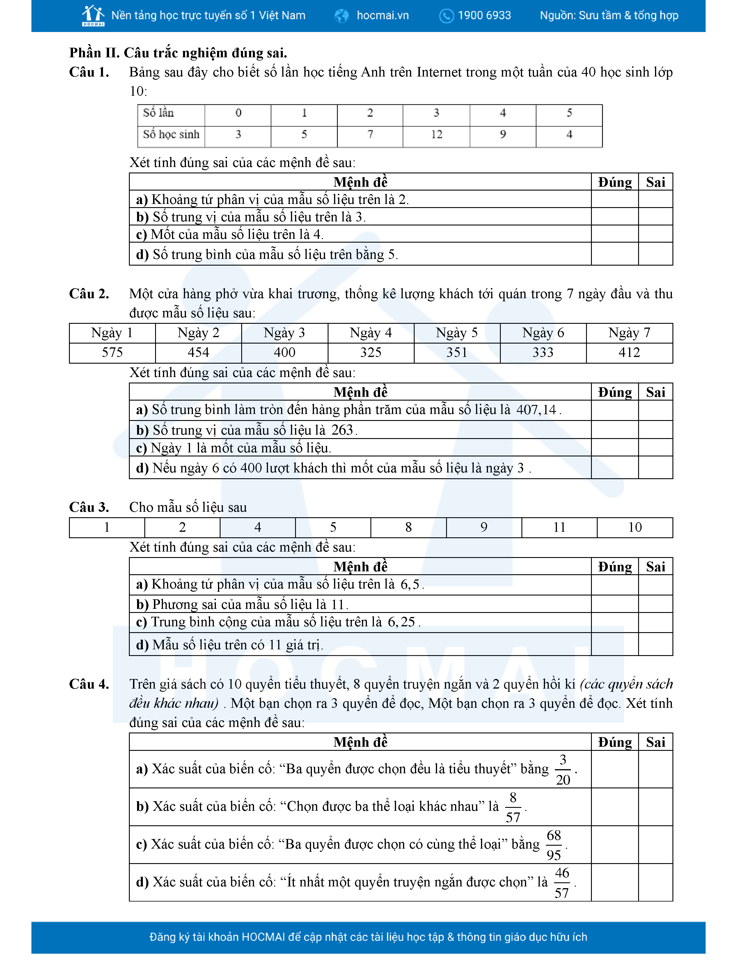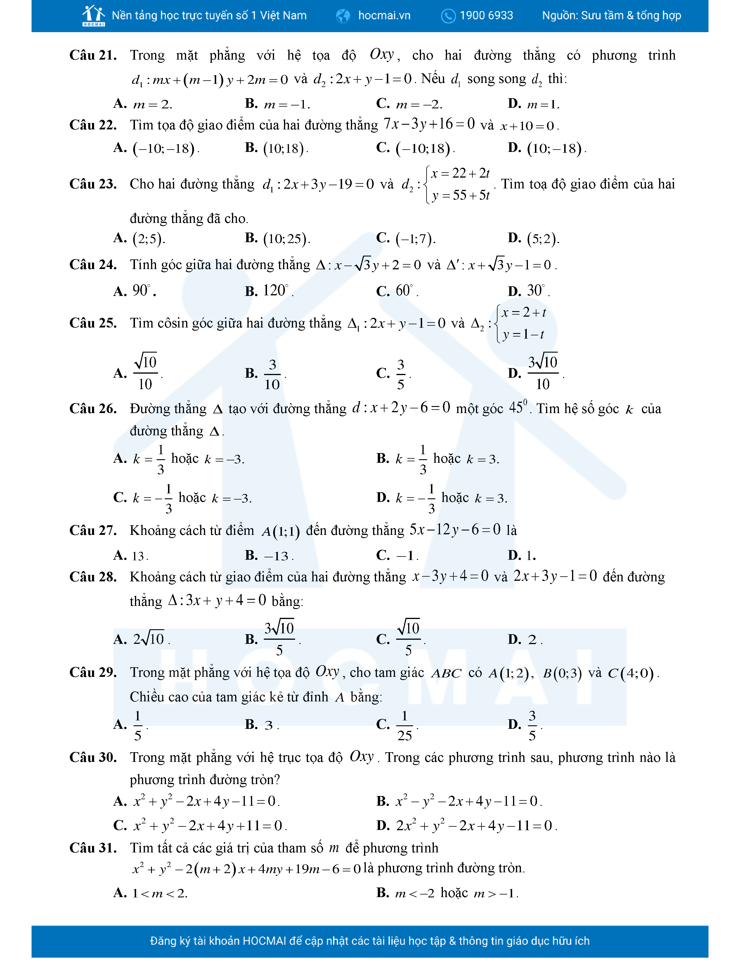 Ôn tập cuối kì 2 Toán 10 năm 2024 – 2025 trường THPT Trần Phú – Hà Nội