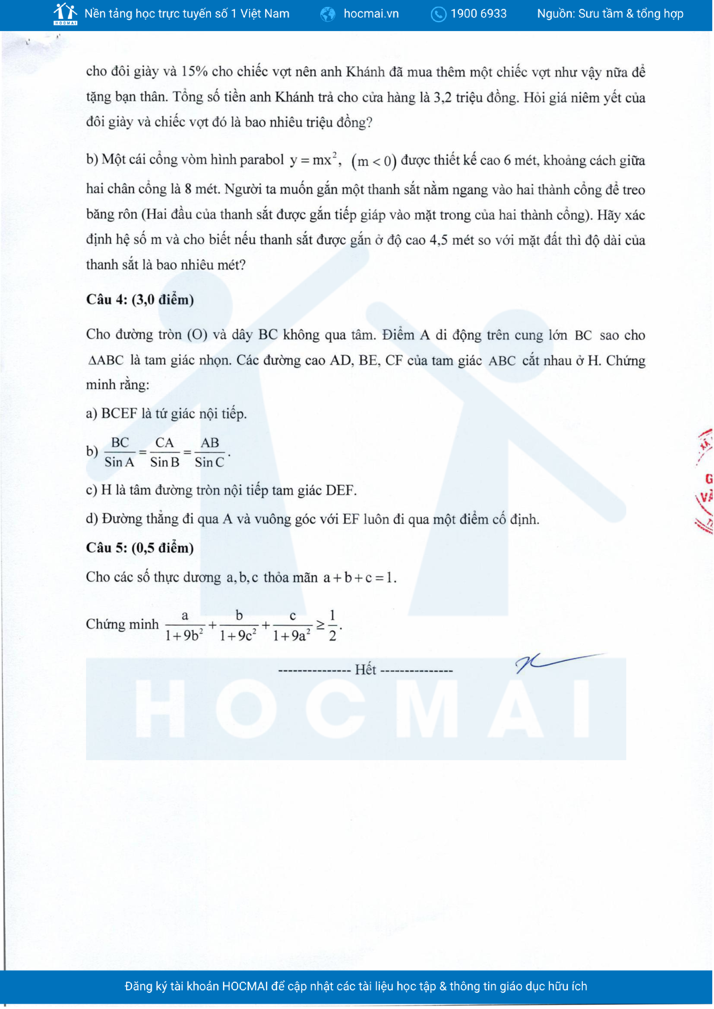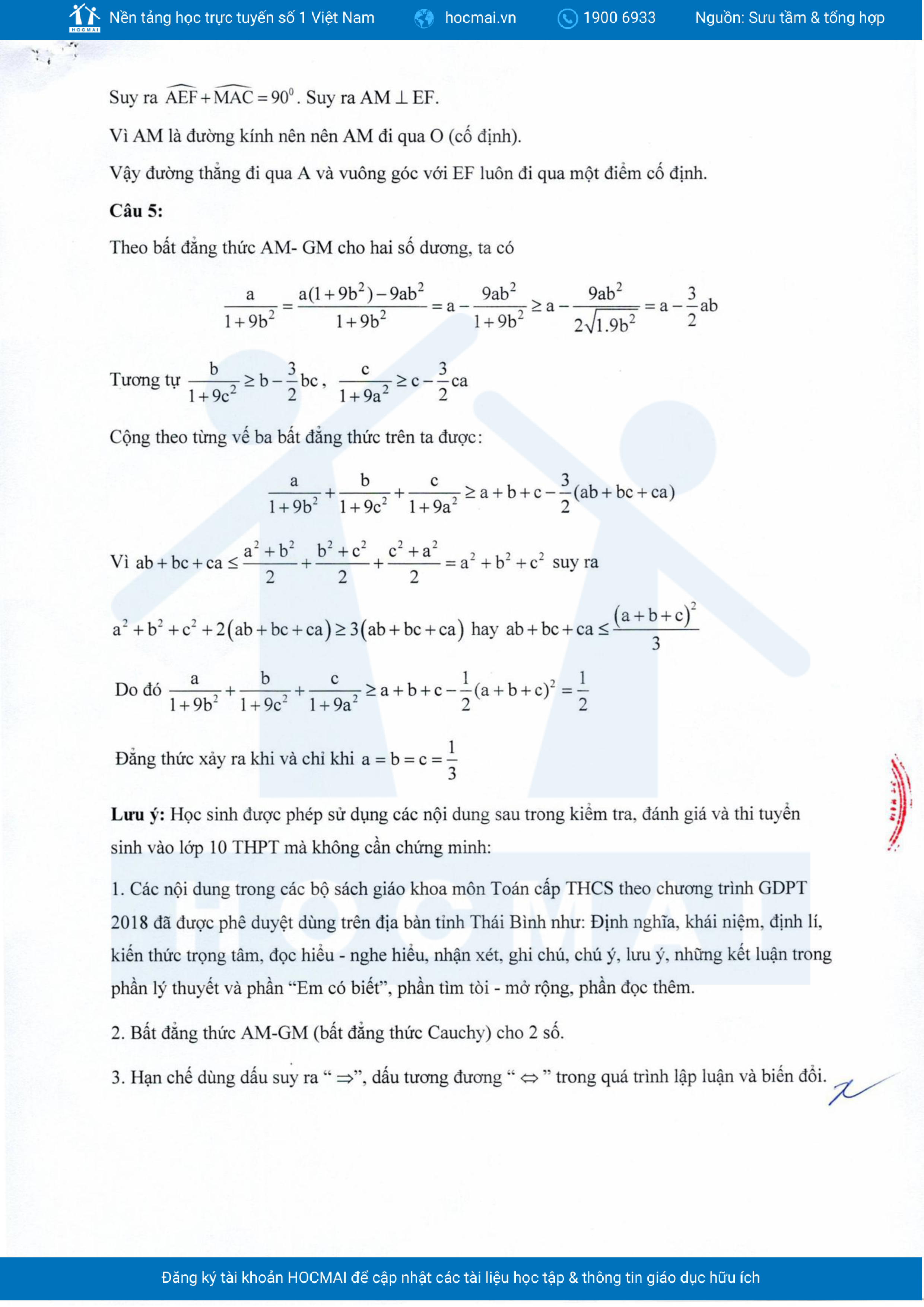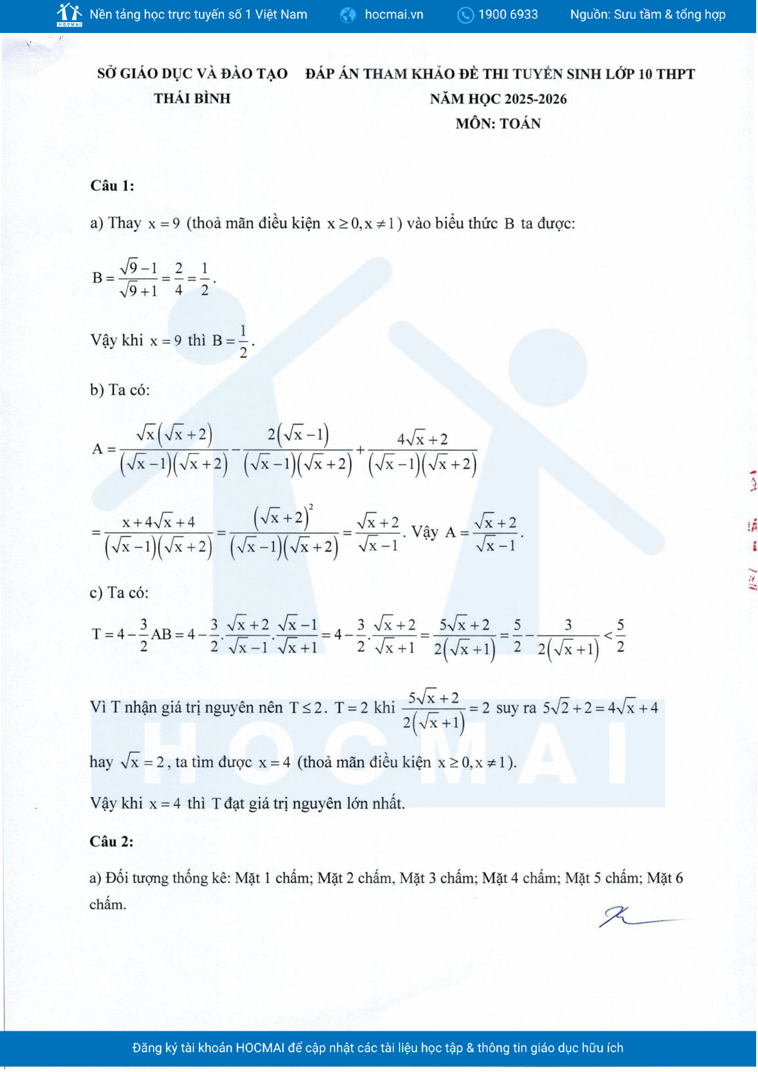 Đề minh họa tuyển sinh lớp 10 môn Toán năm 2025 – 2026 sở GD&ĐT Thái Bình kèm lời giải chi tiết.