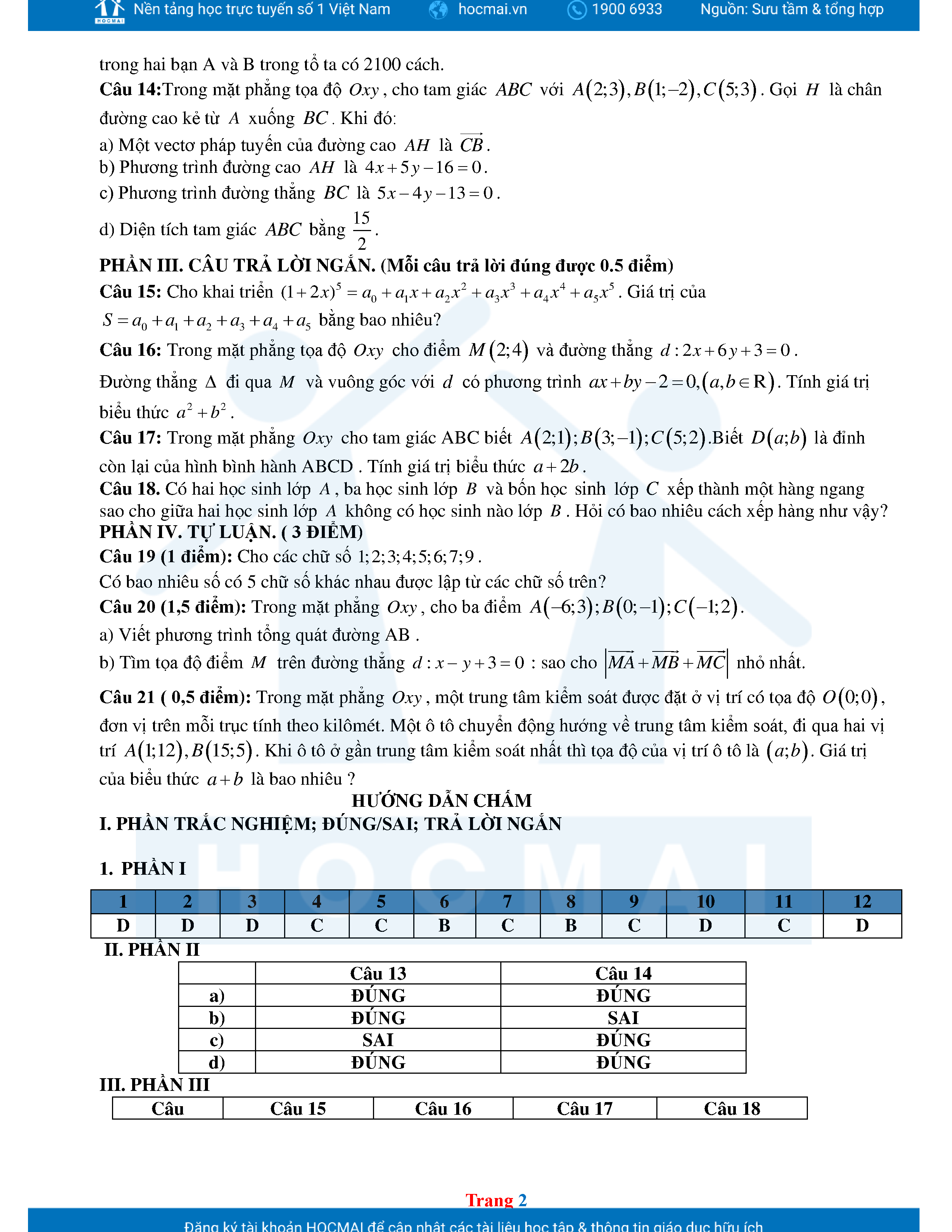 Đề Kiểm Tra Giữa Kỳ 2 Toán 10 Cánh Diều 2024-2025 kèm lời giải chi tiết.