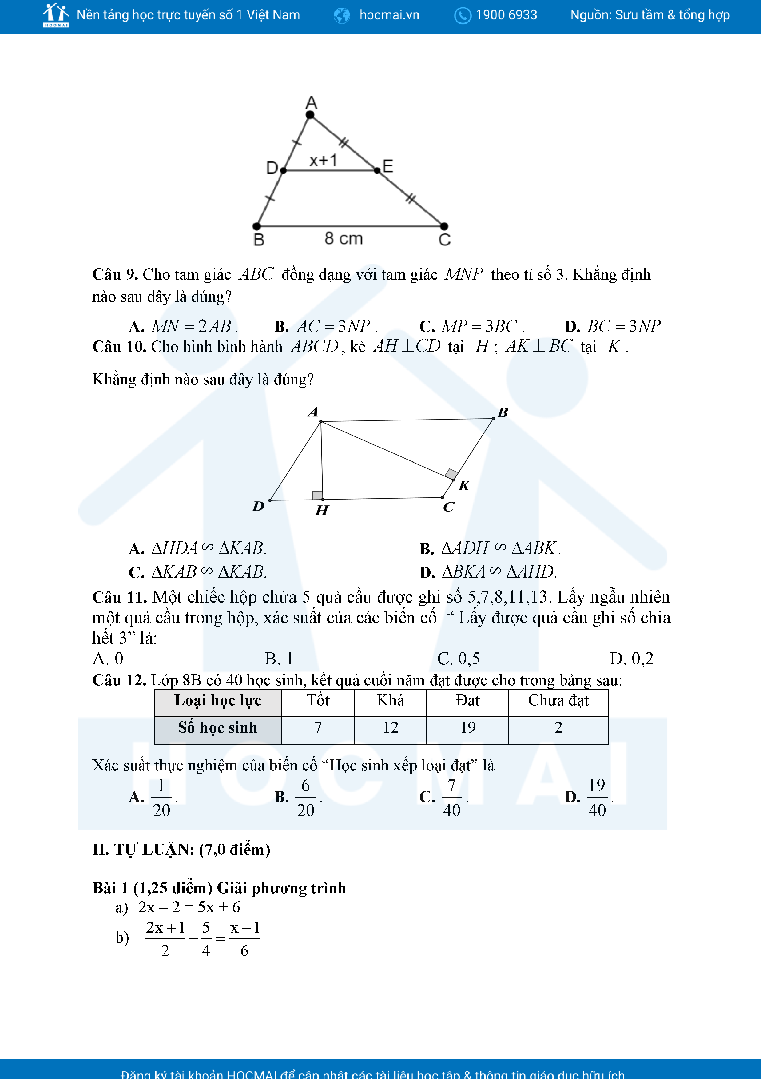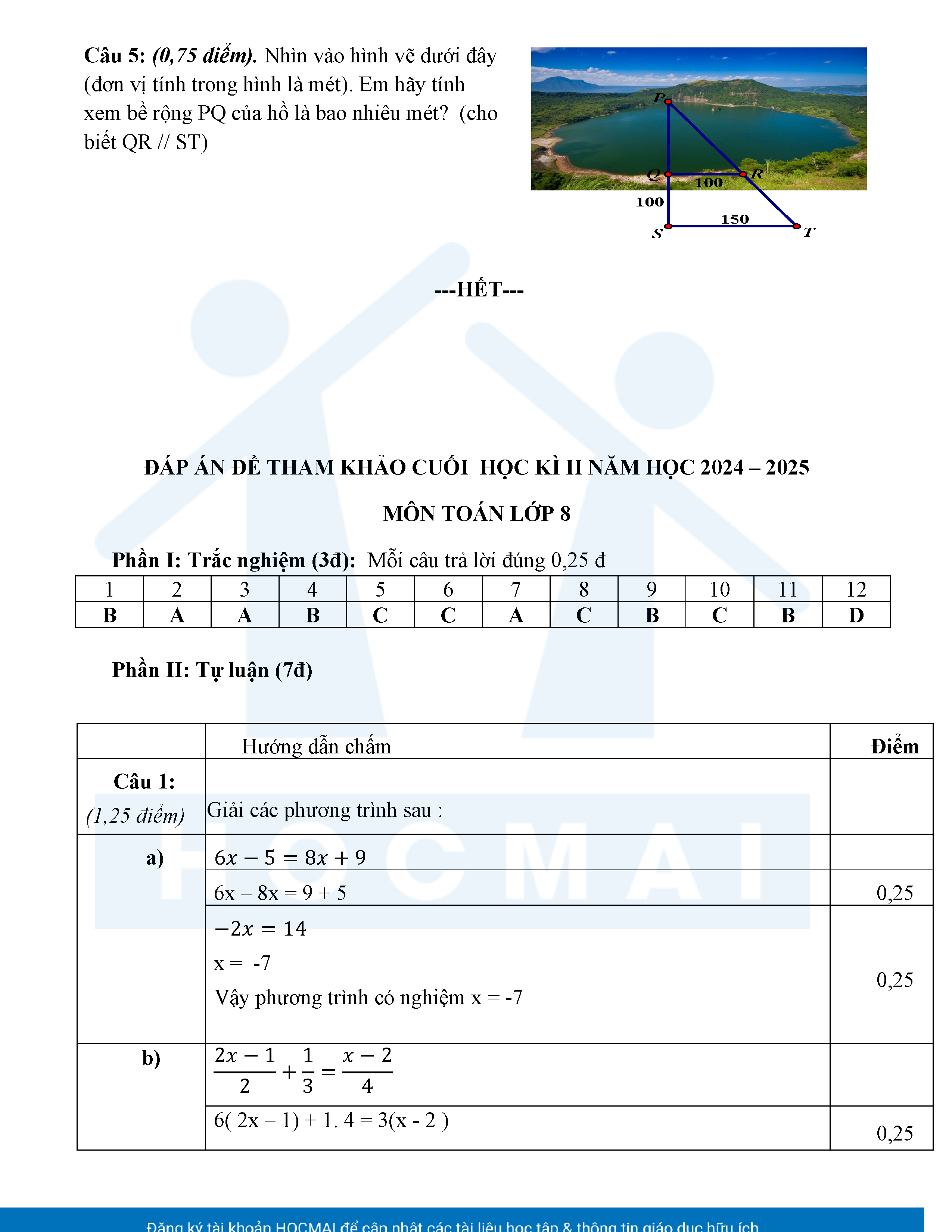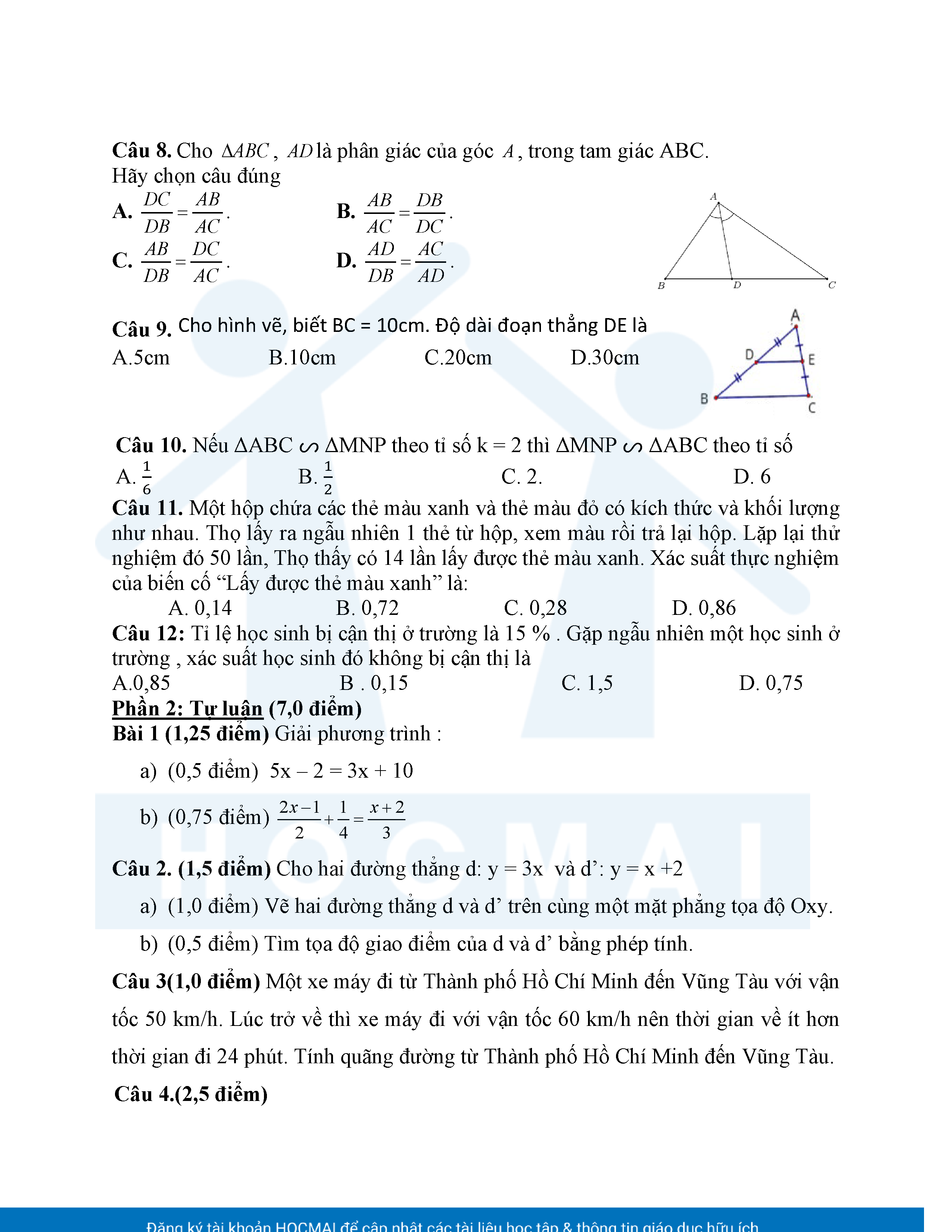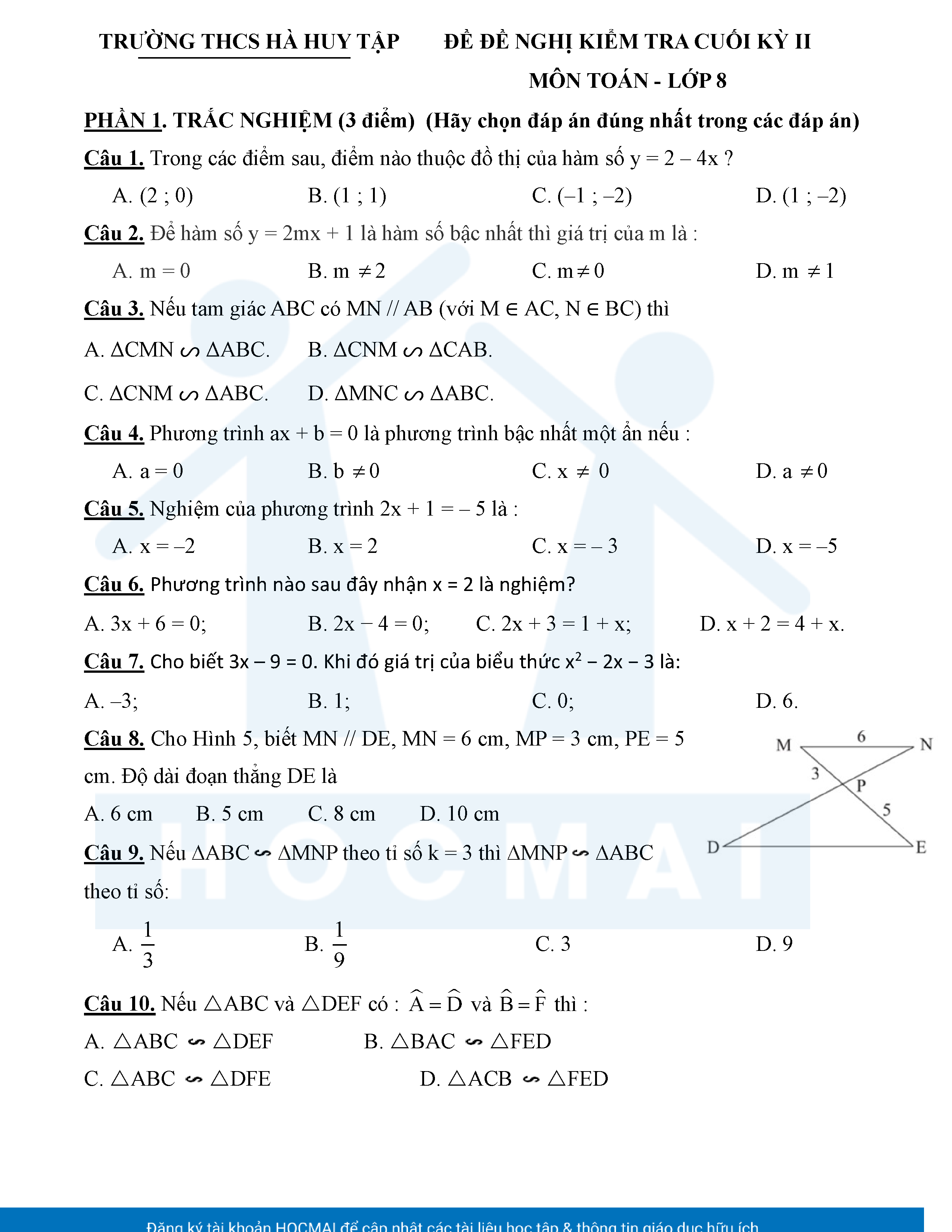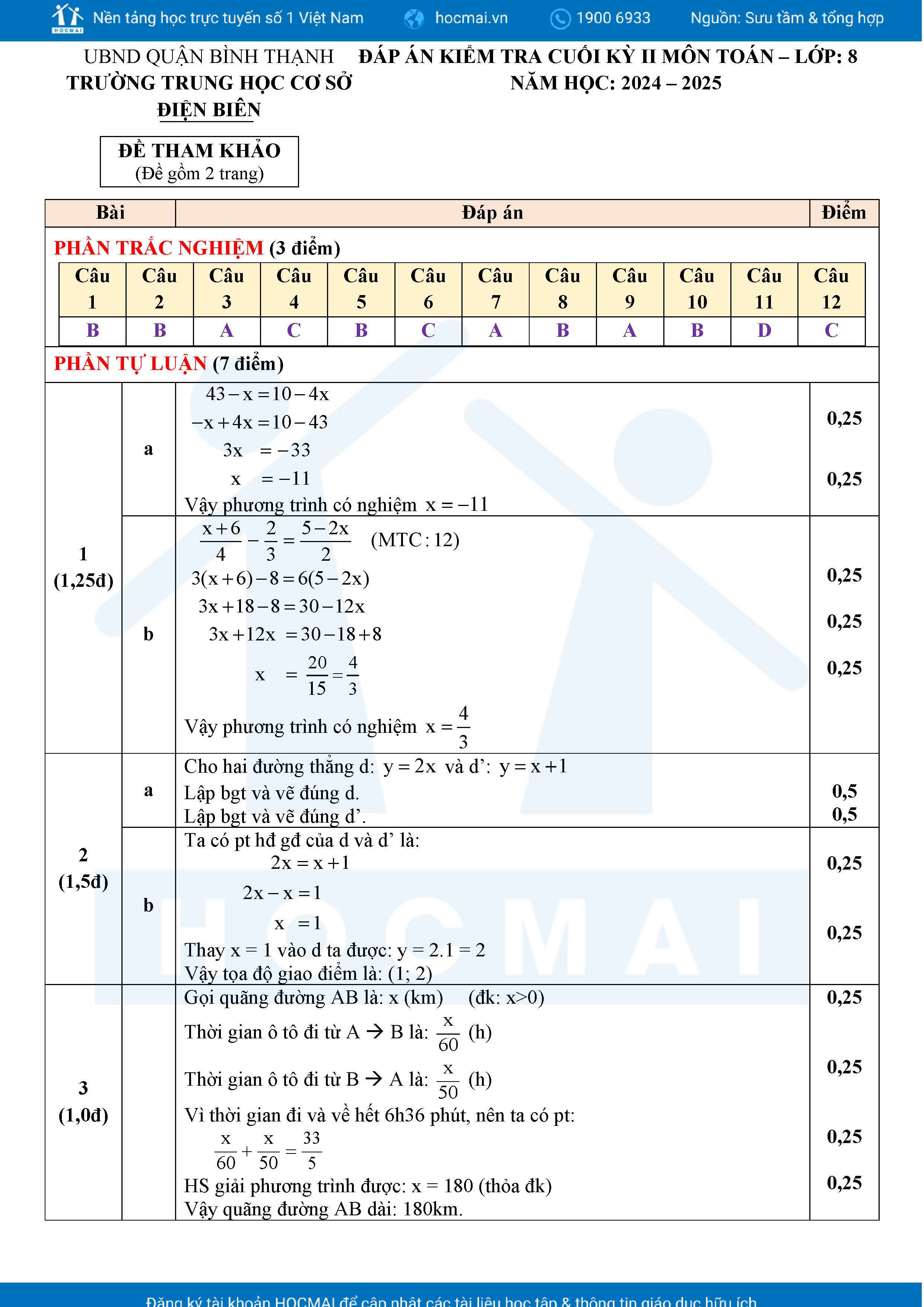 Đề tham khảo kiểm tra cuối học kì 2 môn Toán 8 năm học 2024 – 2025 phòng Giáo dục và Đào tạo UBND quận Bình Thạnh, thành phố Hồ Chí Minh