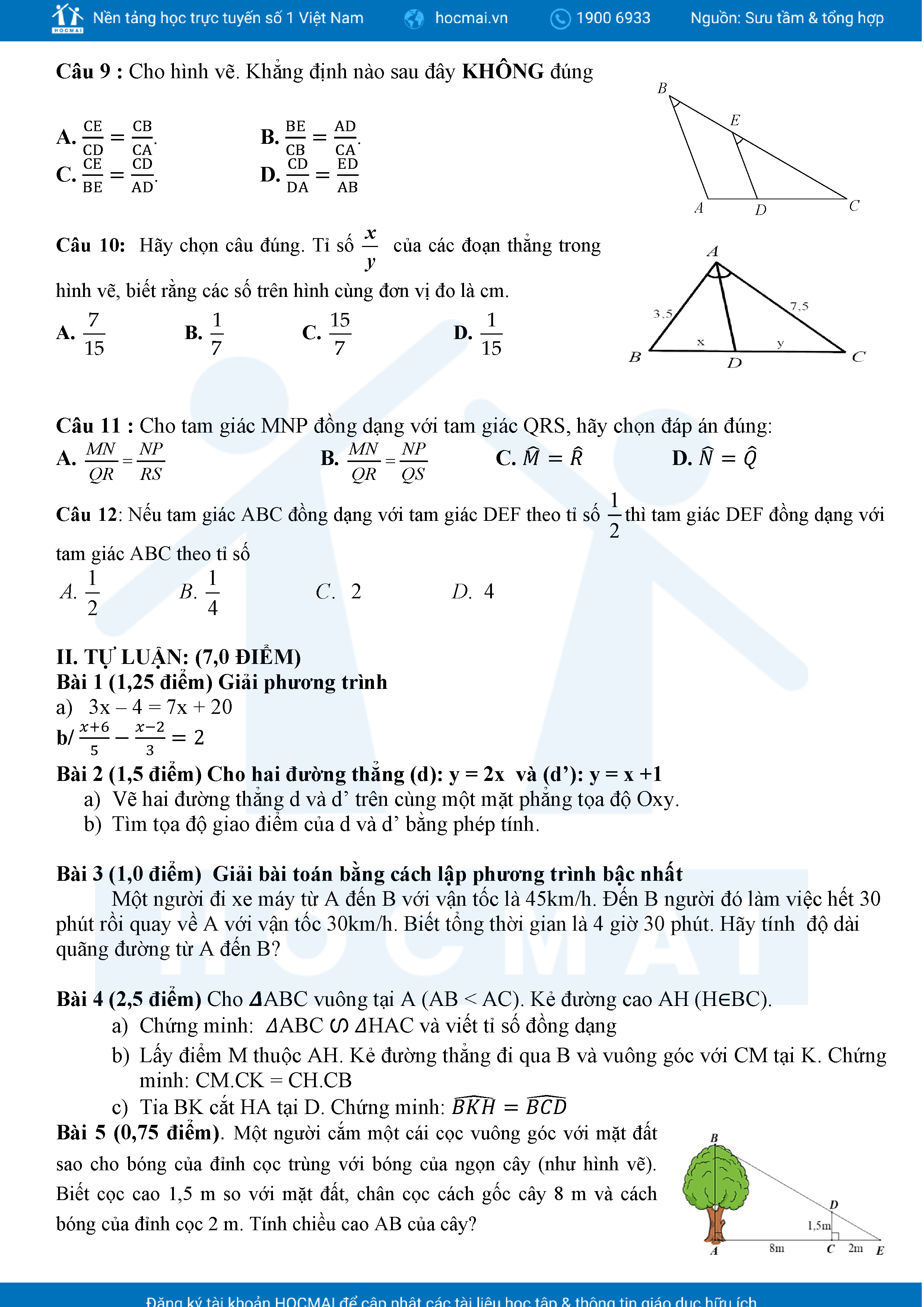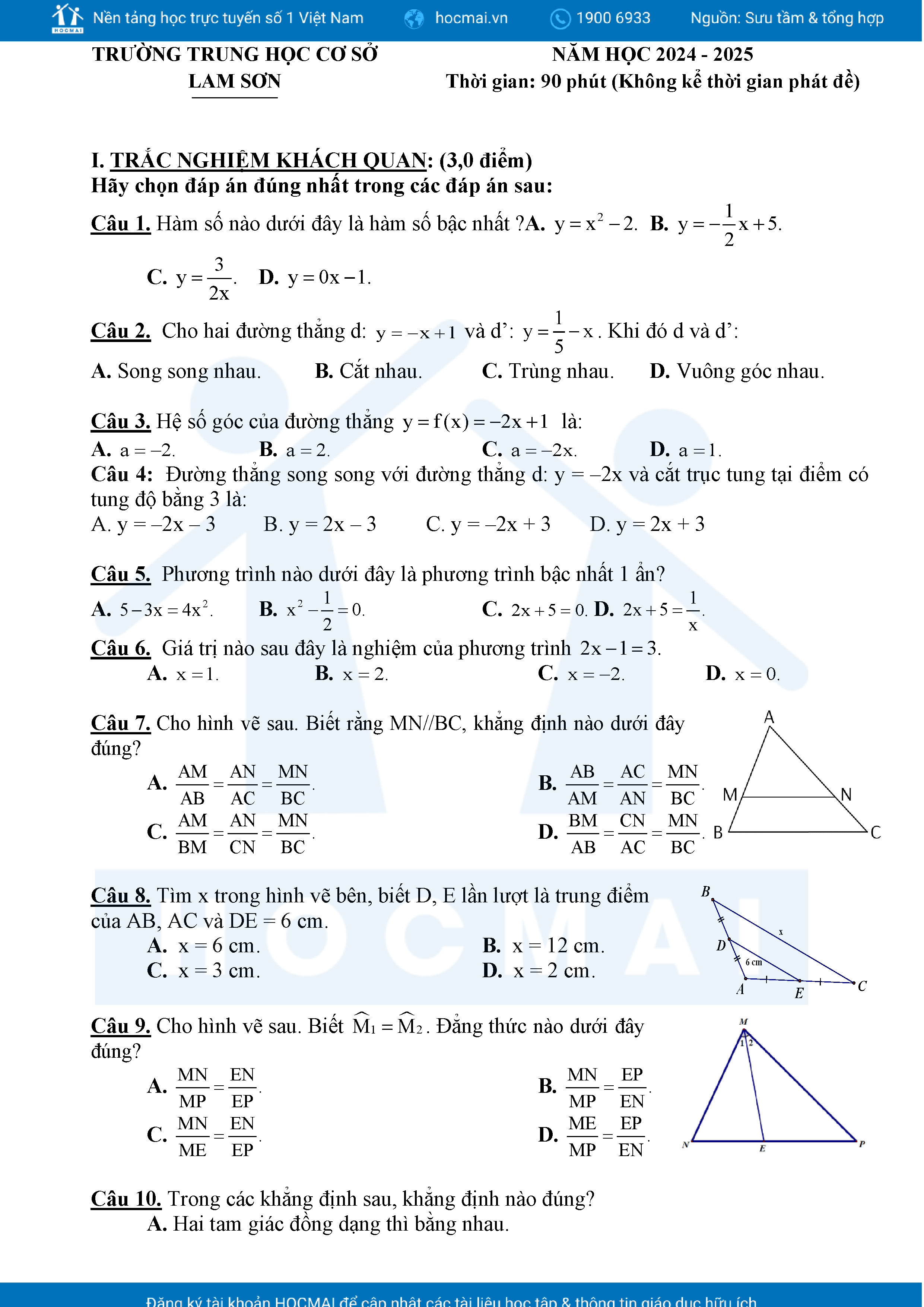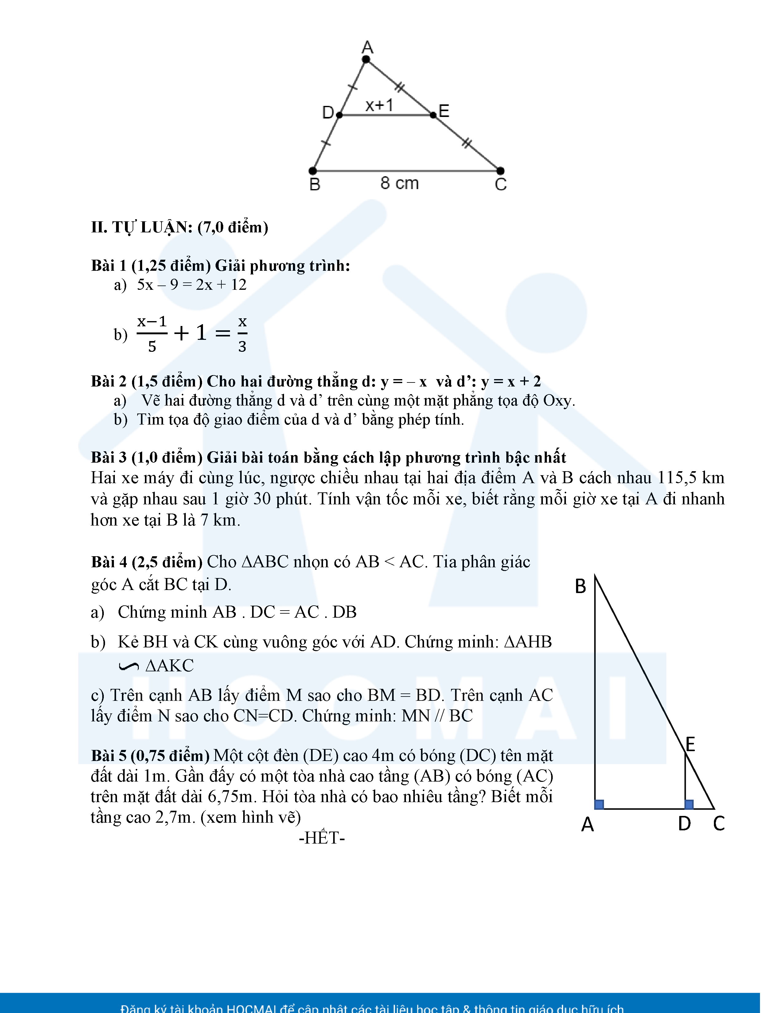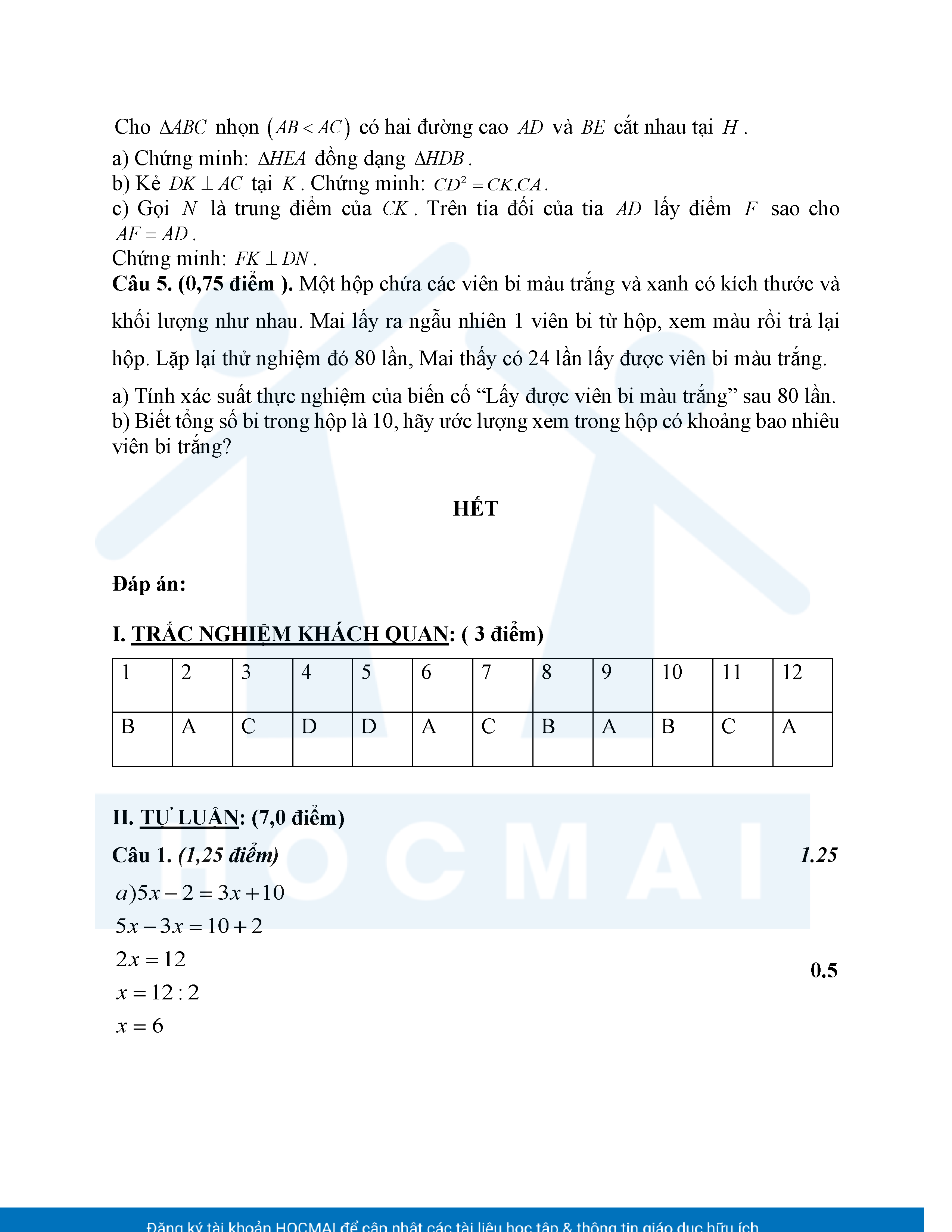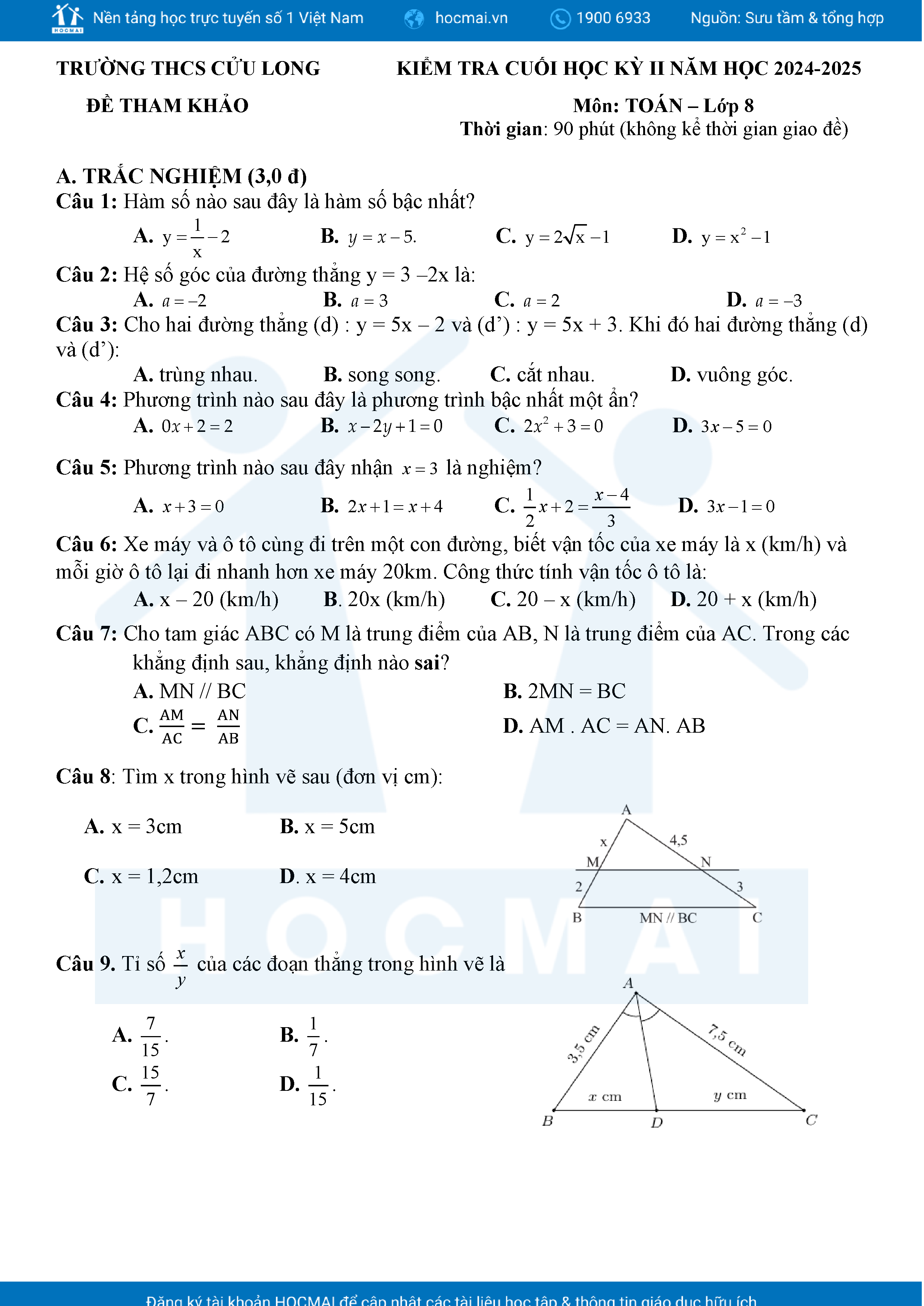 Đề tham khảo kiểm tra cuối học kì 2 môn Toán 8 năm học 2024 – 2025 phòng Giáo dục và Đào tạo UBND quận Bình Thạnh, thành phố Hồ Chí Minh