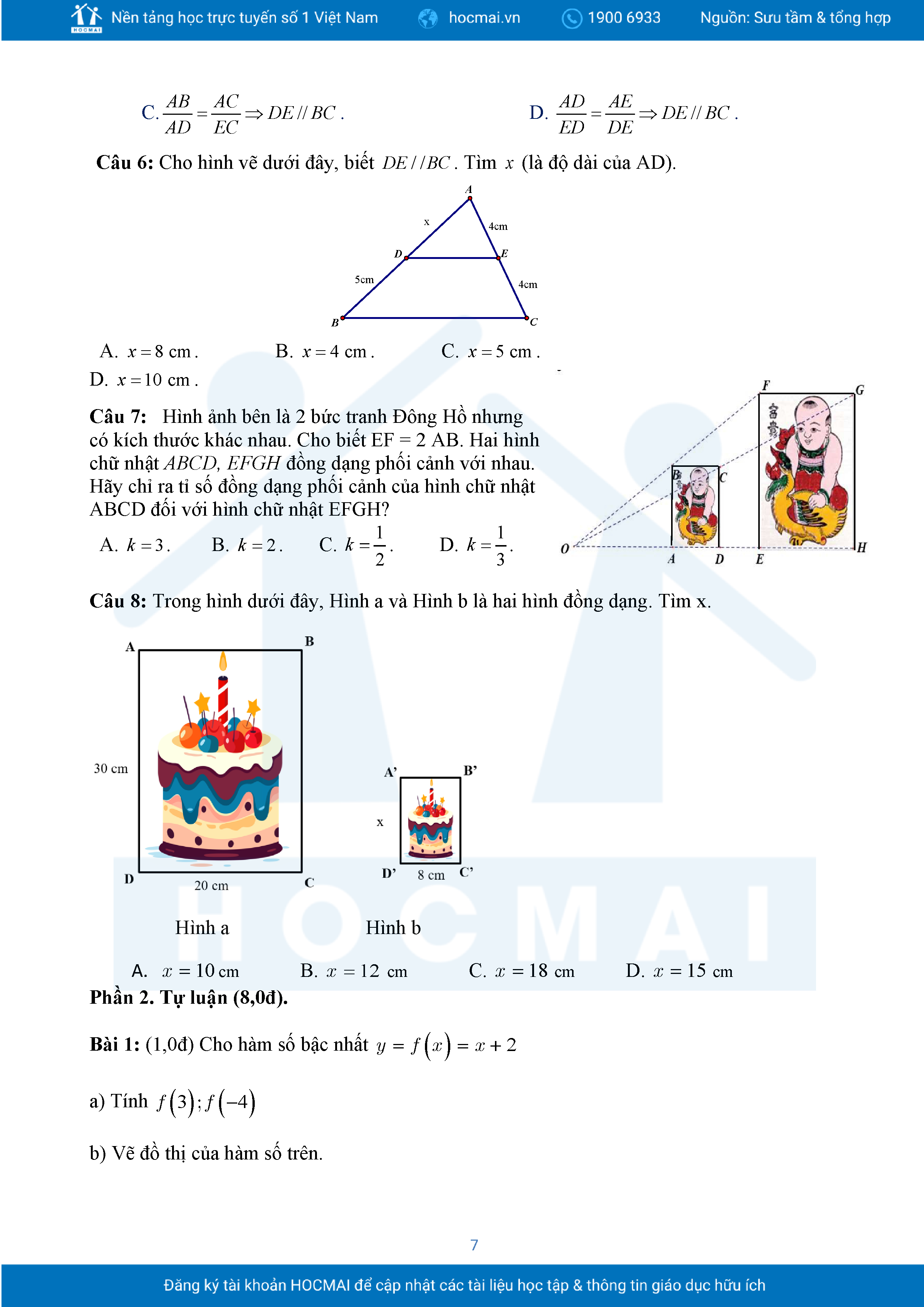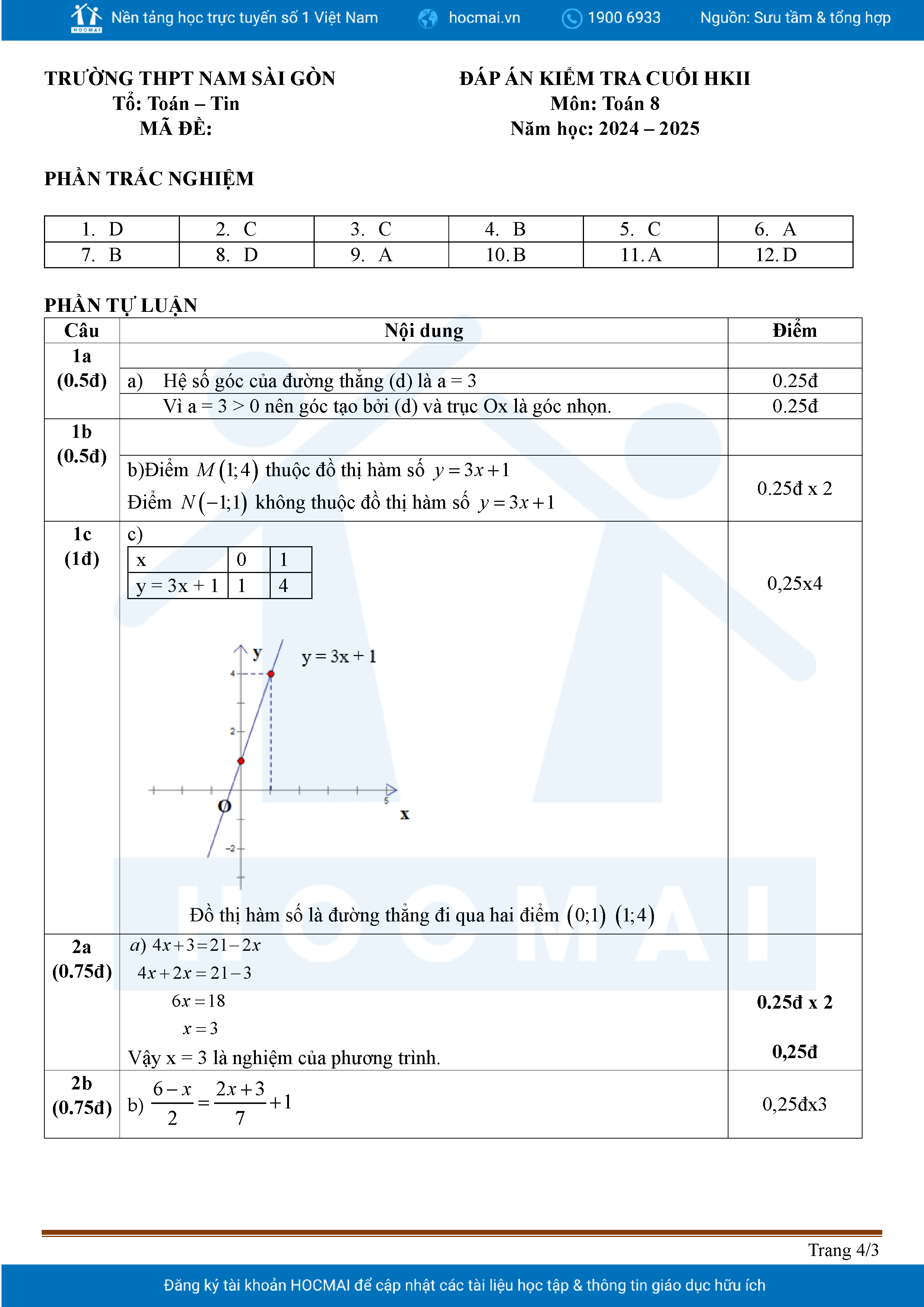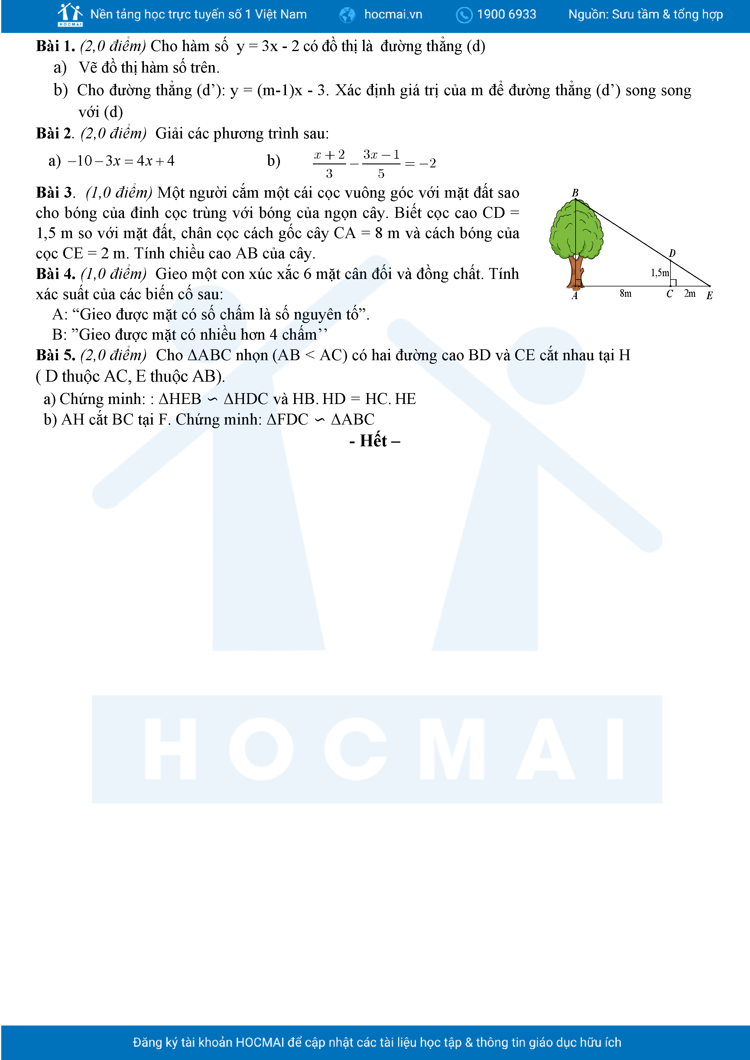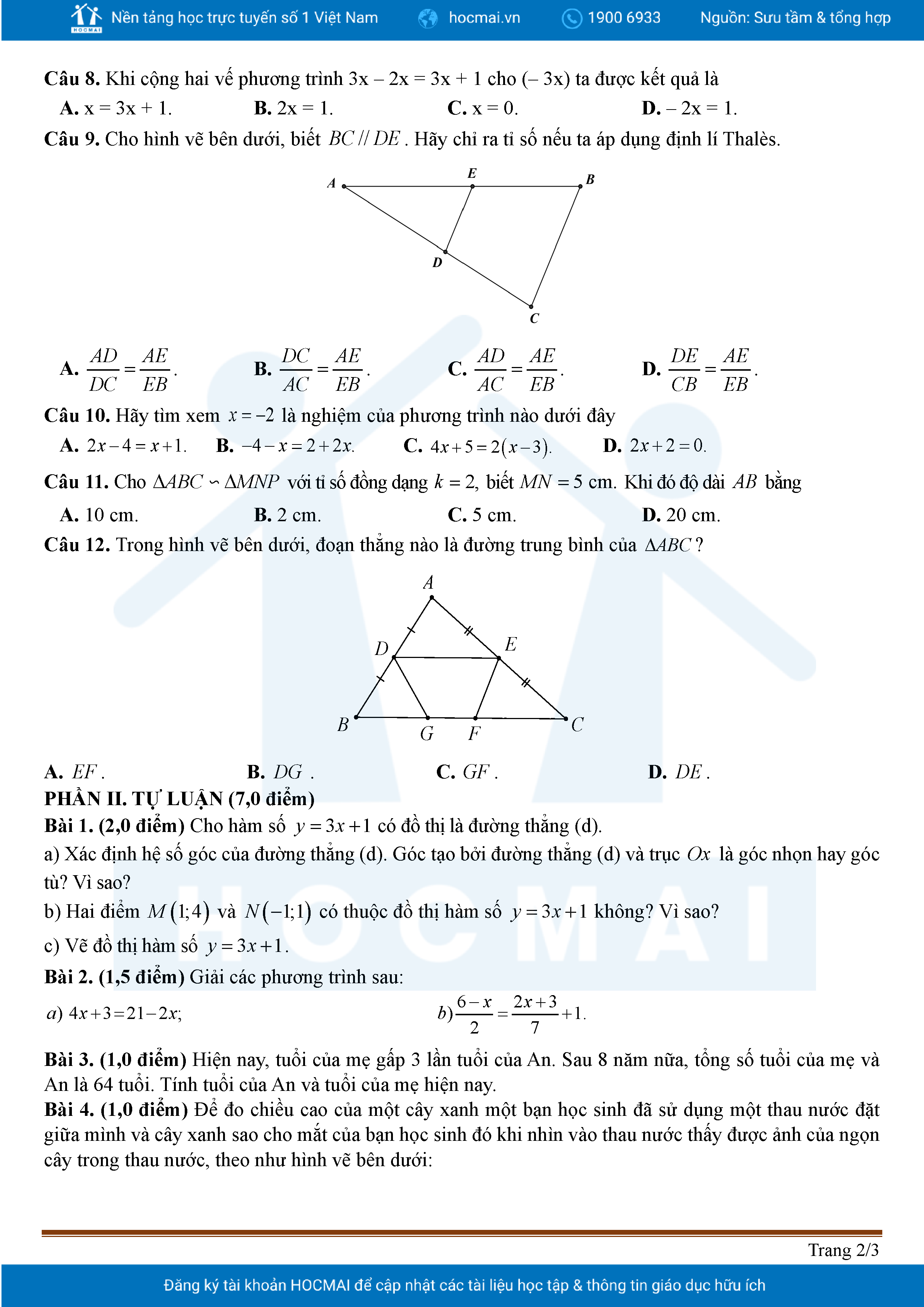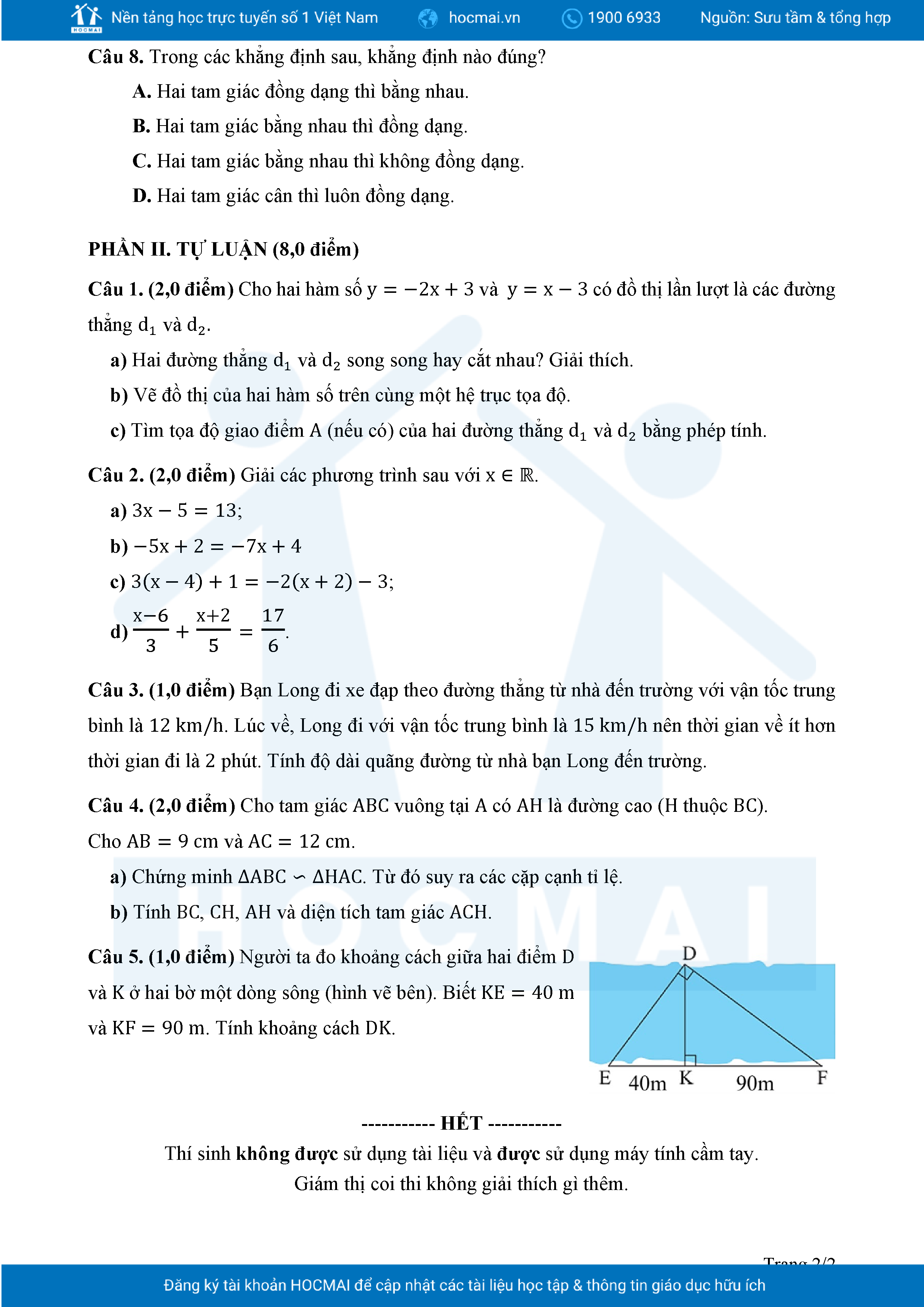 Đề tham khảo cuối kì 2 Toán 8 năm 2024 – 2025 phòng GD&ĐT Quận 7 – TP HCM