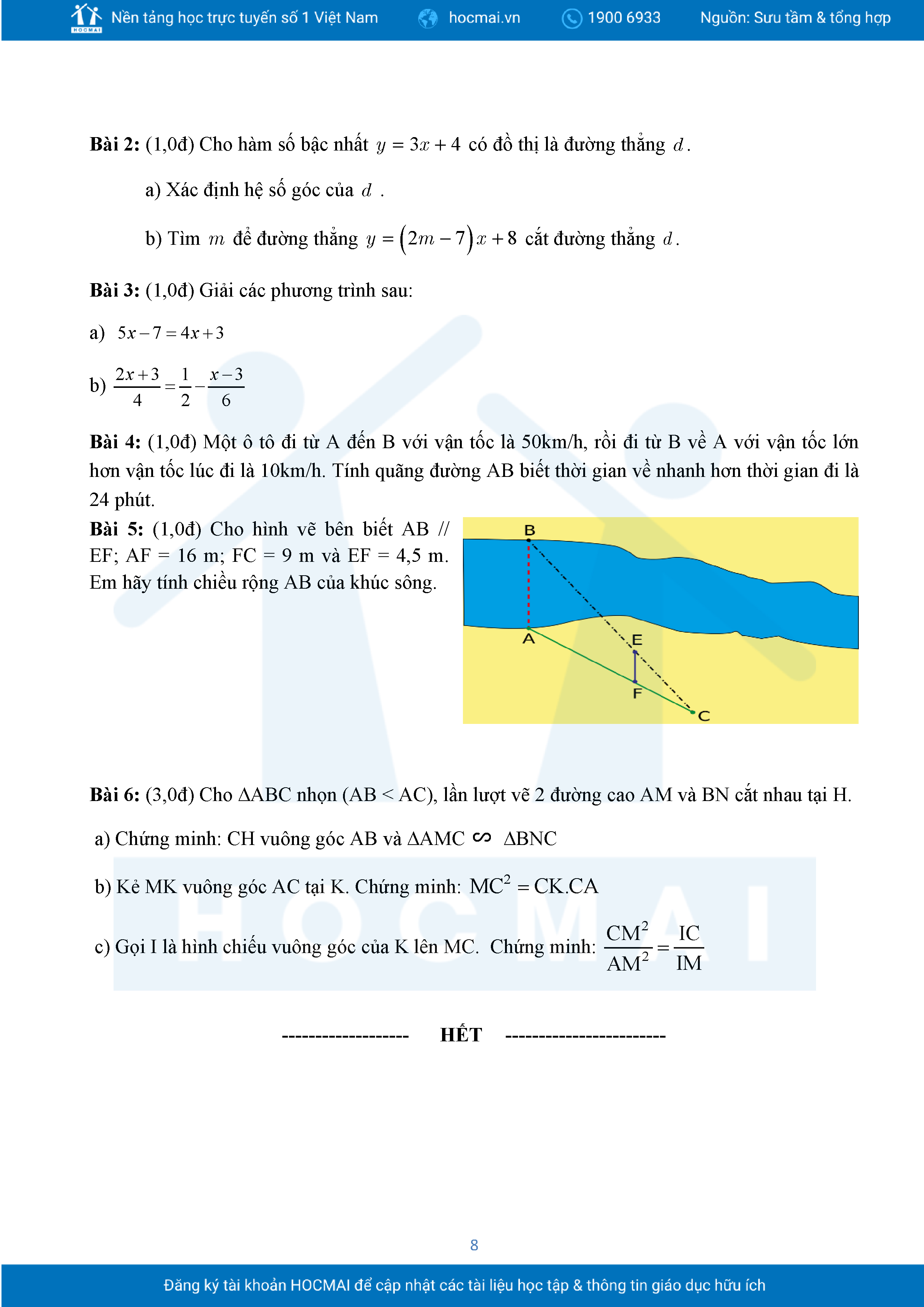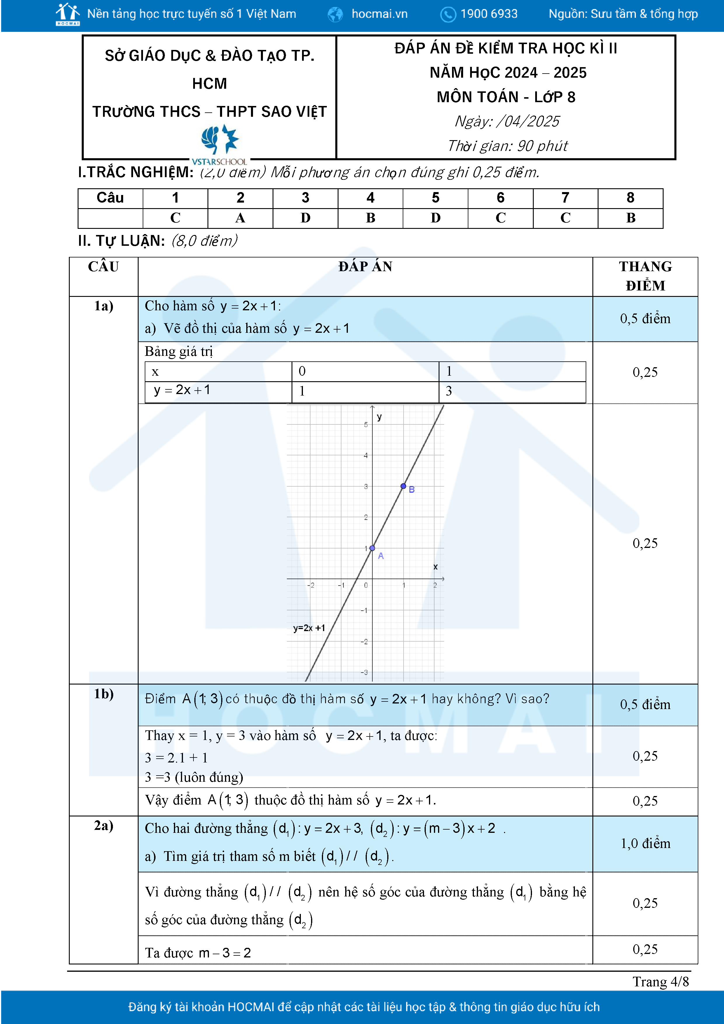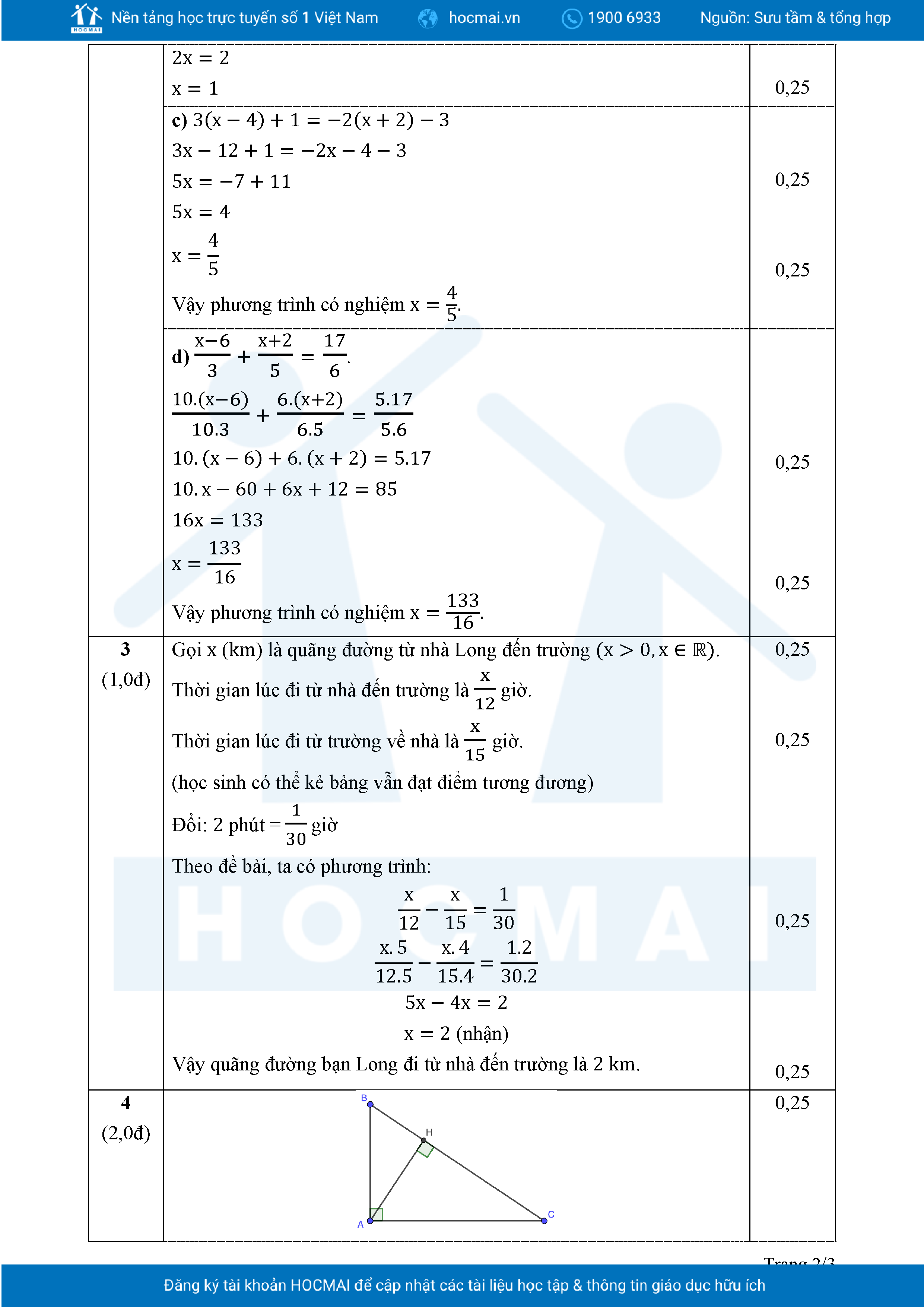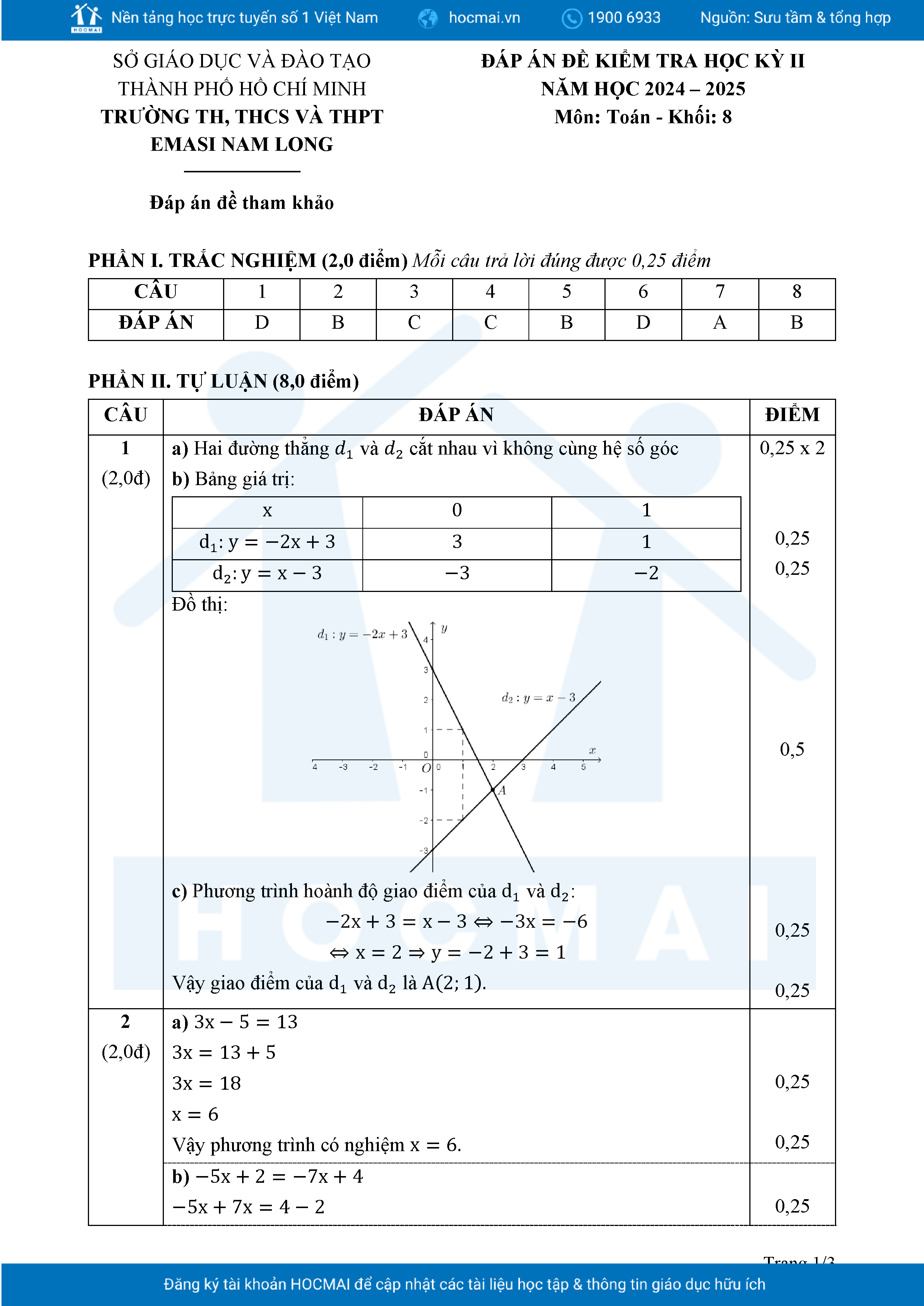 Đề tham khảo cuối kì 2 Toán 8 năm 2024 – 2025 phòng GD&ĐT Quận 7 – TP HCM