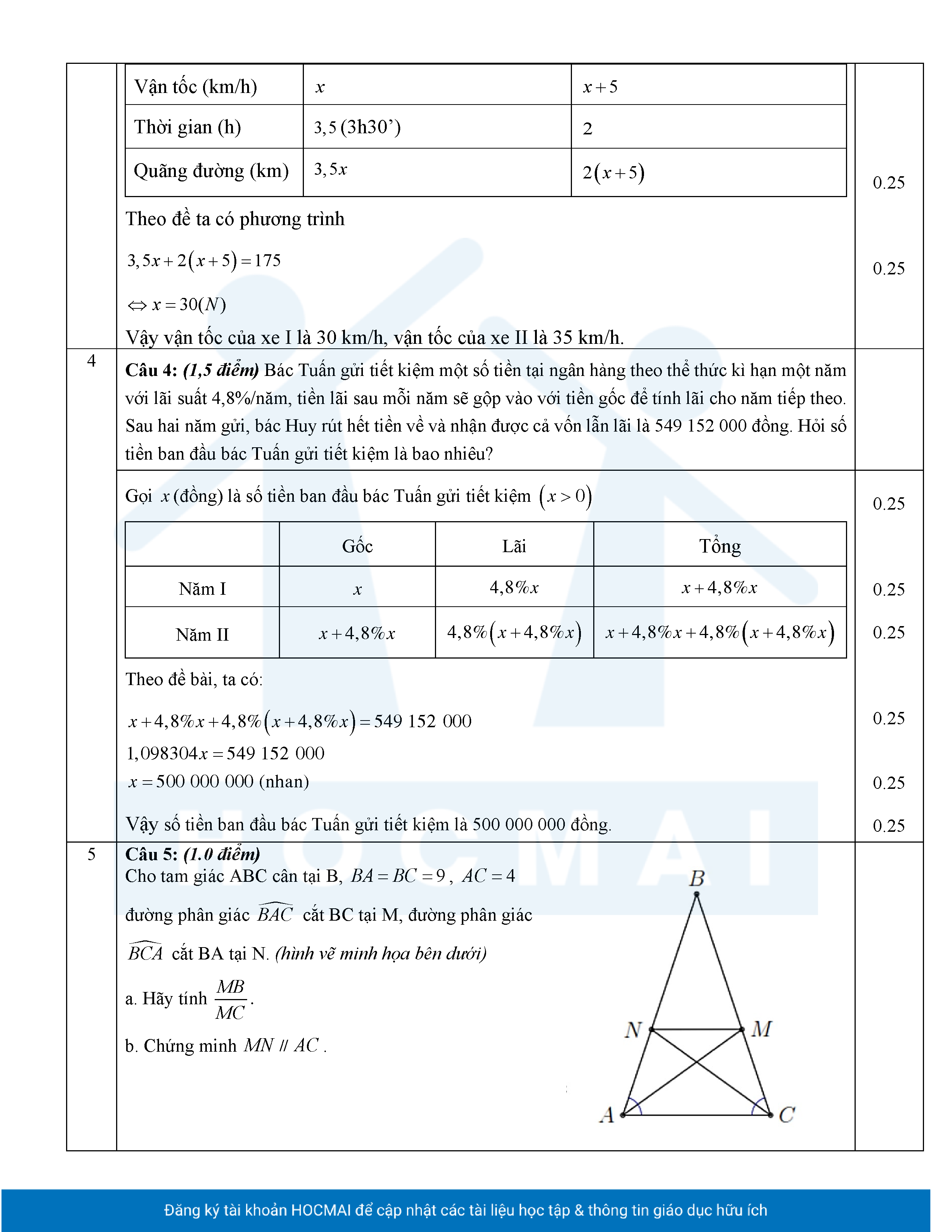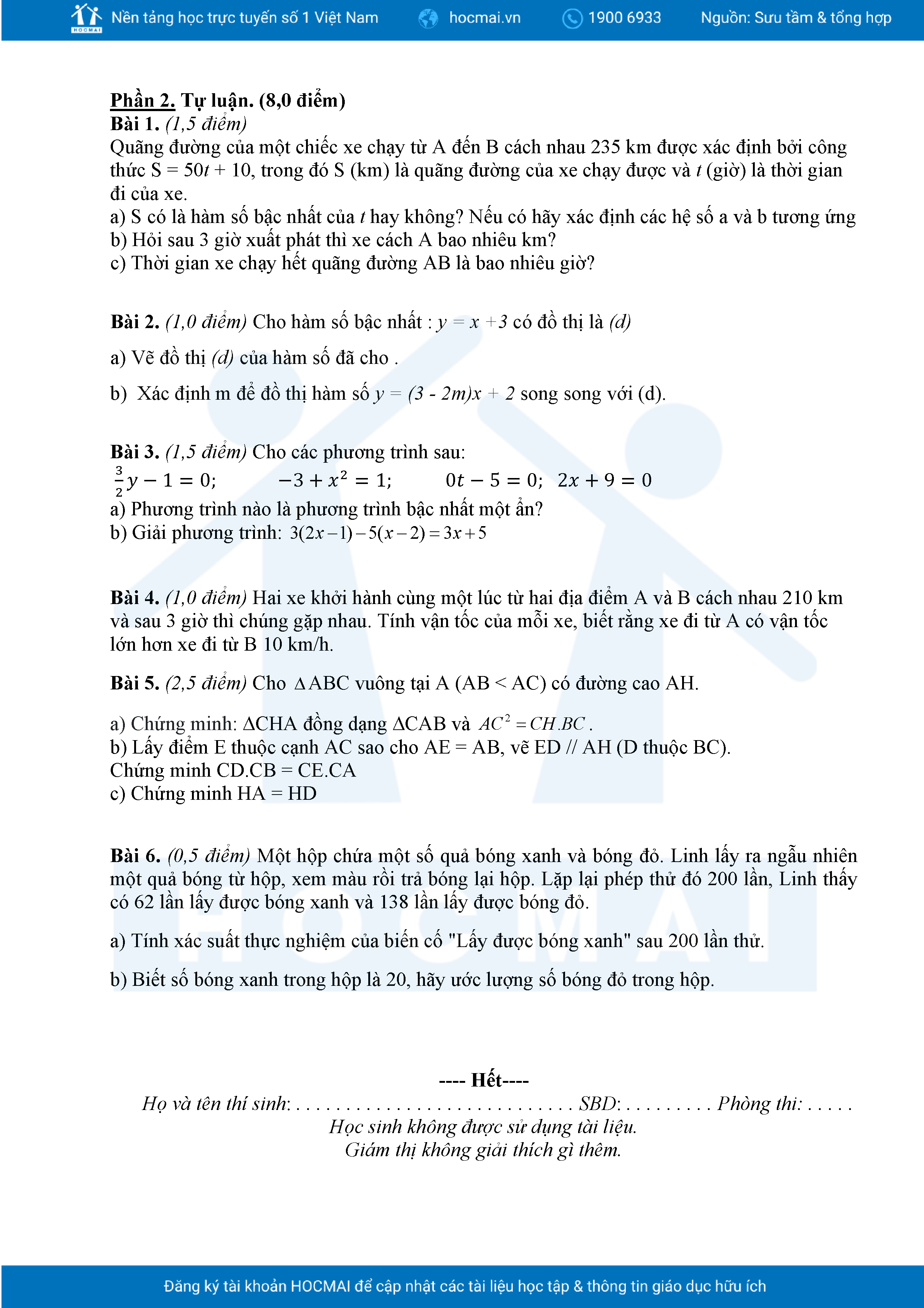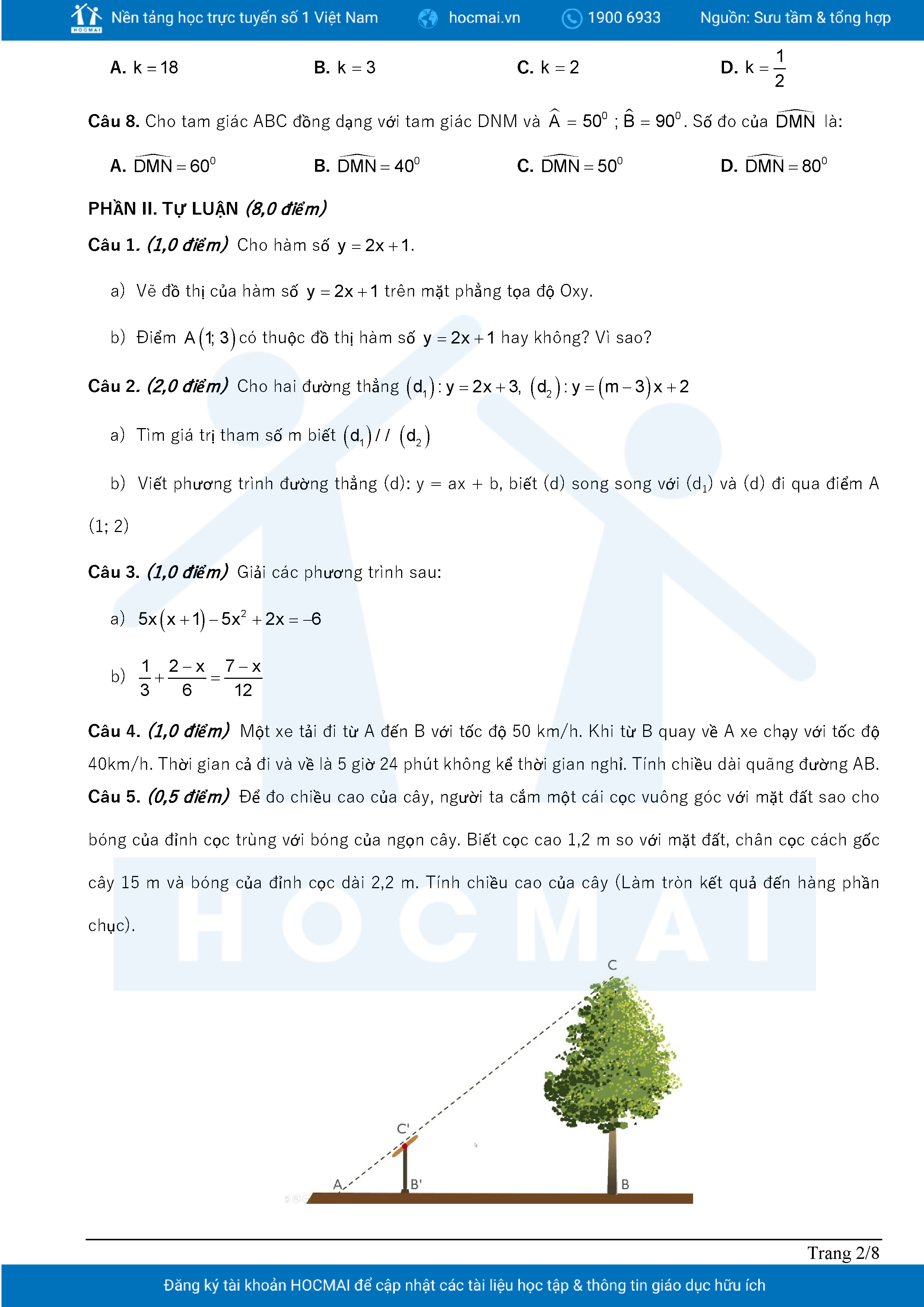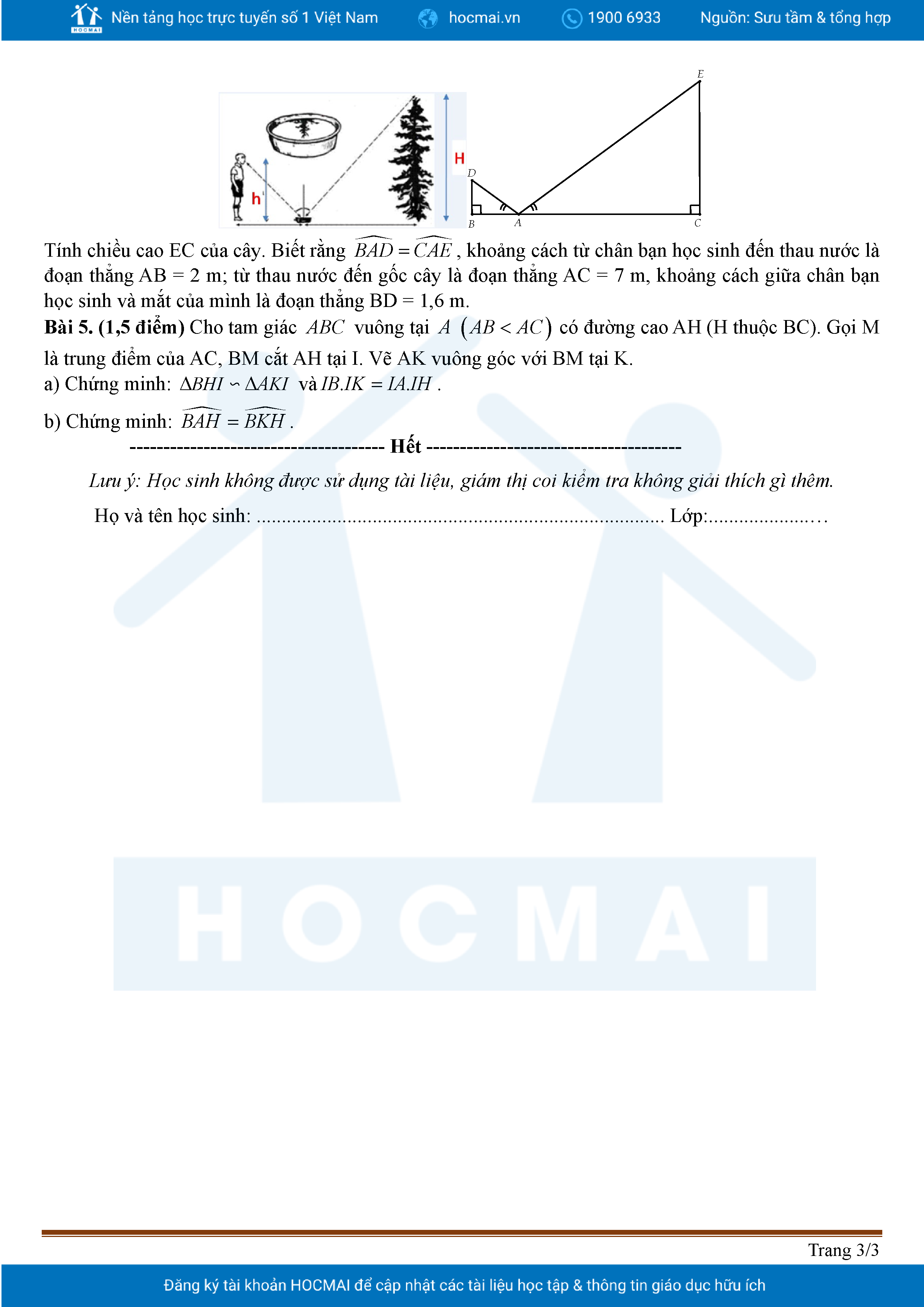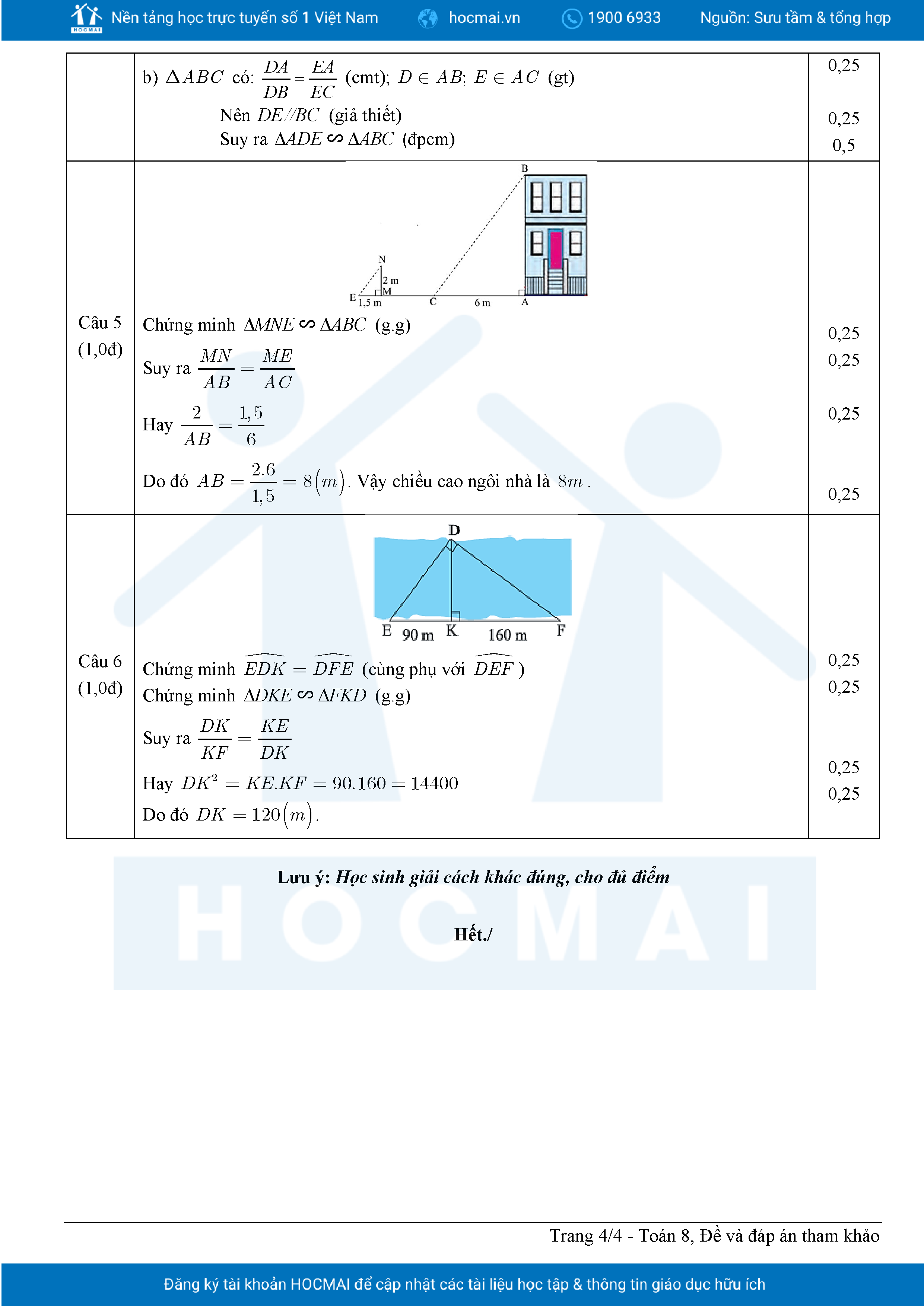 Đề tham khảo cuối kì 2 Toán 8 năm 2024 – 2025 phòng GD&ĐT Quận 7 – TP HCM